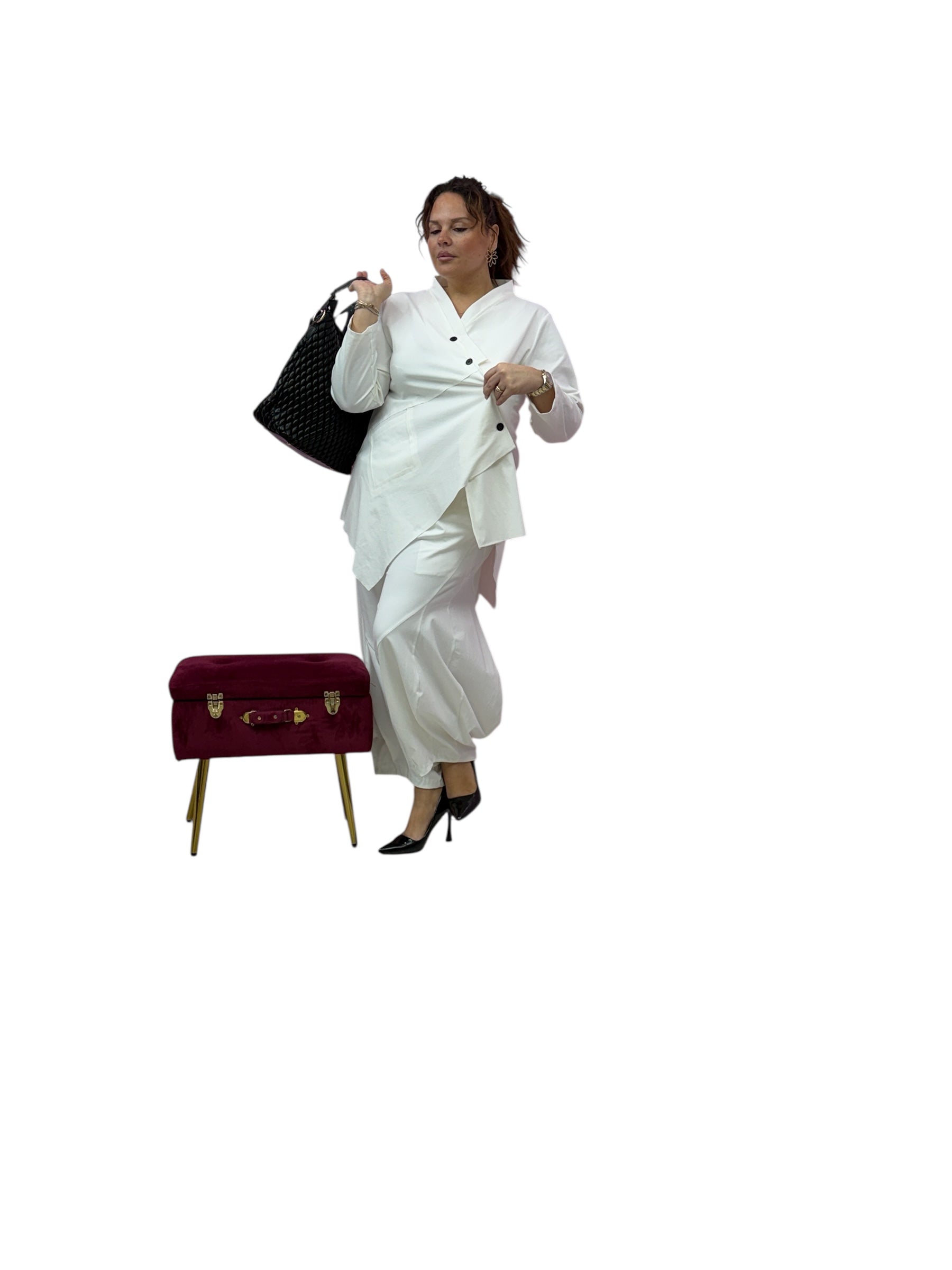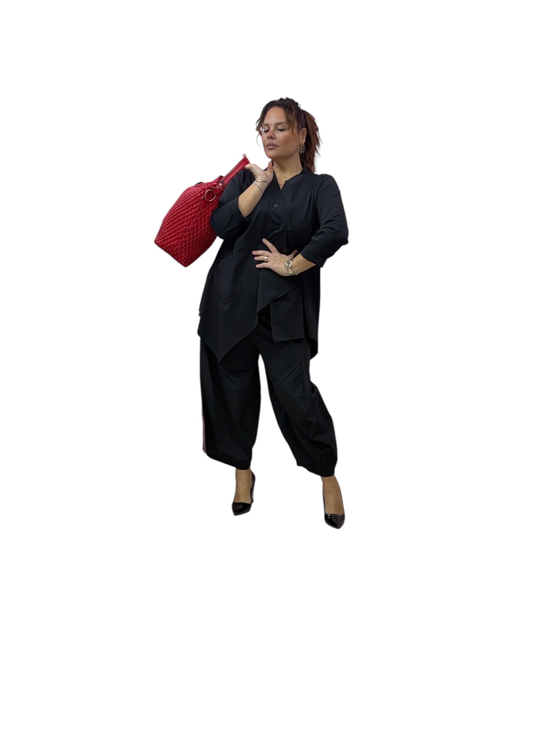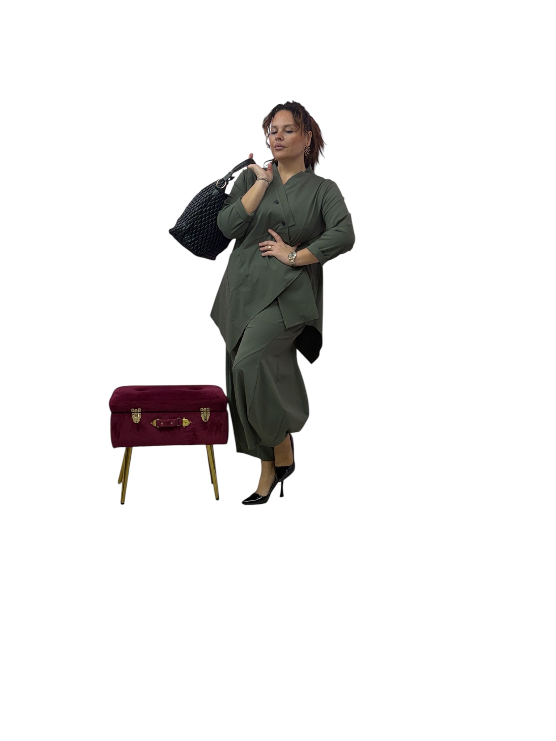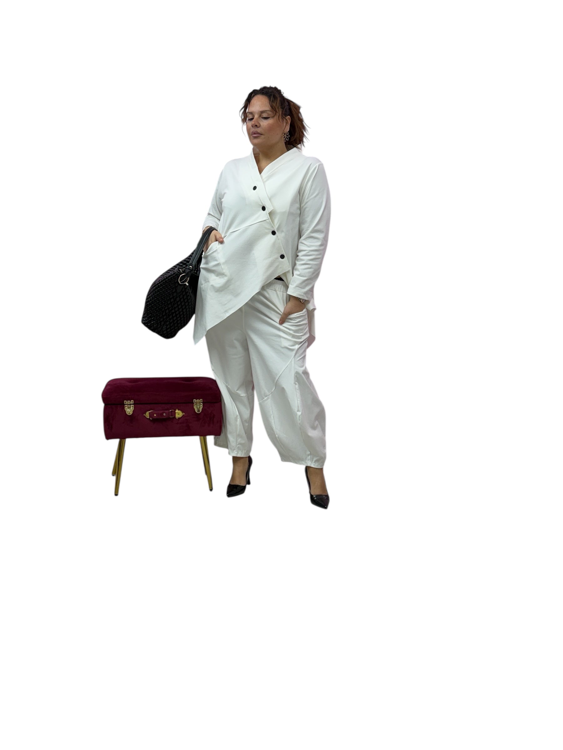 Magliettone/ spolverino over in felpa leggera con bottoni asimmetrica e scollo a v
