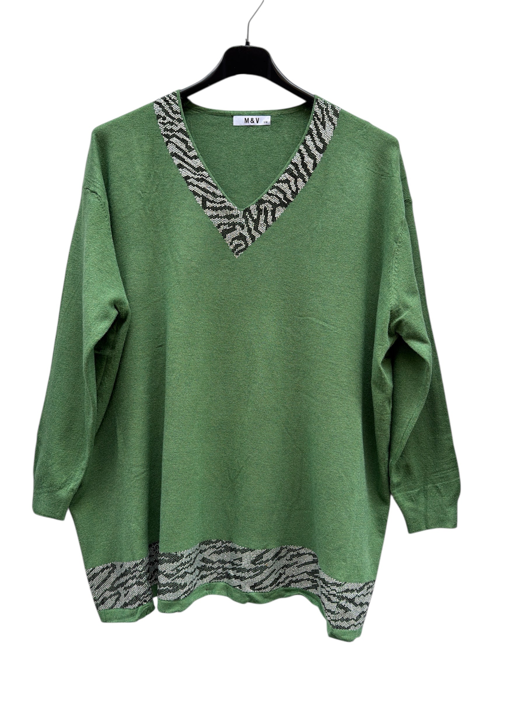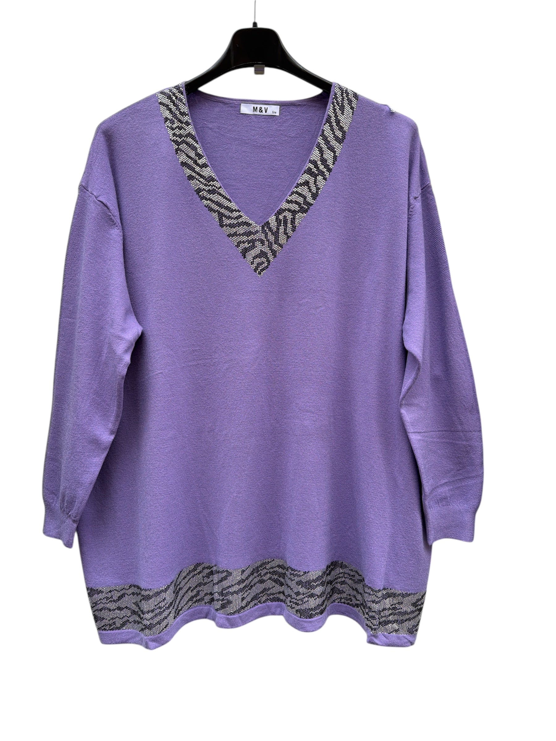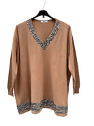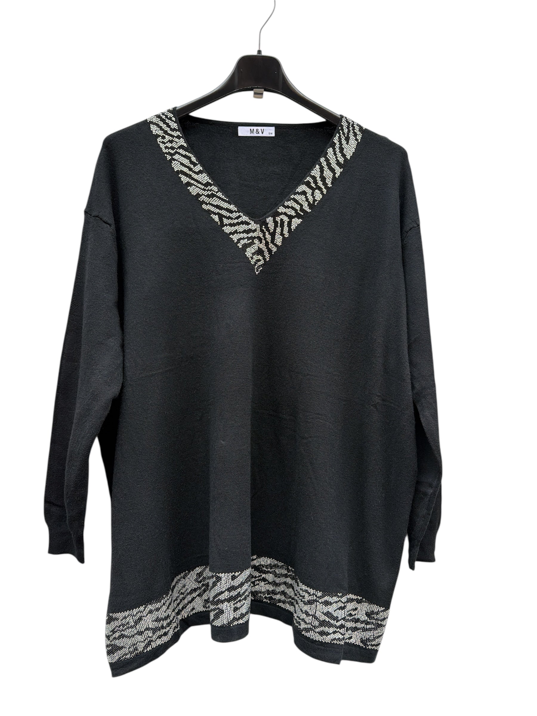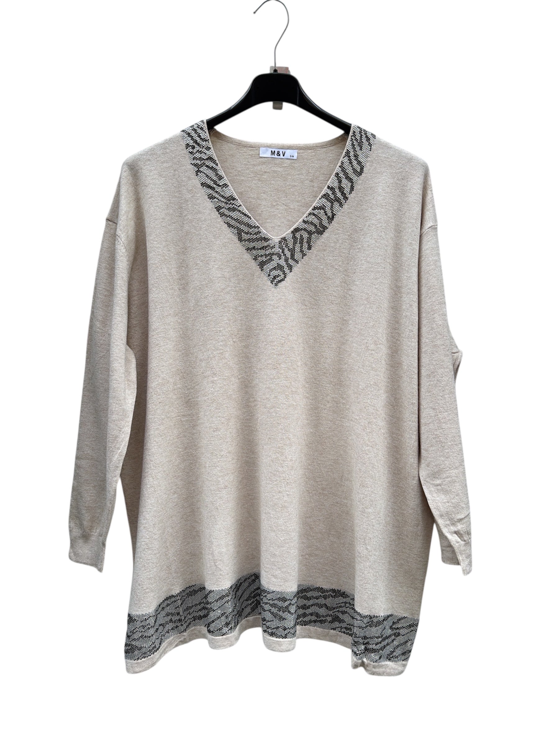 Magliettone over con scollo a v e fascia in brillantini