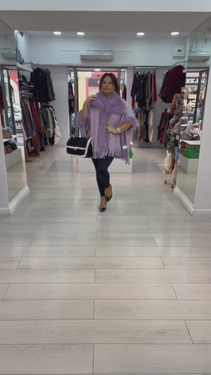 Mantella over in ecodaino con frange internamente felpato ed ecopelliccia