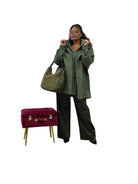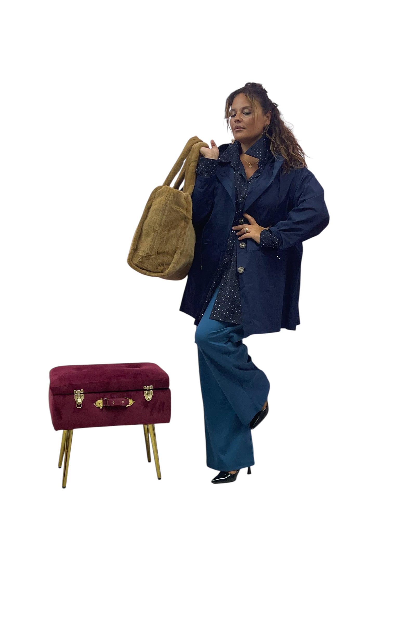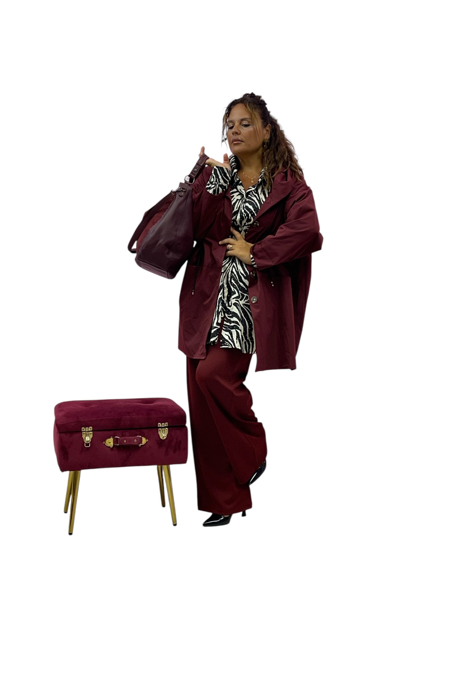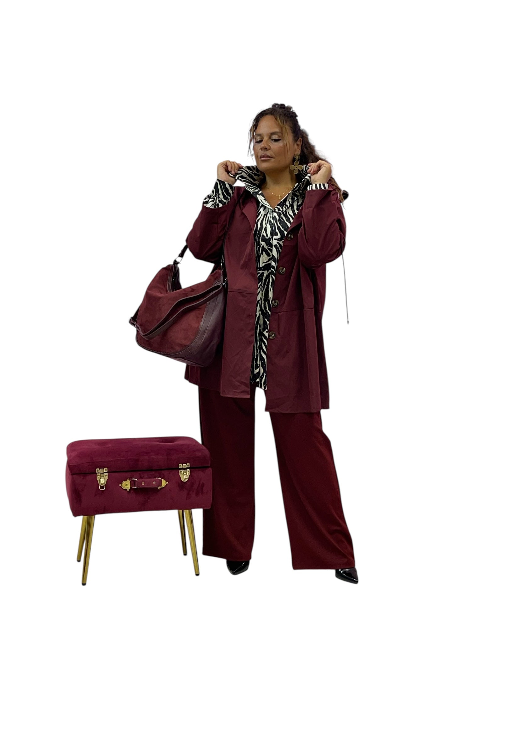 Pantaloni over palazzo in cotone elastico effetto punto milano con cinturino ed elastico in vita