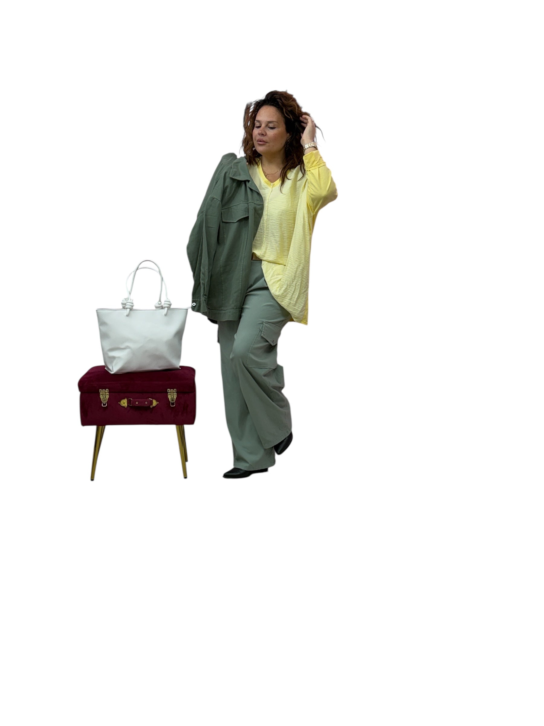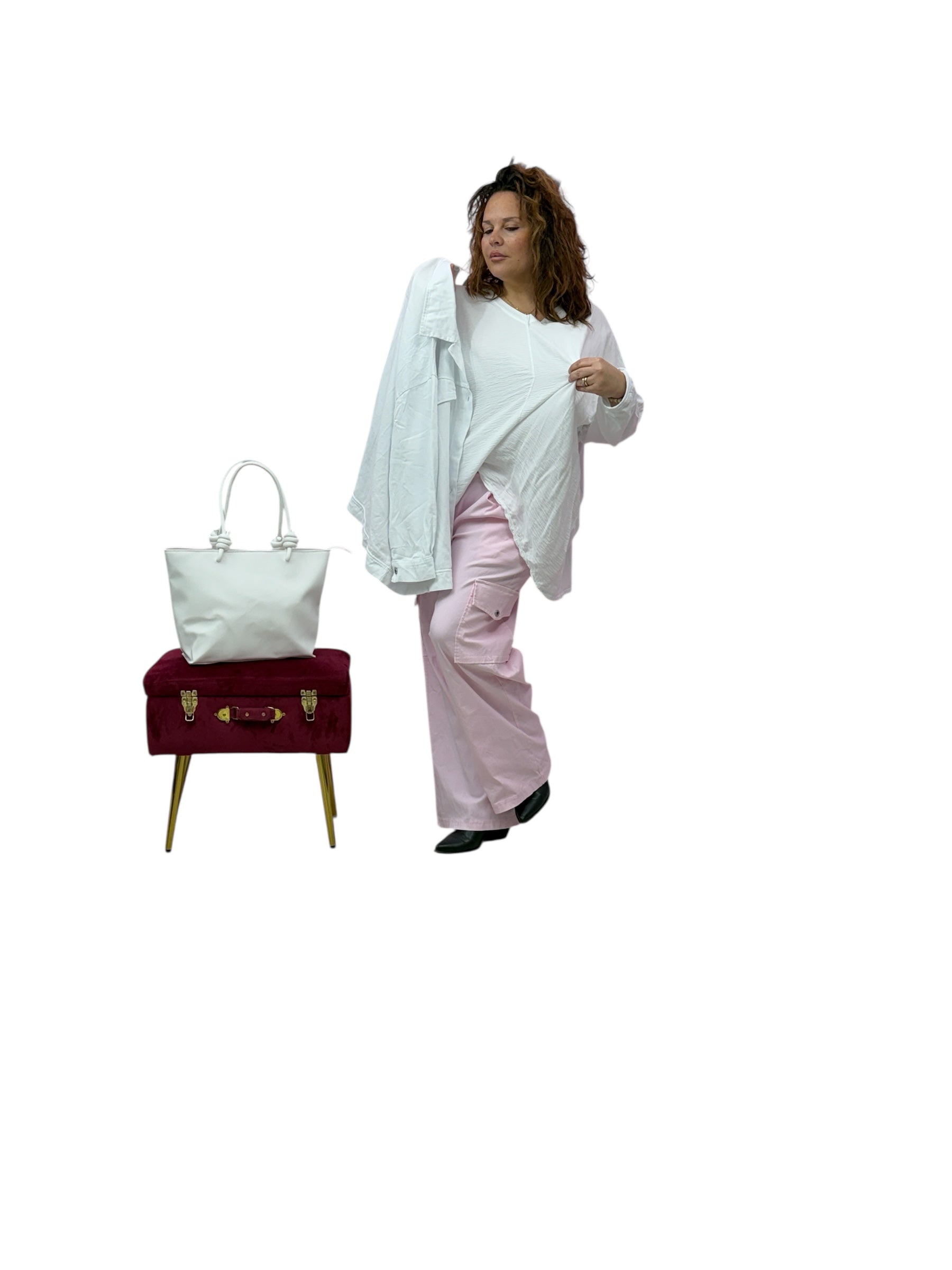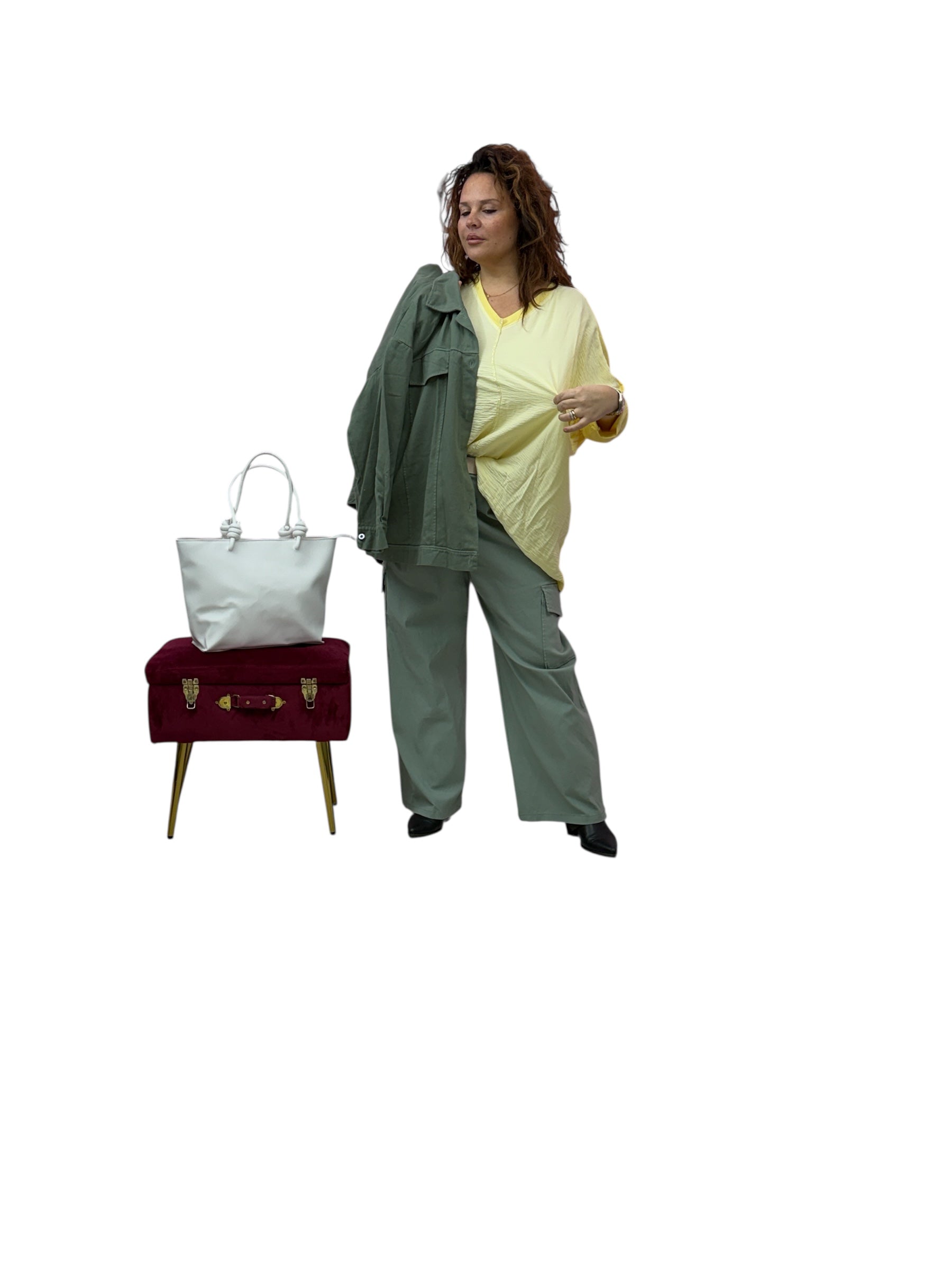 Pantaloni over palazzo con tasconi laterali ed elastico in vita