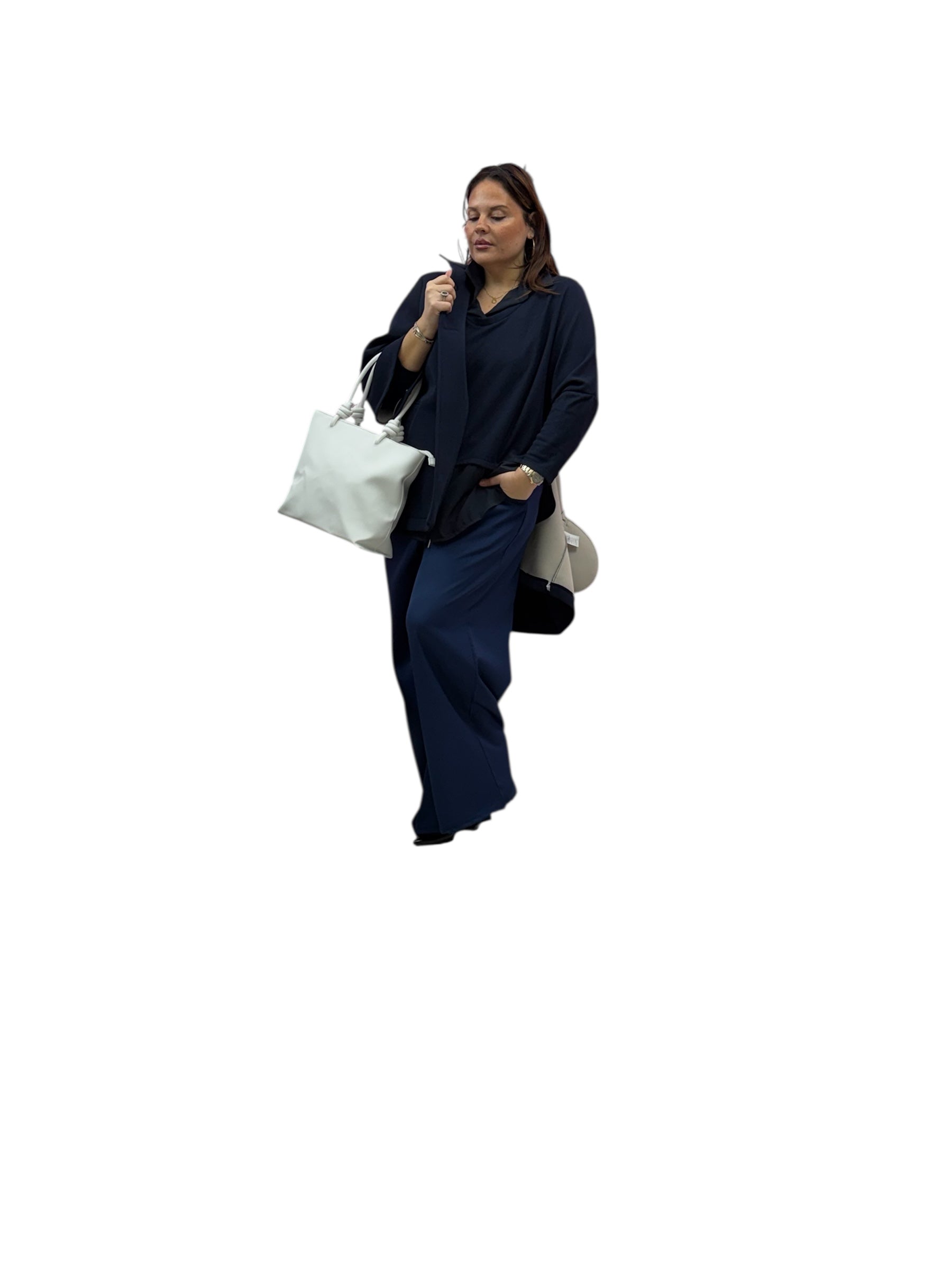 Pantaloni over palazzo con elastico in vita e laccio e tasca america