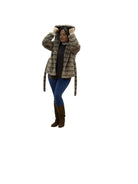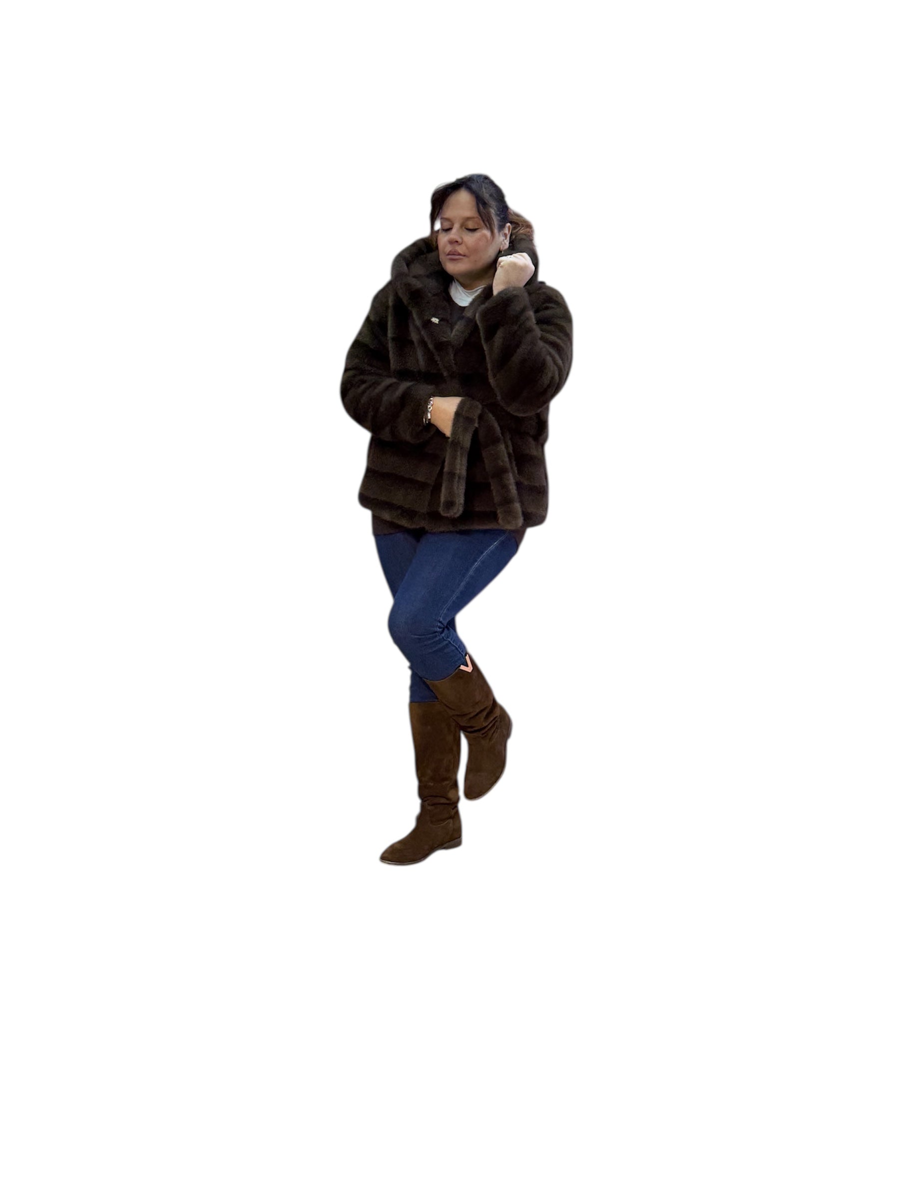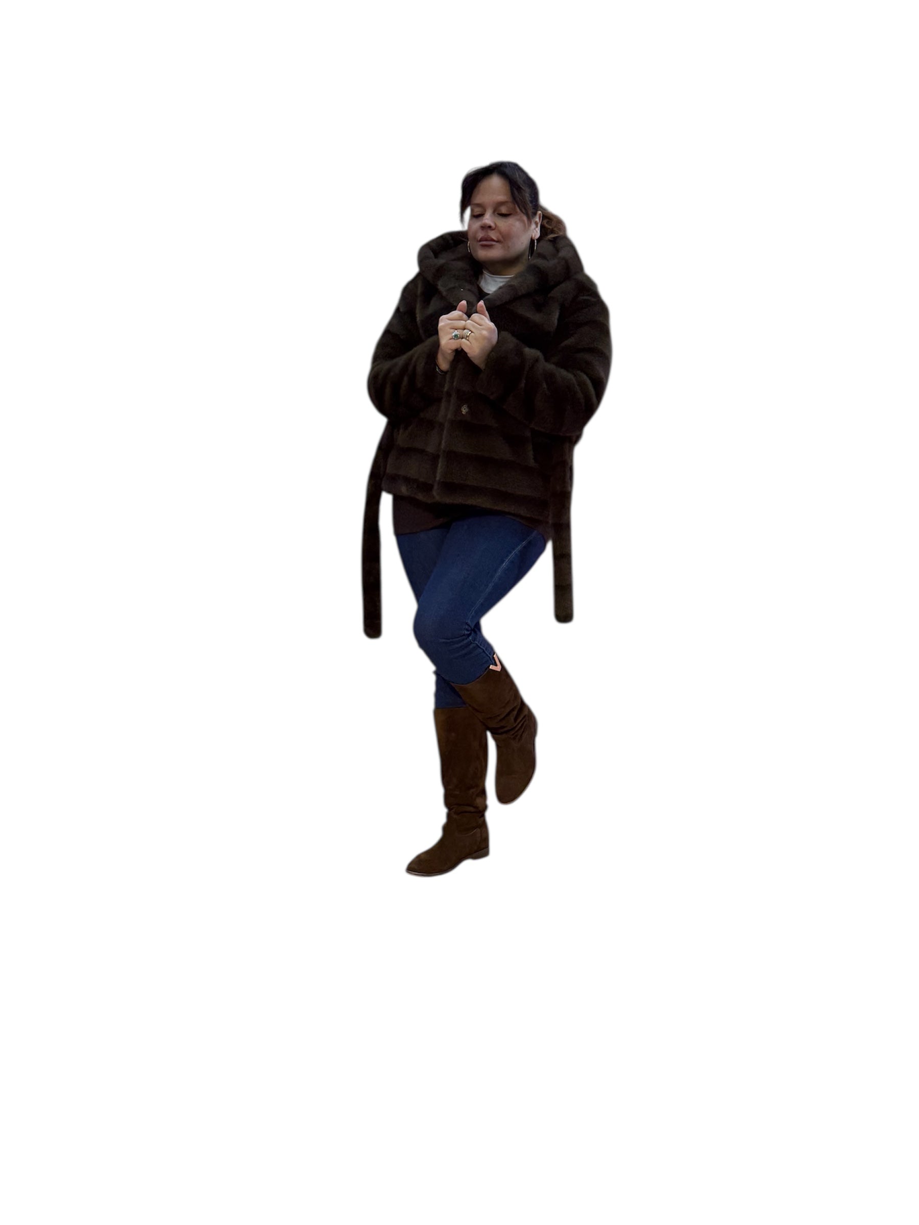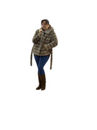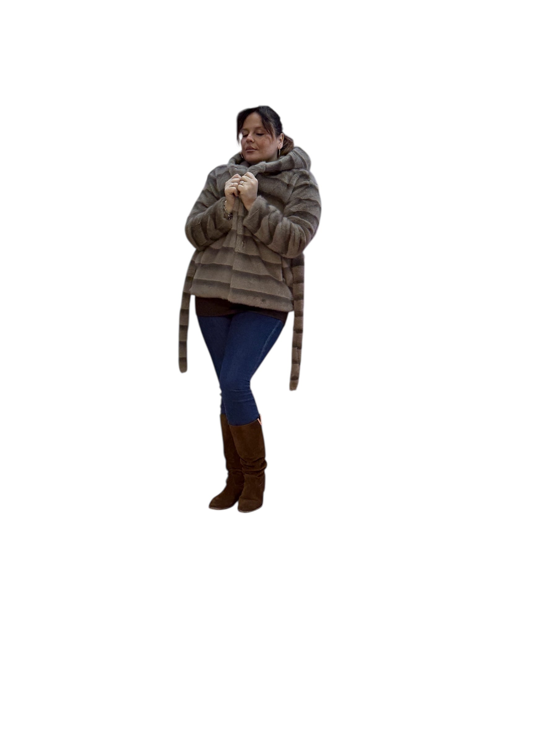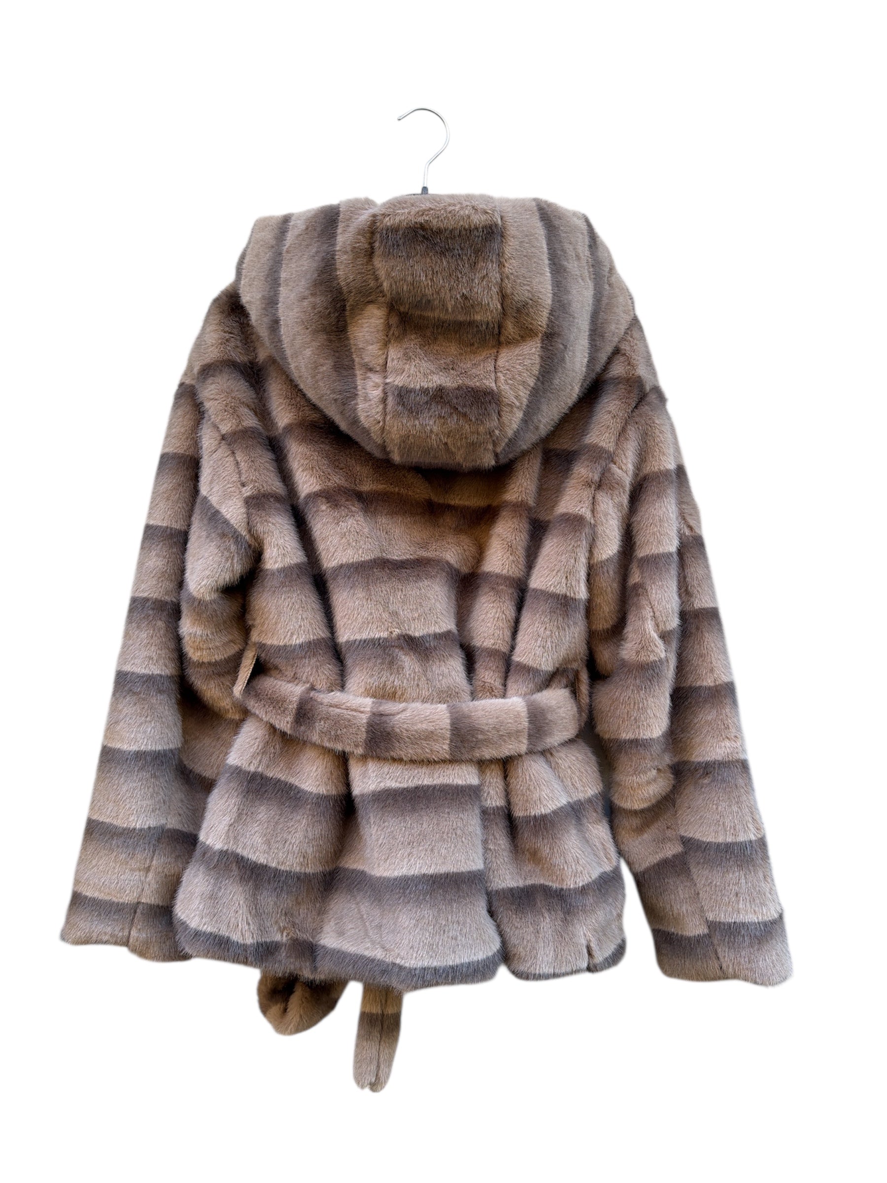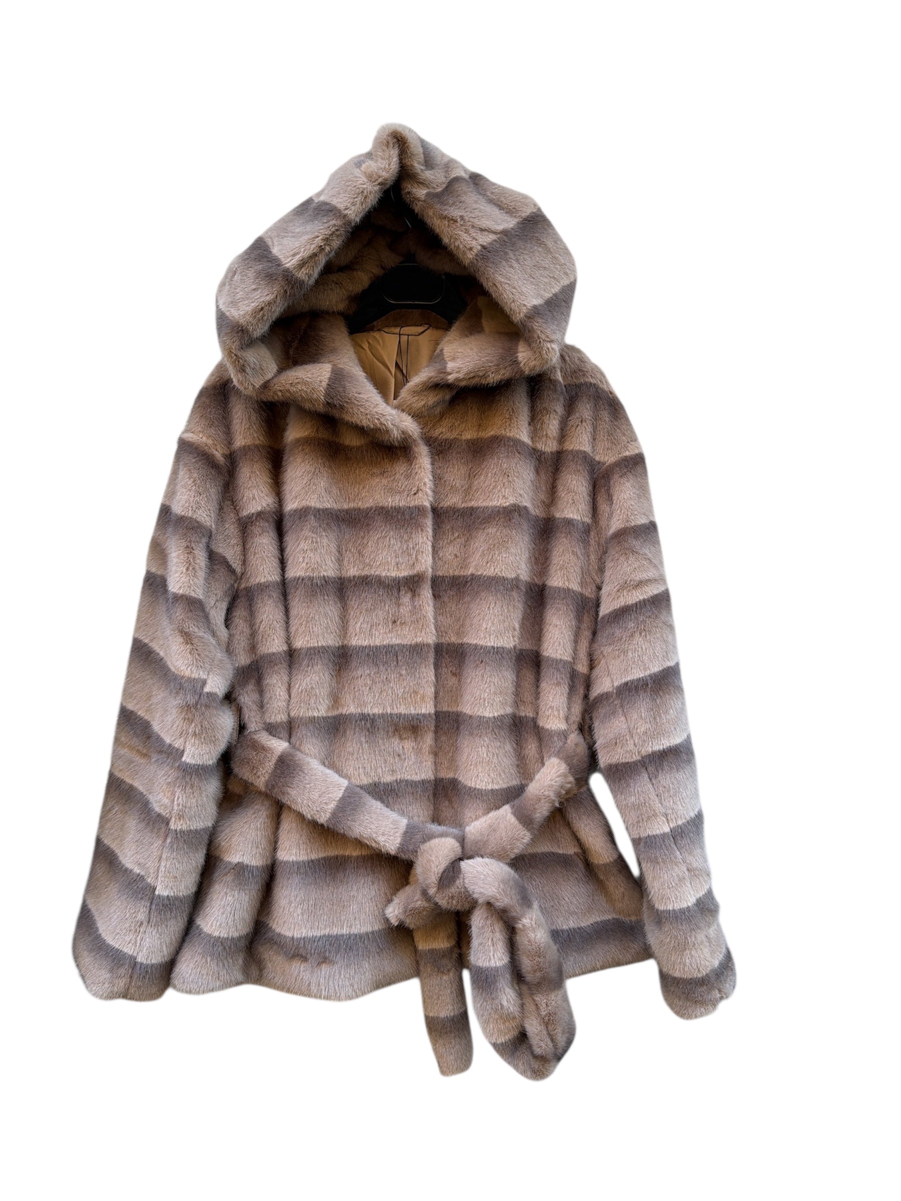 Ecopelliccia con fodera,cintura,cappuccio e bottoni