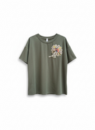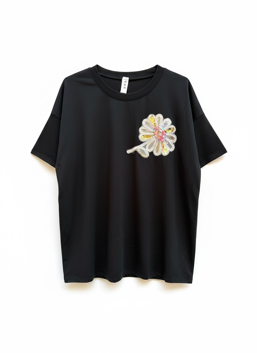 Shirt over in viscosa con fiore ricamato e paiette