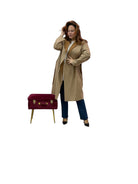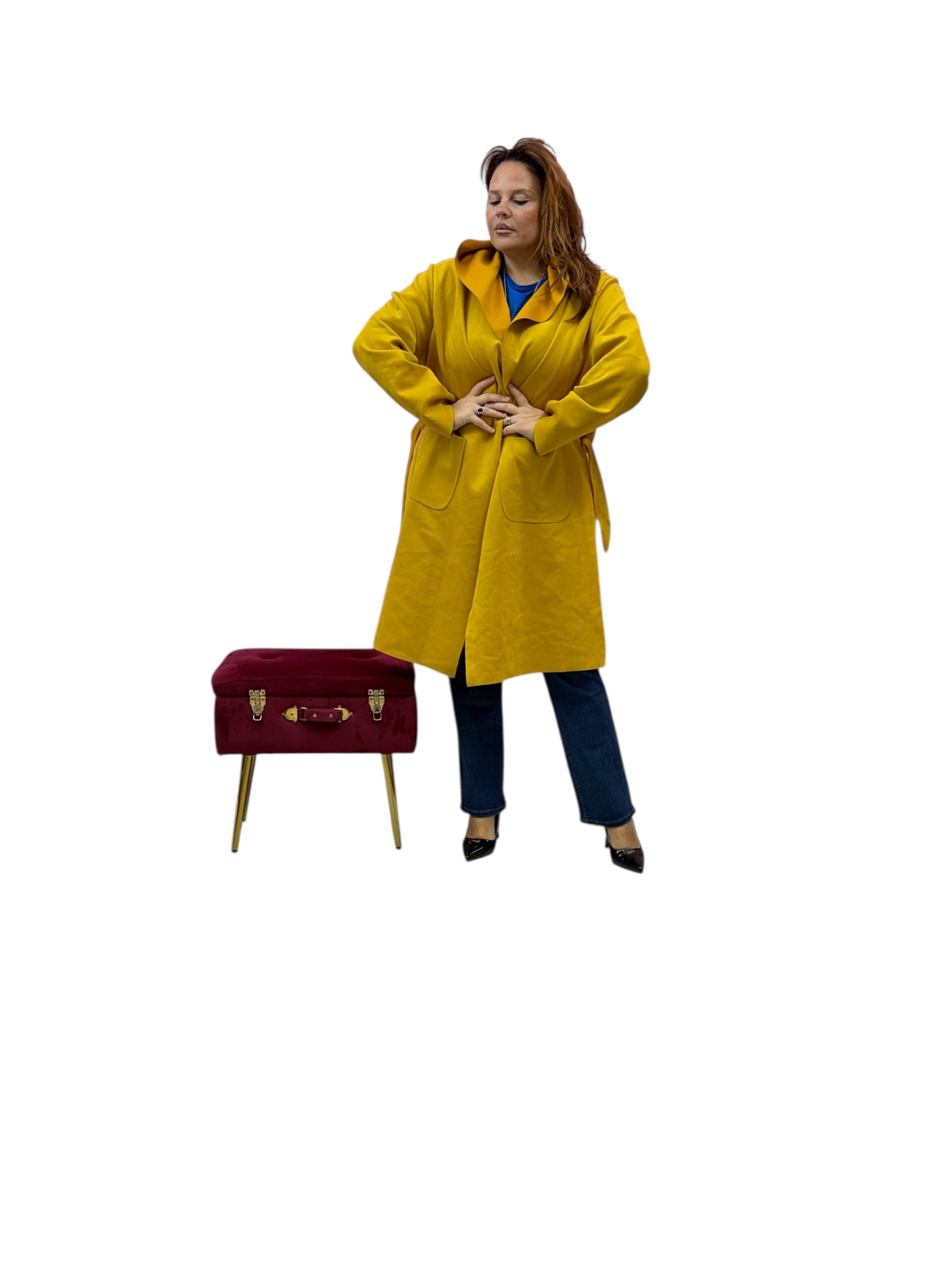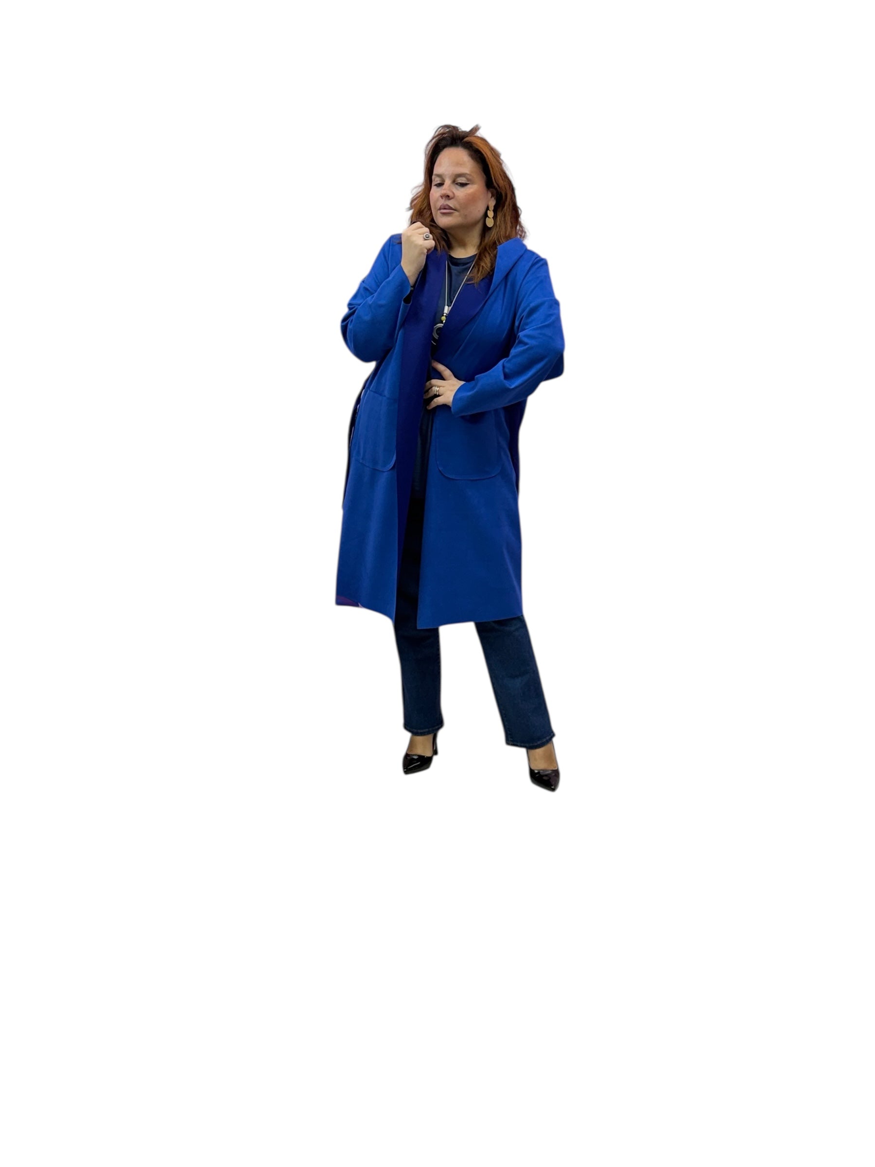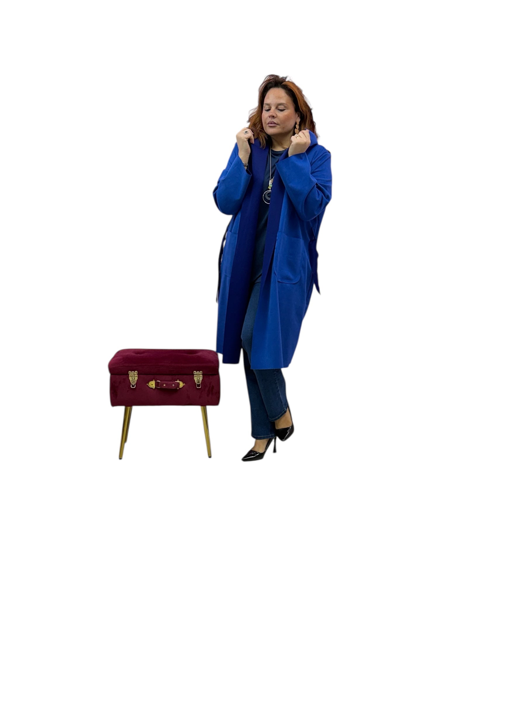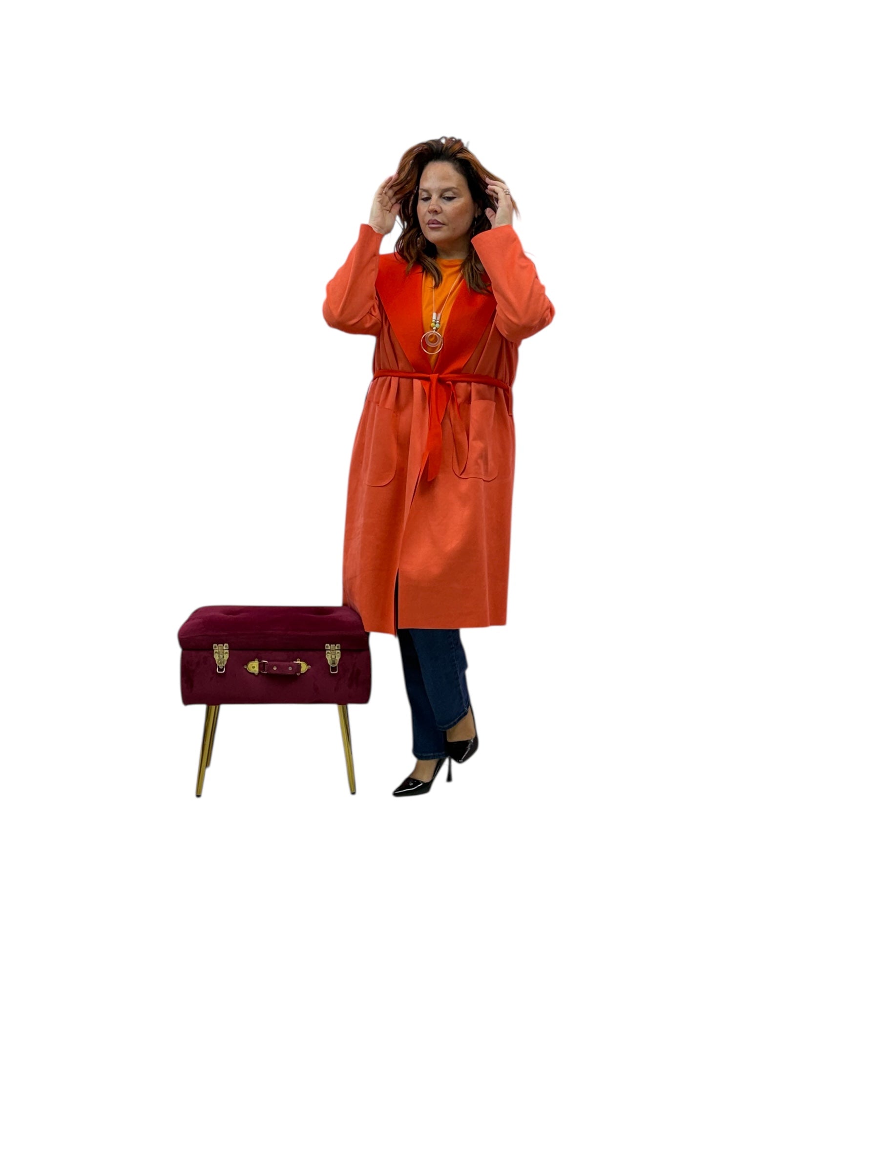 Spolverino lungo in ecodaino con cappuccio e cintura