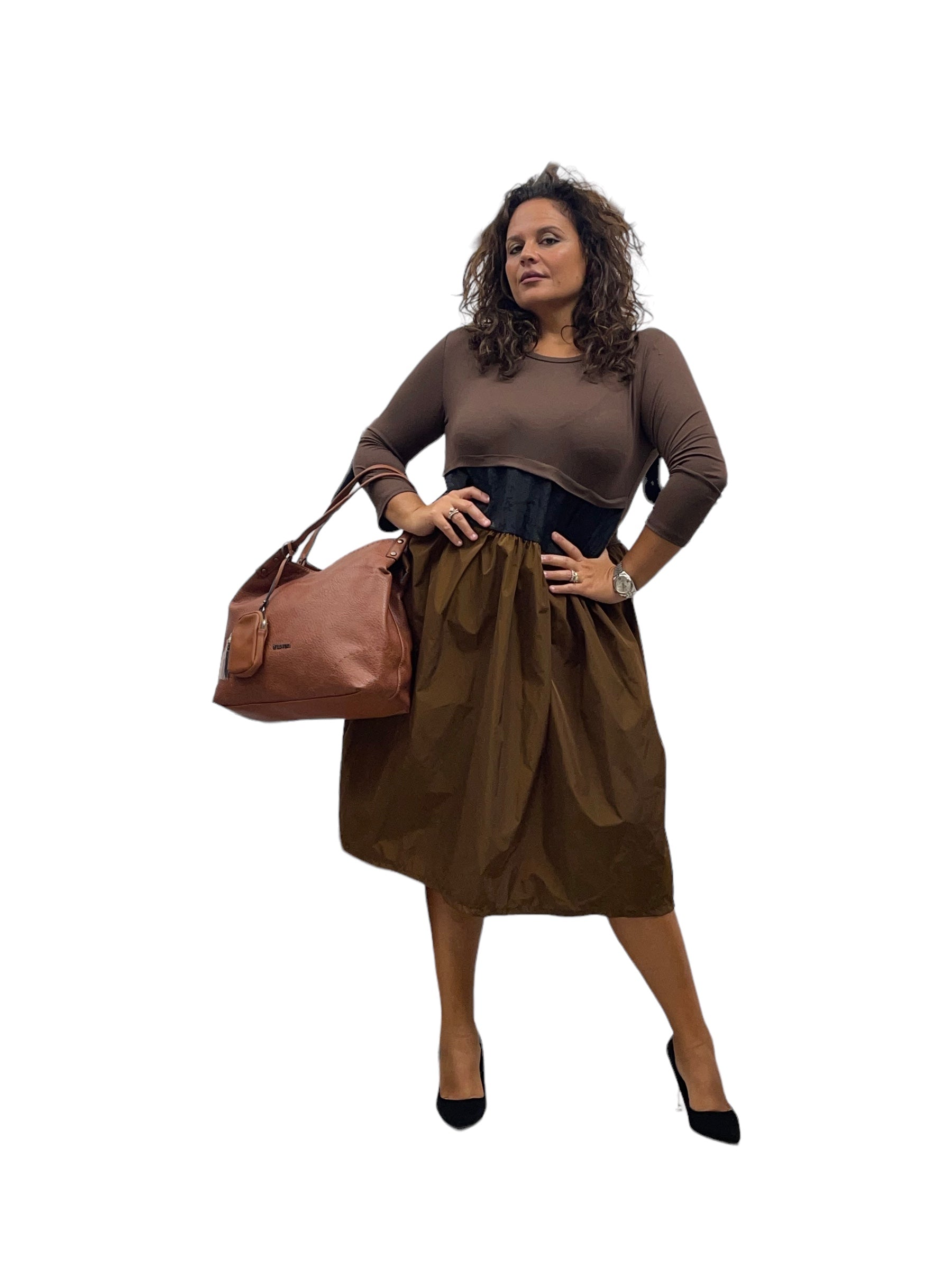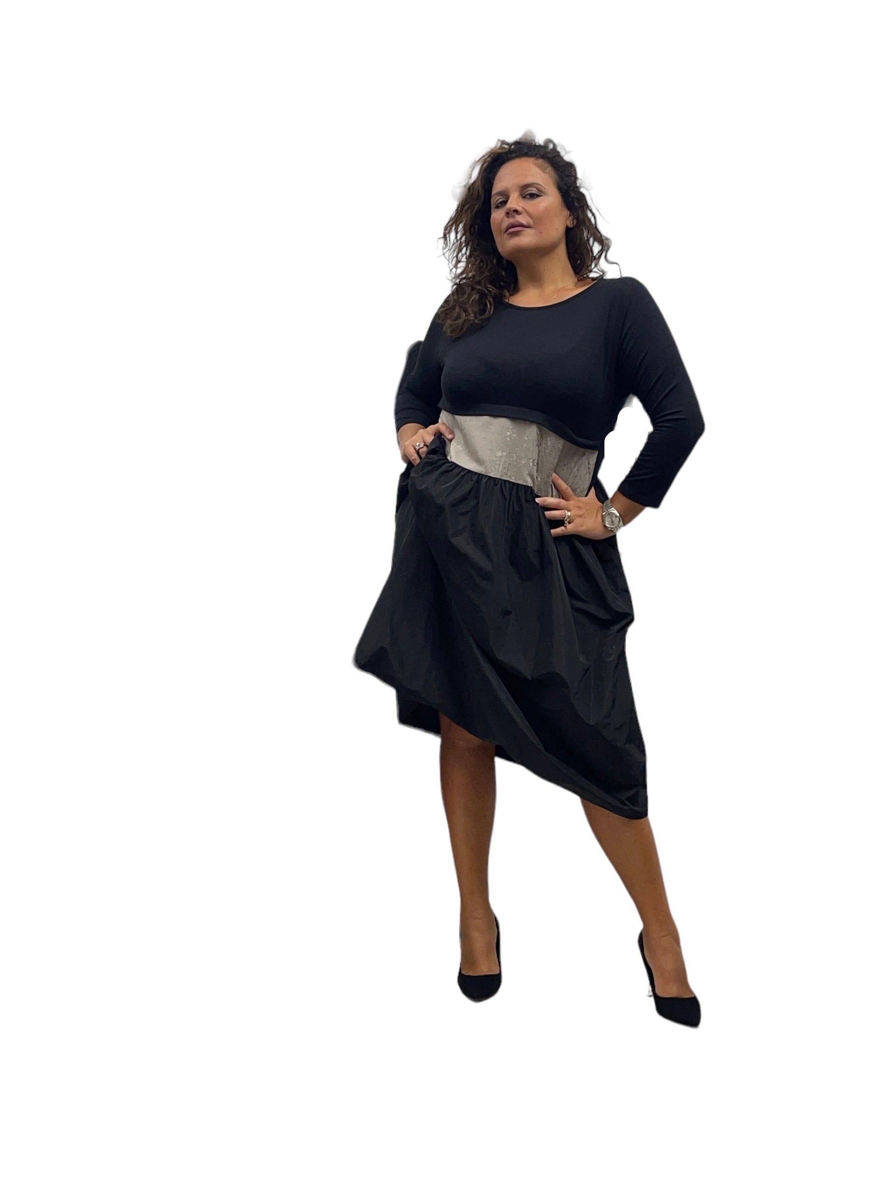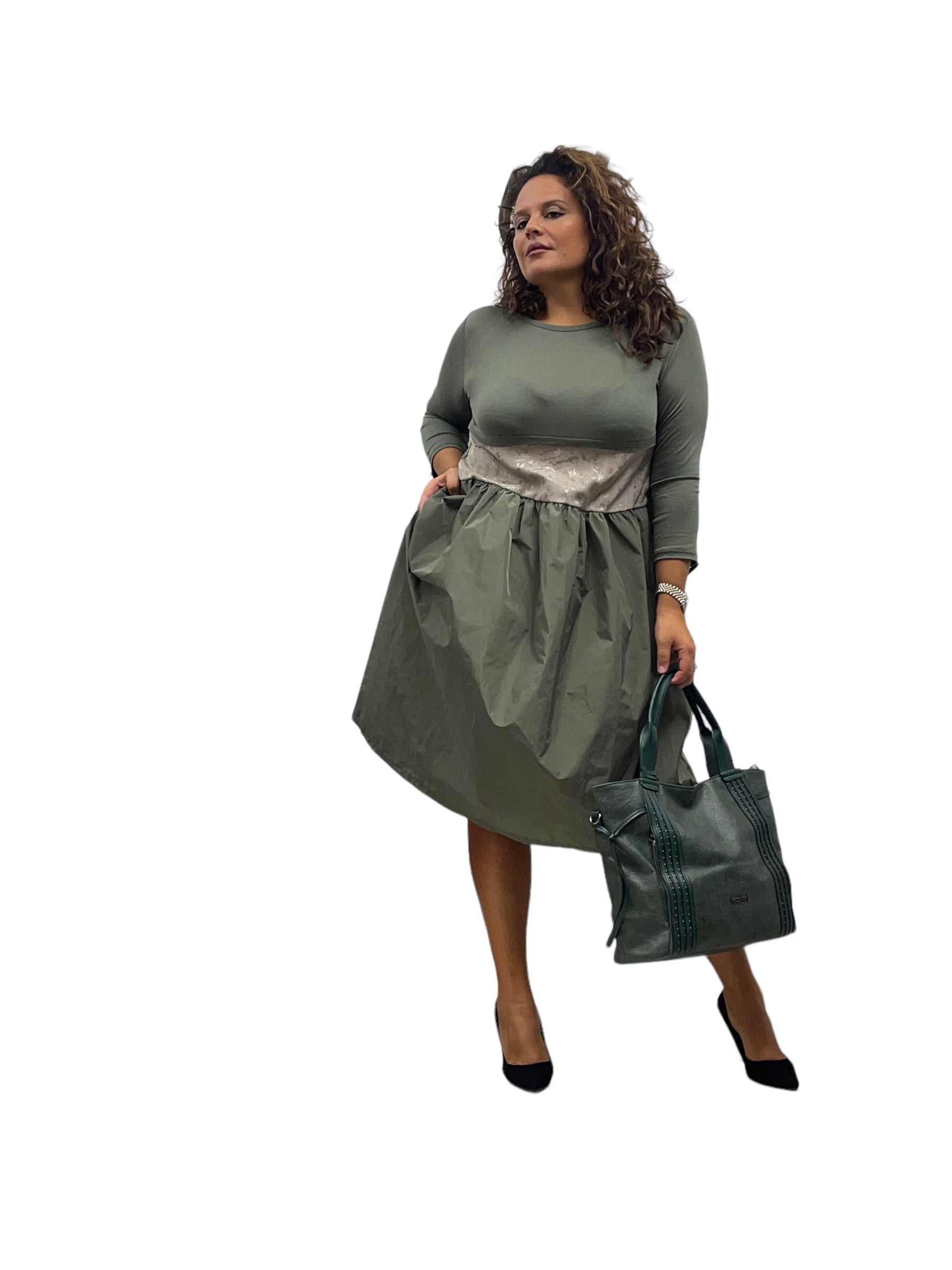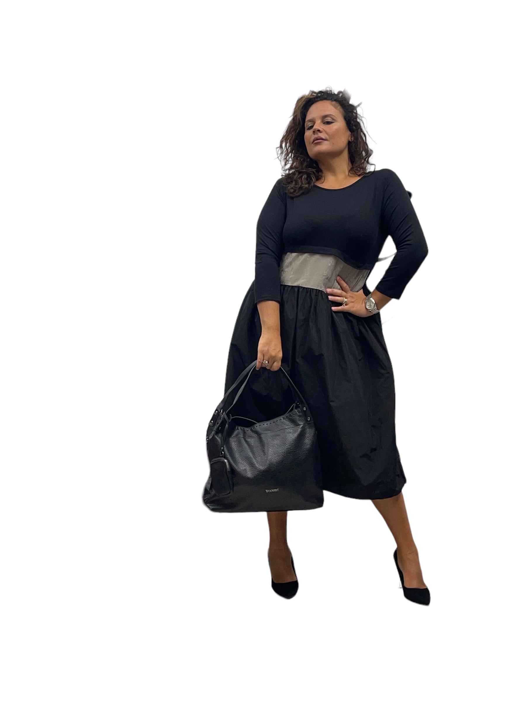 Abito lungo con sopra in maglina fascia centrale fantasia e tessuto tecnico