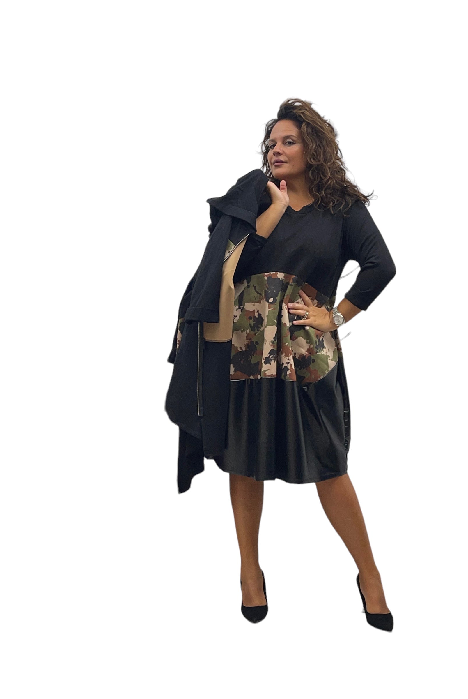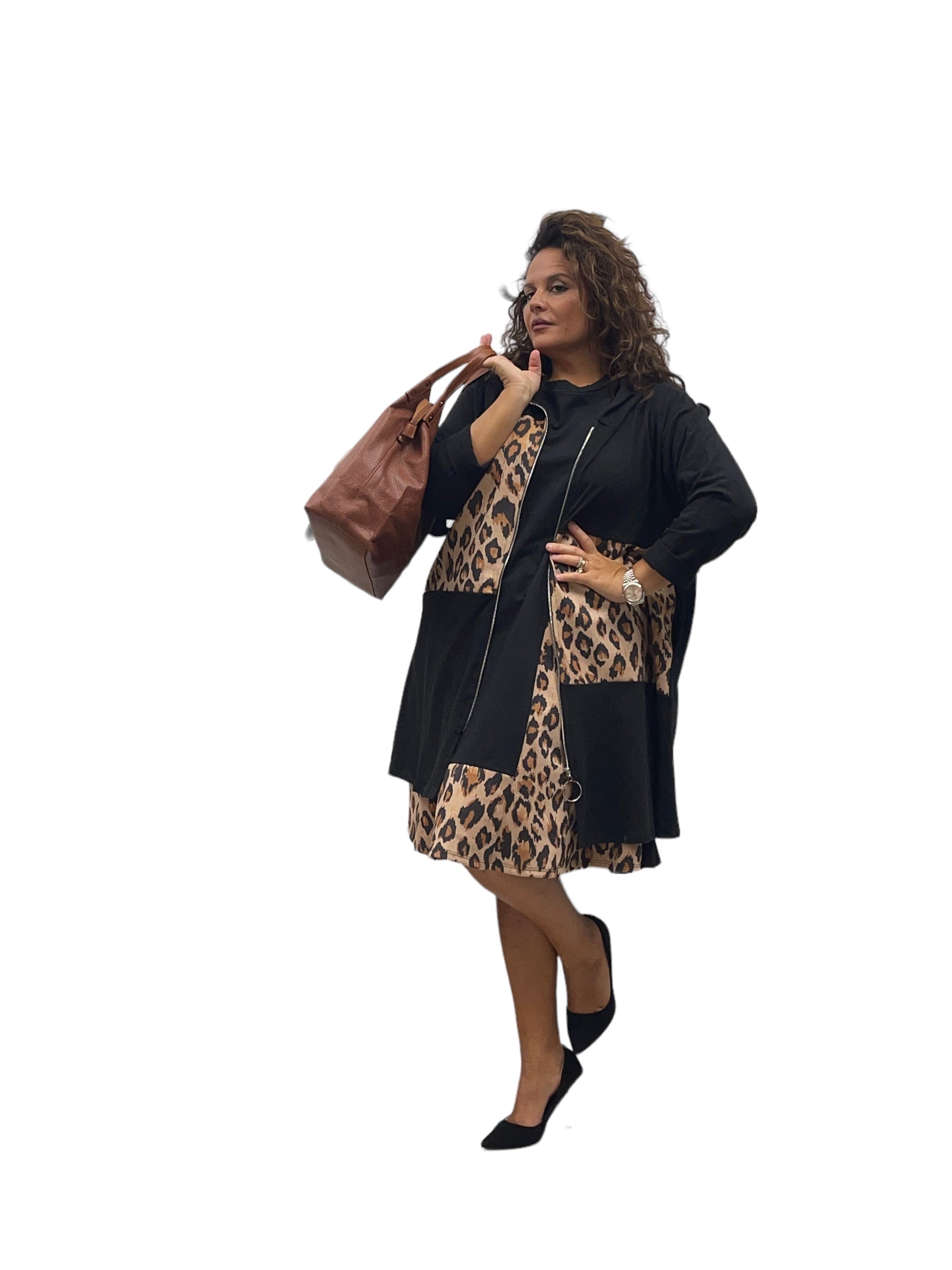 Cardigan lungo over in felpa con fasce in ecodaino fantasia e cappuccio