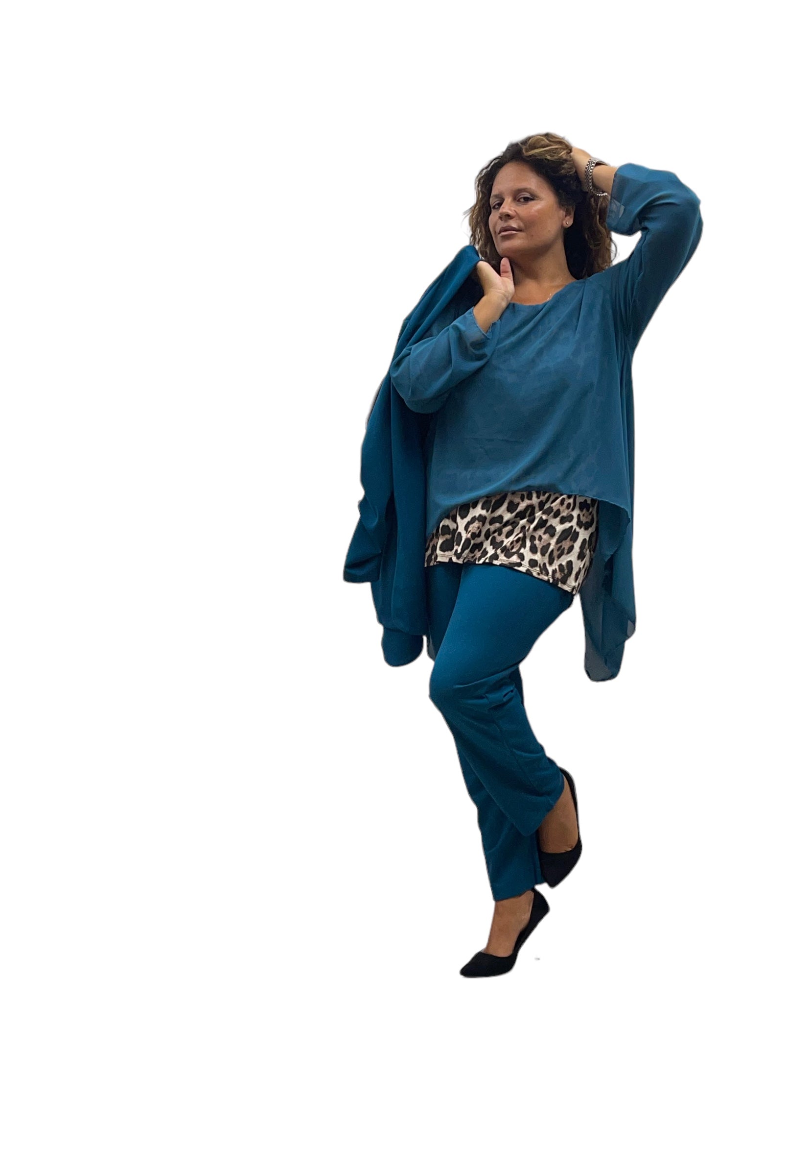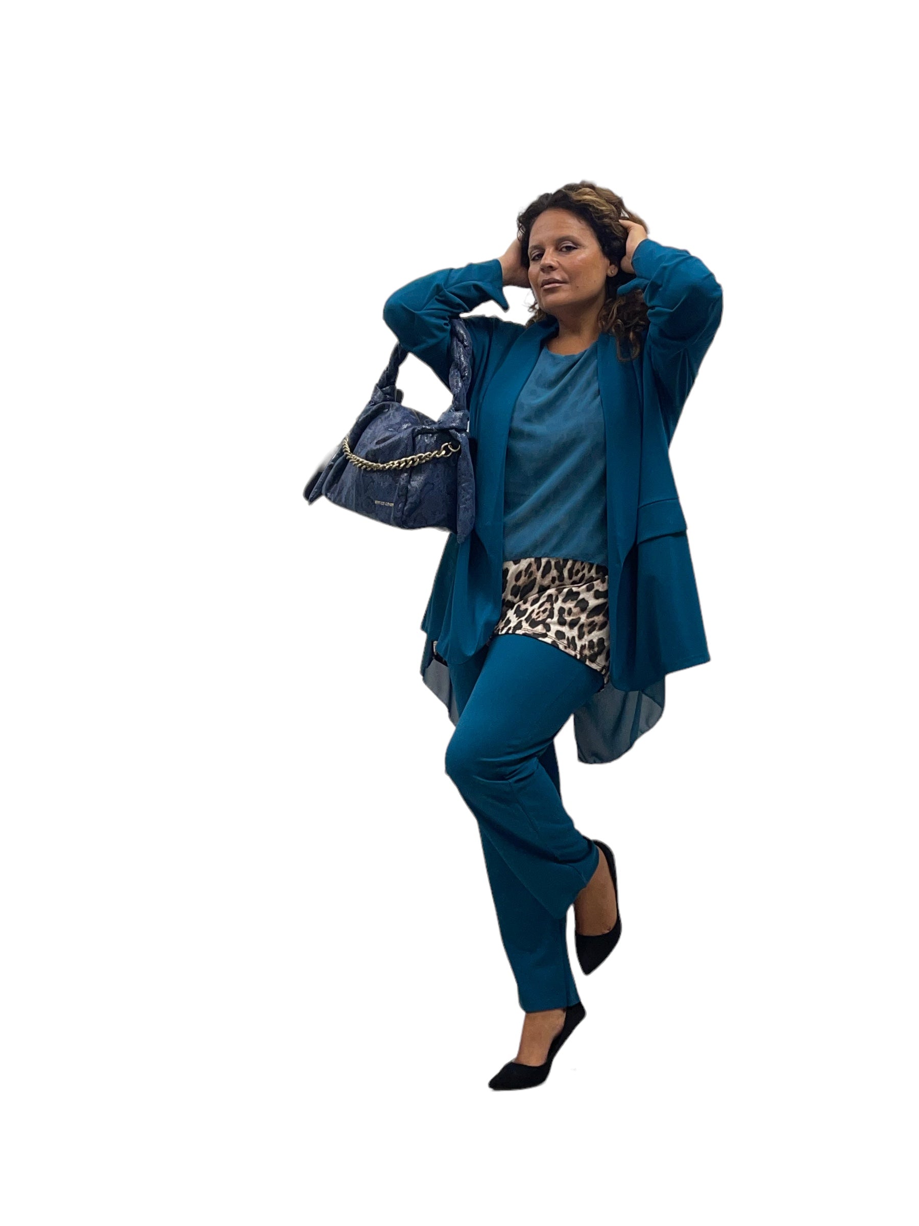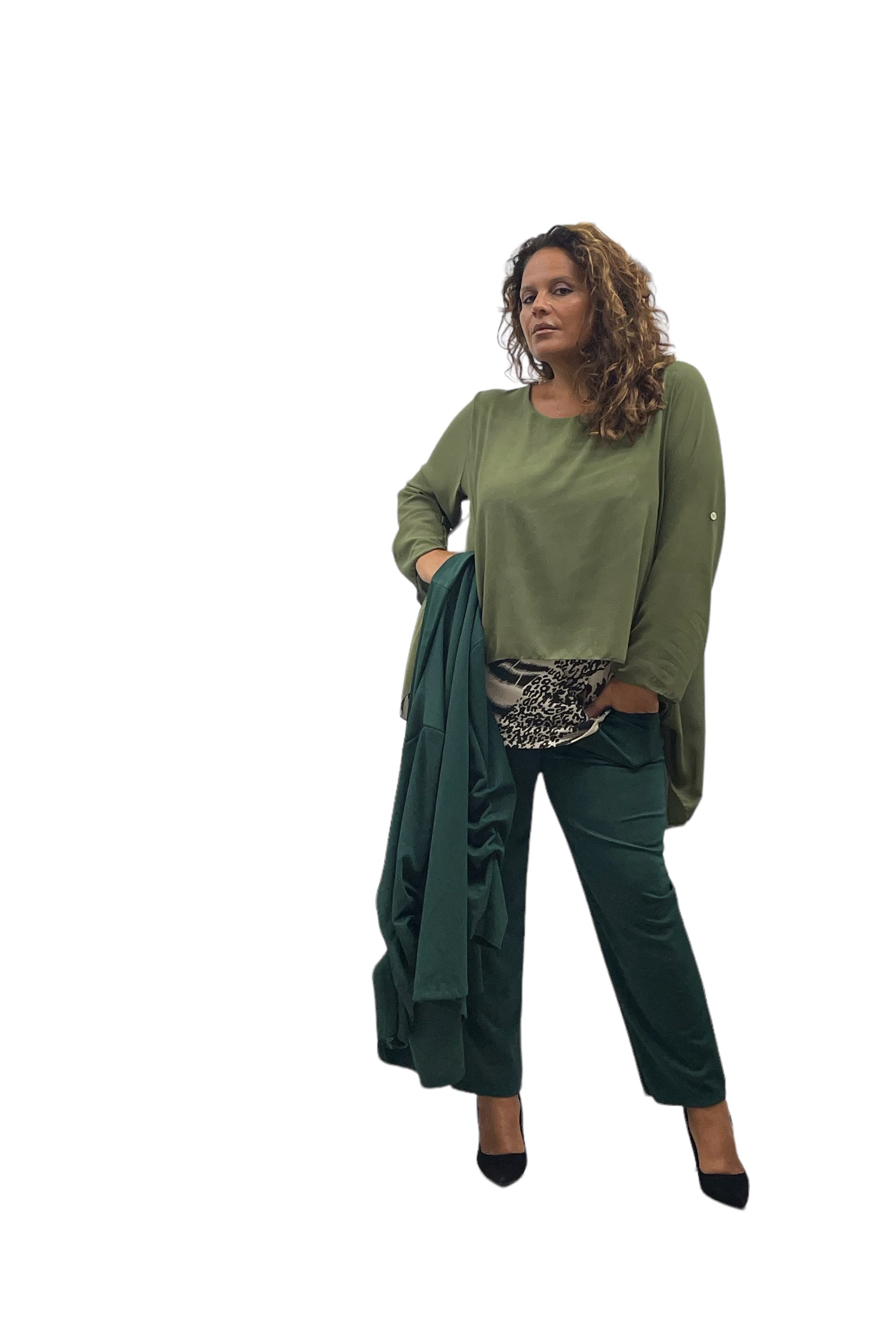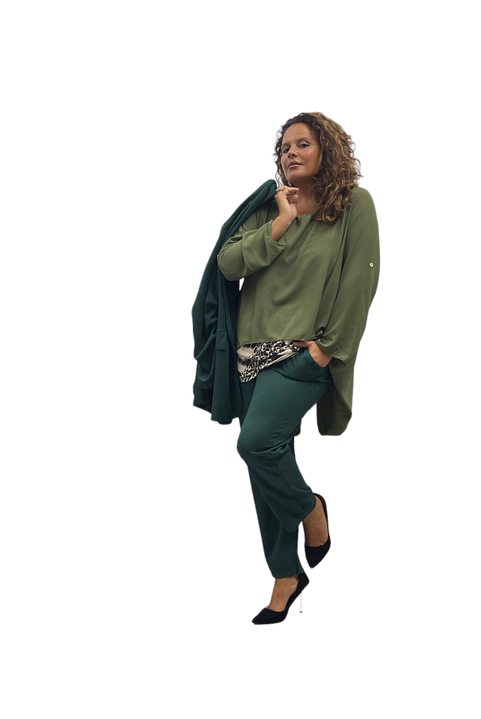 Completo over con manica con arriccio e pantaloni tasca america con elastico in vita