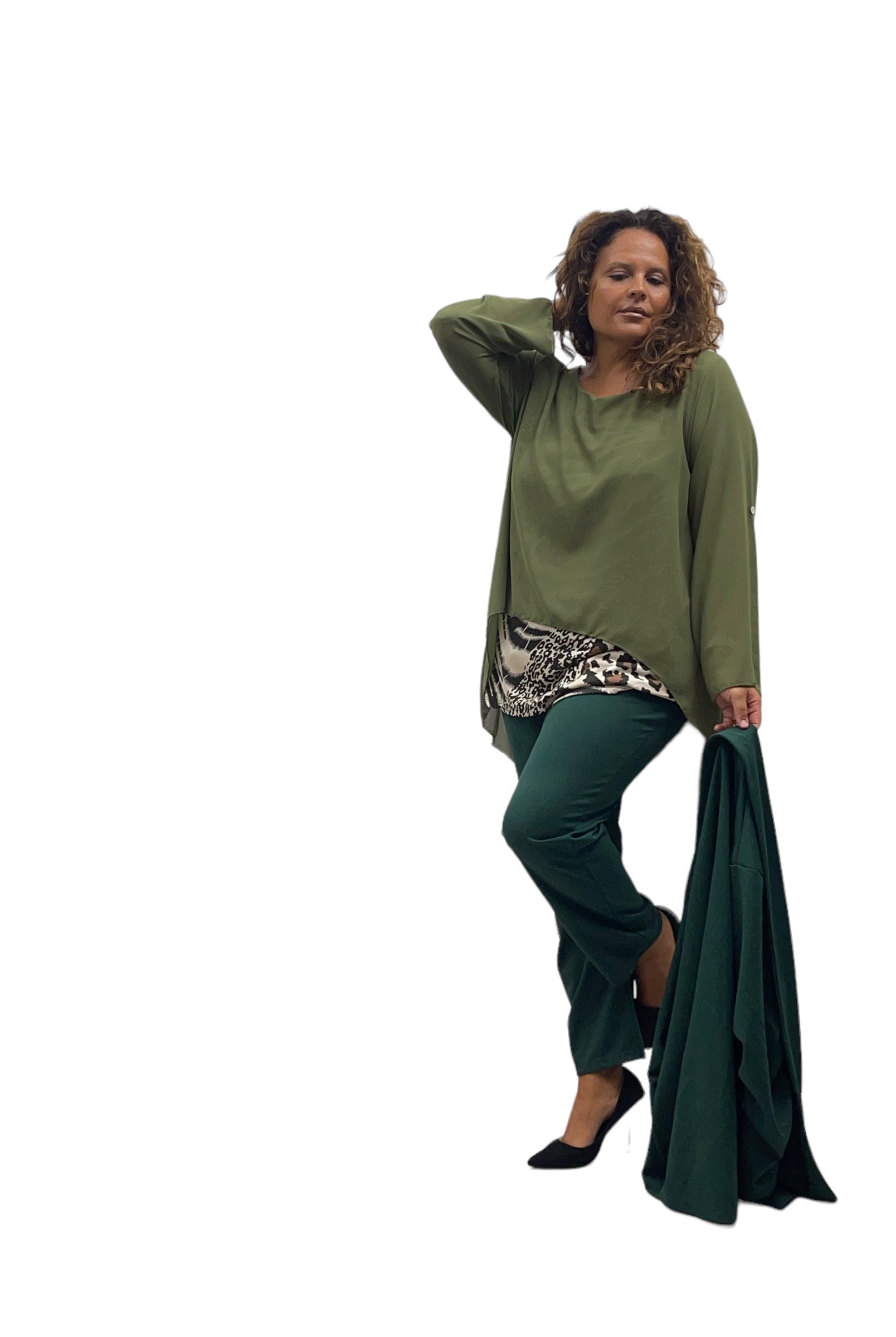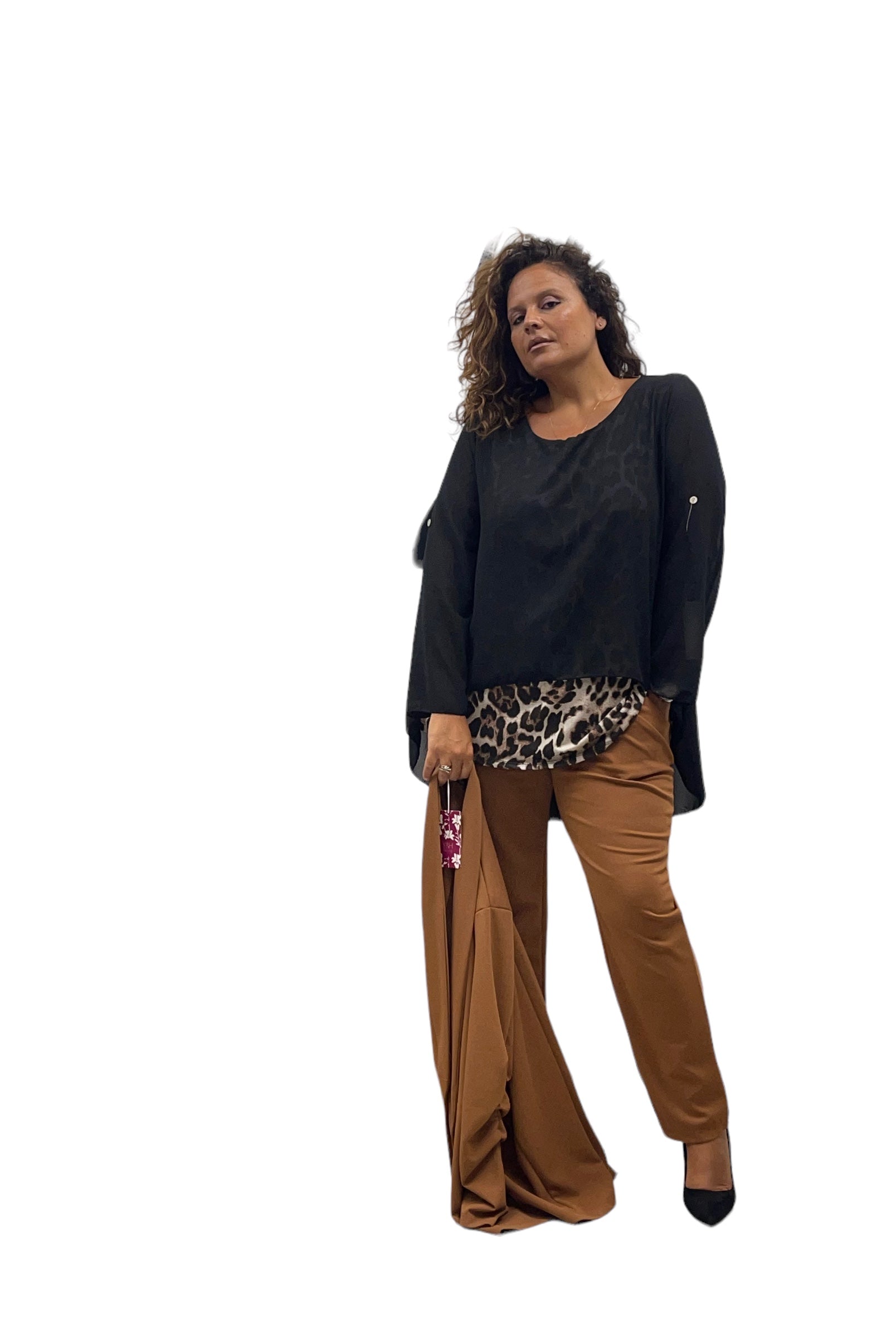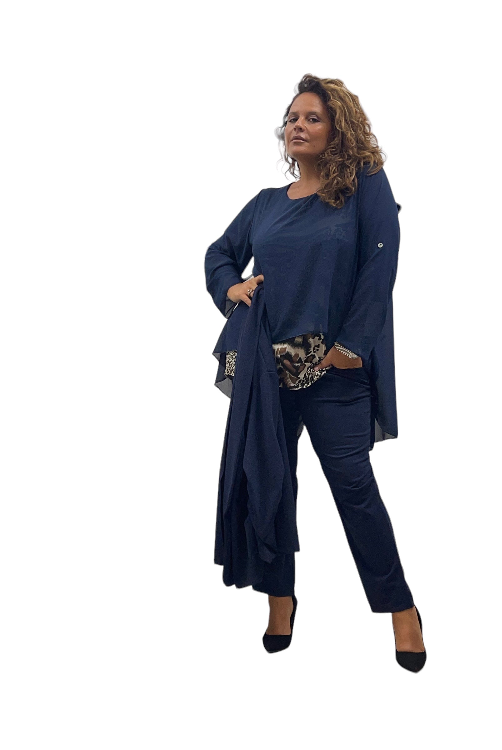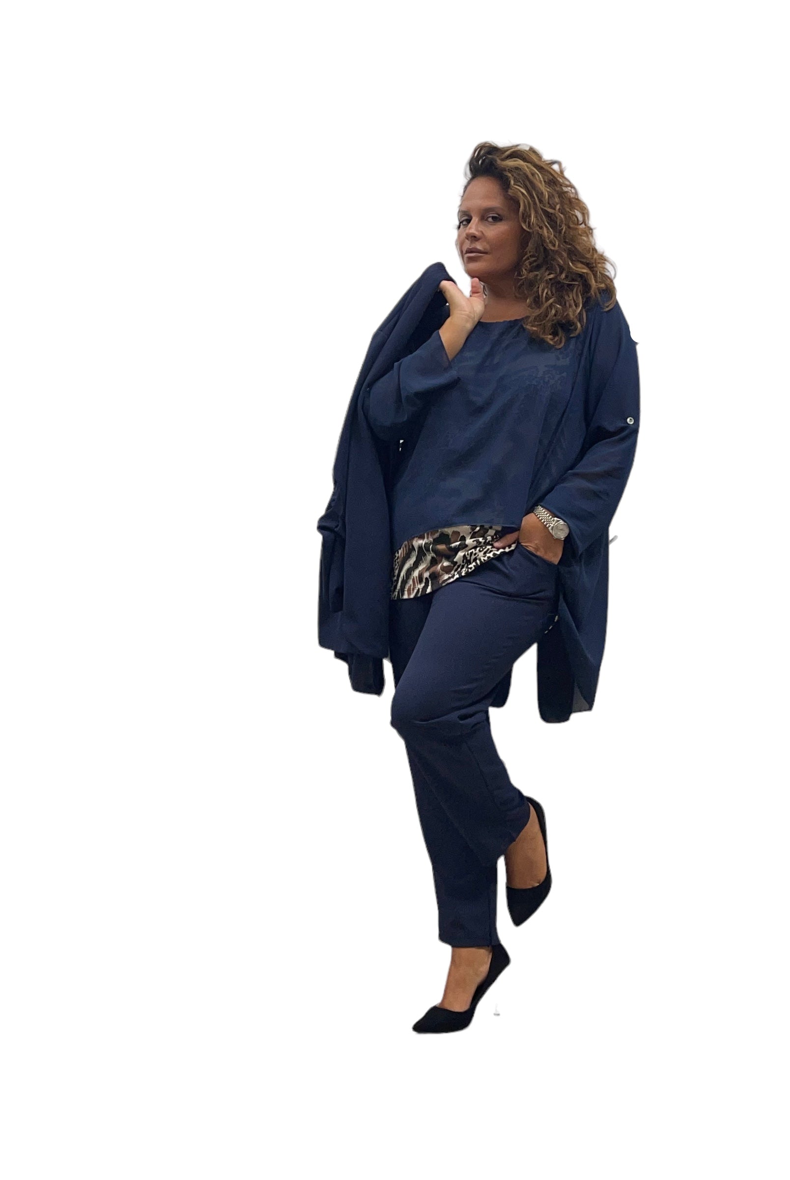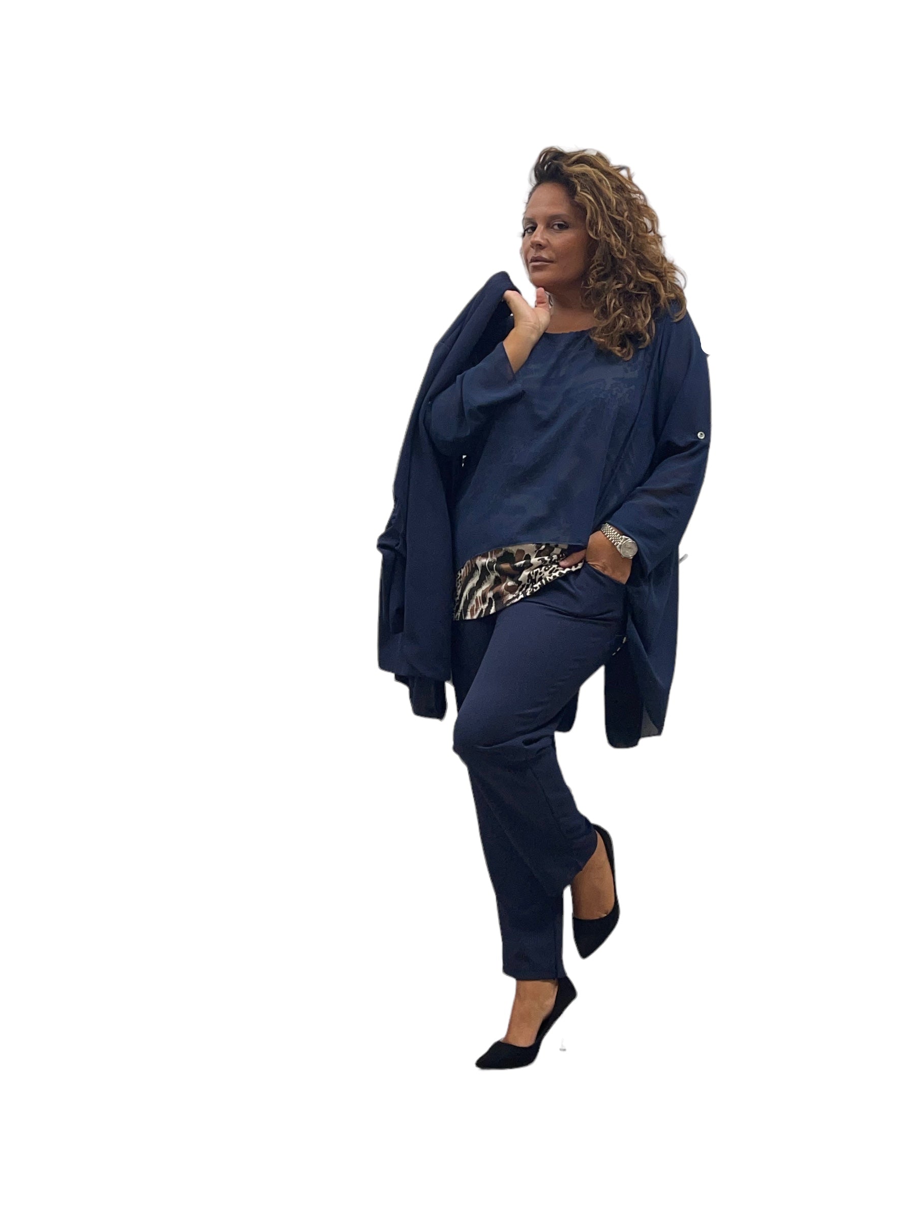 Completo over con manica con arriccio e pantaloni tasca america con elastico in vita