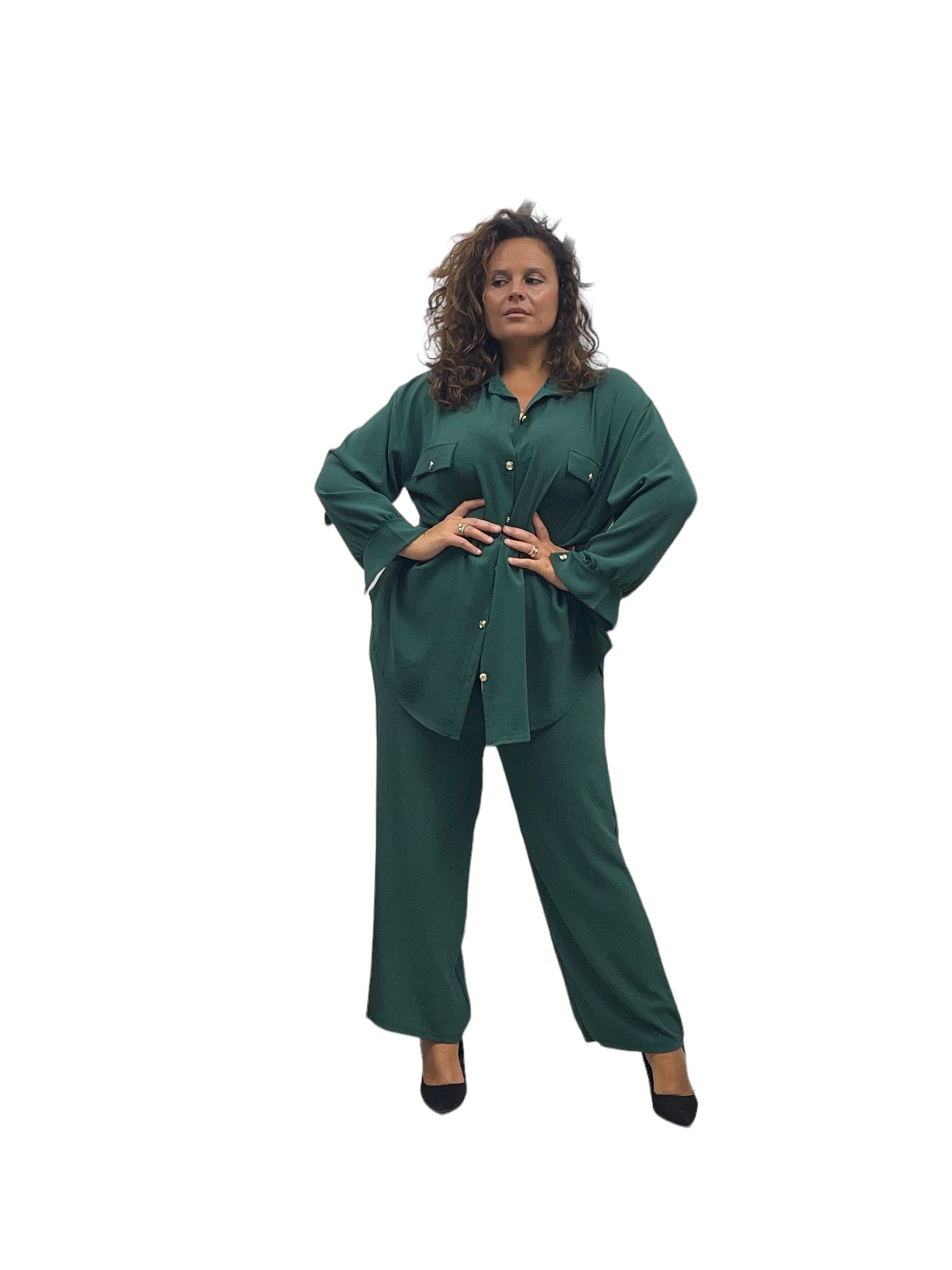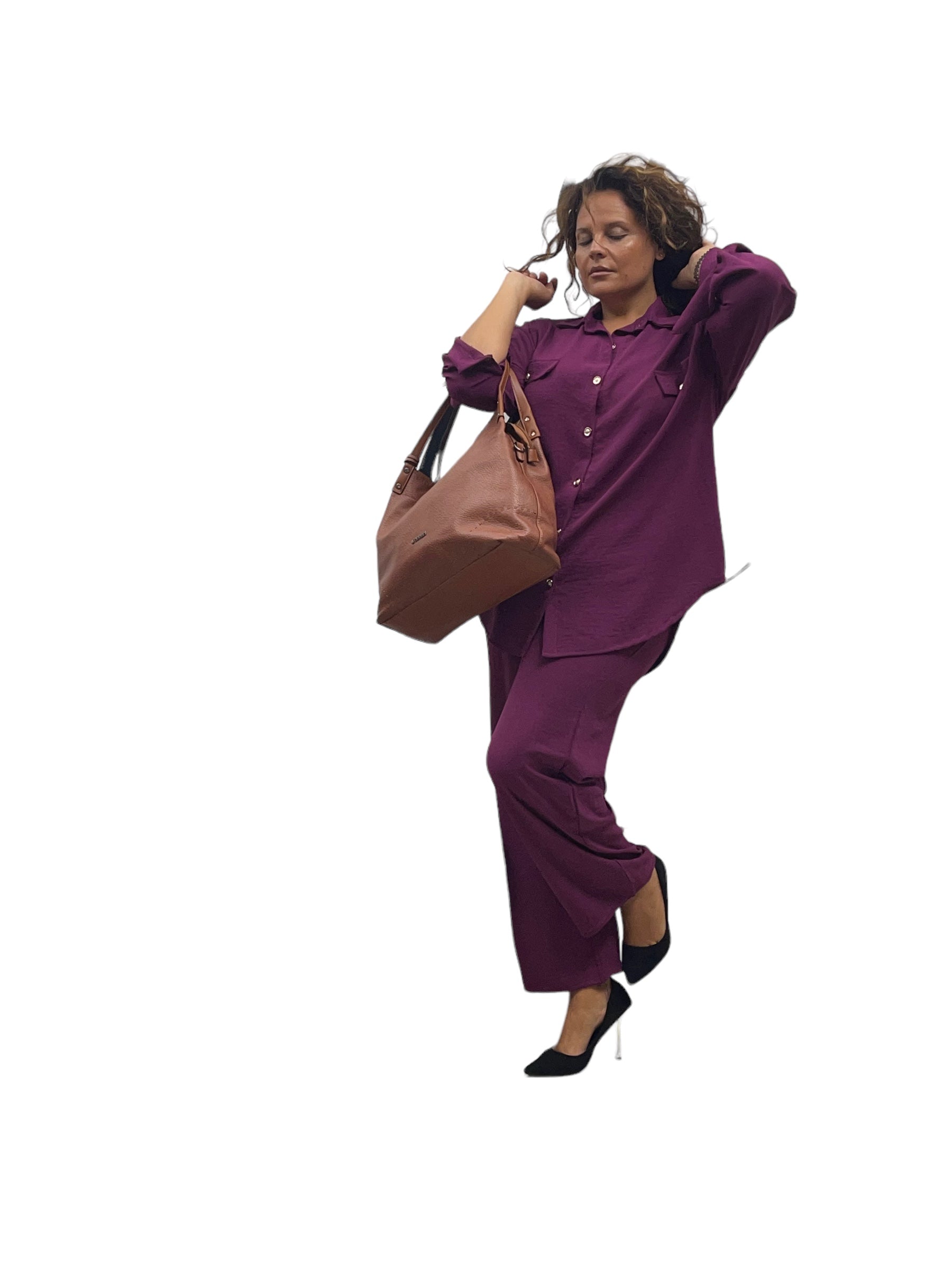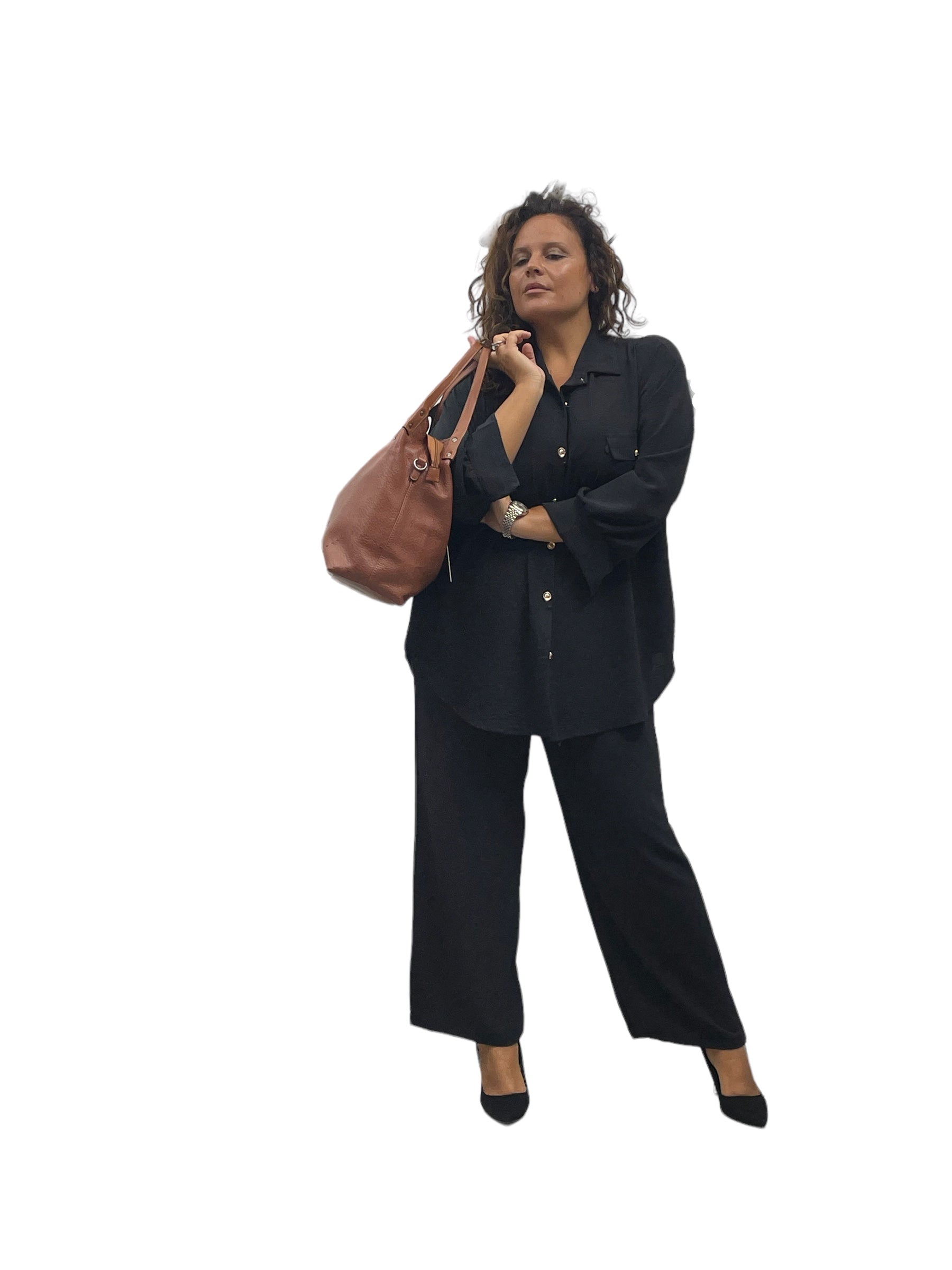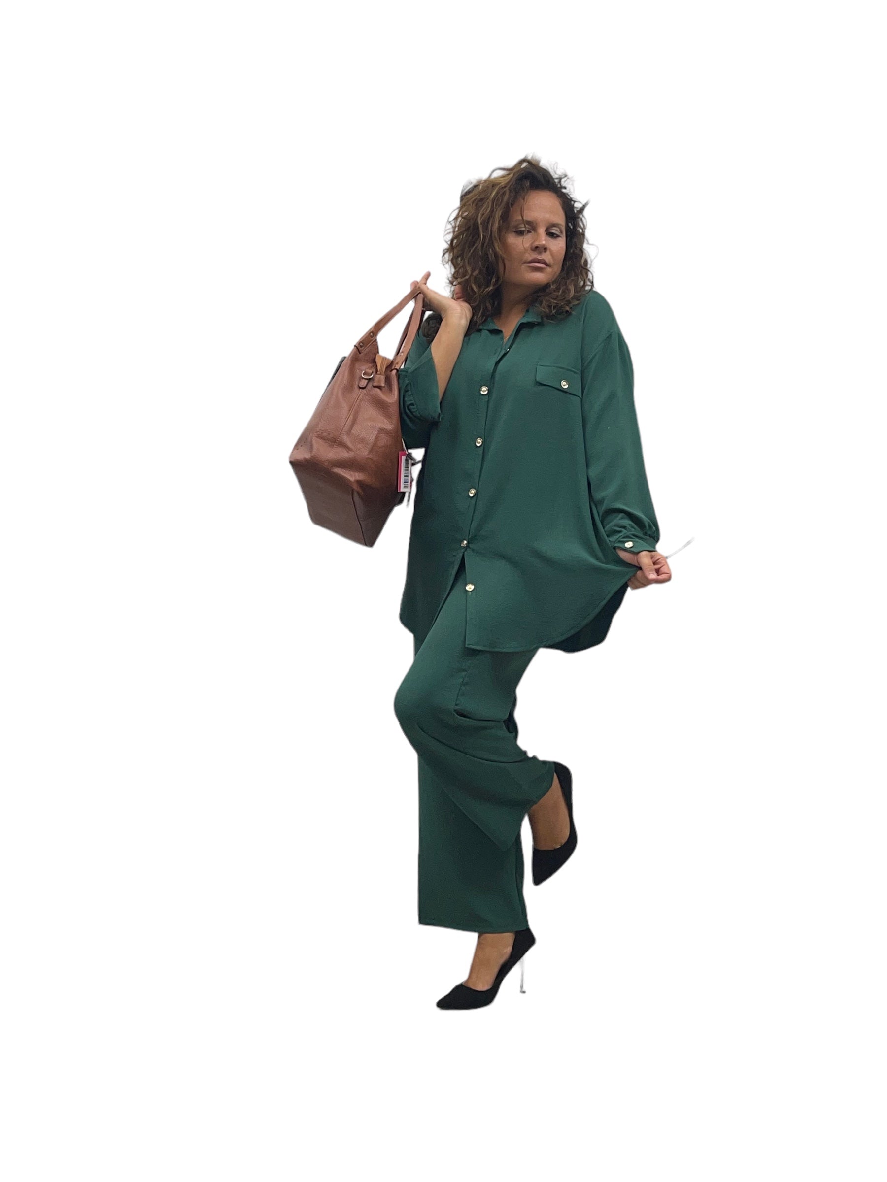 Completo over con camicione e pantaloni palazzo con elastico in vita