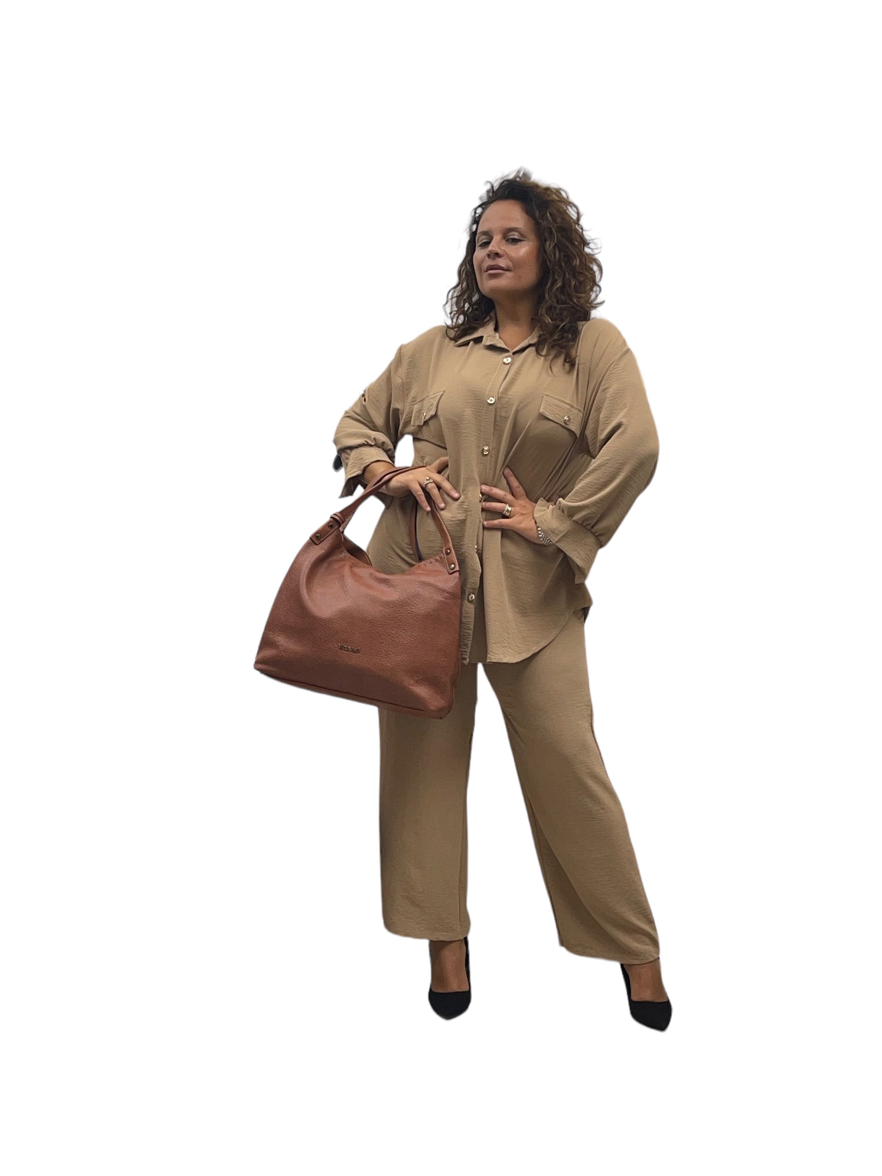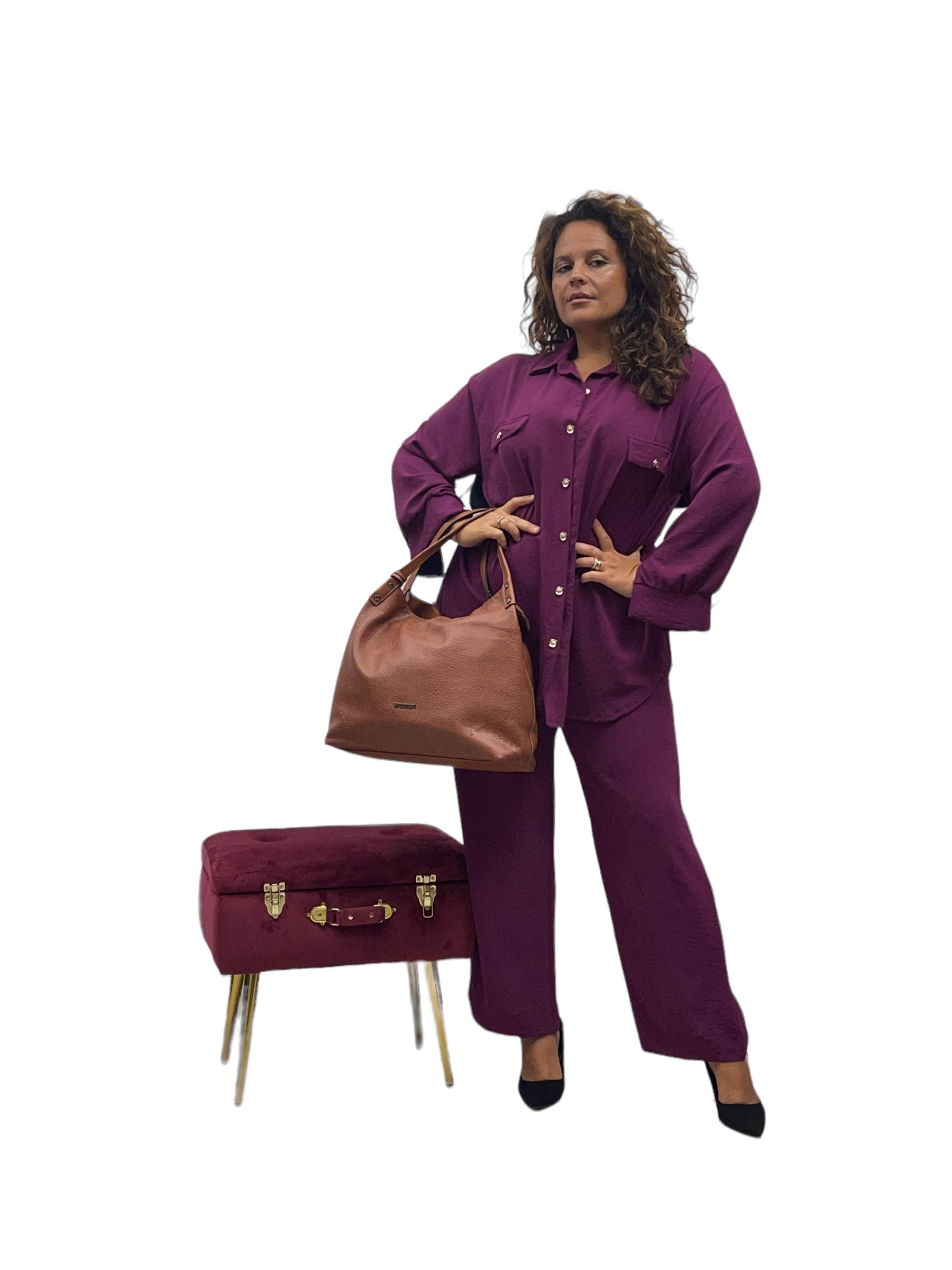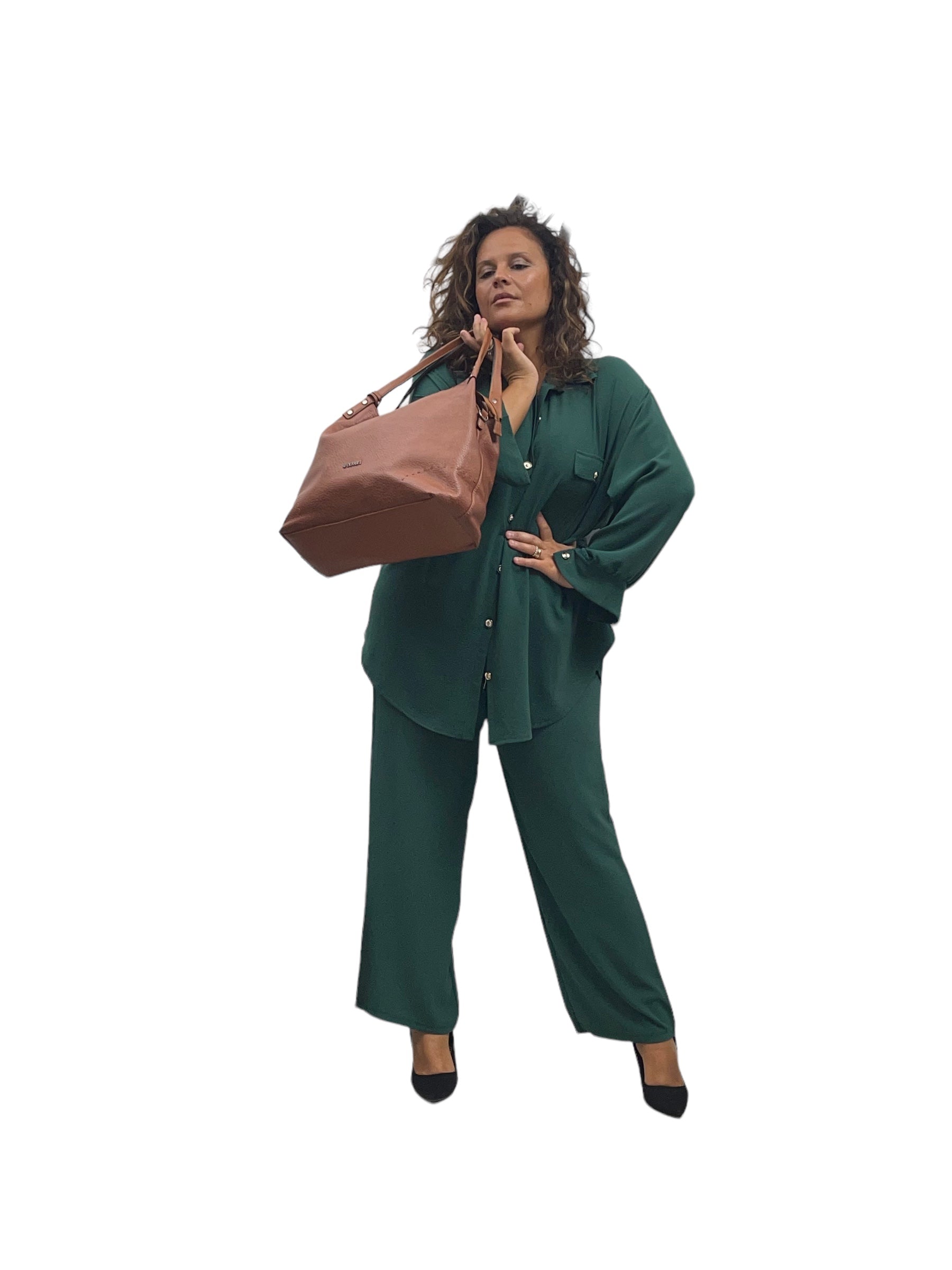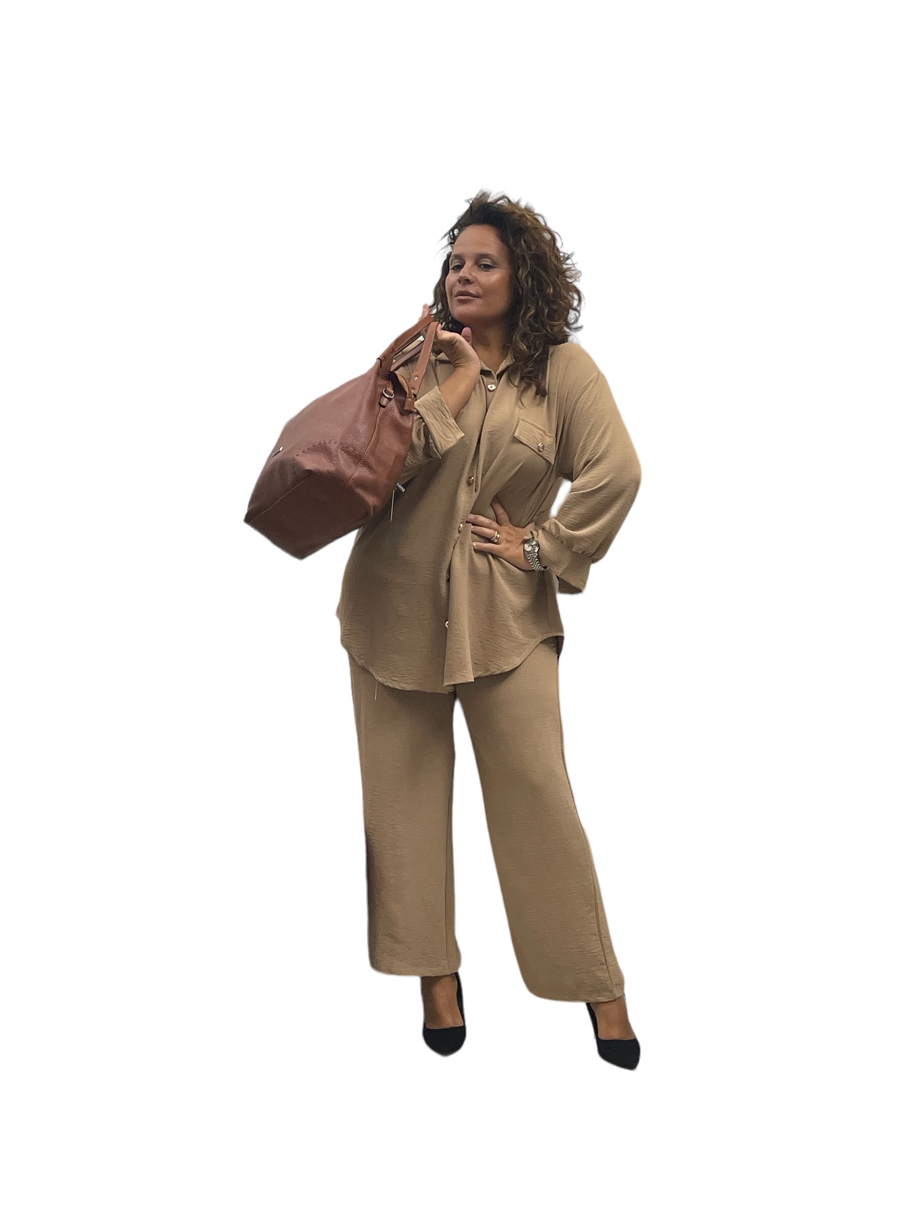 Completo over con camicione e pantaloni palazzo con elastico in vita