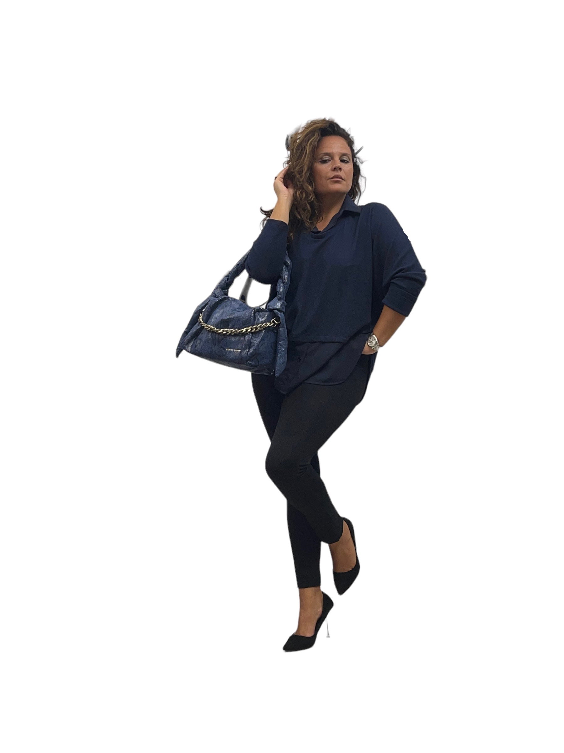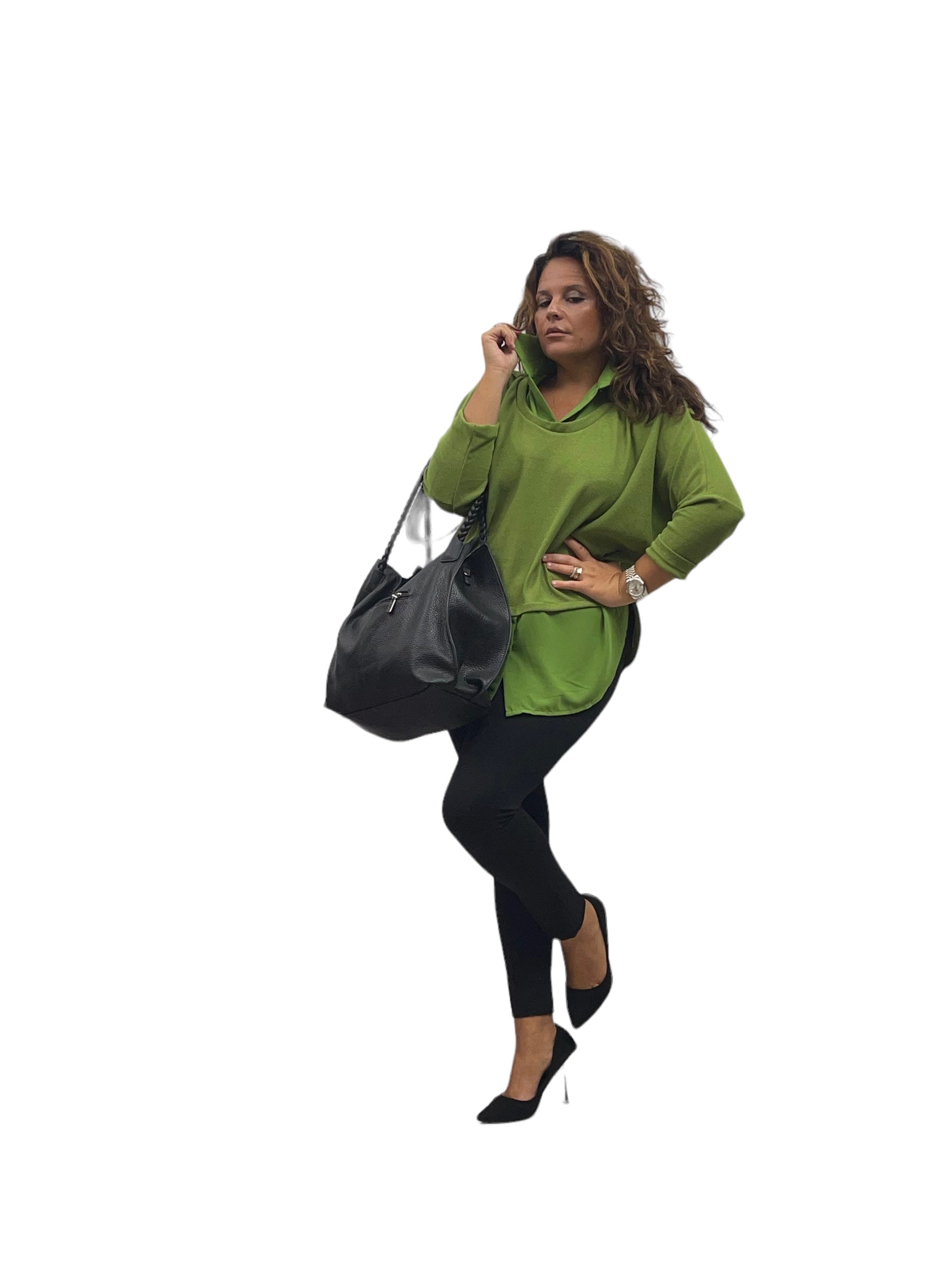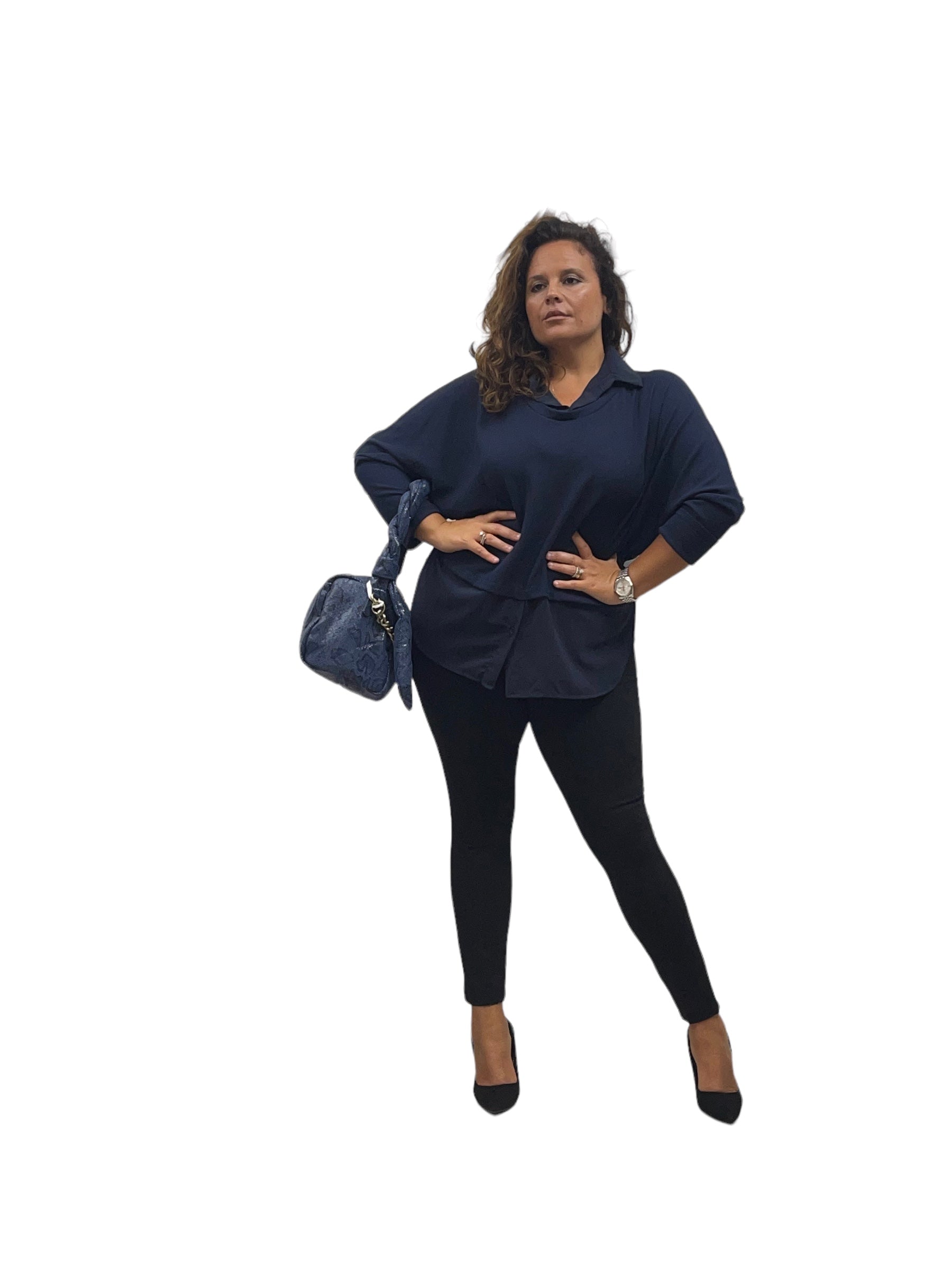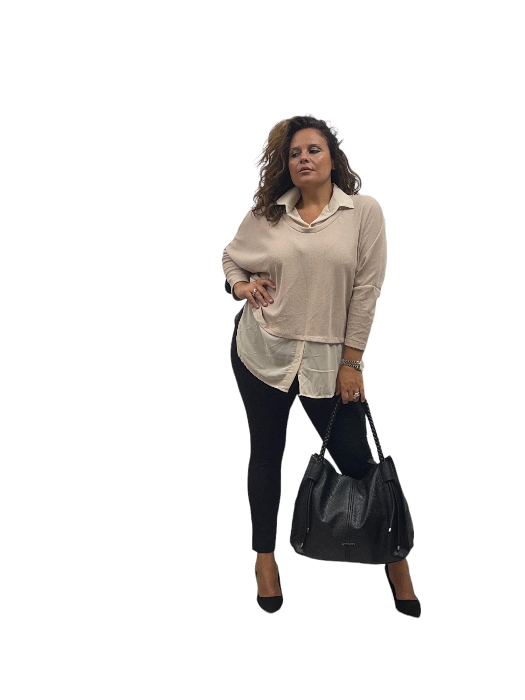 Maglia/twin-set con collo camicia e fascia in georgette