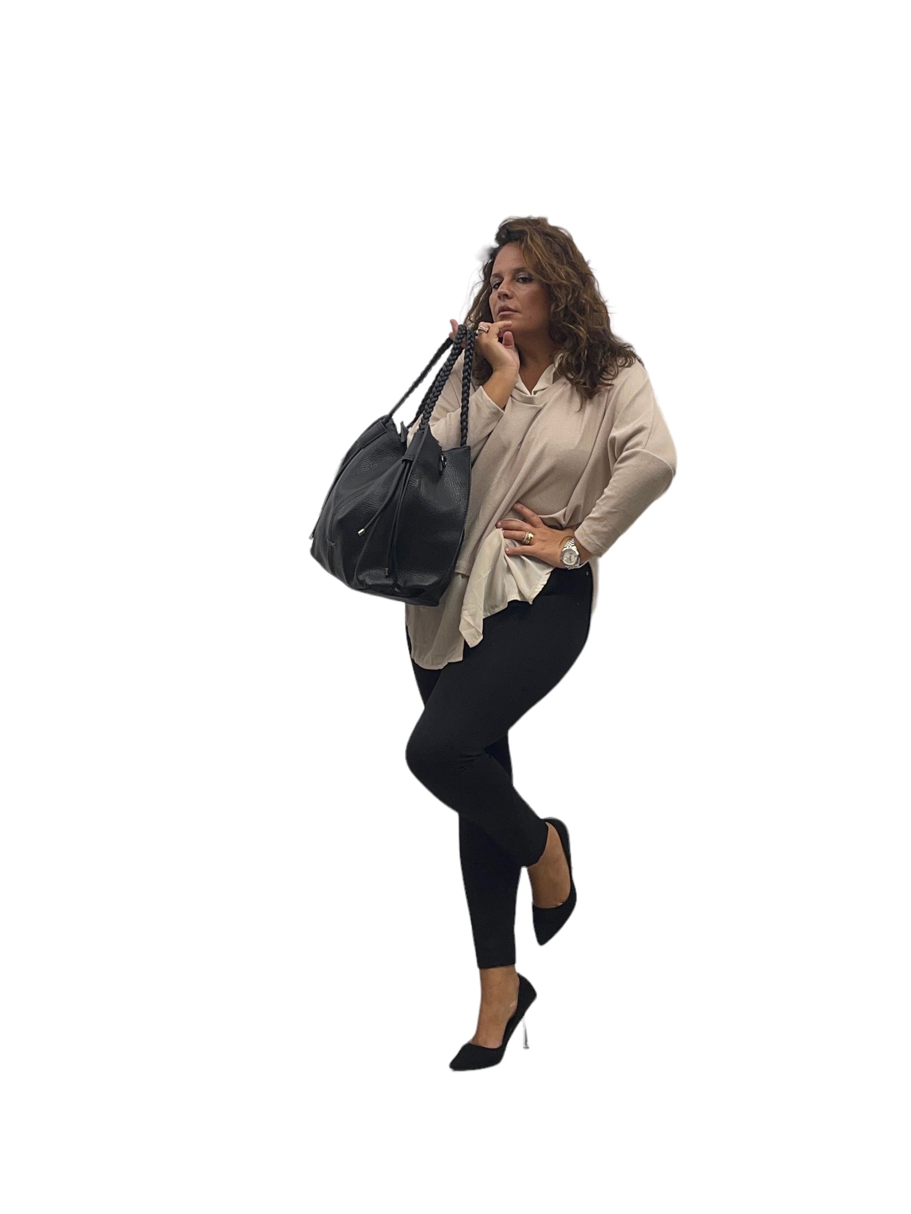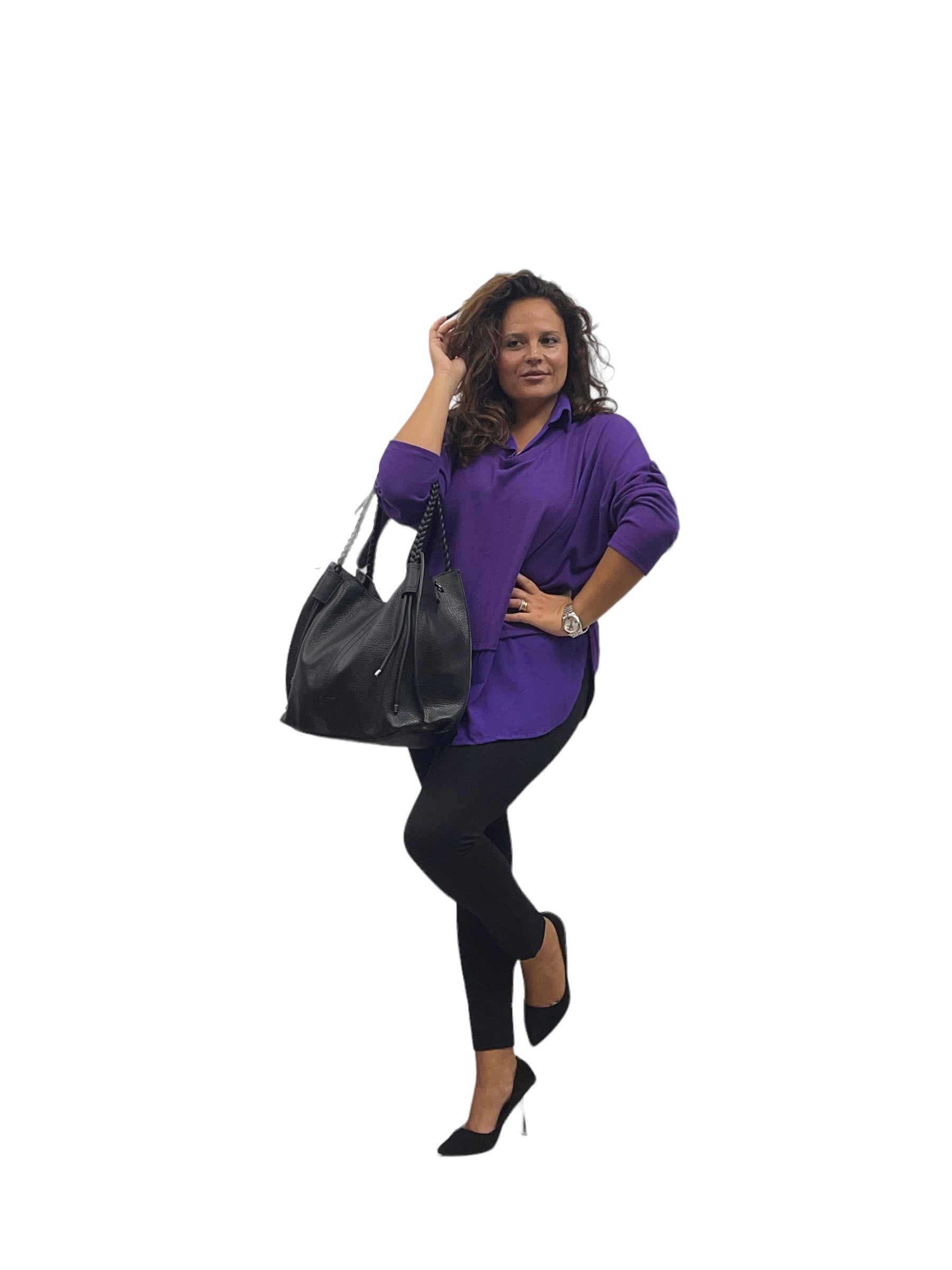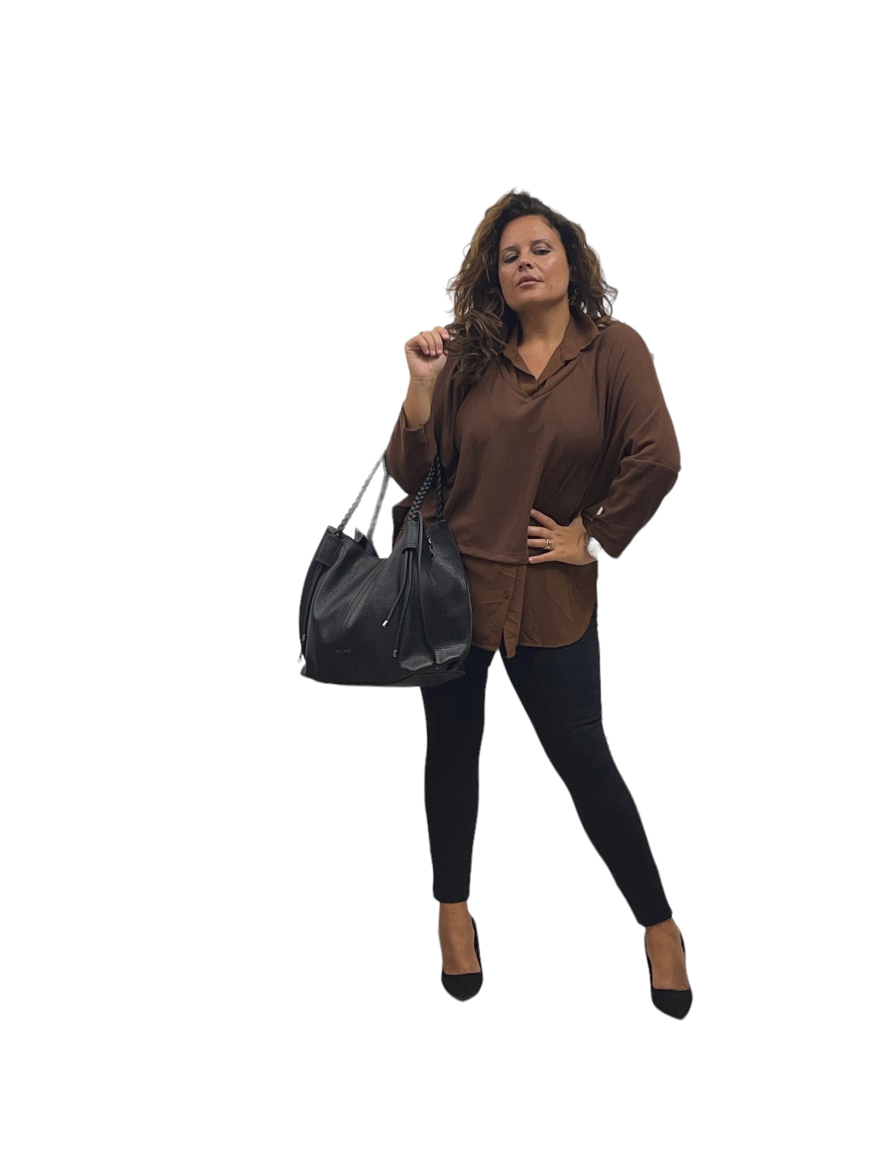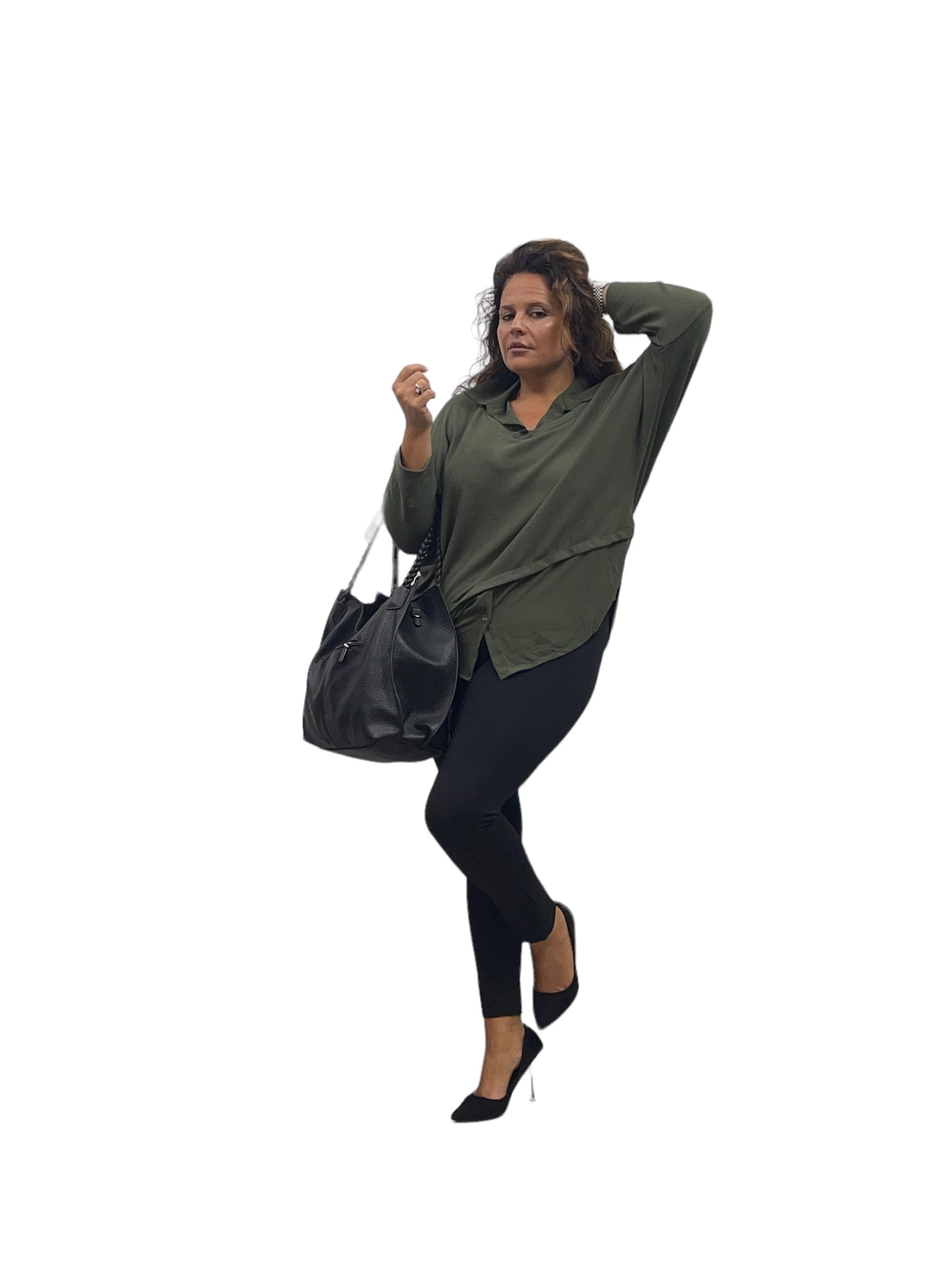 Maglia/twin-set con collo camicia e fascia in georgette