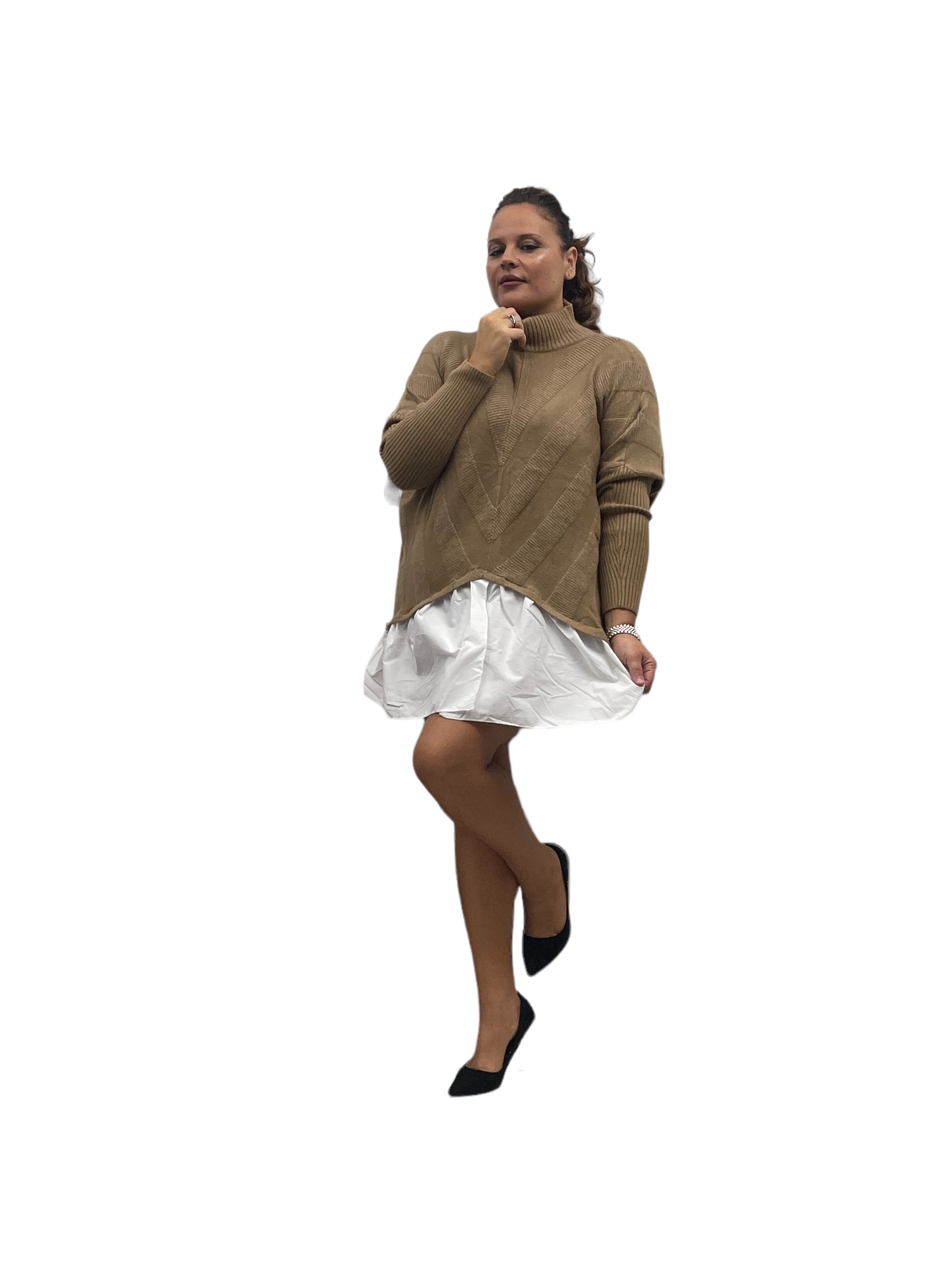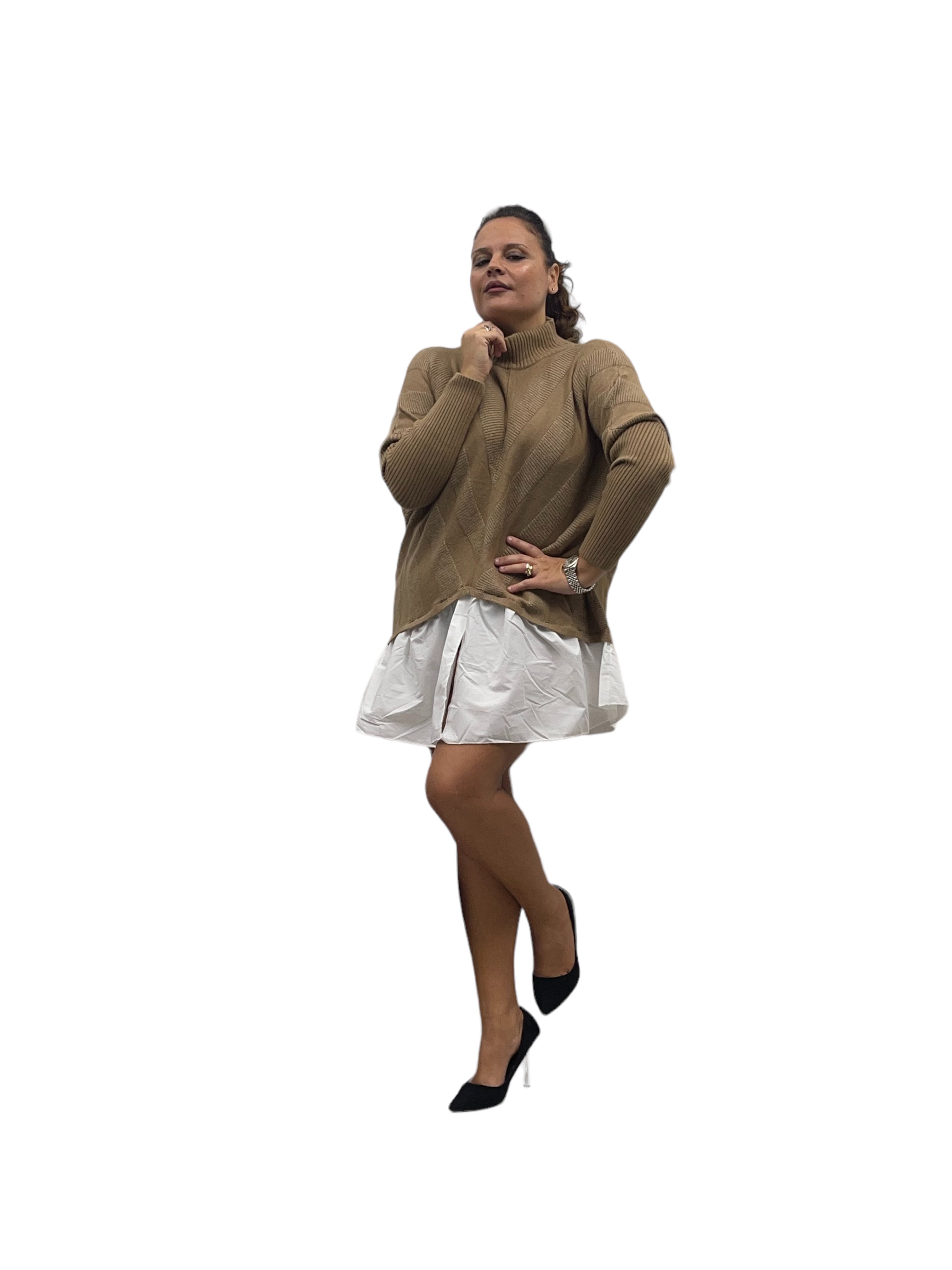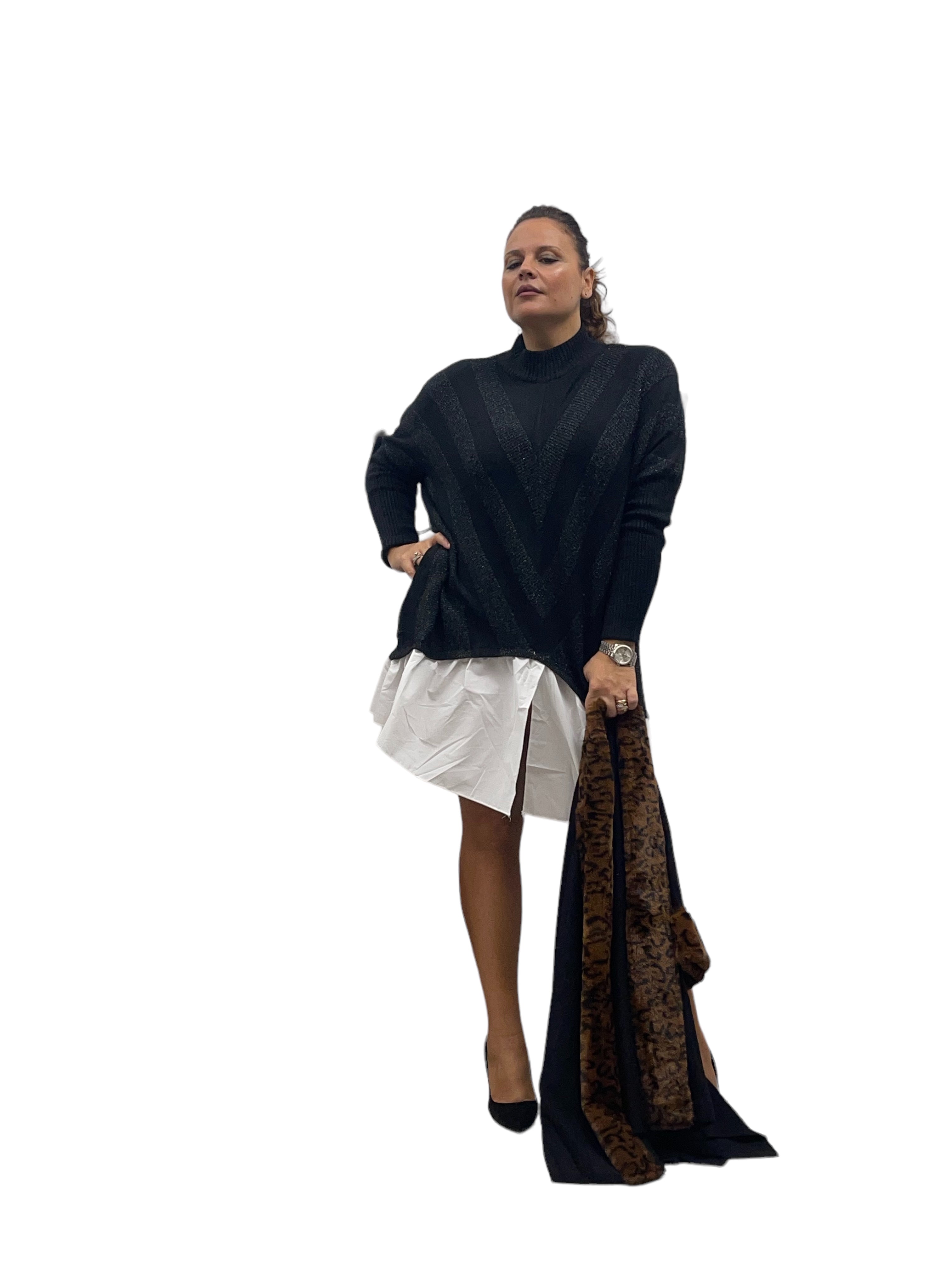Magliettone/abitino  laminato mezzo collo con filo laminato e fascia in cotone effetto camicia