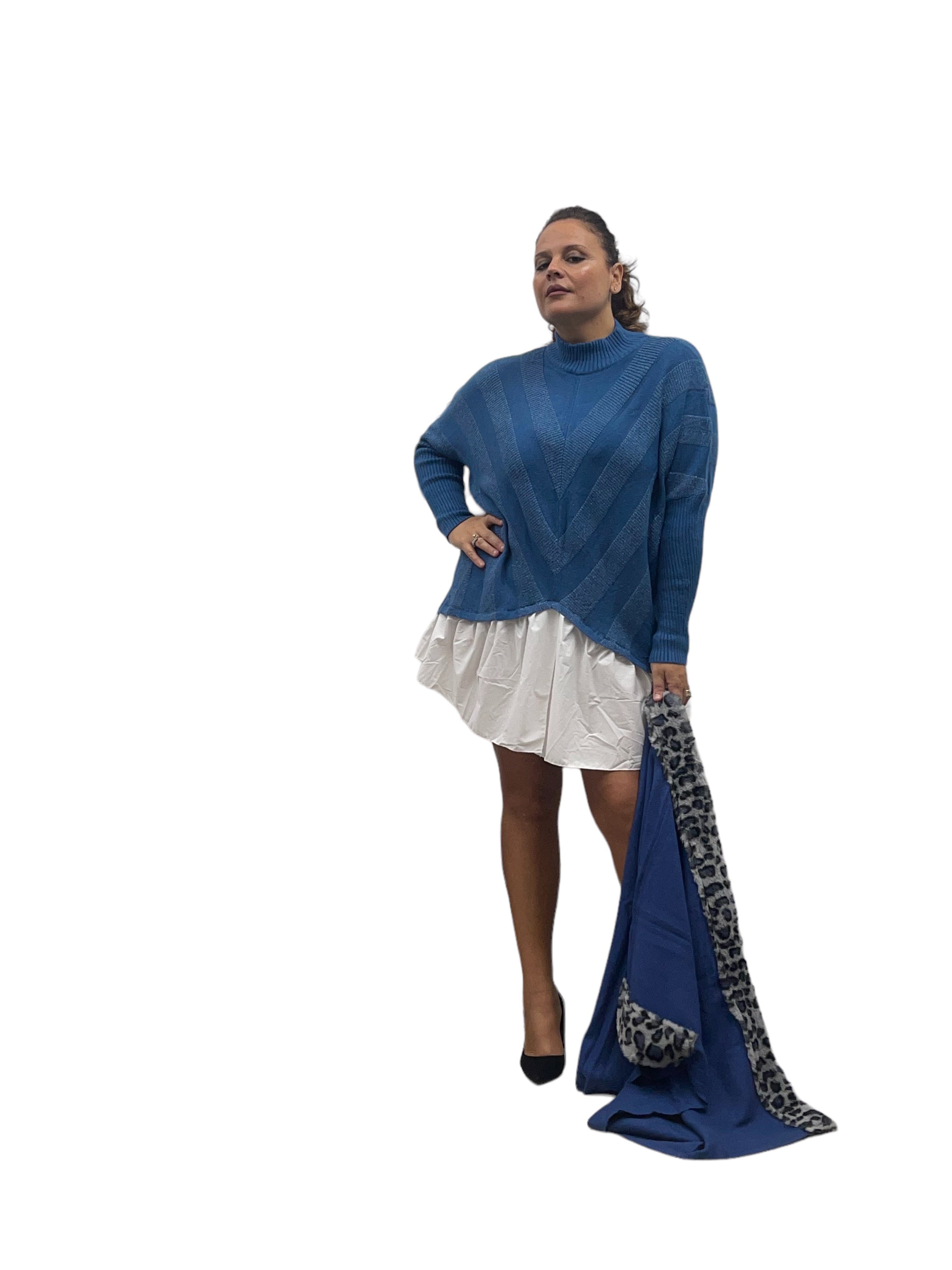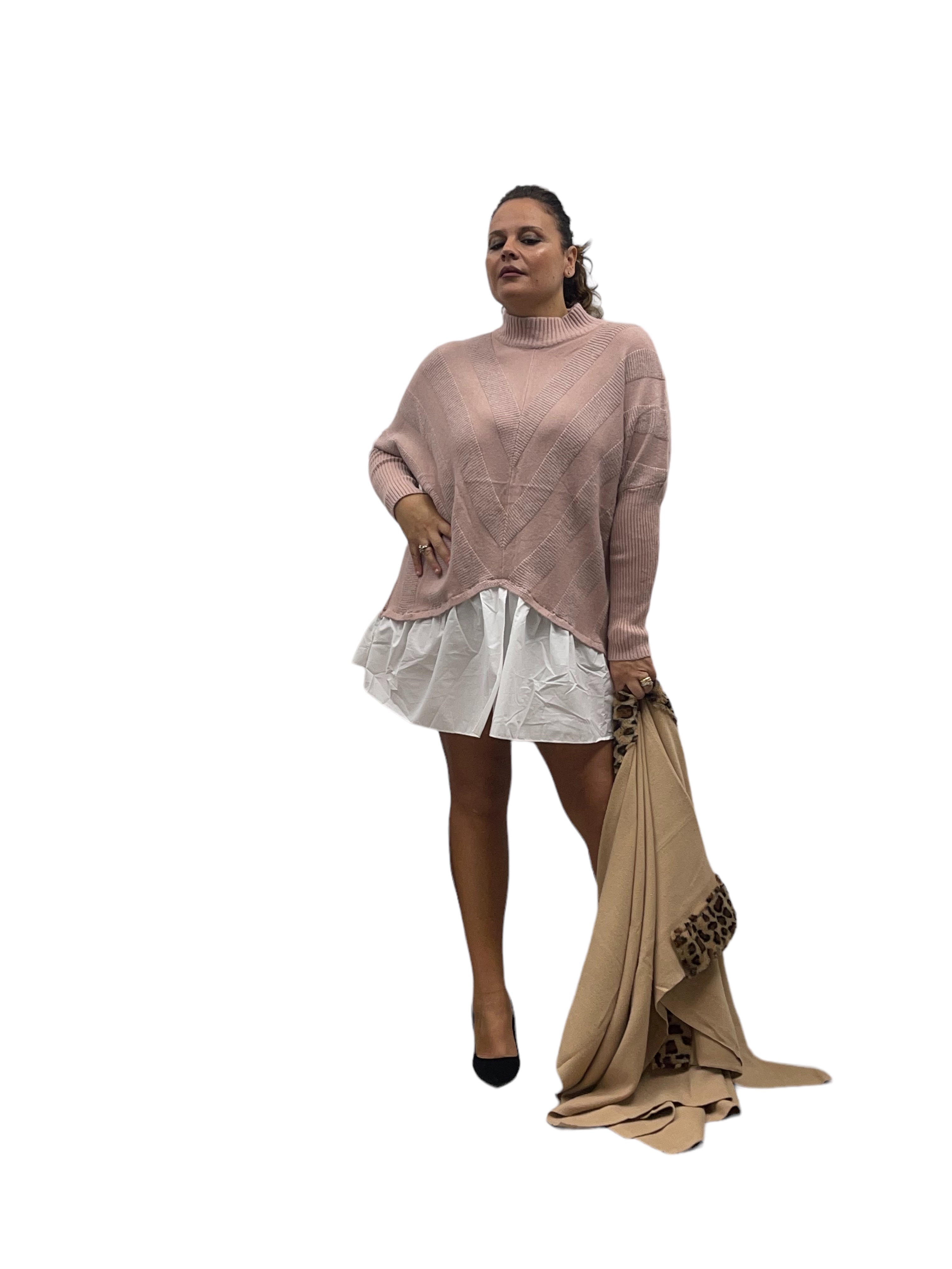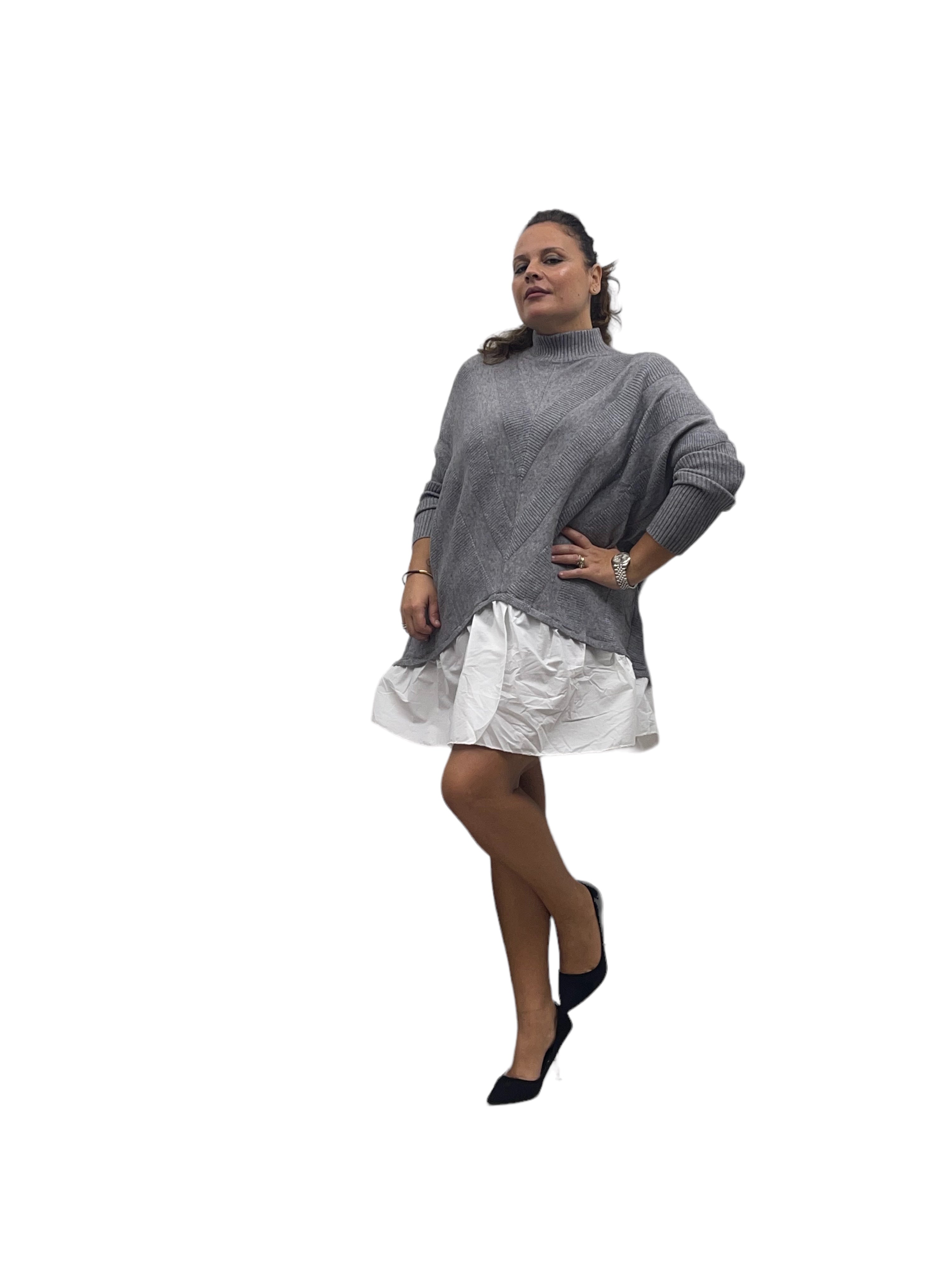 Magliettone/abitino  laminato mezzo collo con filo laminato e fascia in cotone effetto camicia