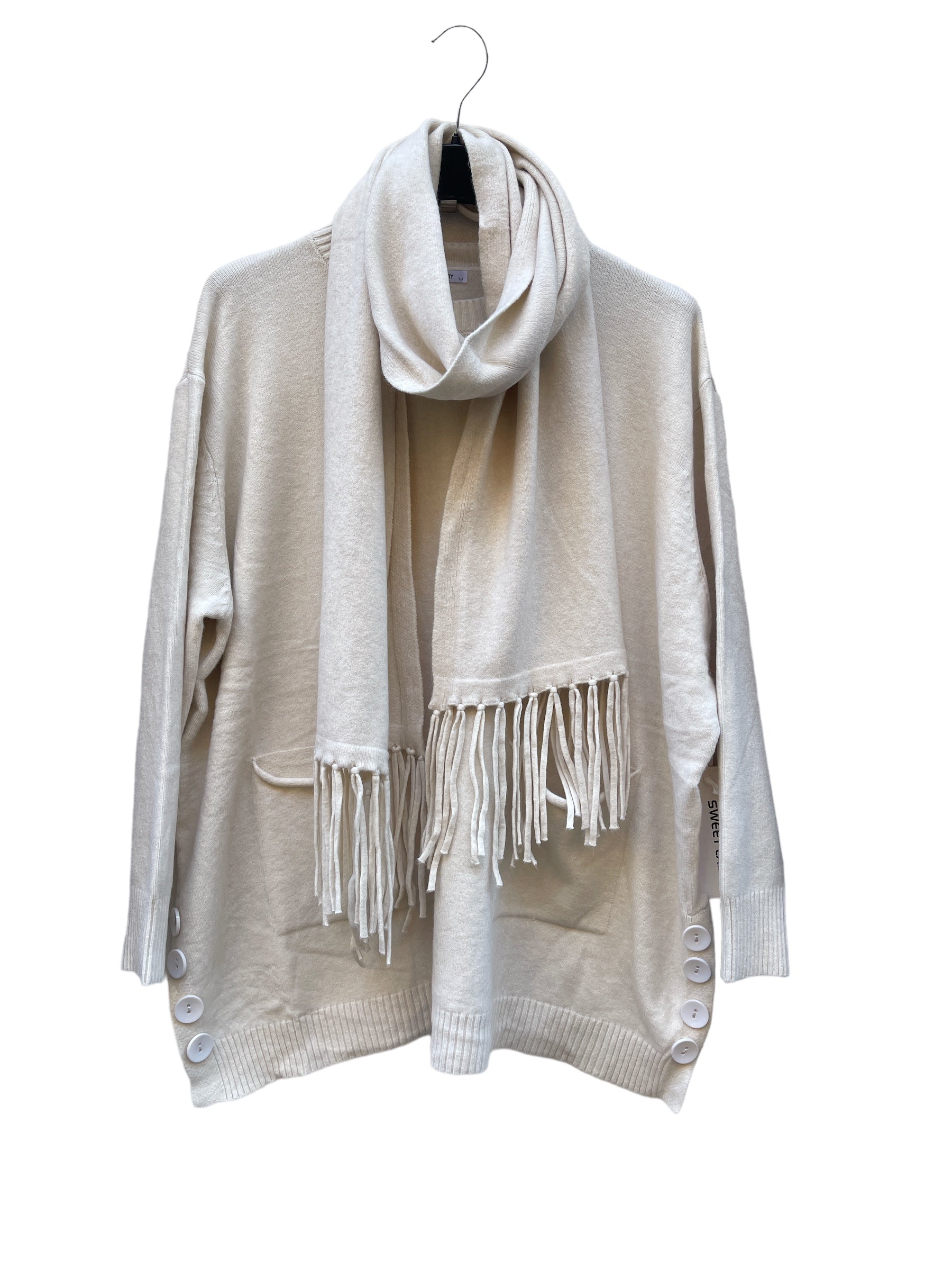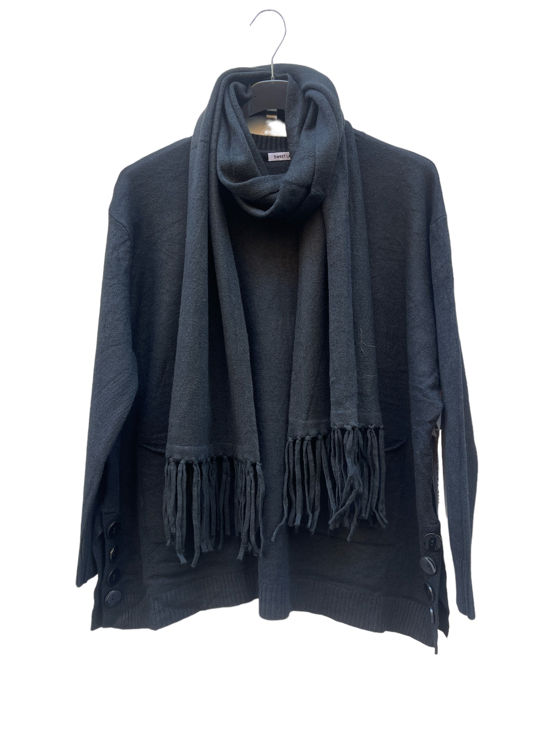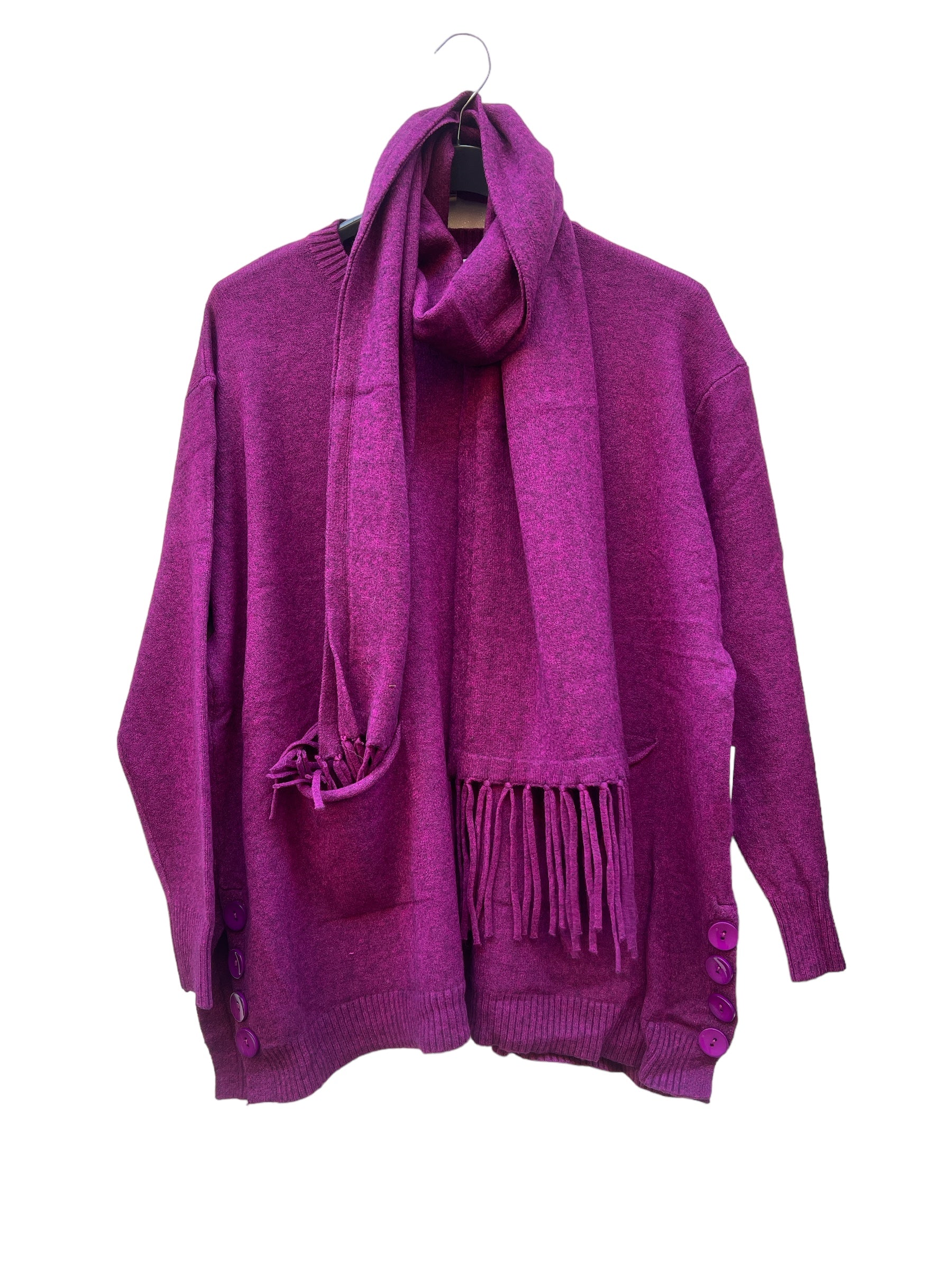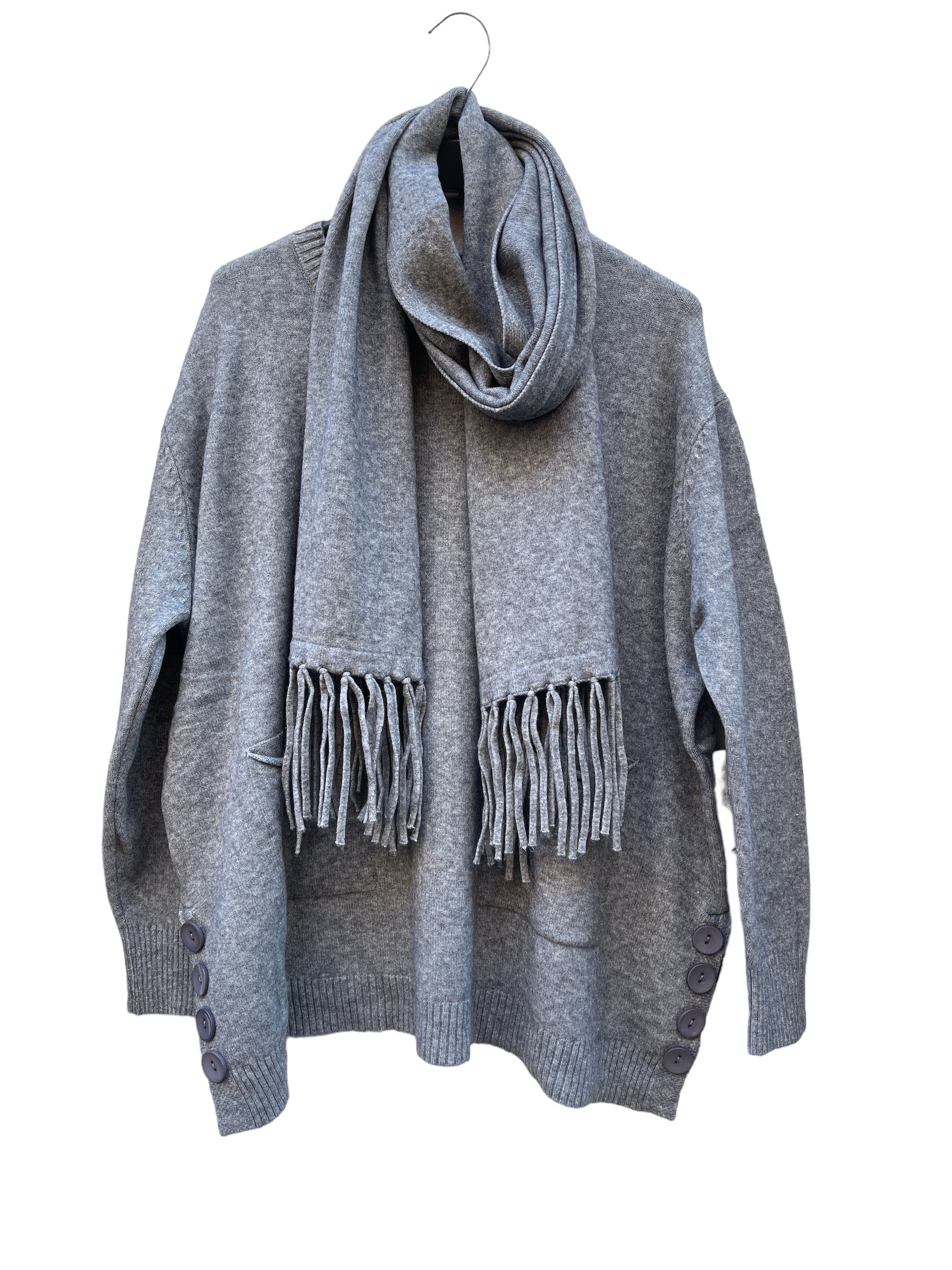 Magliettone over con taschini,sciarpa e bottoni laterali