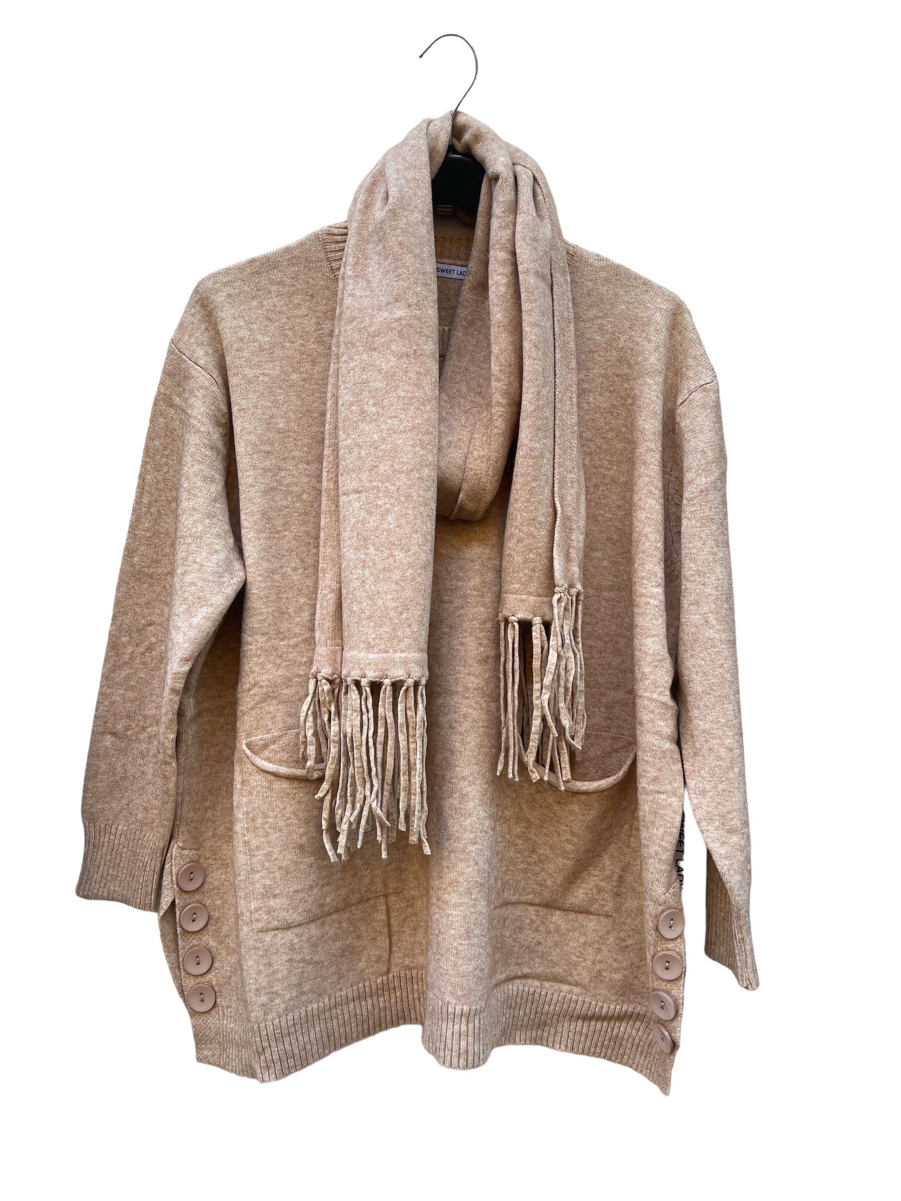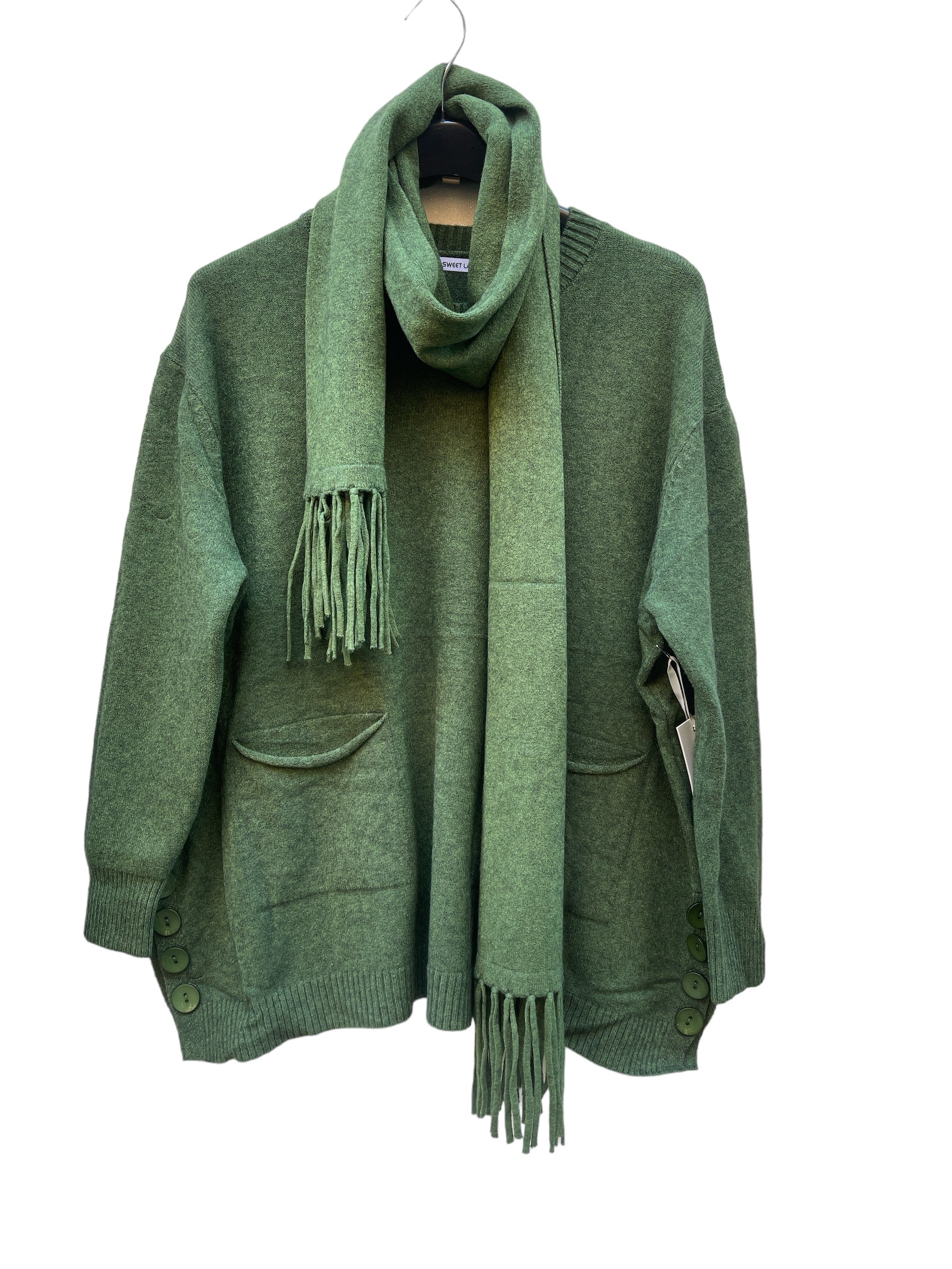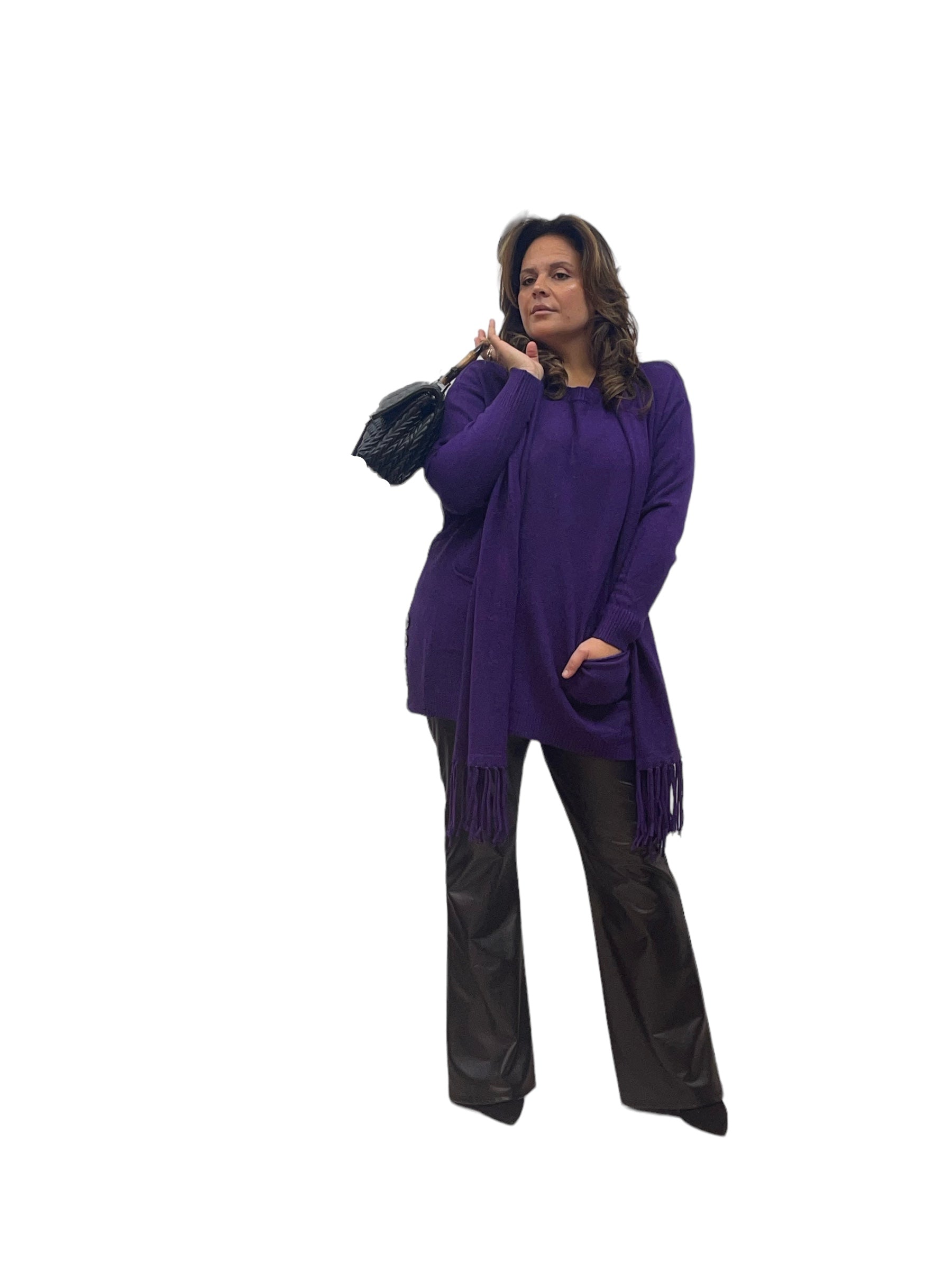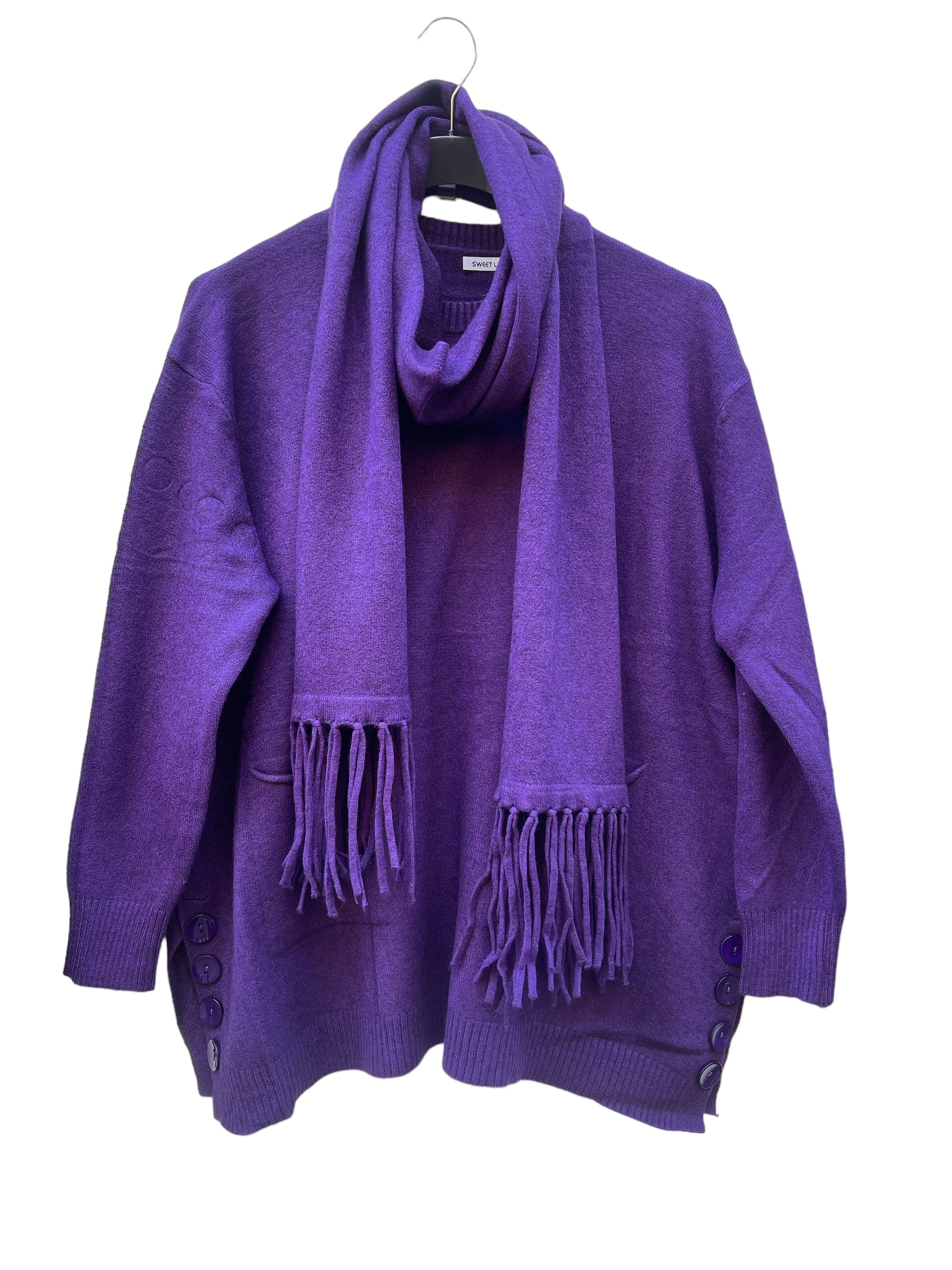 Magliettone over con taschini,sciarpa e bottoni laterali