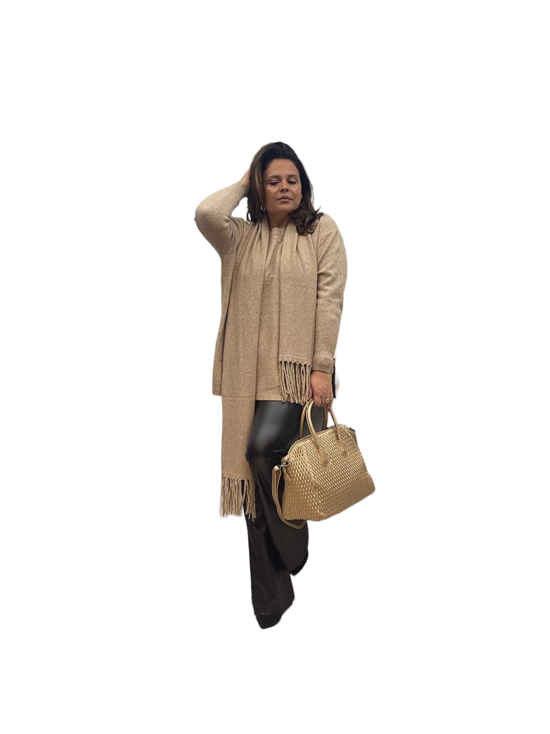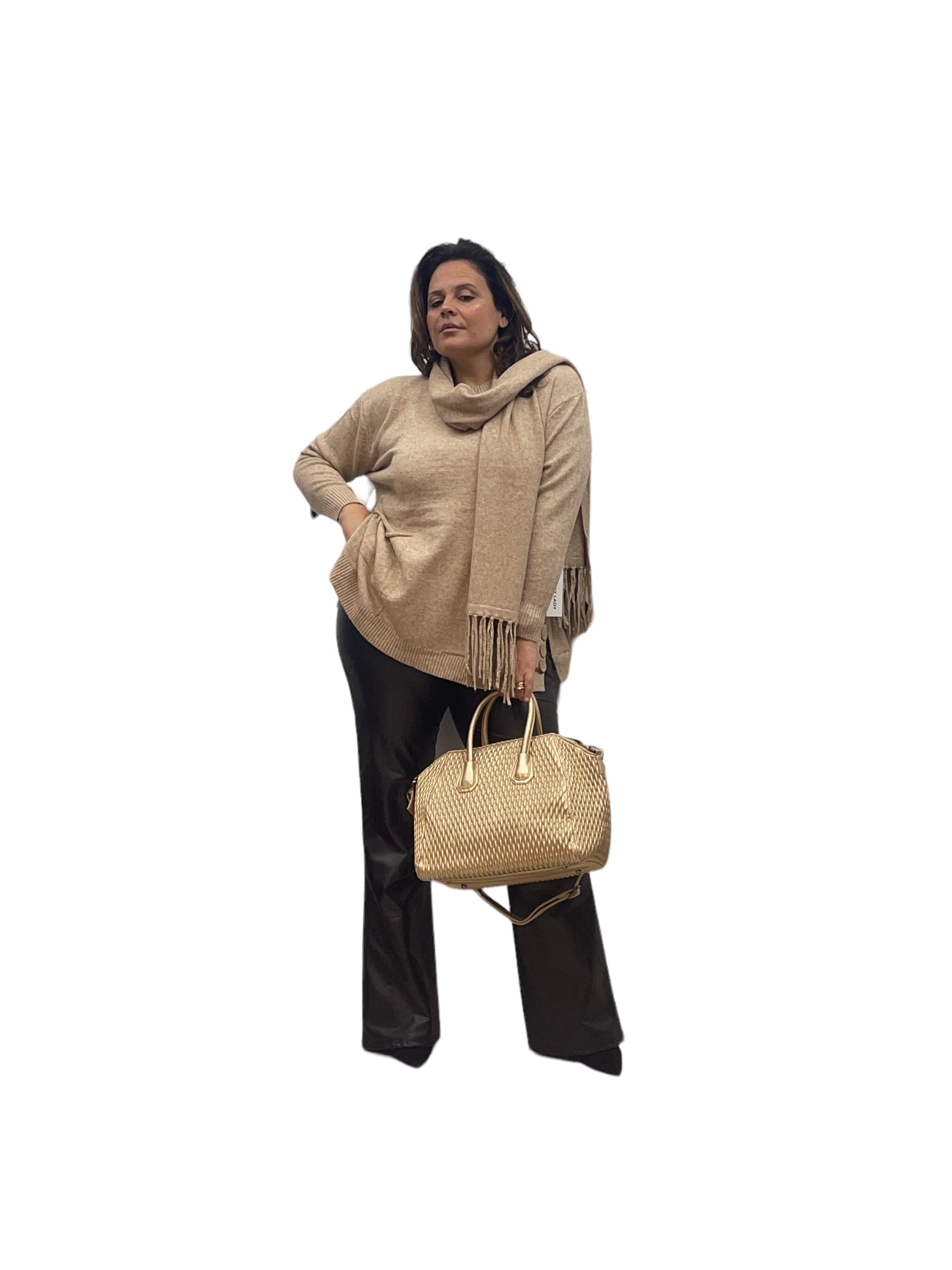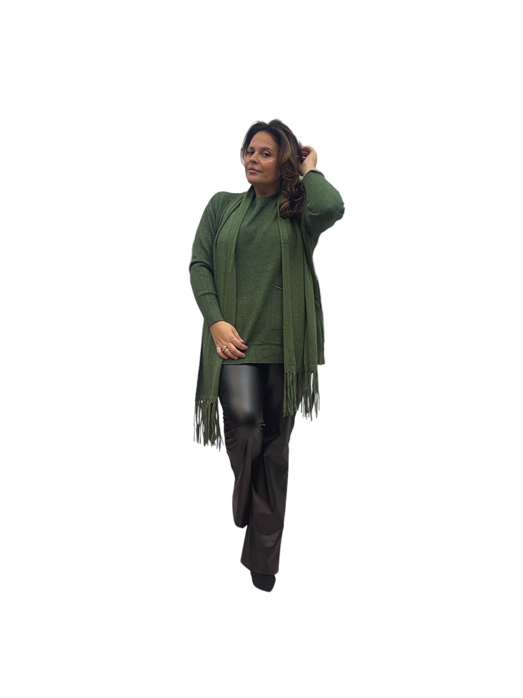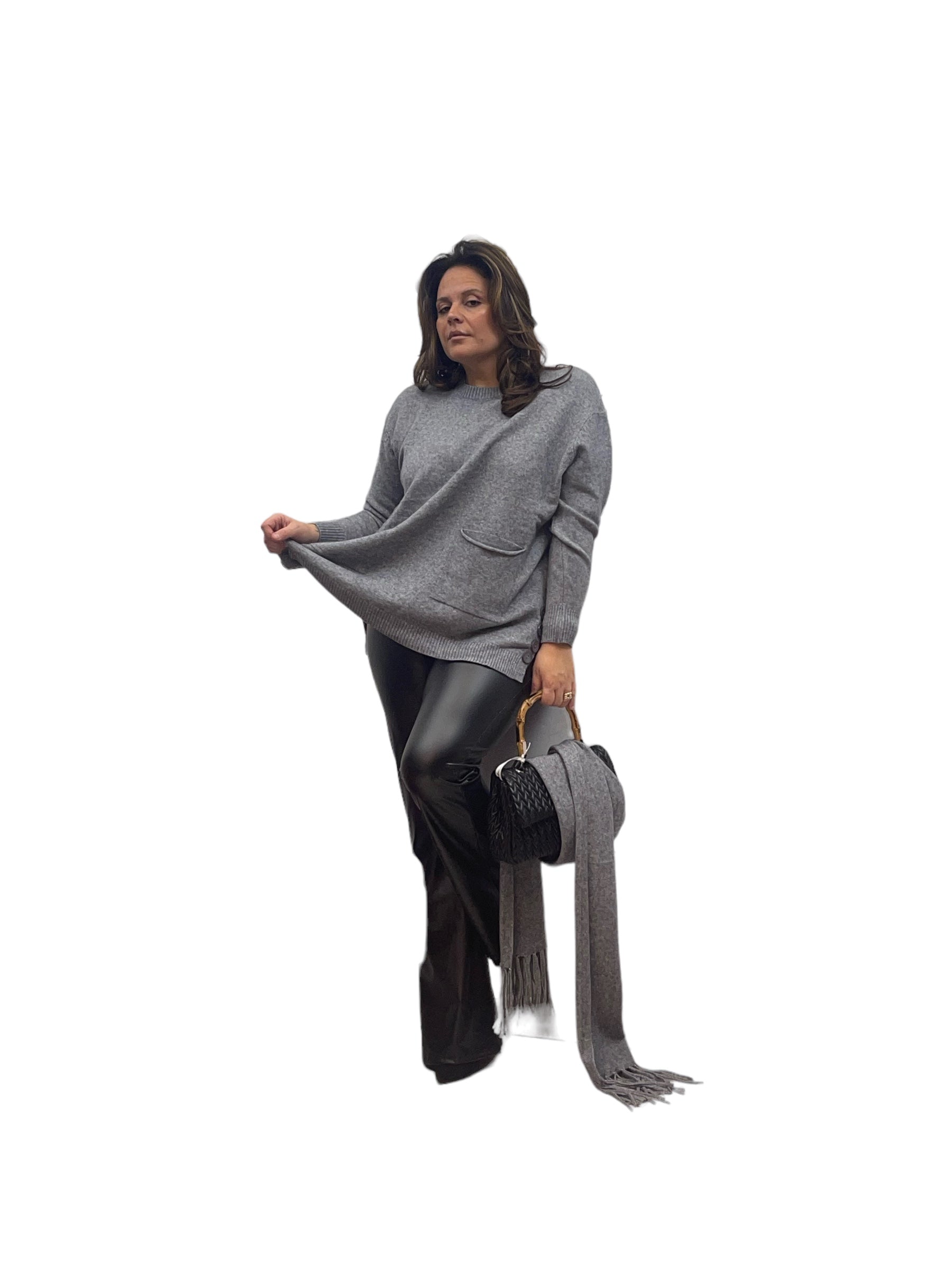 Magliettone over con taschini,sciarpa e bottoni laterali