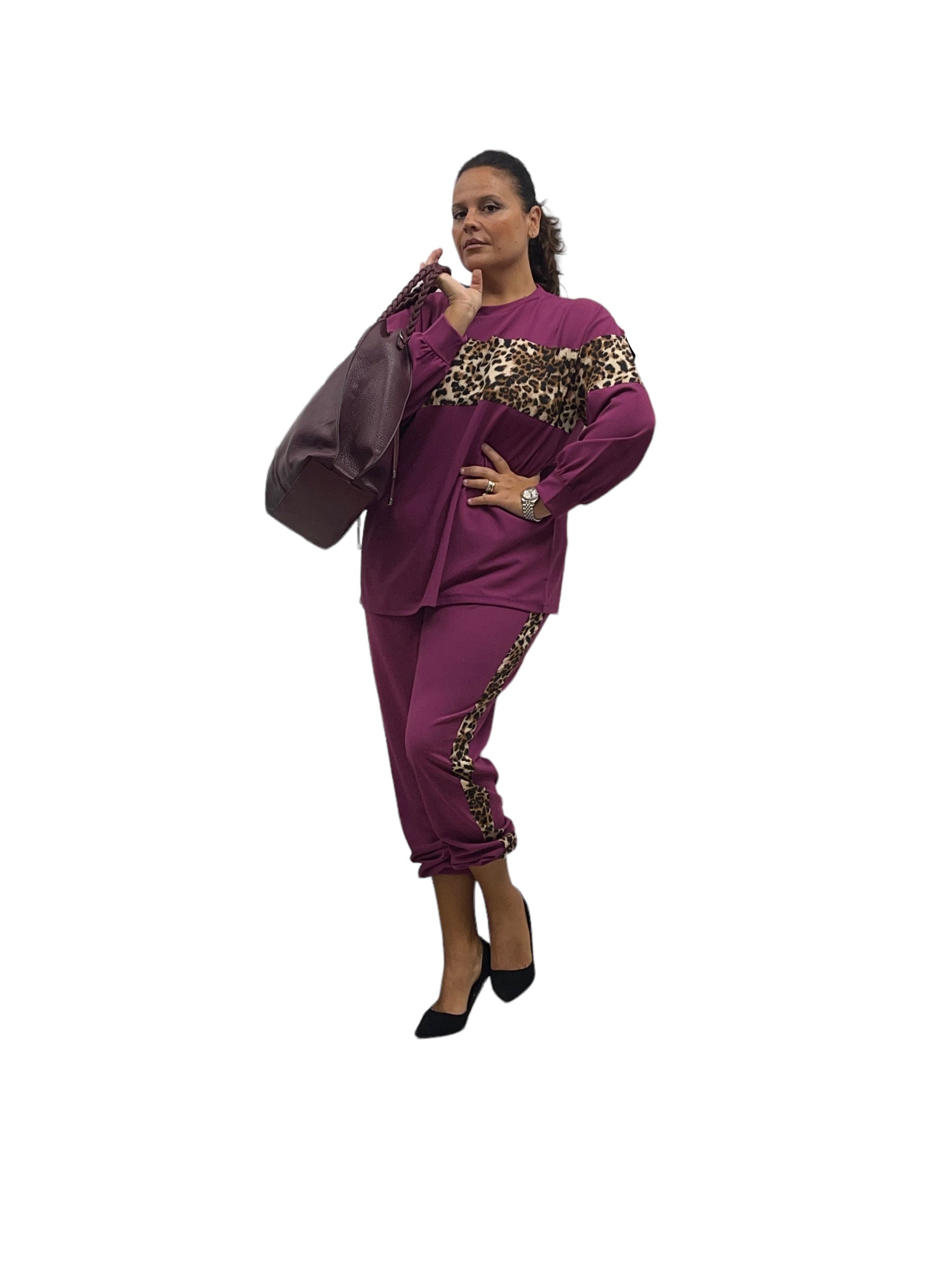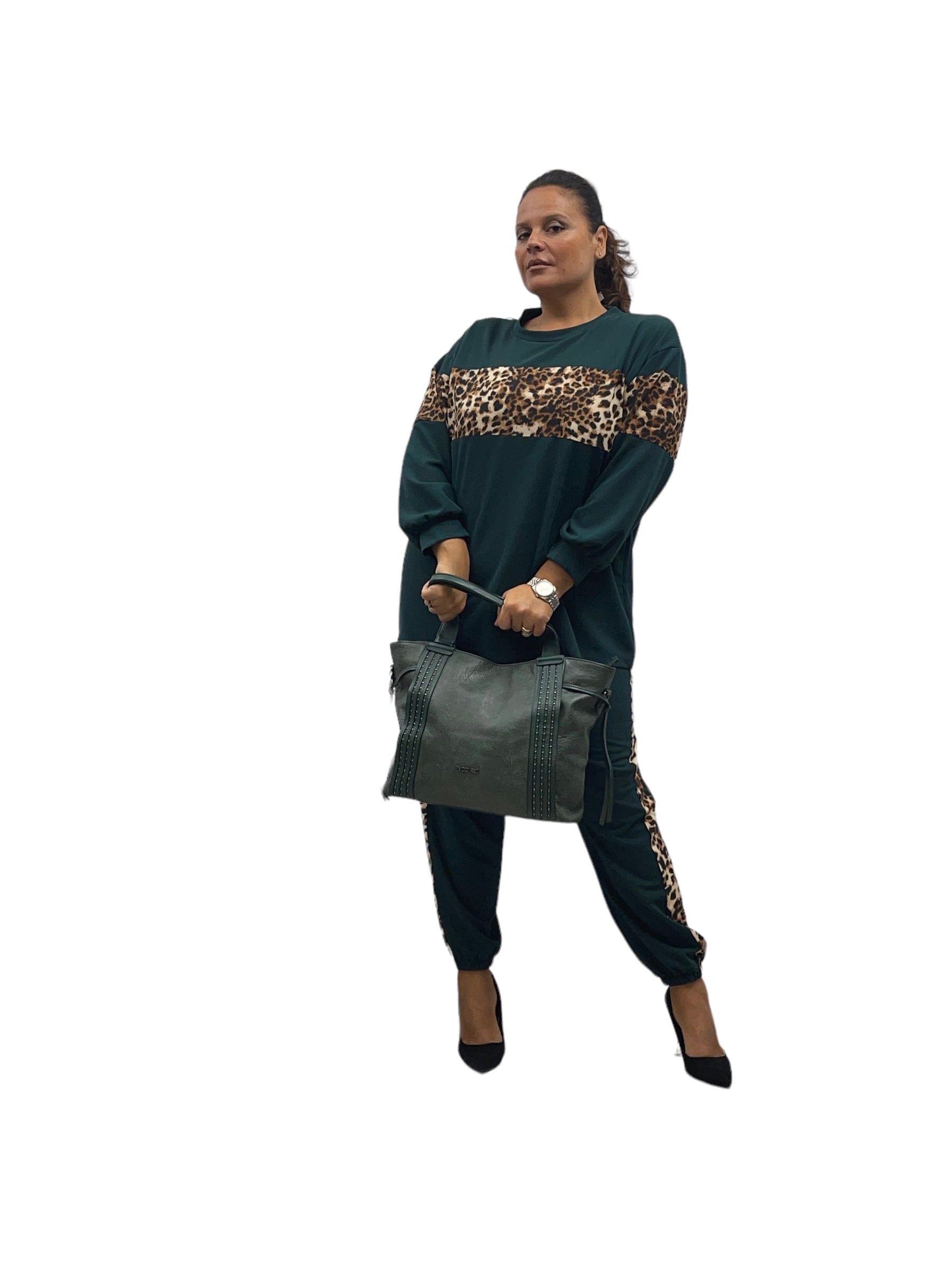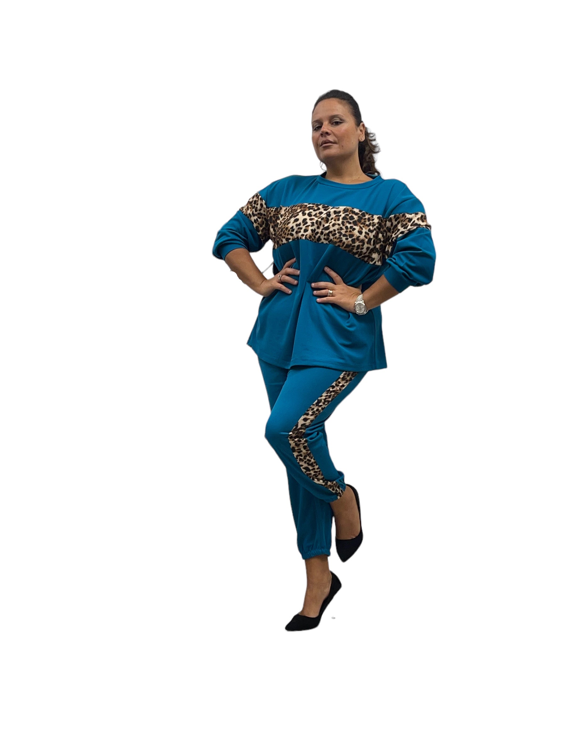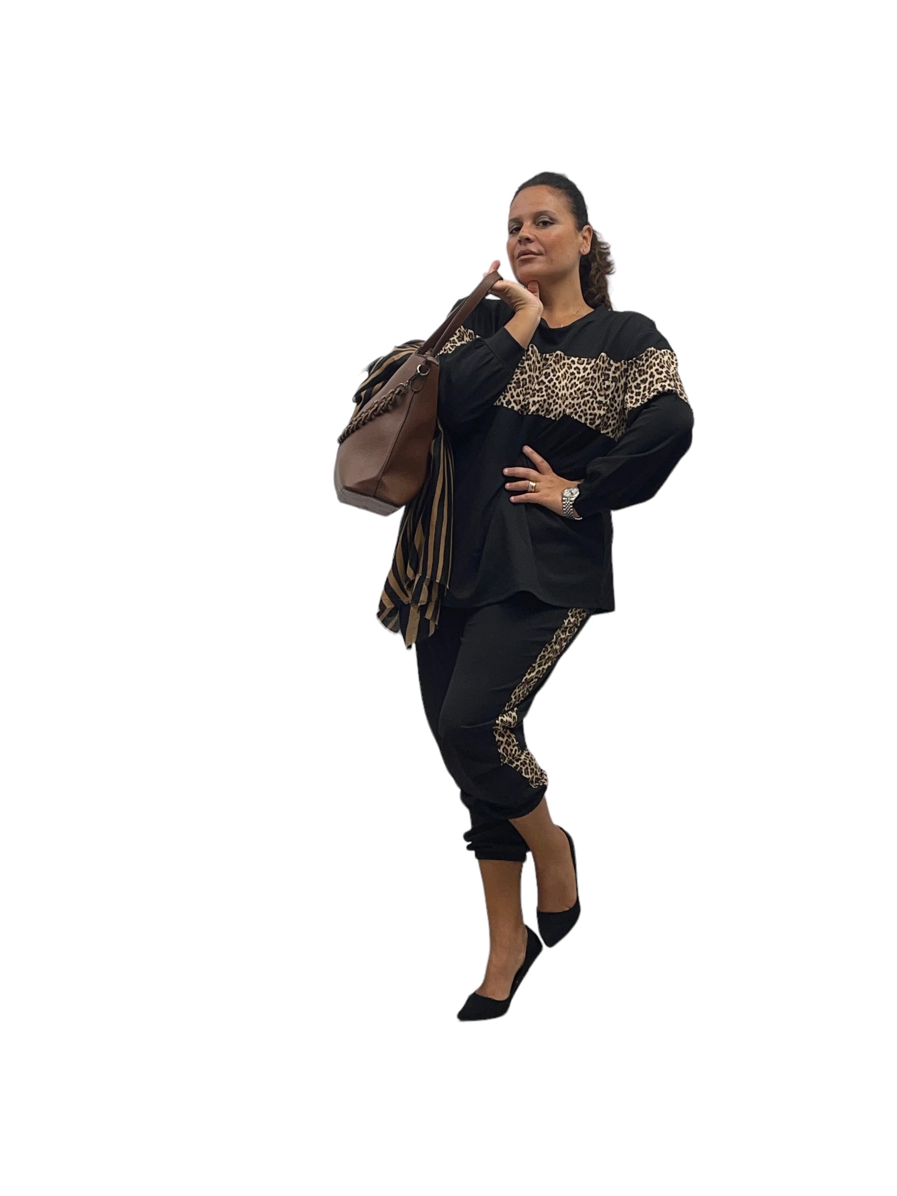 Tuta giorno over con fasce leopardate,elastico in vita e alla caviglia