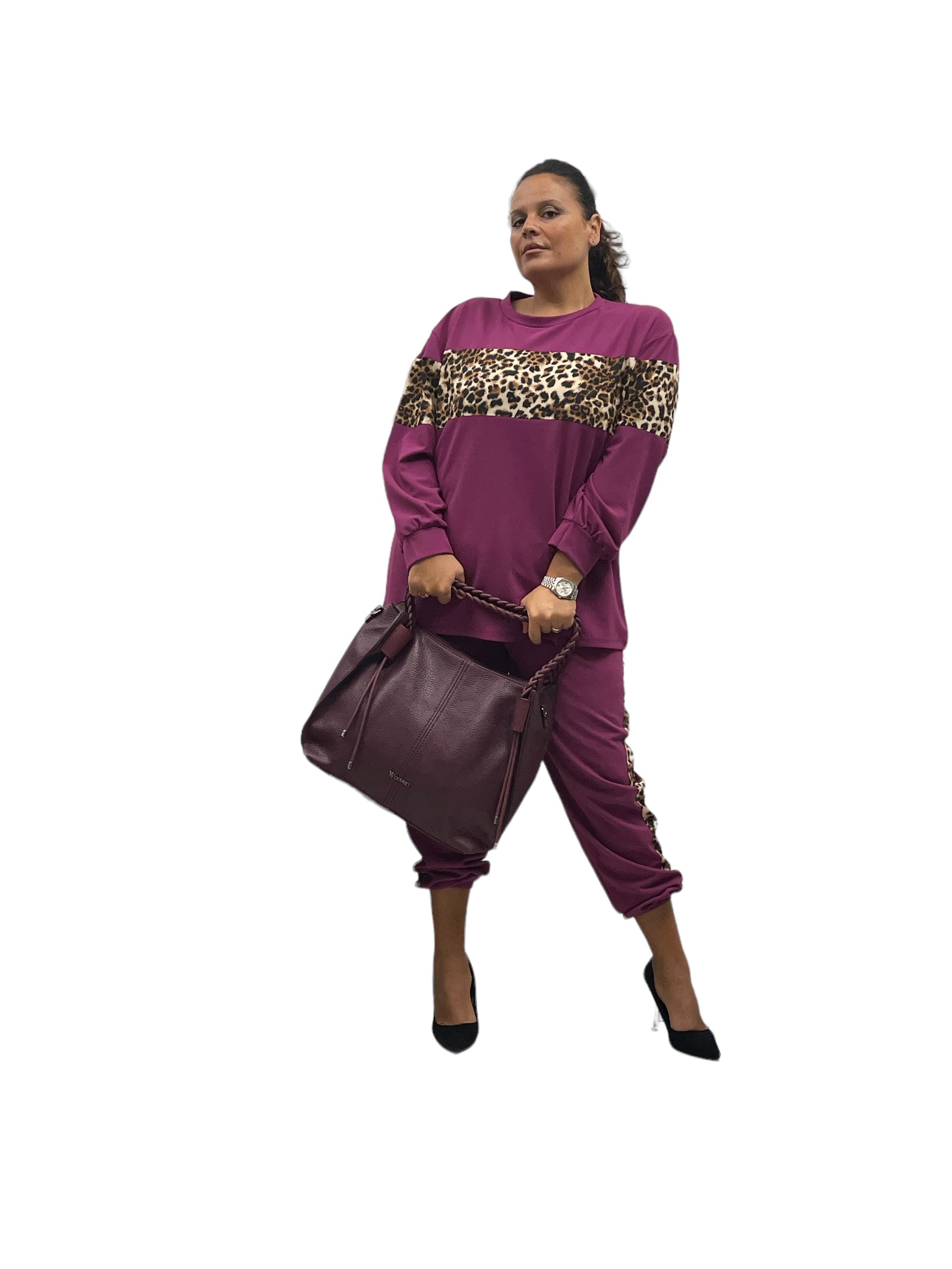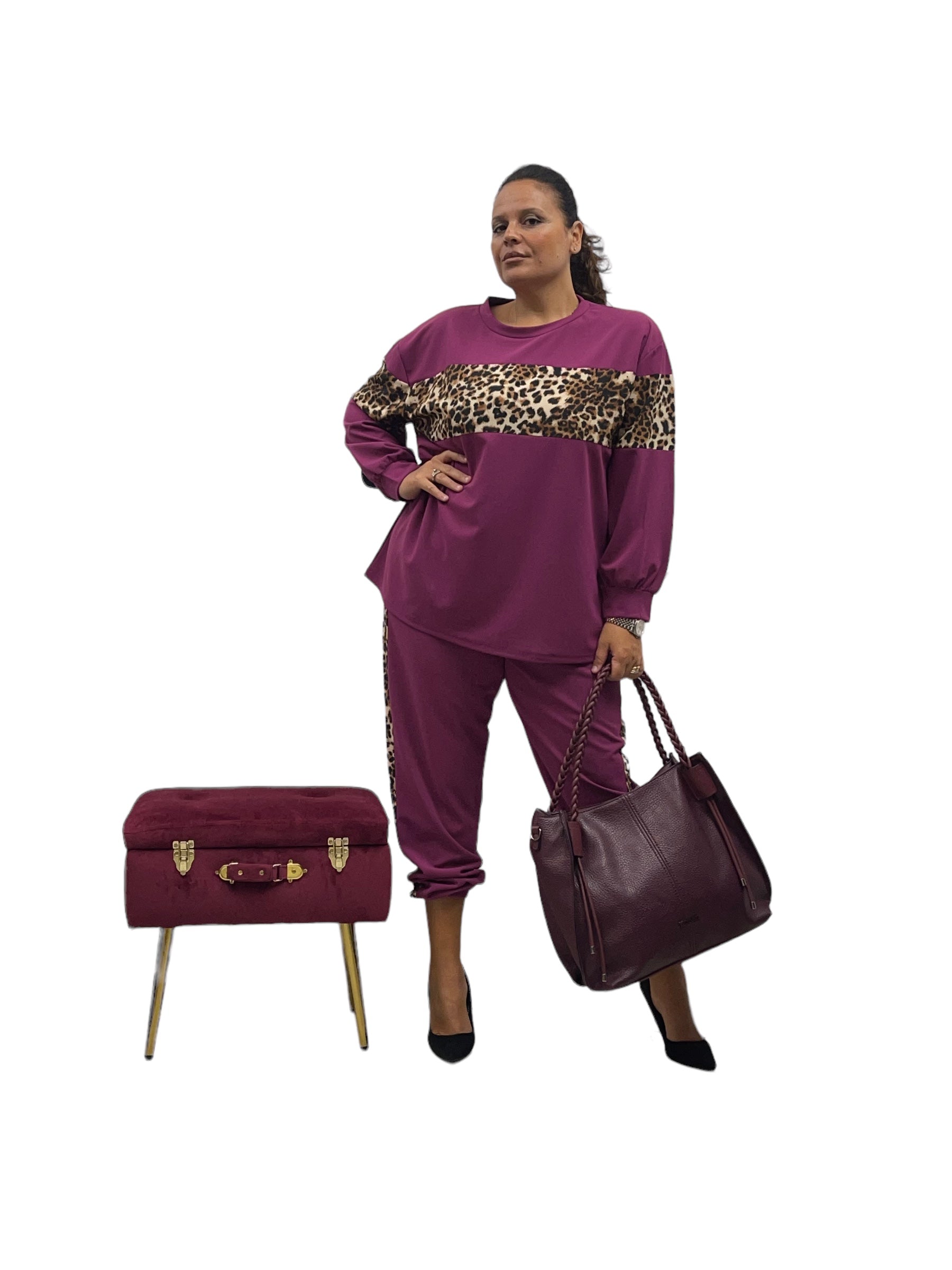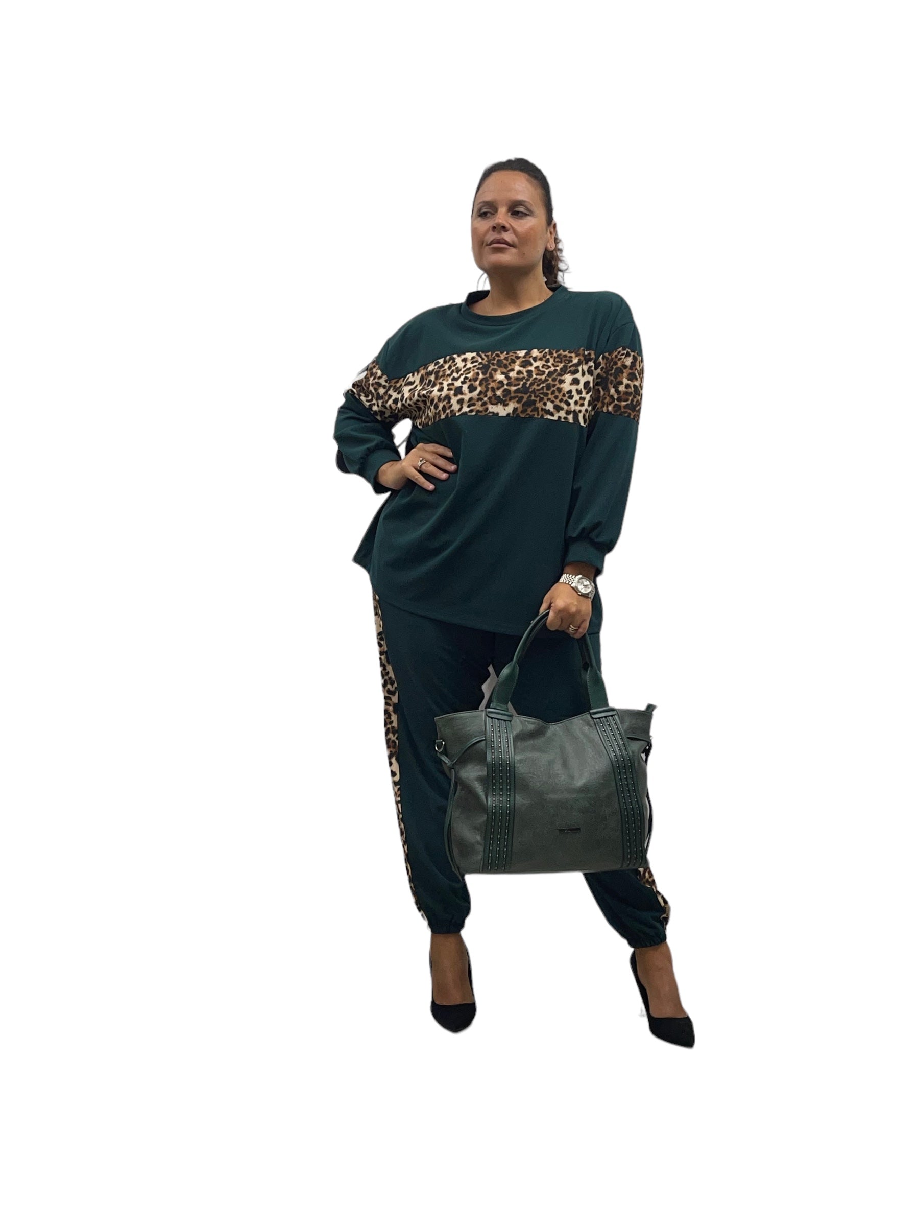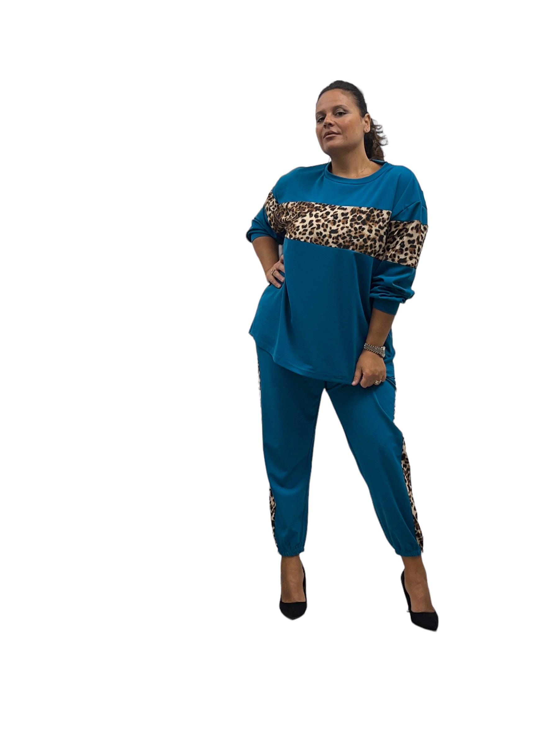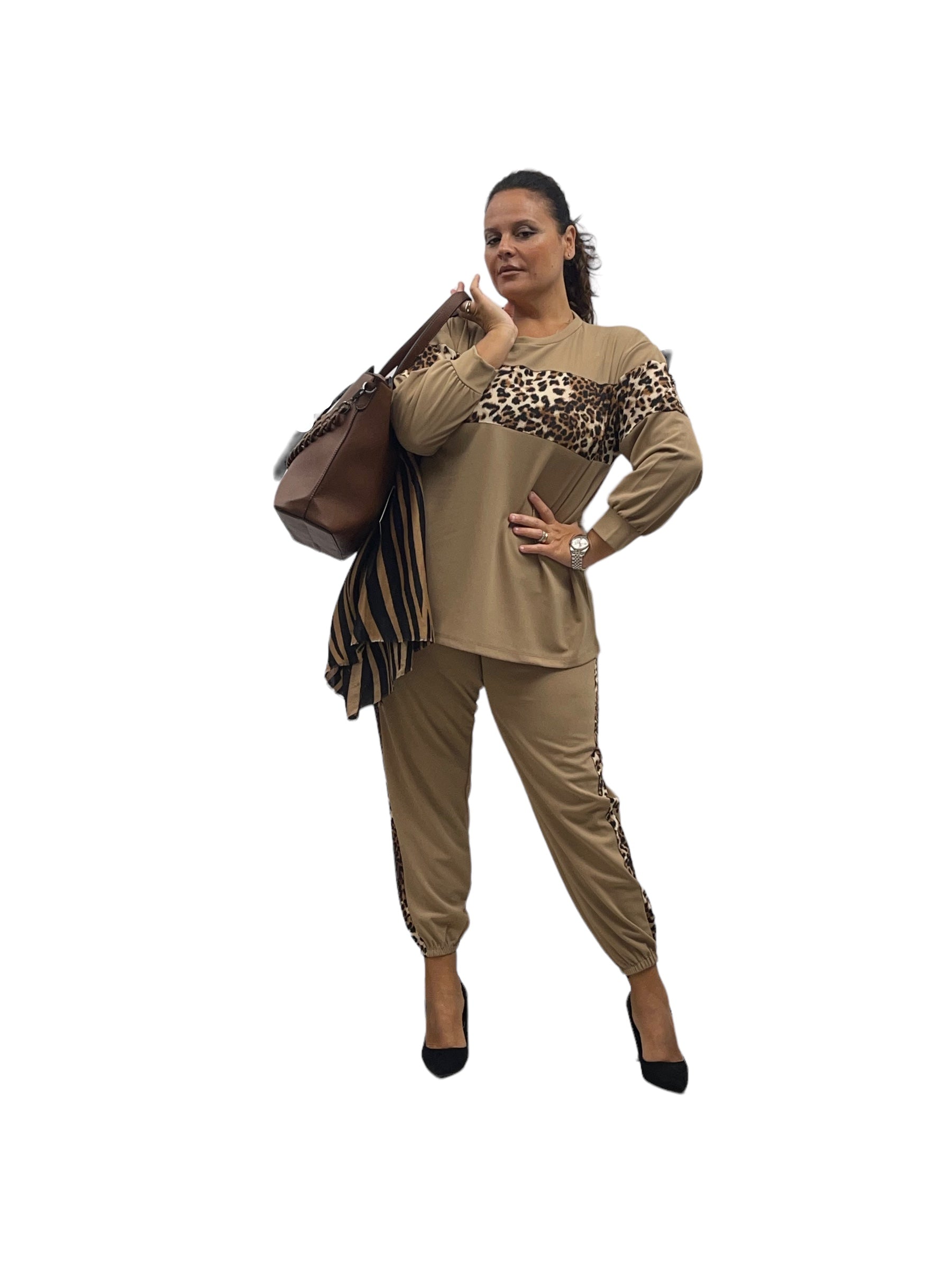 Tuta giorno over con fasce leopardate,elastico in vita e alla caviglia