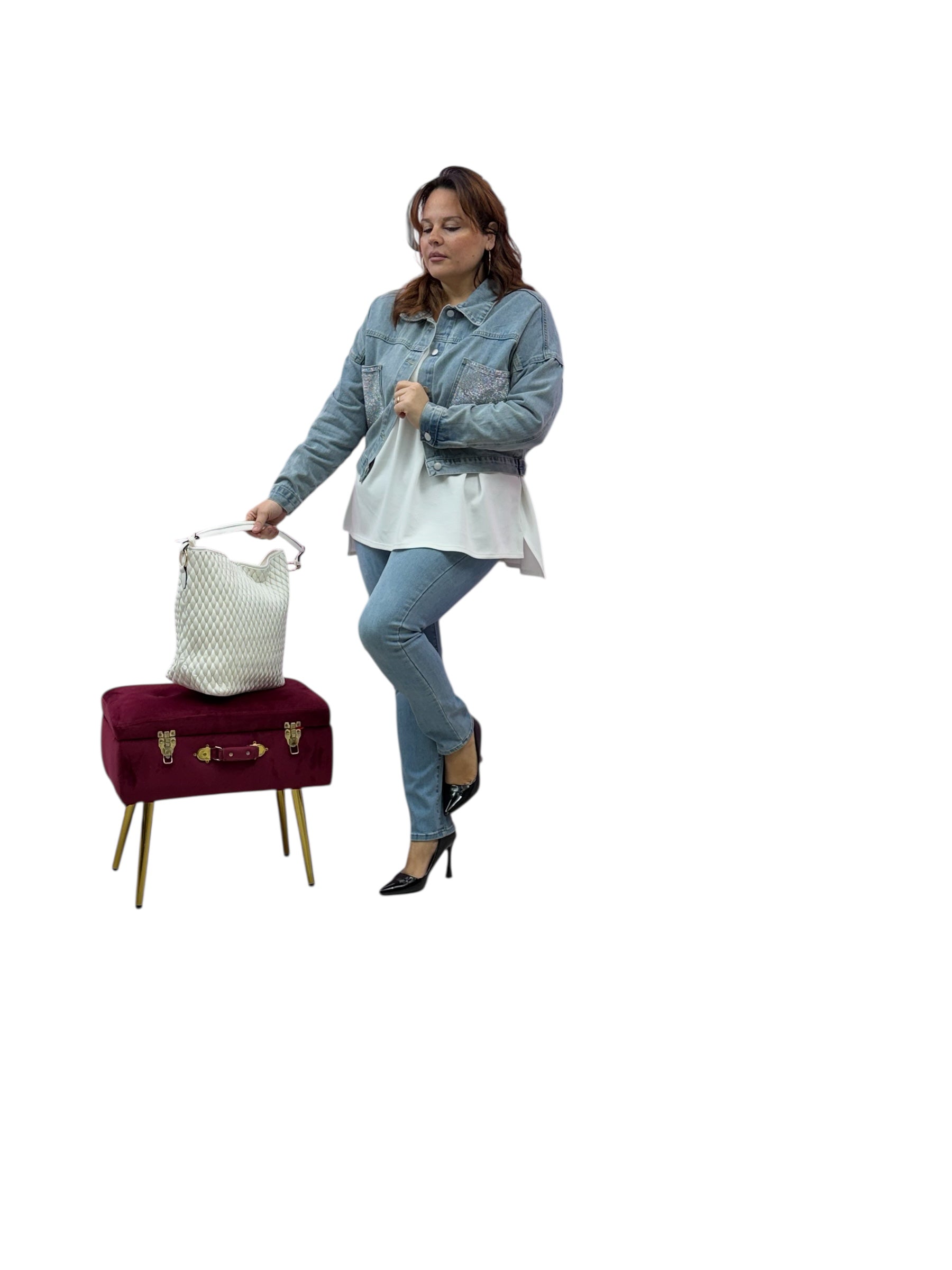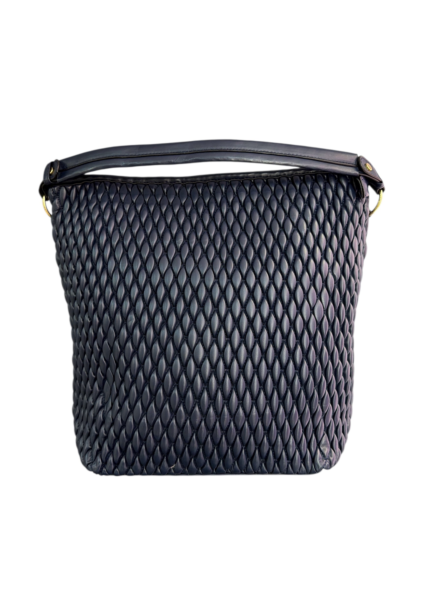 Borsa in ecopelle con manico,tracolla e zip effetto motivo intrecciato