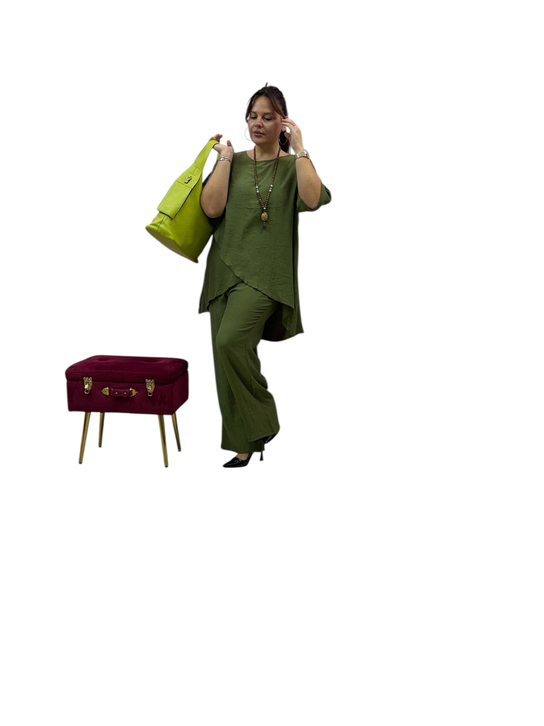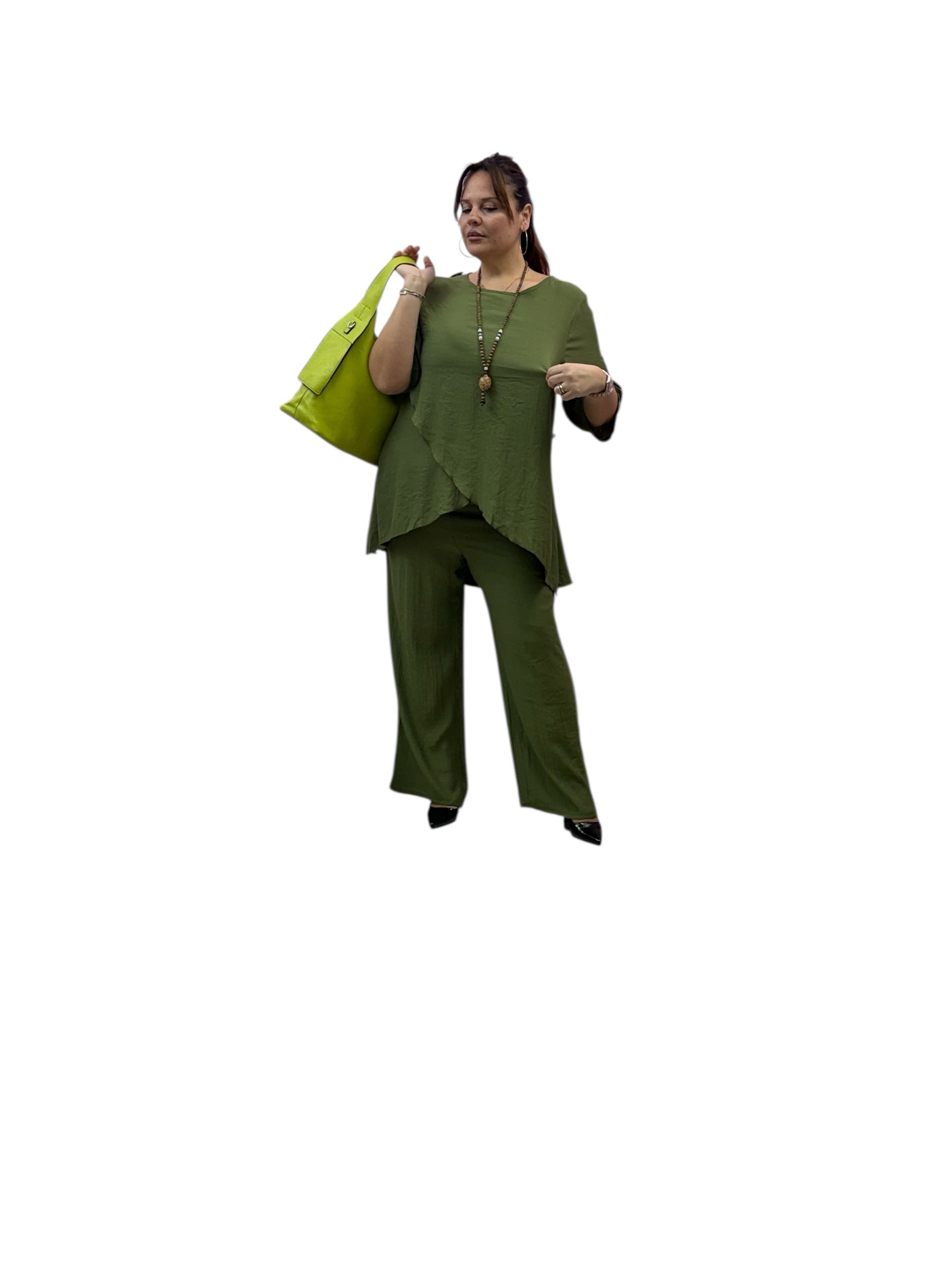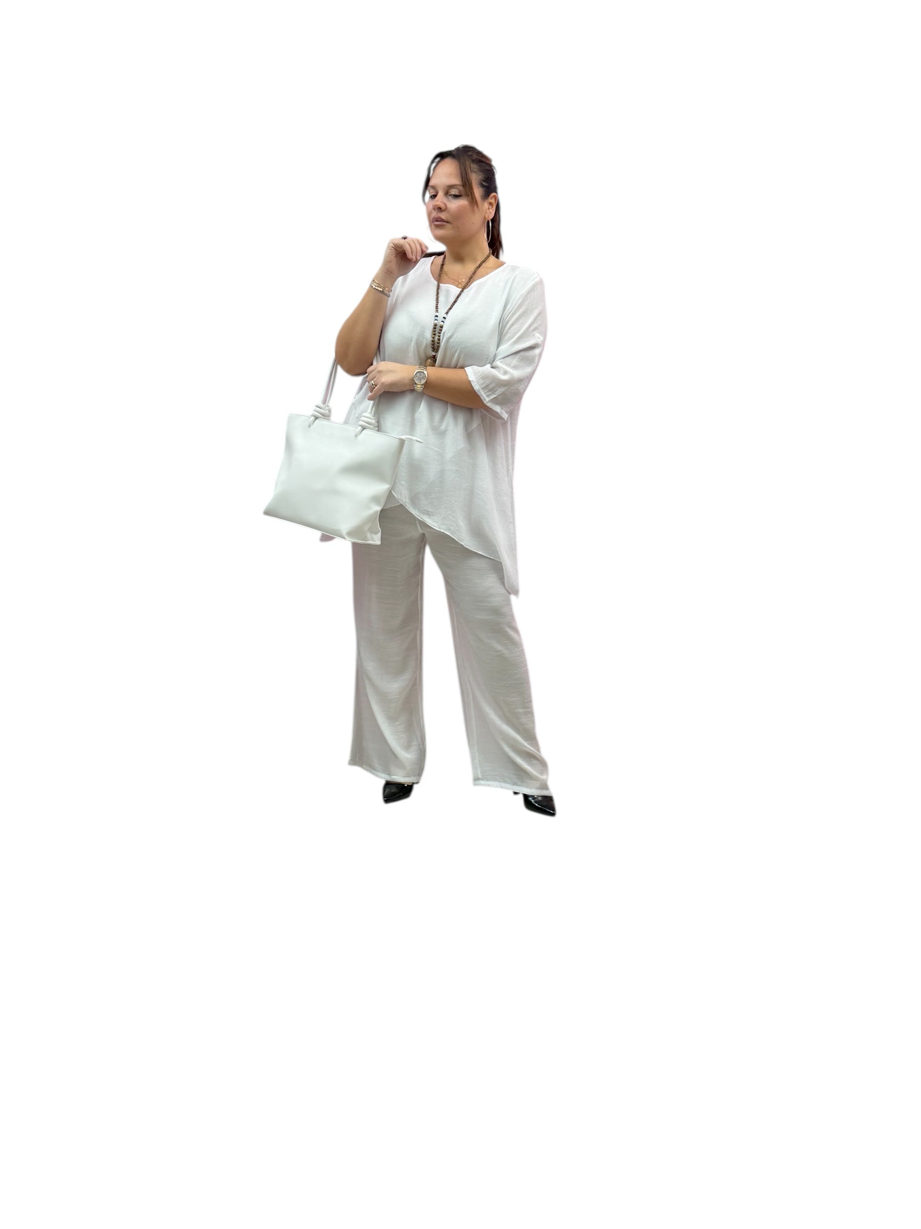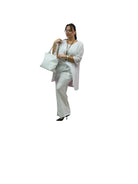 Completo over con casacca taglio farfalla e pantaloni palazzo con elastico in vita