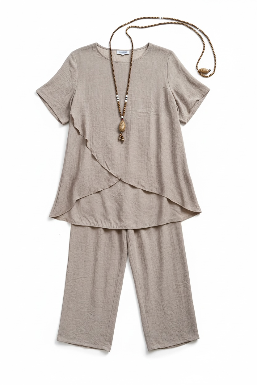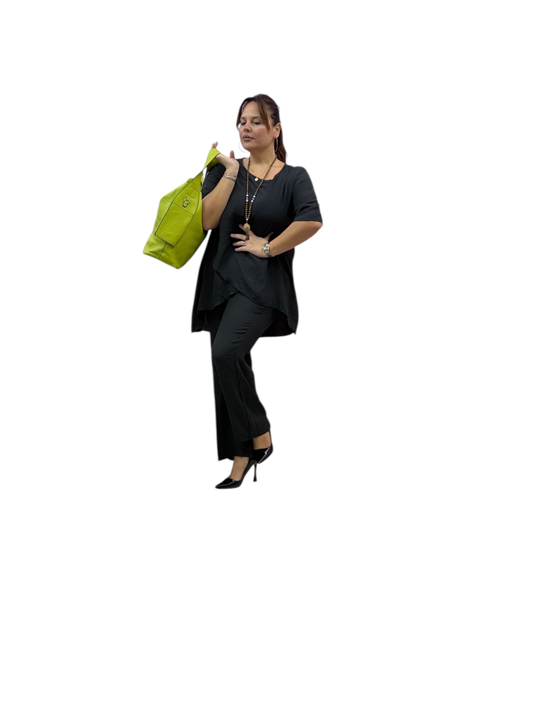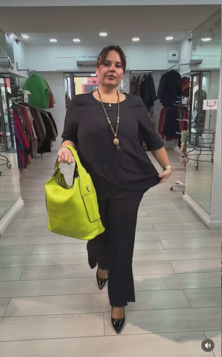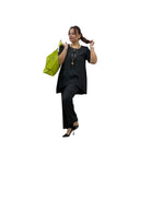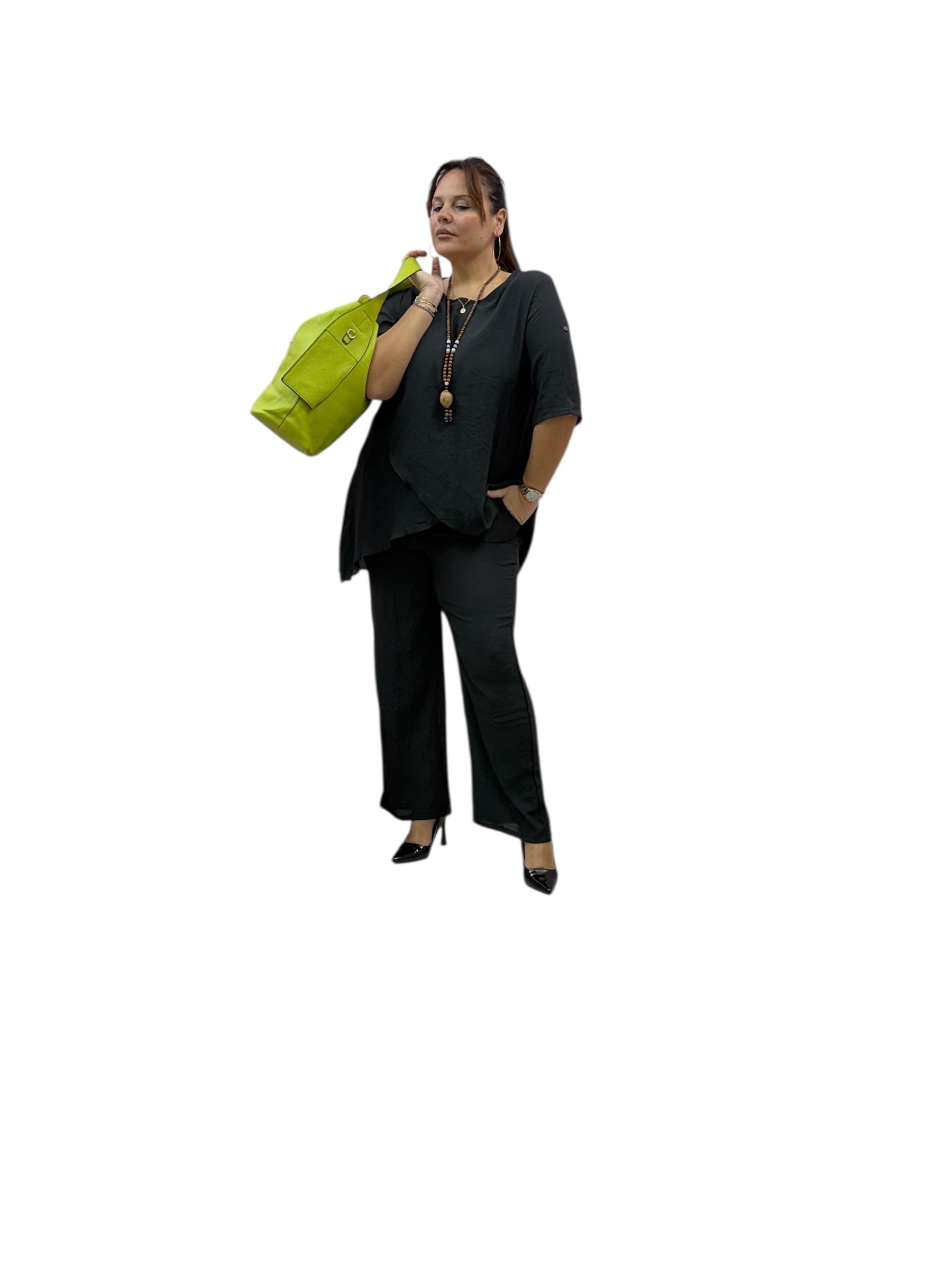 Completo over con casacca taglio farfalla e pantaloni palazzo con elastico in vita