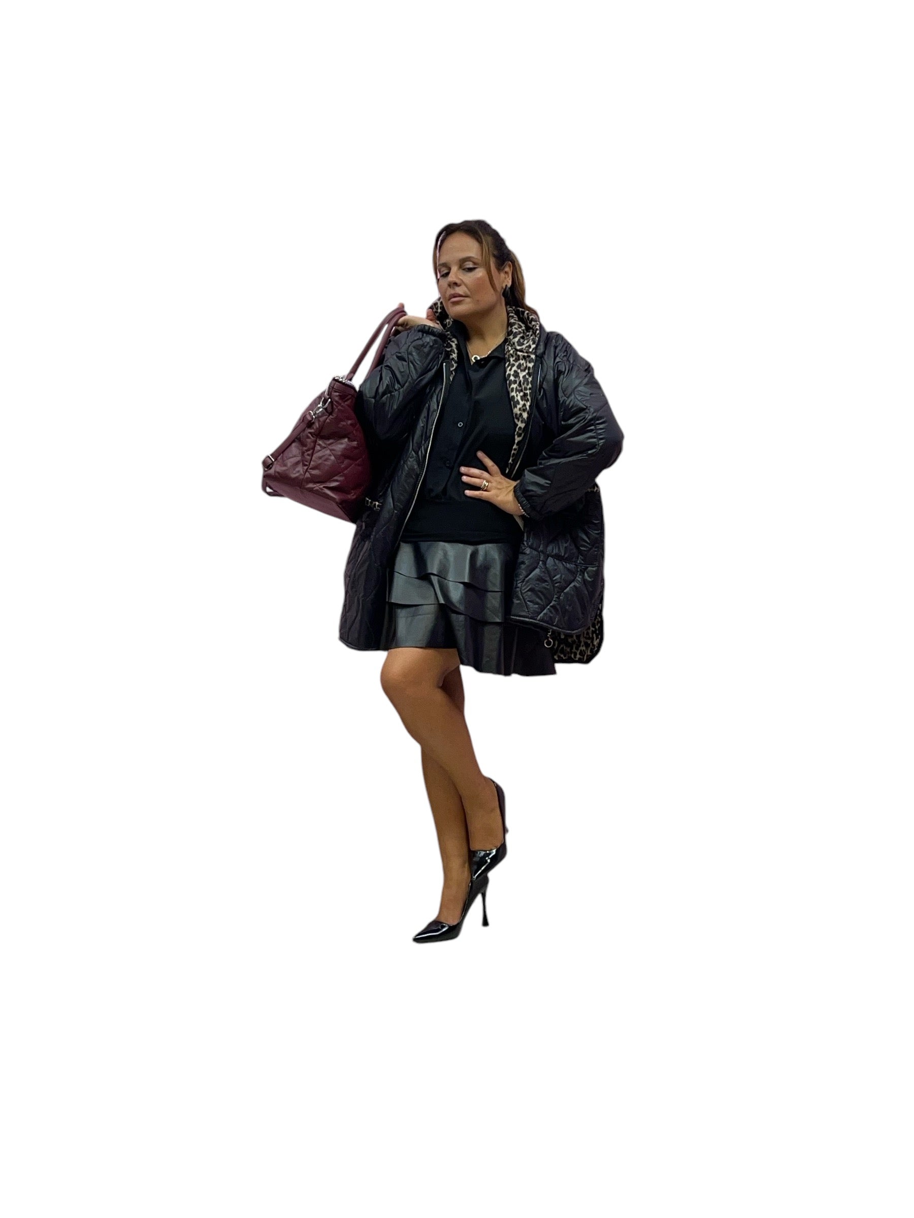 Pantagonna in ecopelle con balze