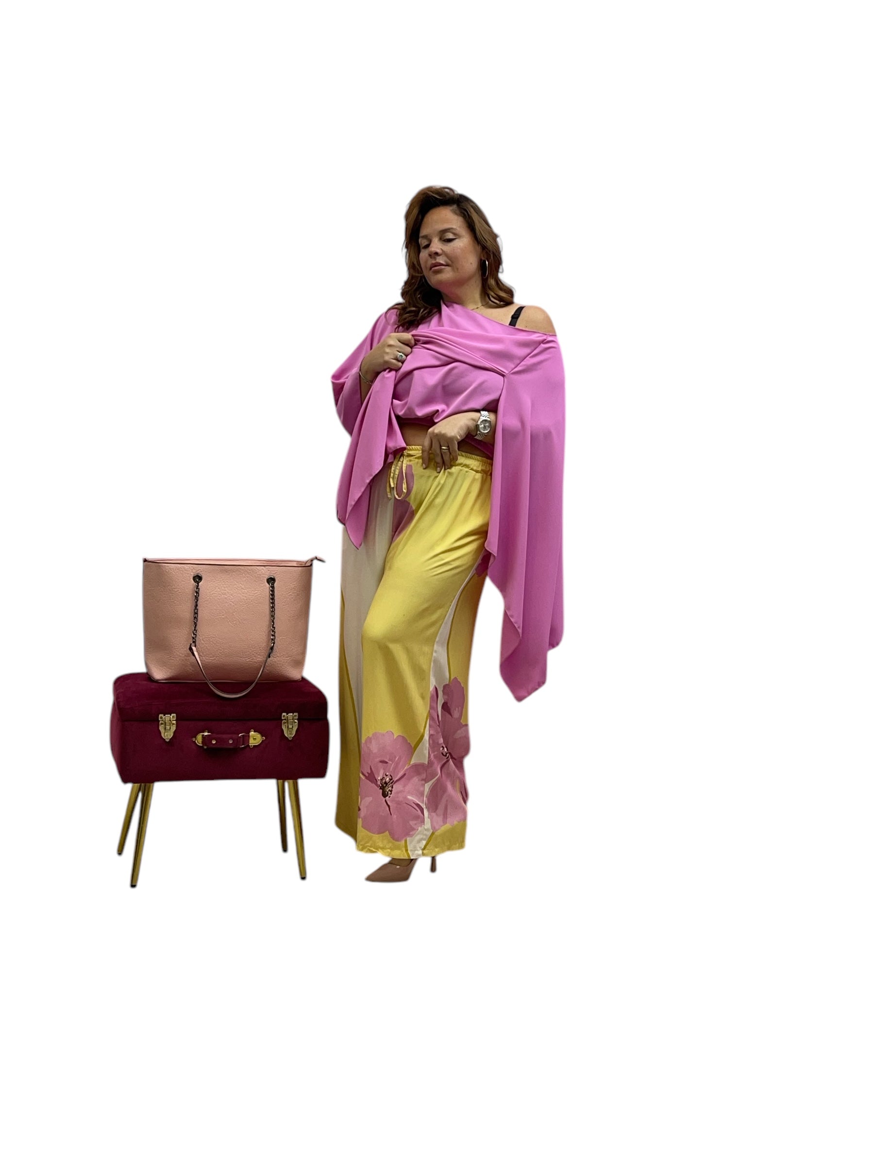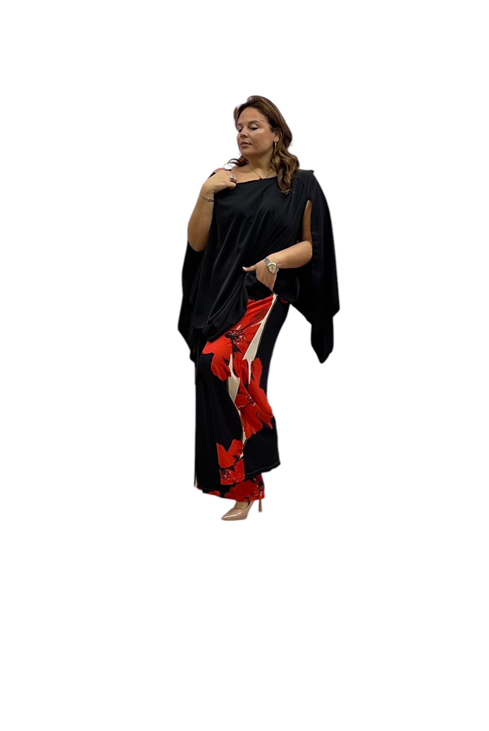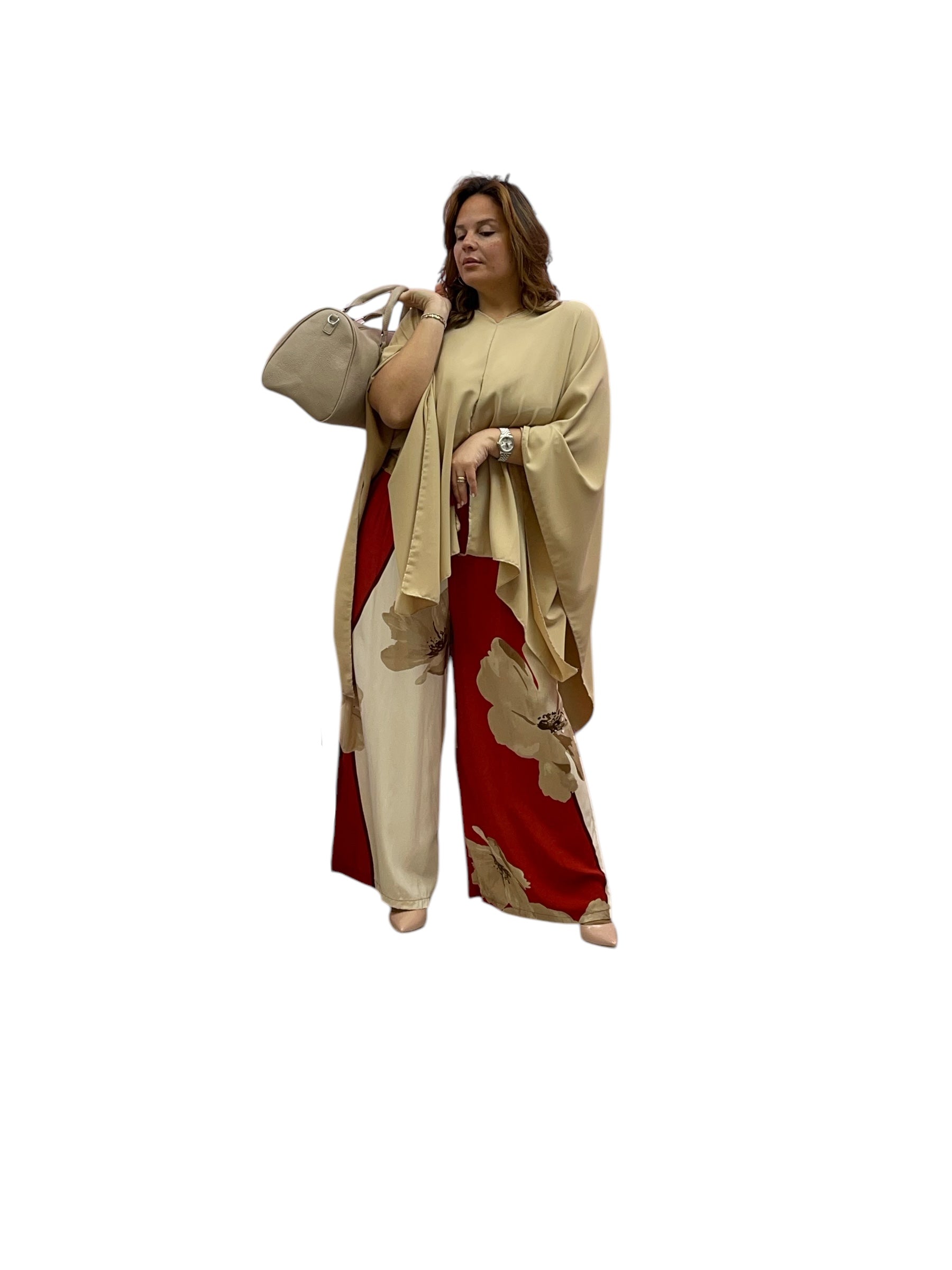 Pantaloni over in viscosa fantasia fiore con elastico e laccio