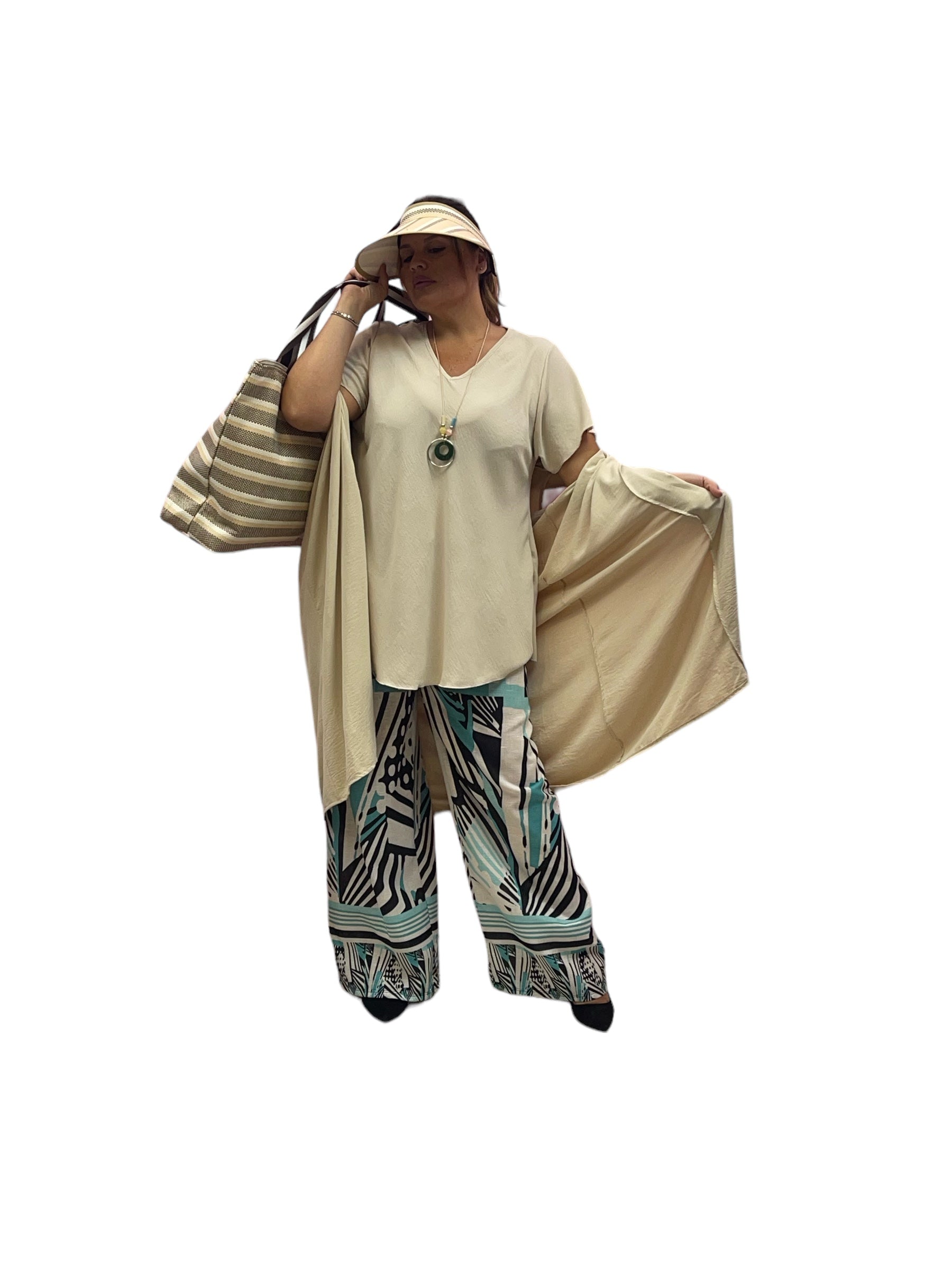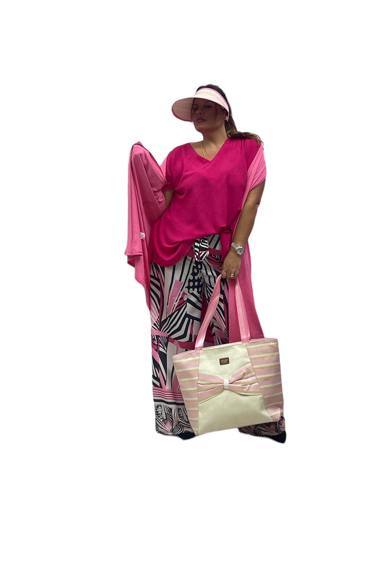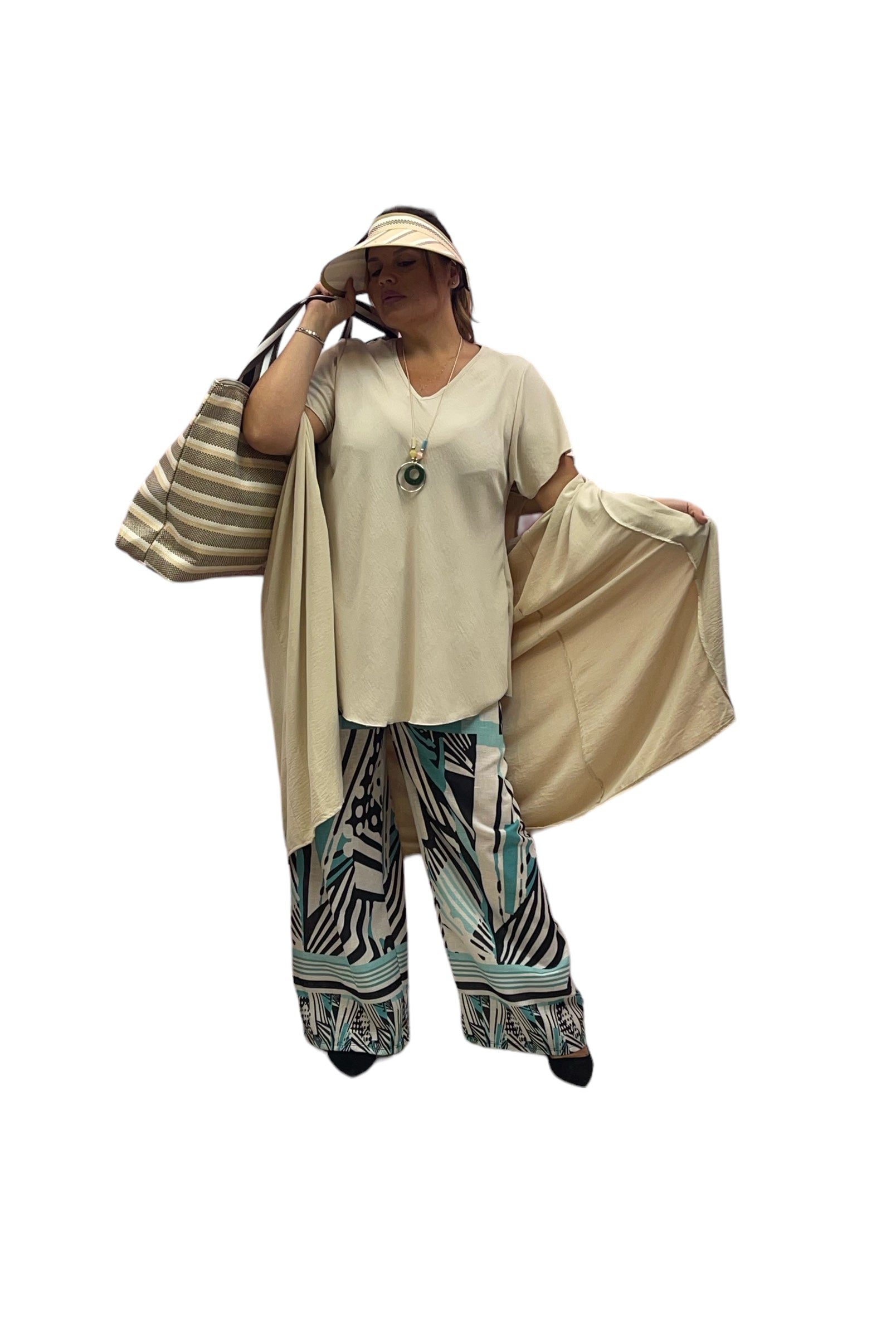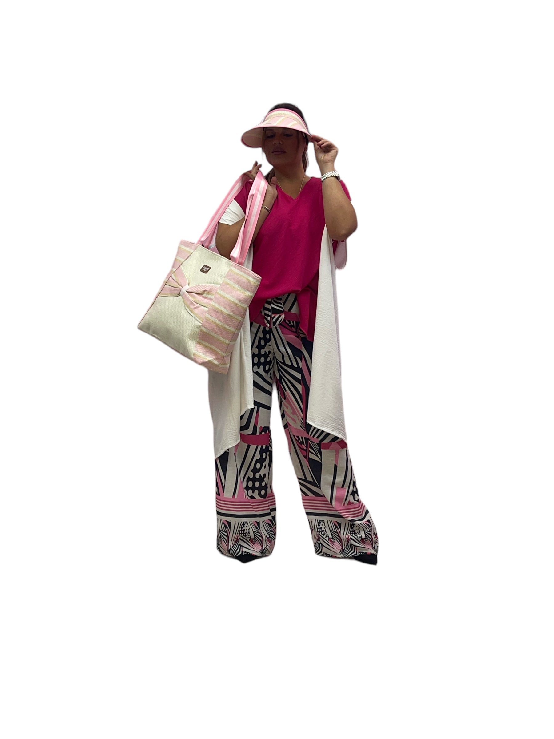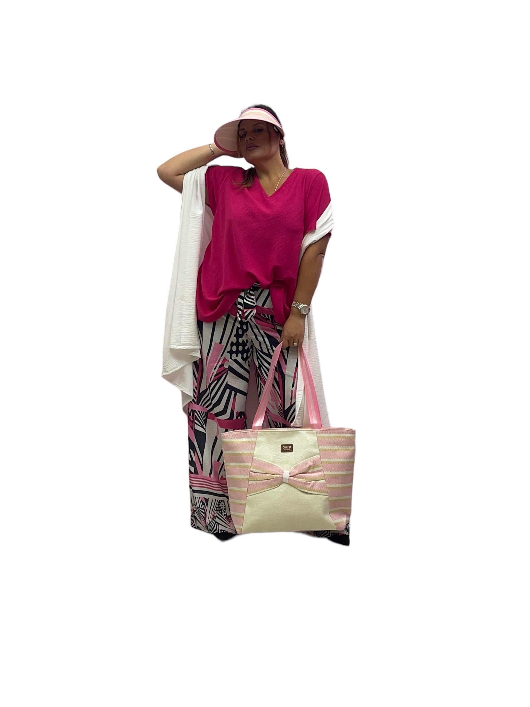 Pantaloni over fantasia con fiocco leggerissimo effetto garza