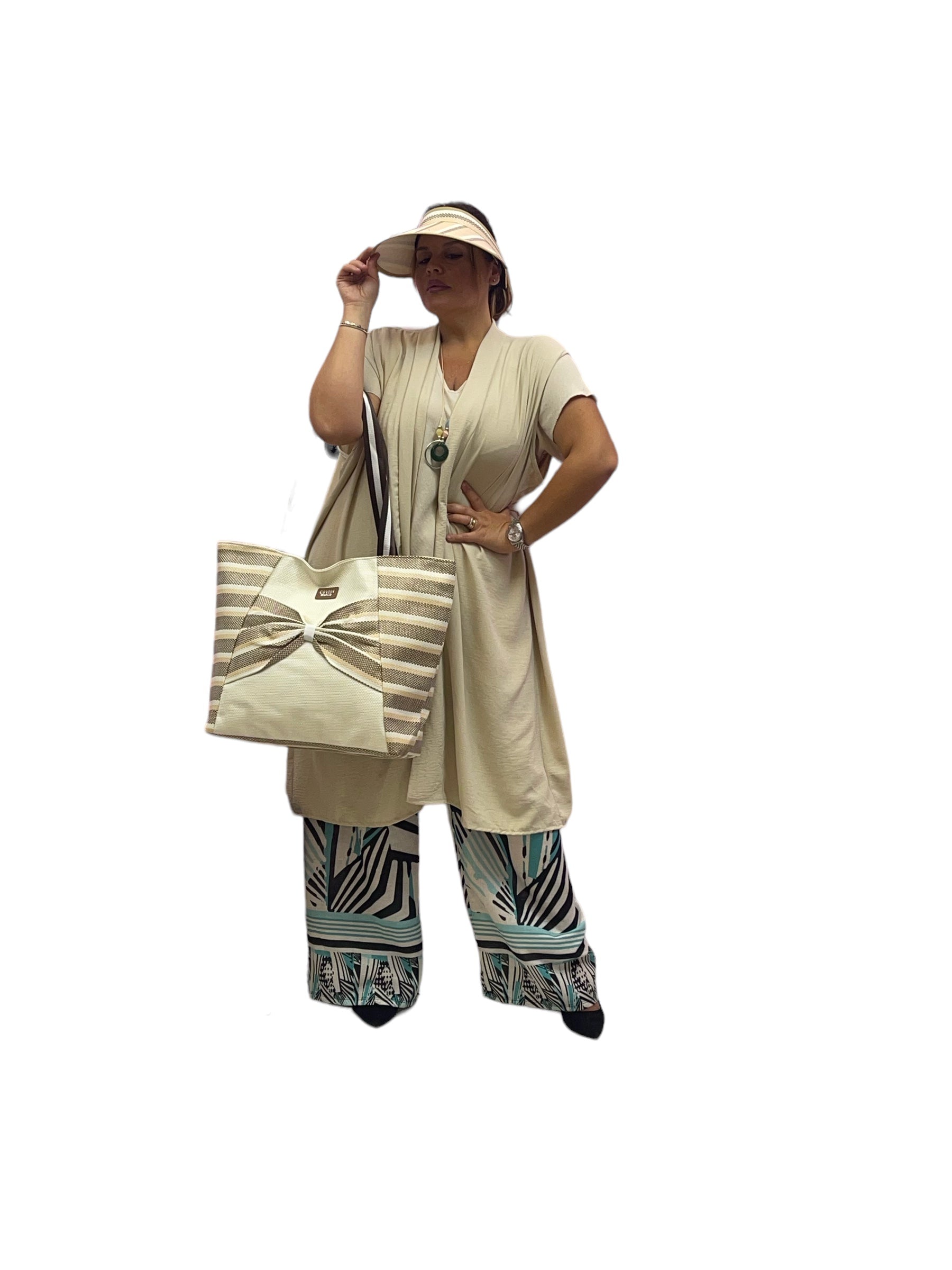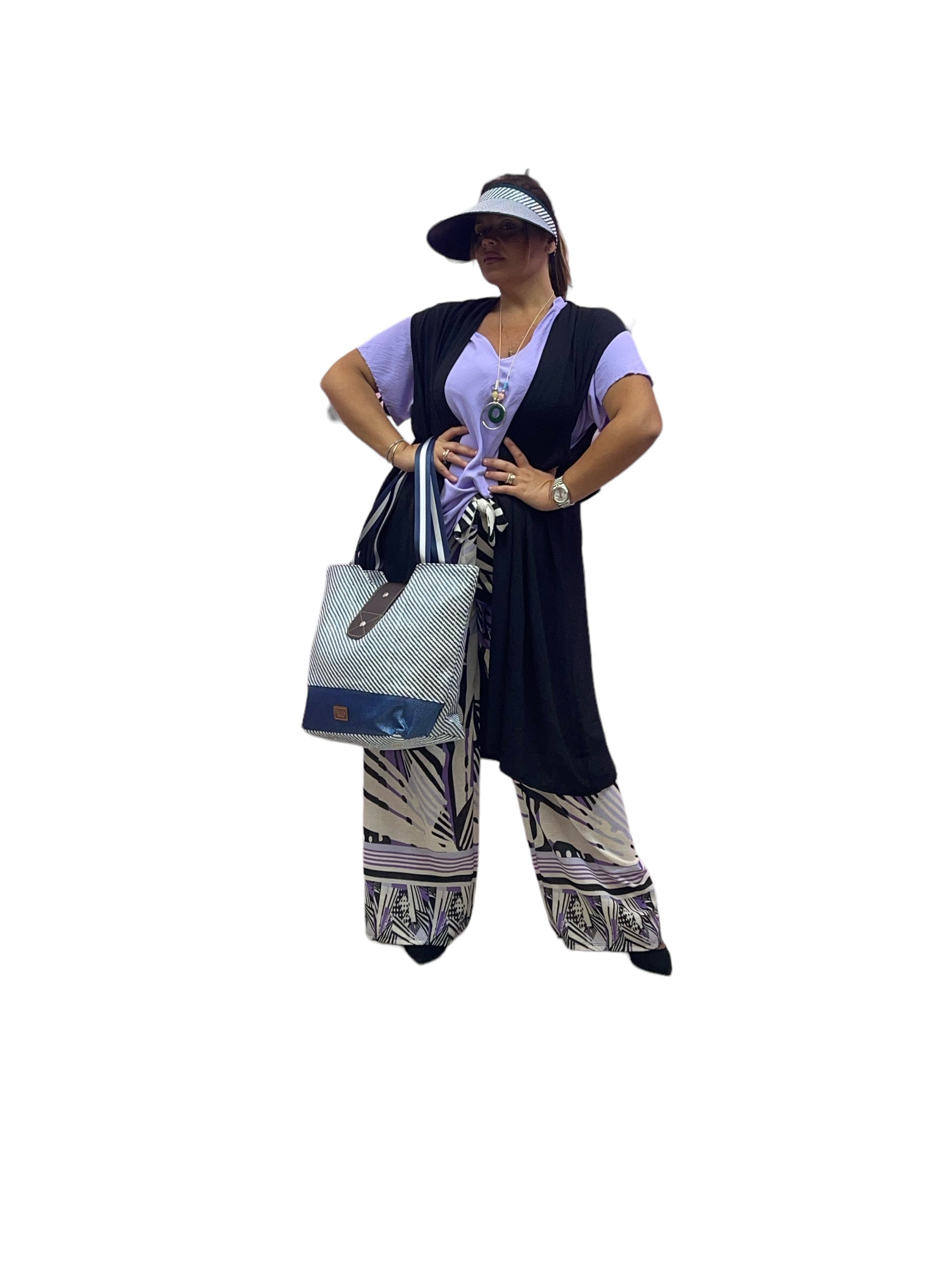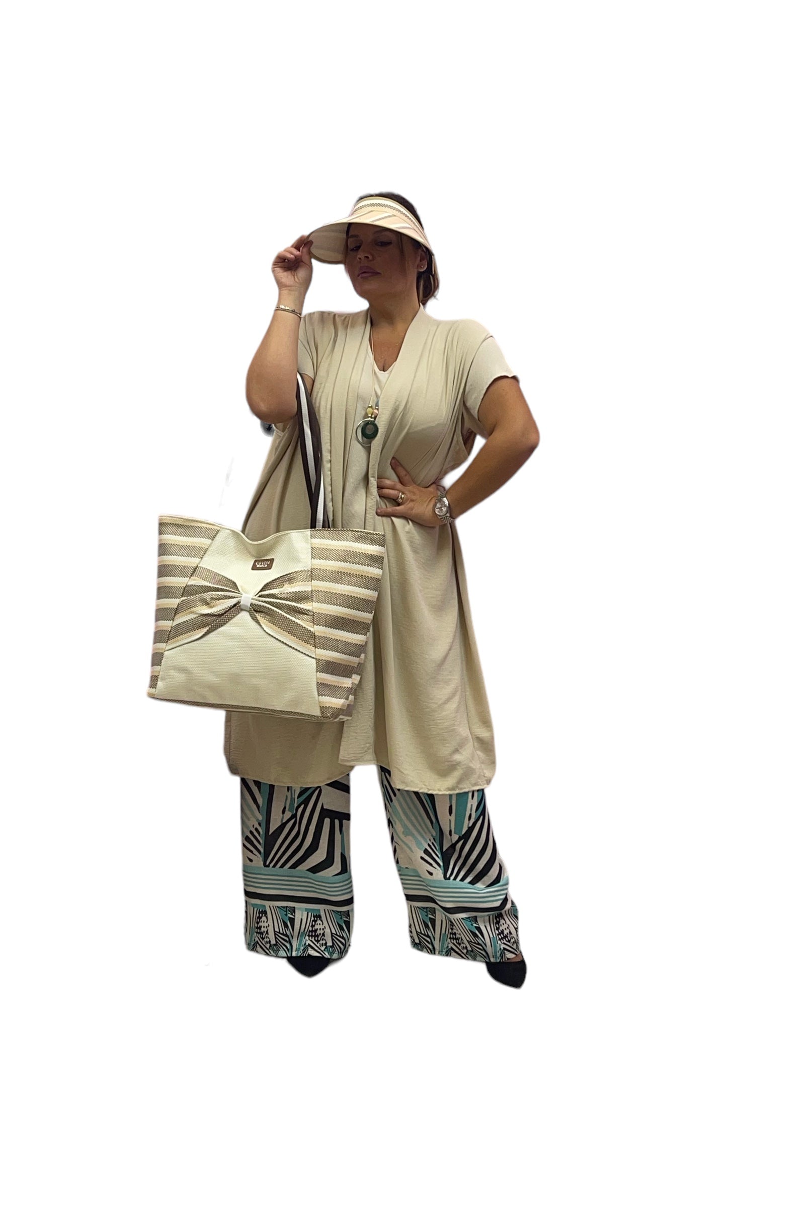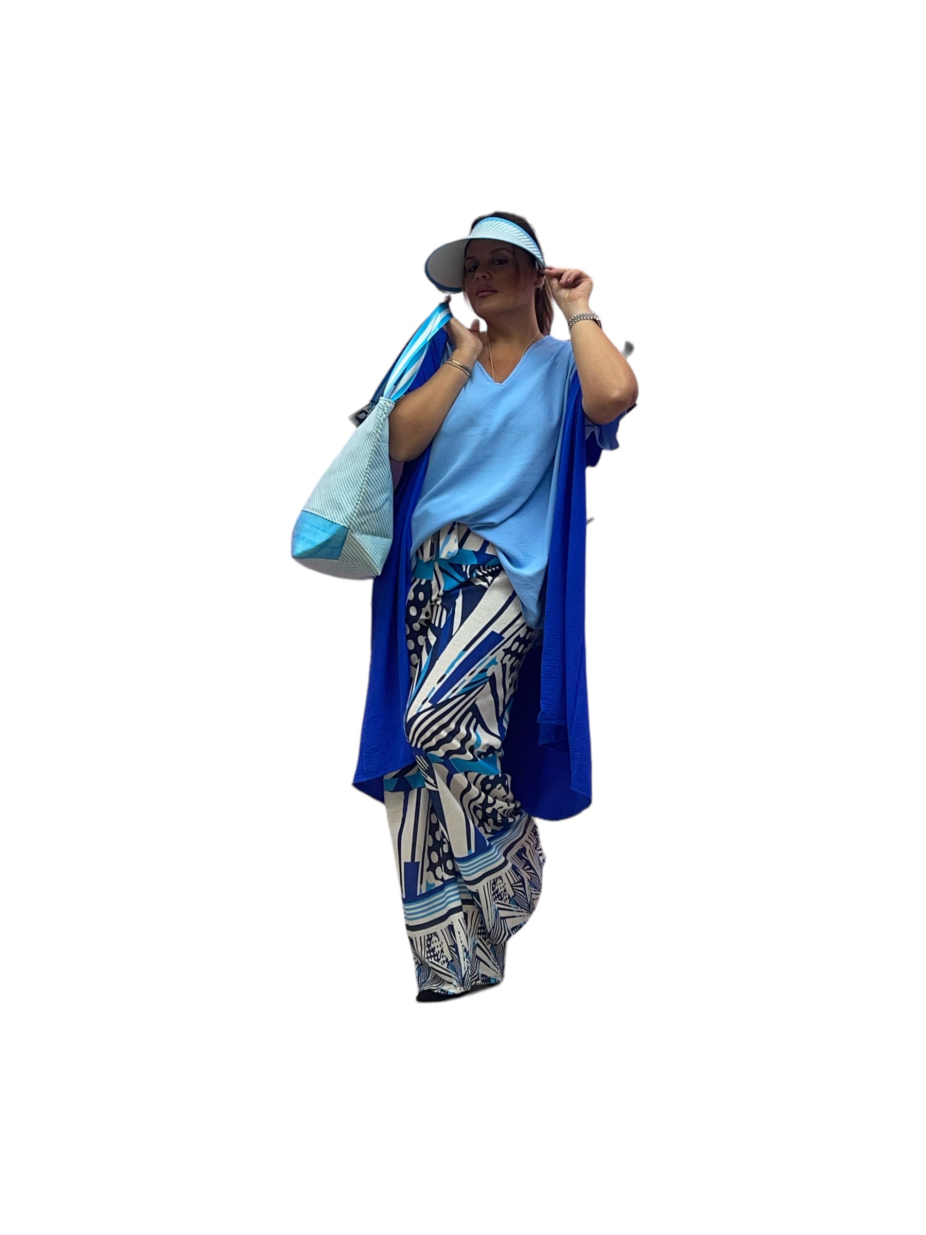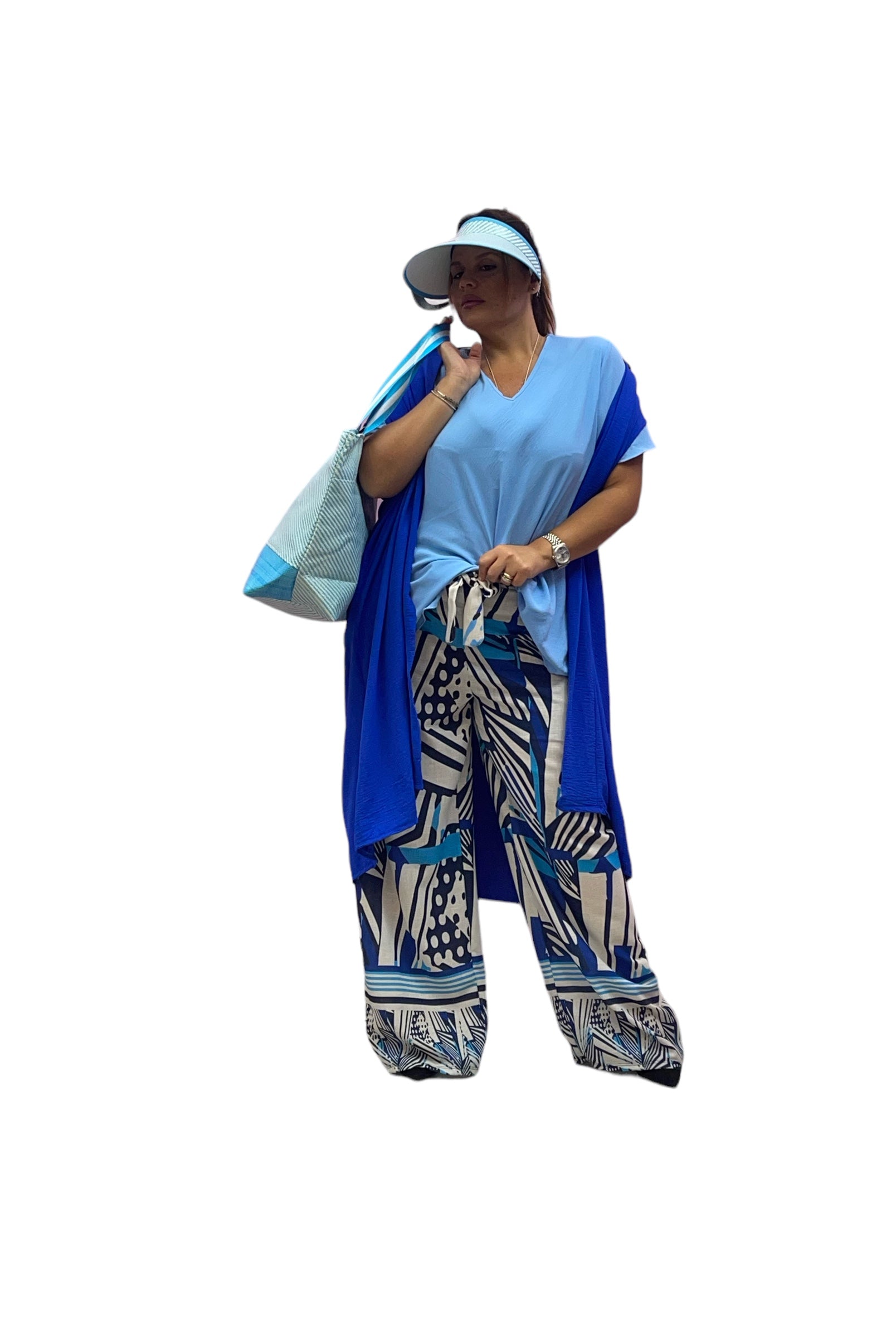 Pantaloni over fantasia con fiocco leggerissimo effetto garza