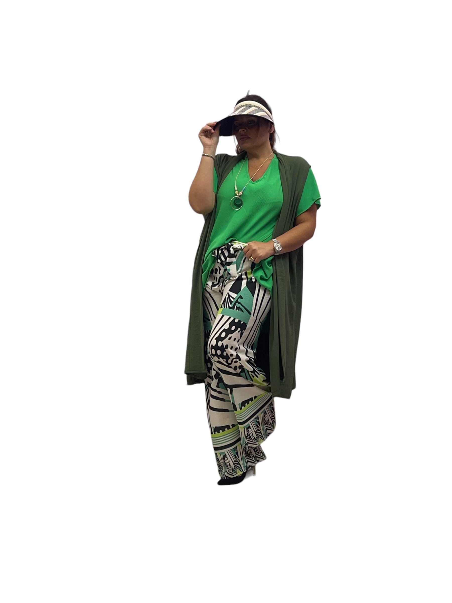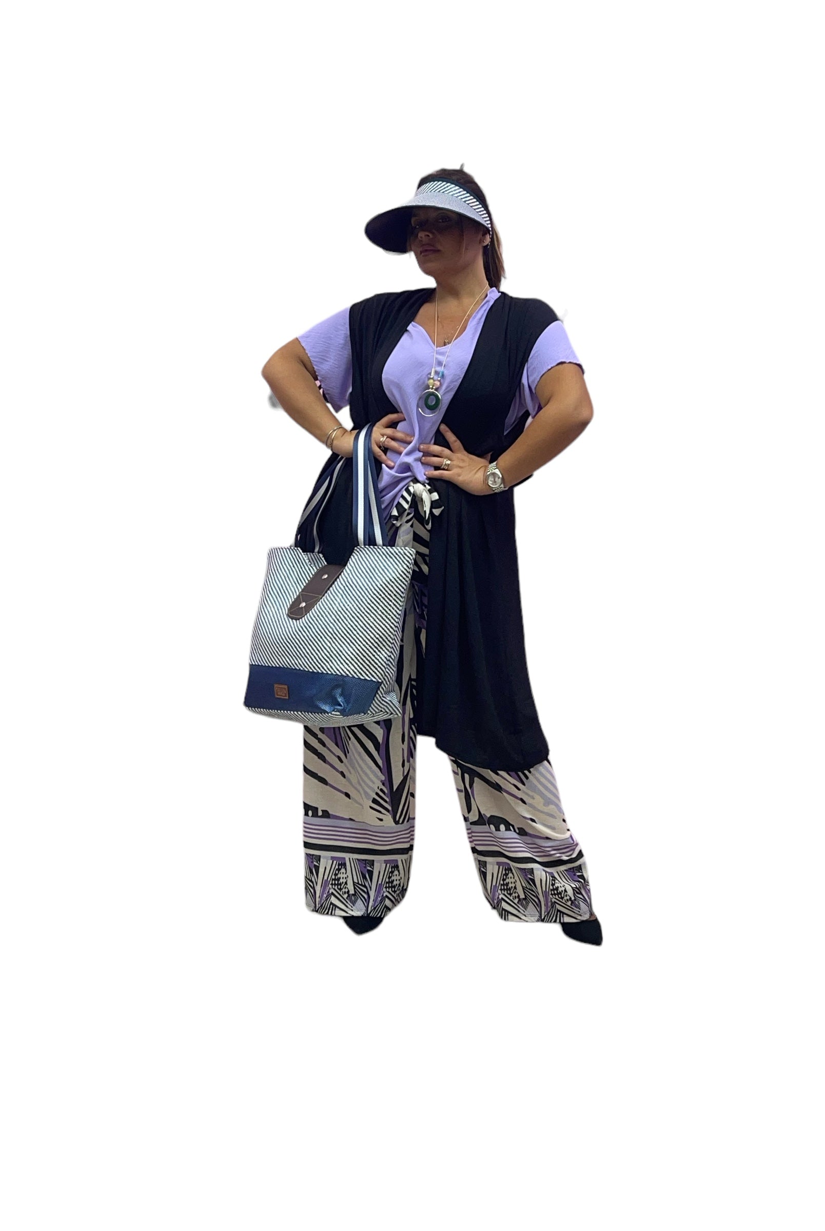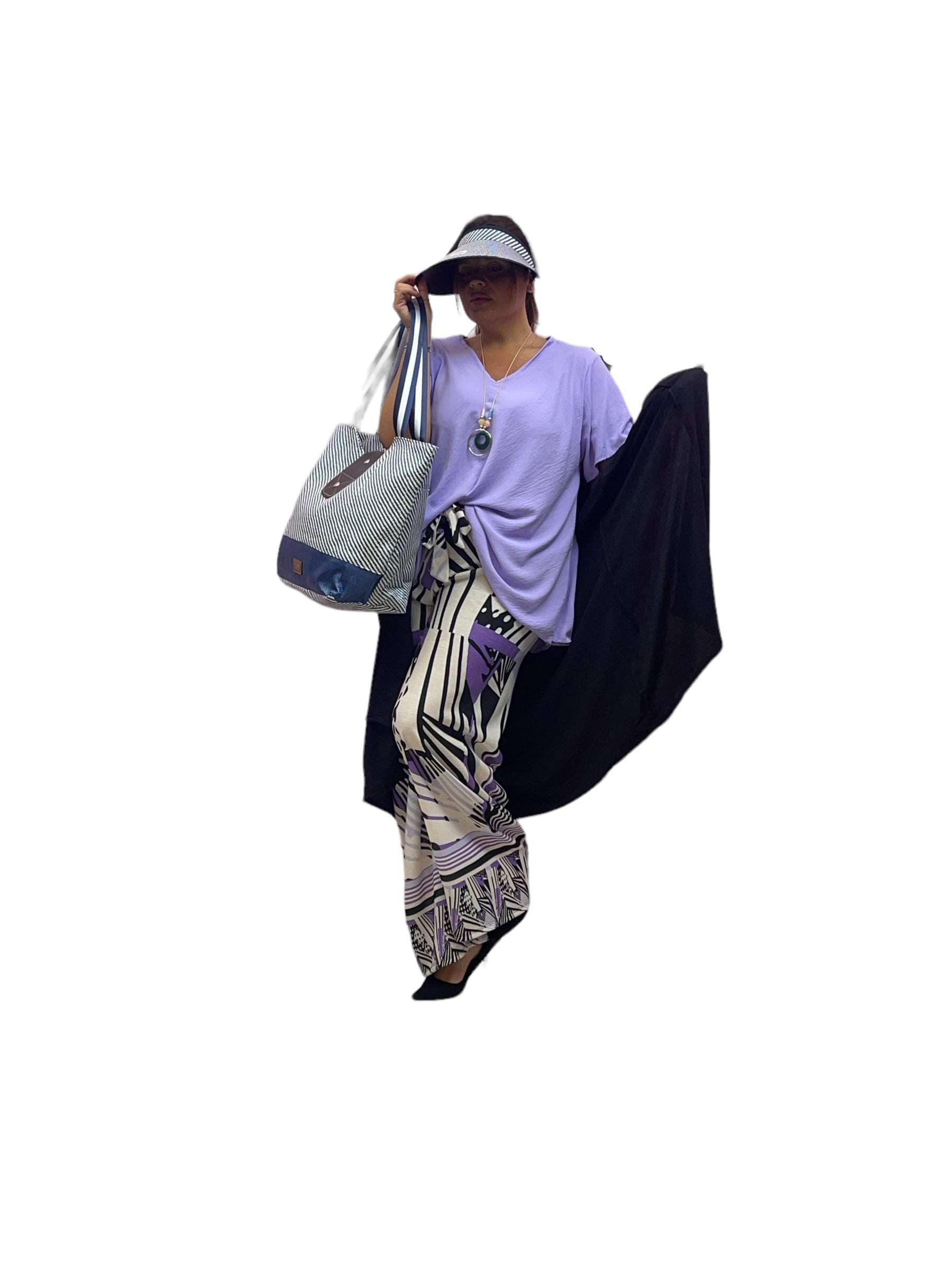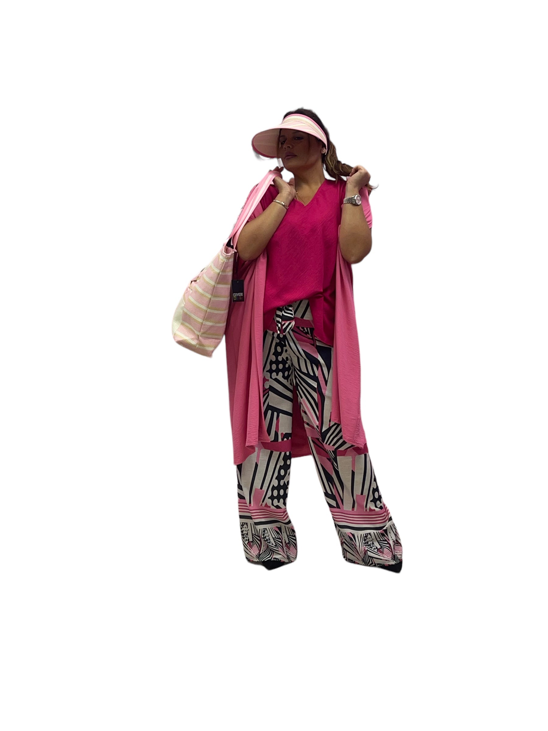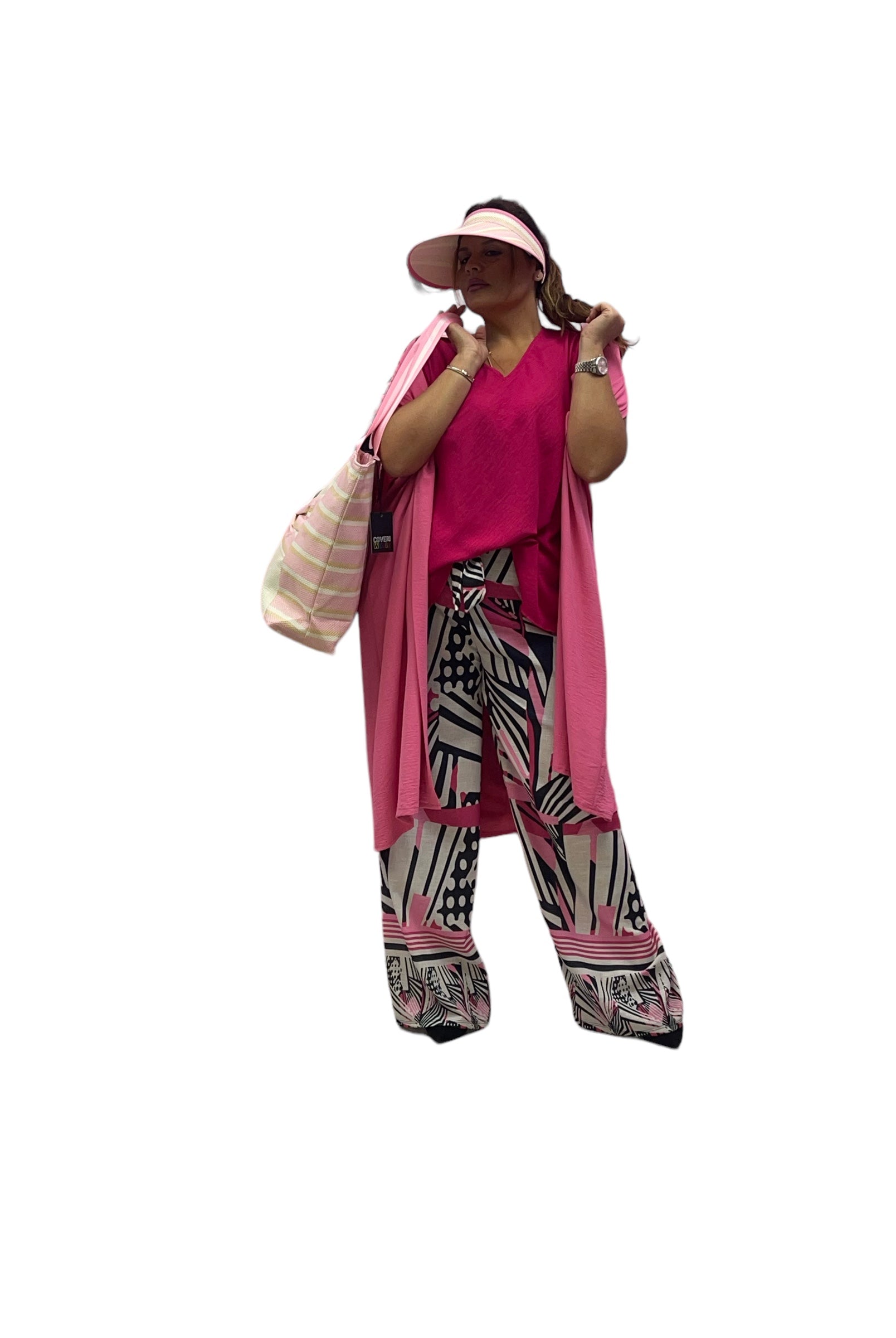 Pantaloni over fantasia con fiocco leggerissimo effetto garza