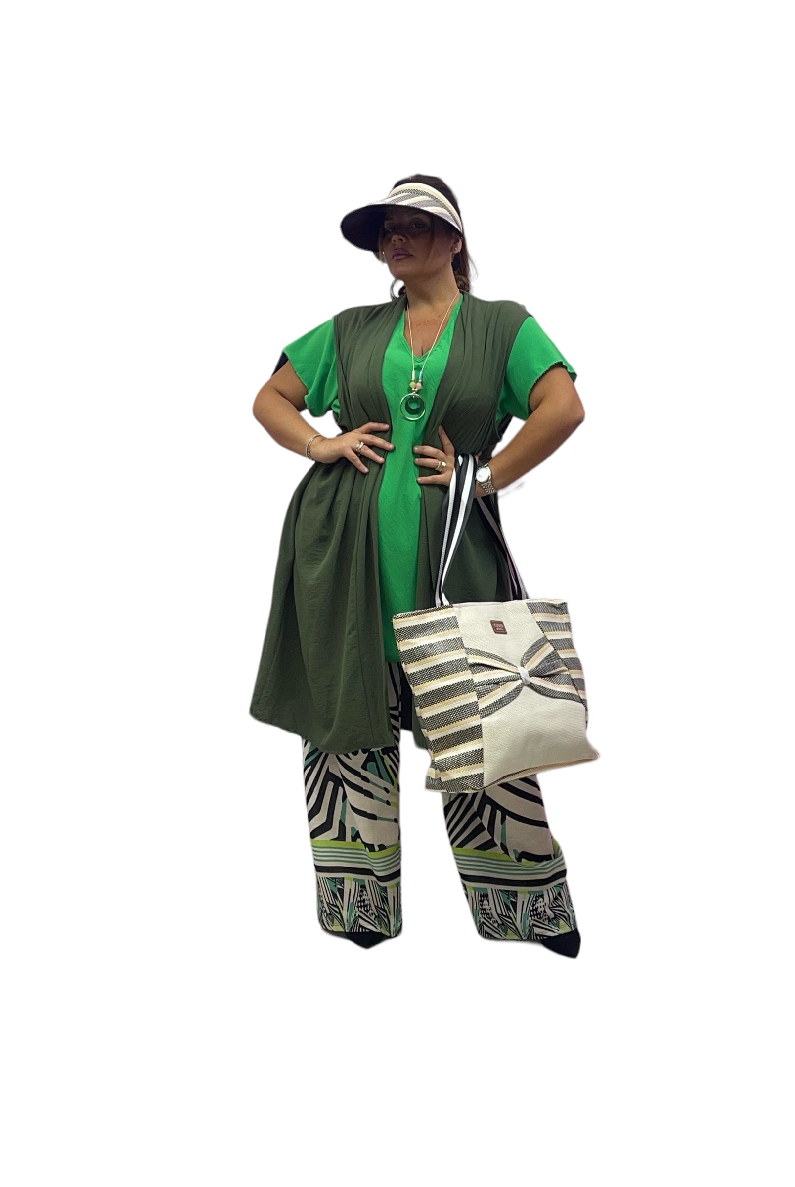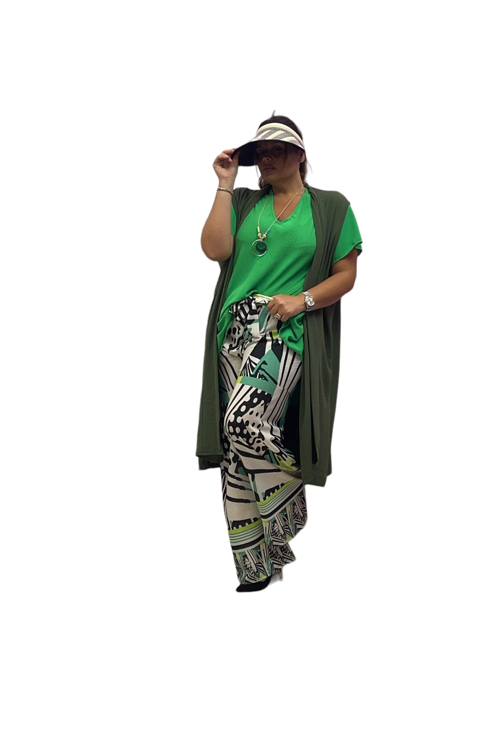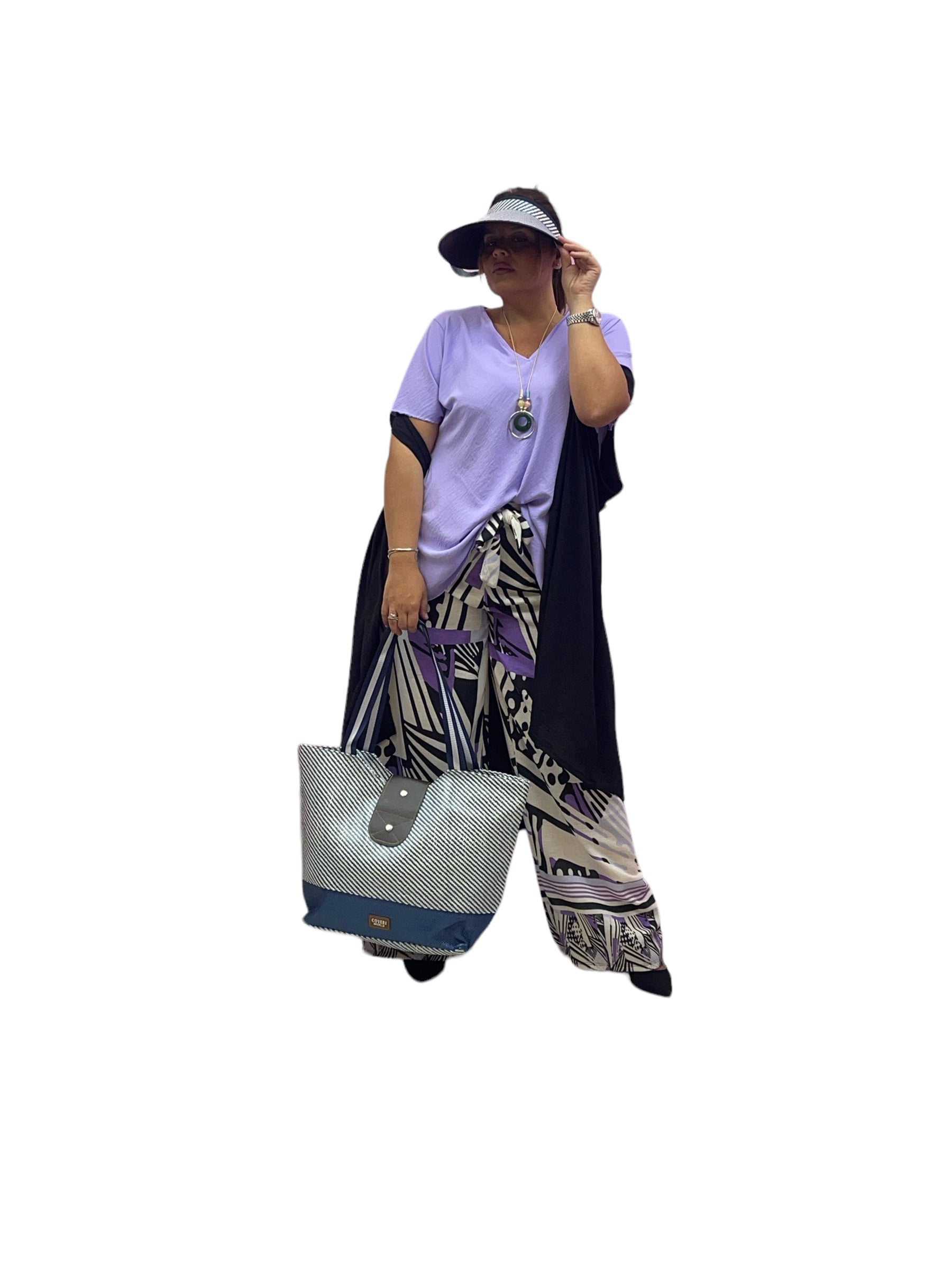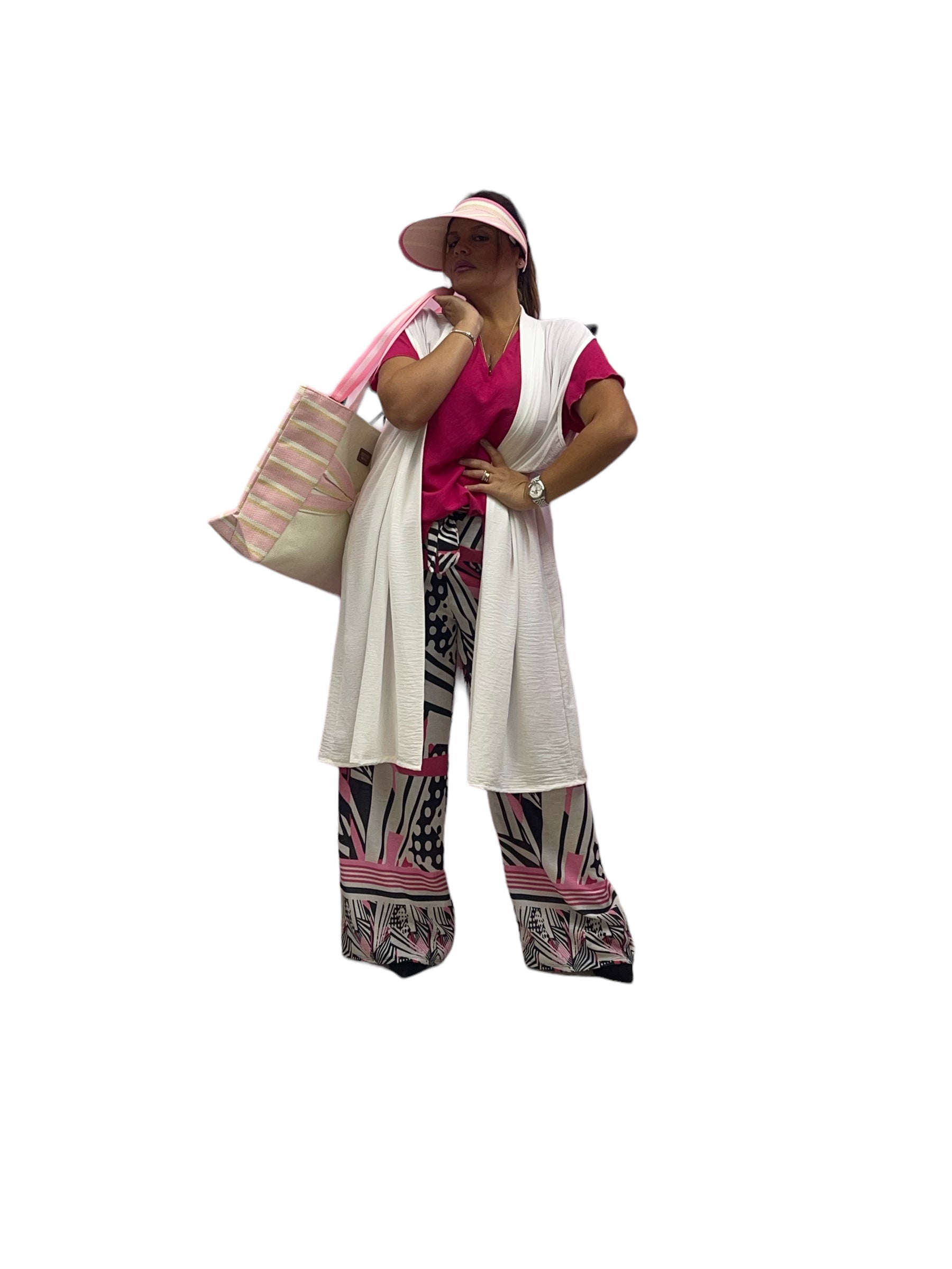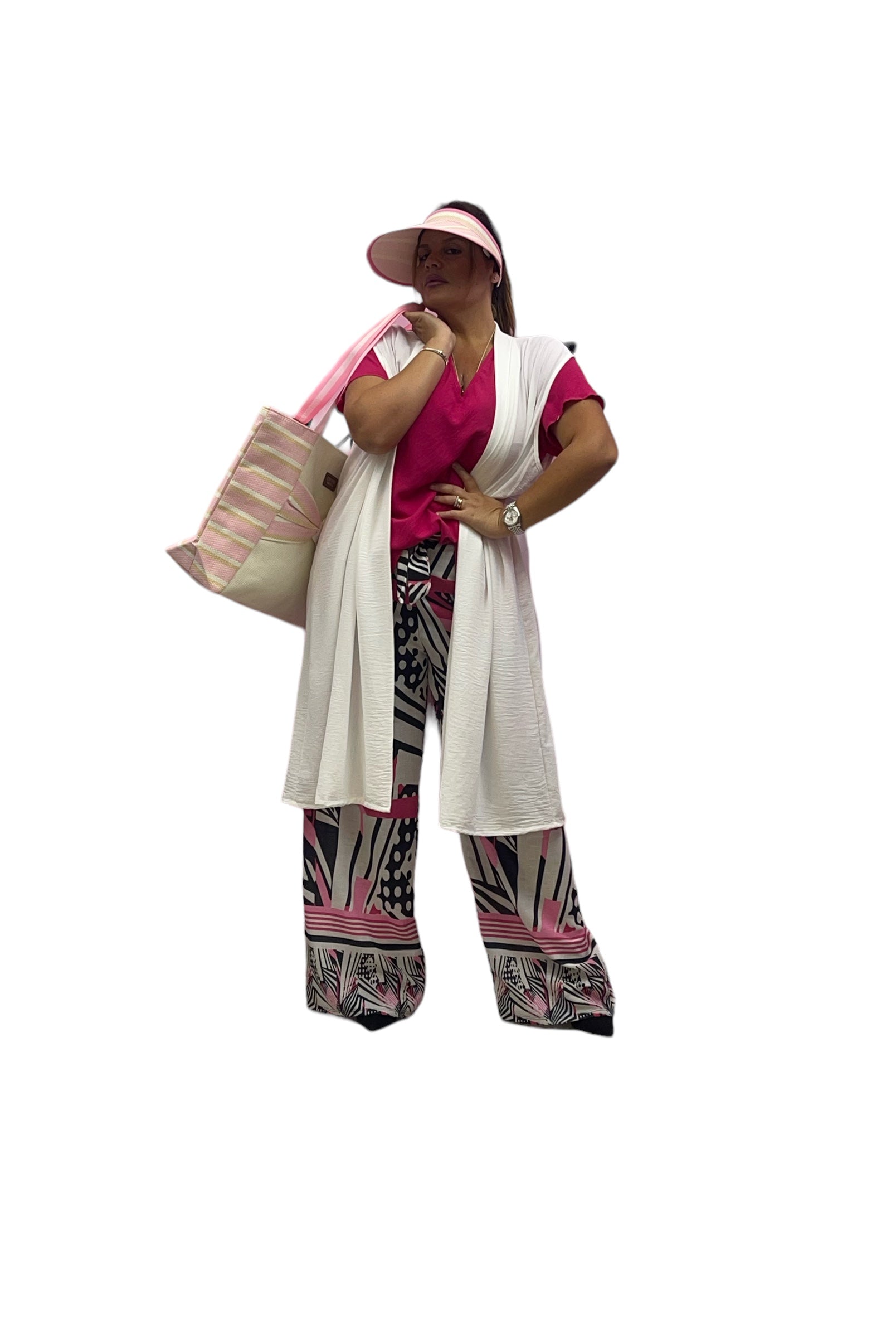 Pantaloni over fantasia con fiocco leggerissimo effetto garza