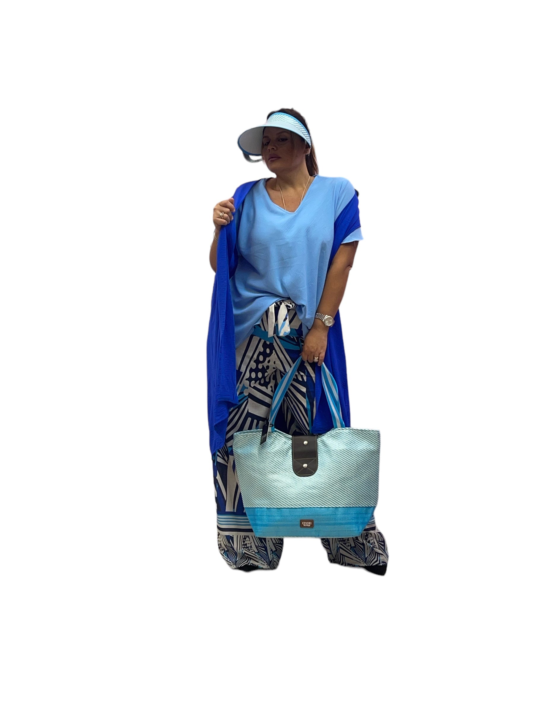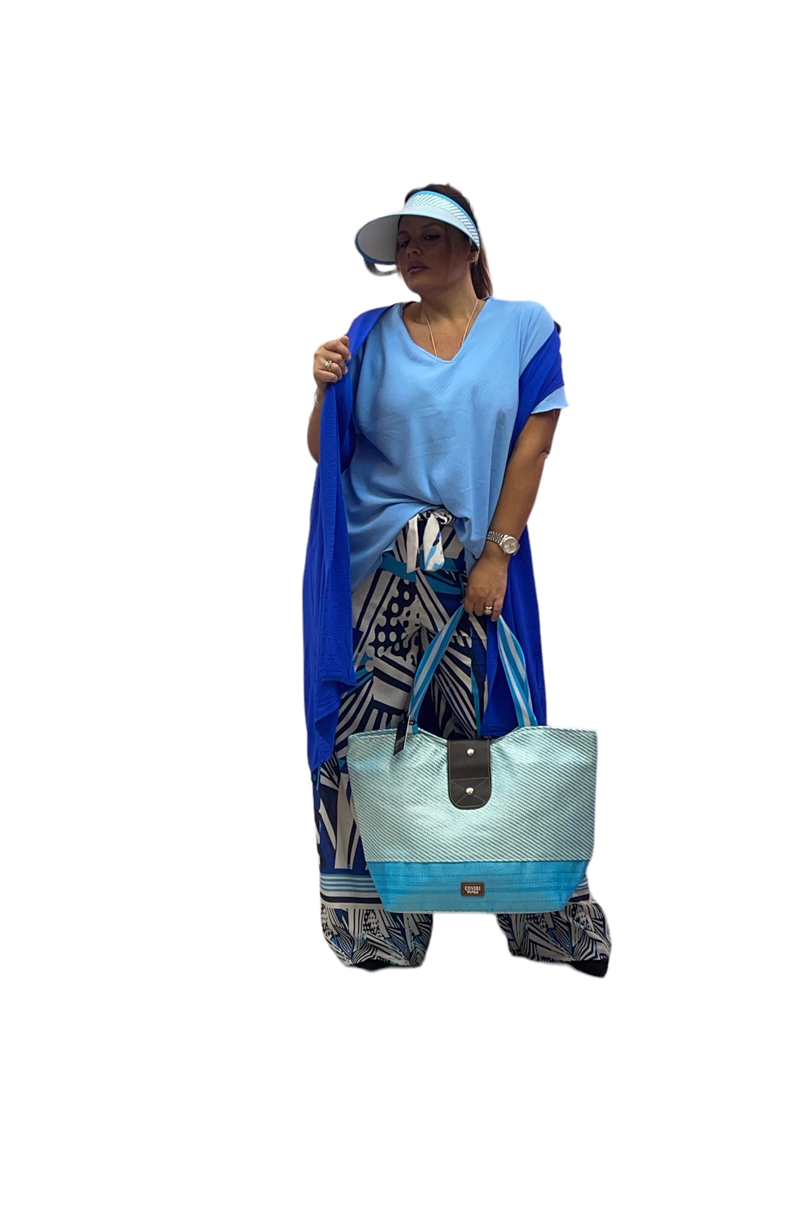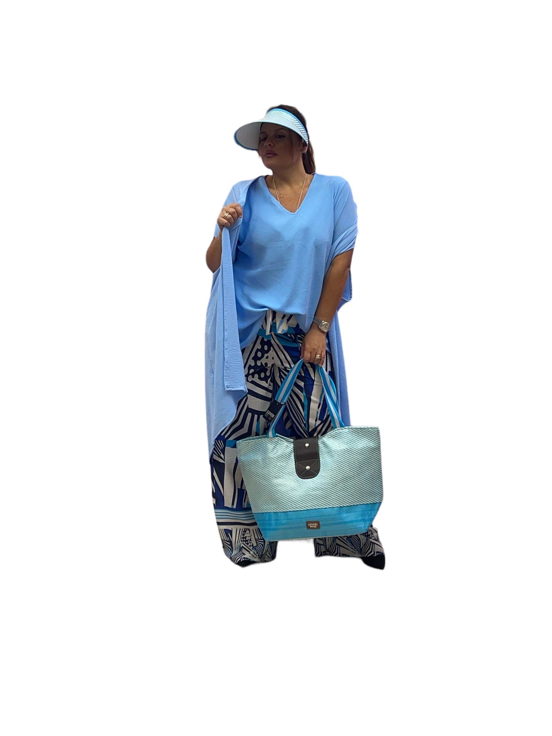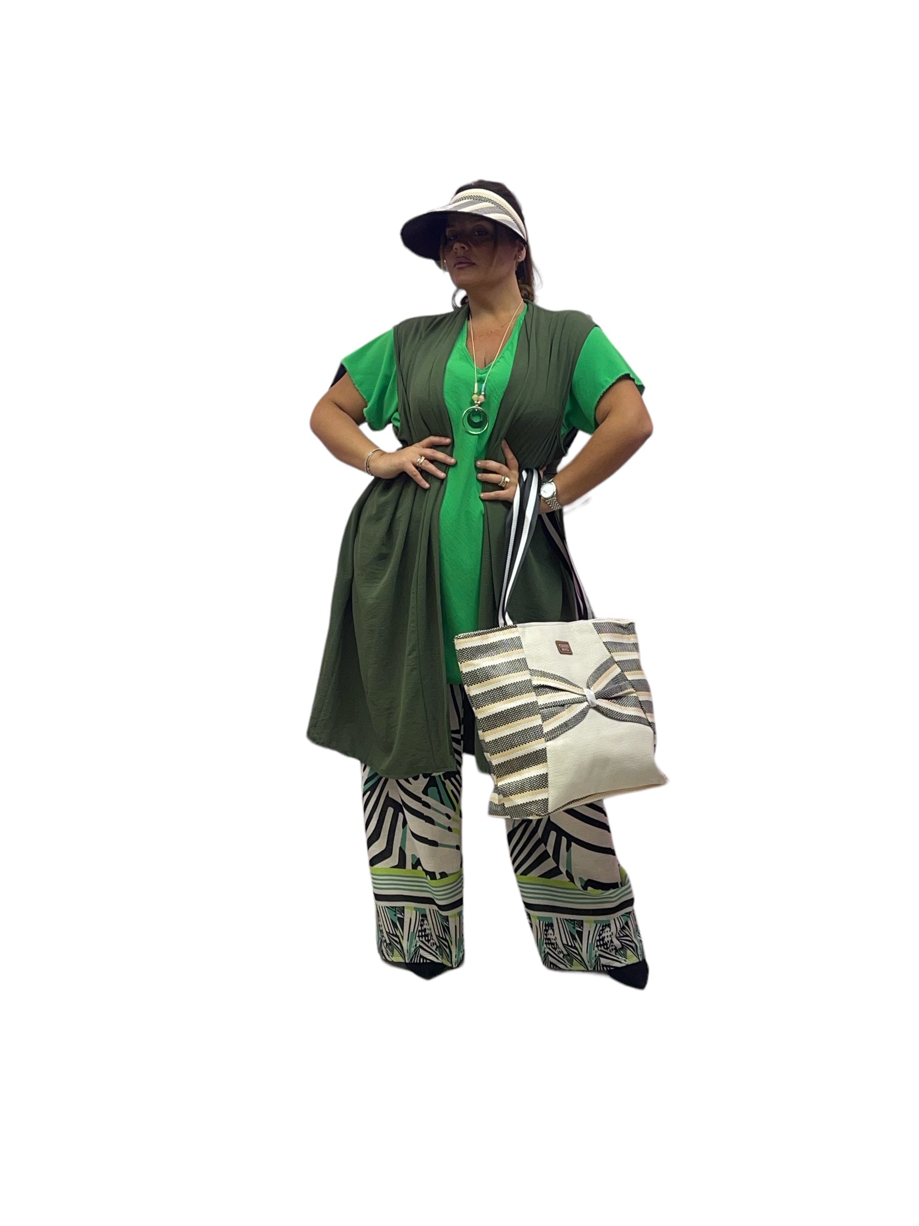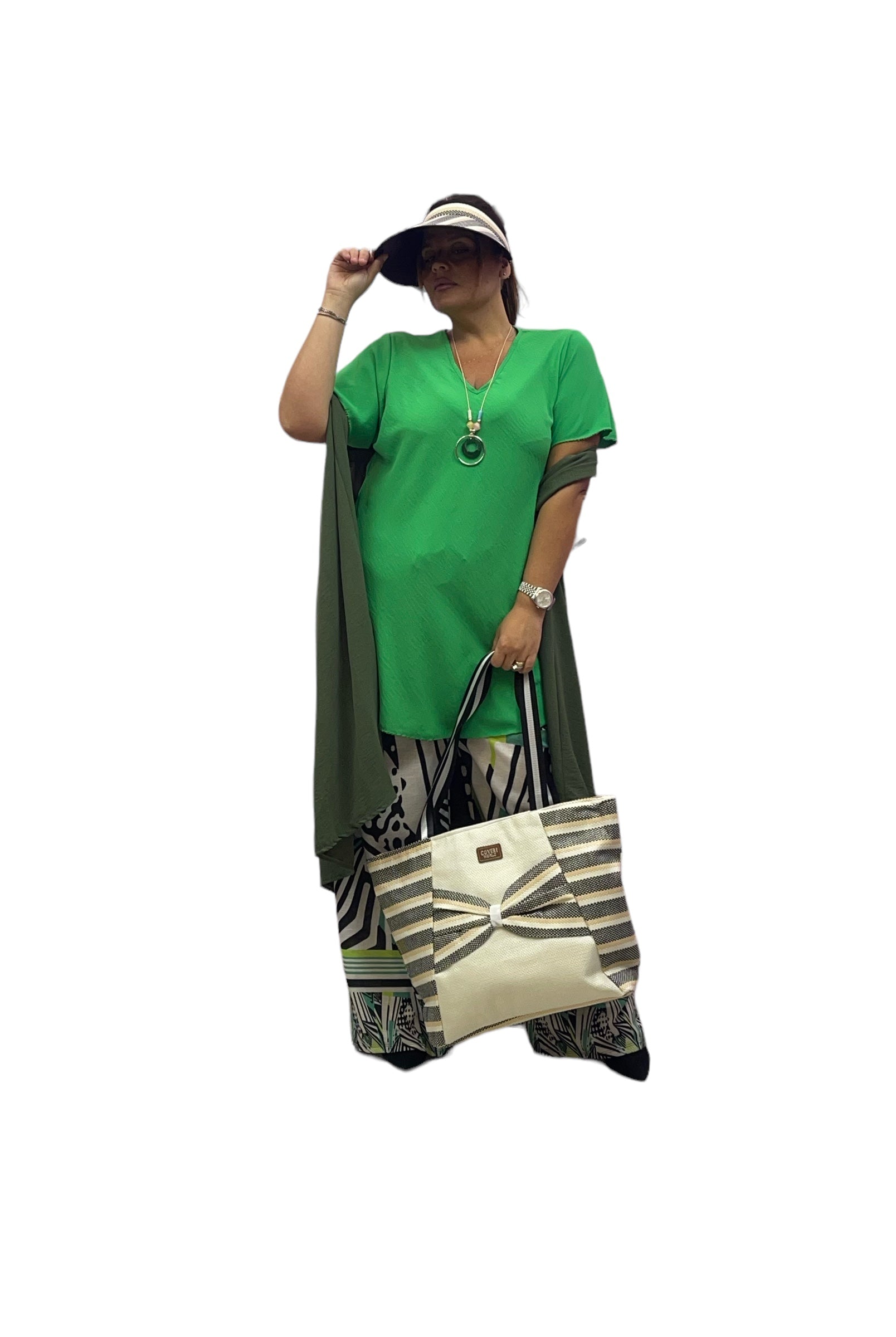 Pantaloni over fantasia con fiocco leggerissimo effetto garza
