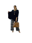 Pantaloni palazzo in jersey fantasia con elastico in vita