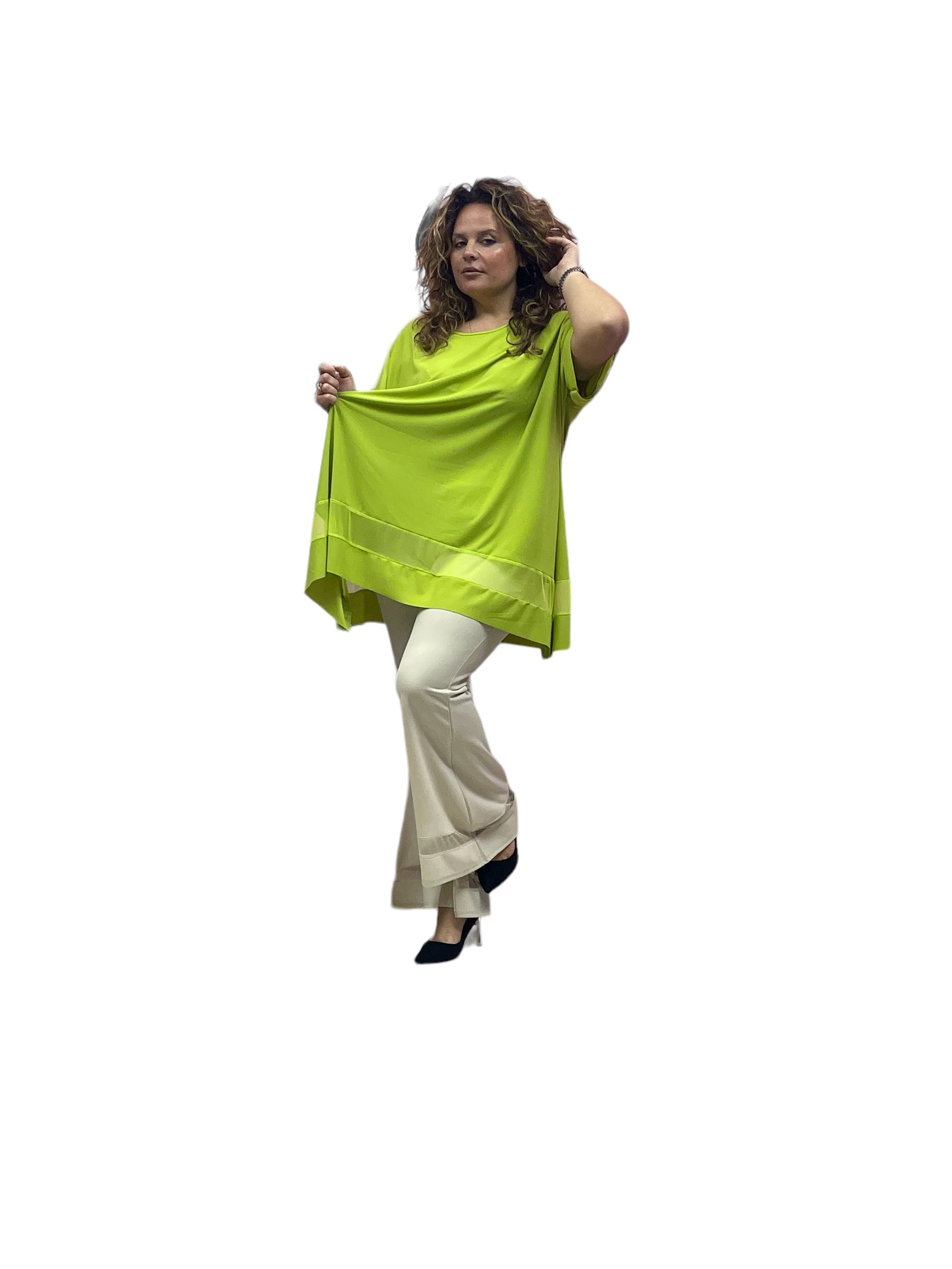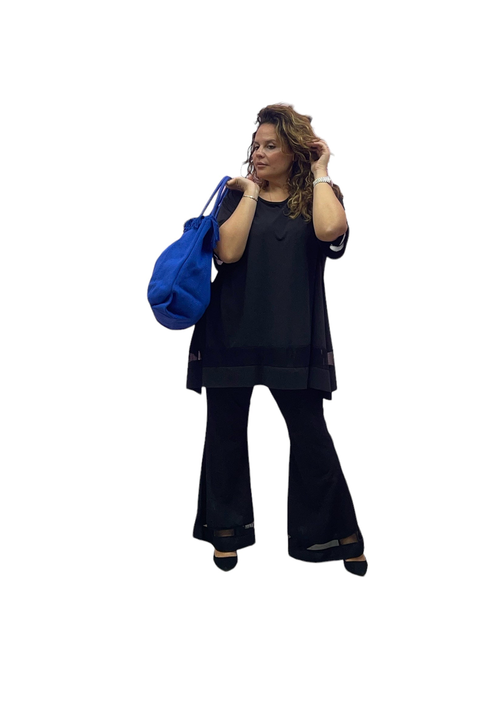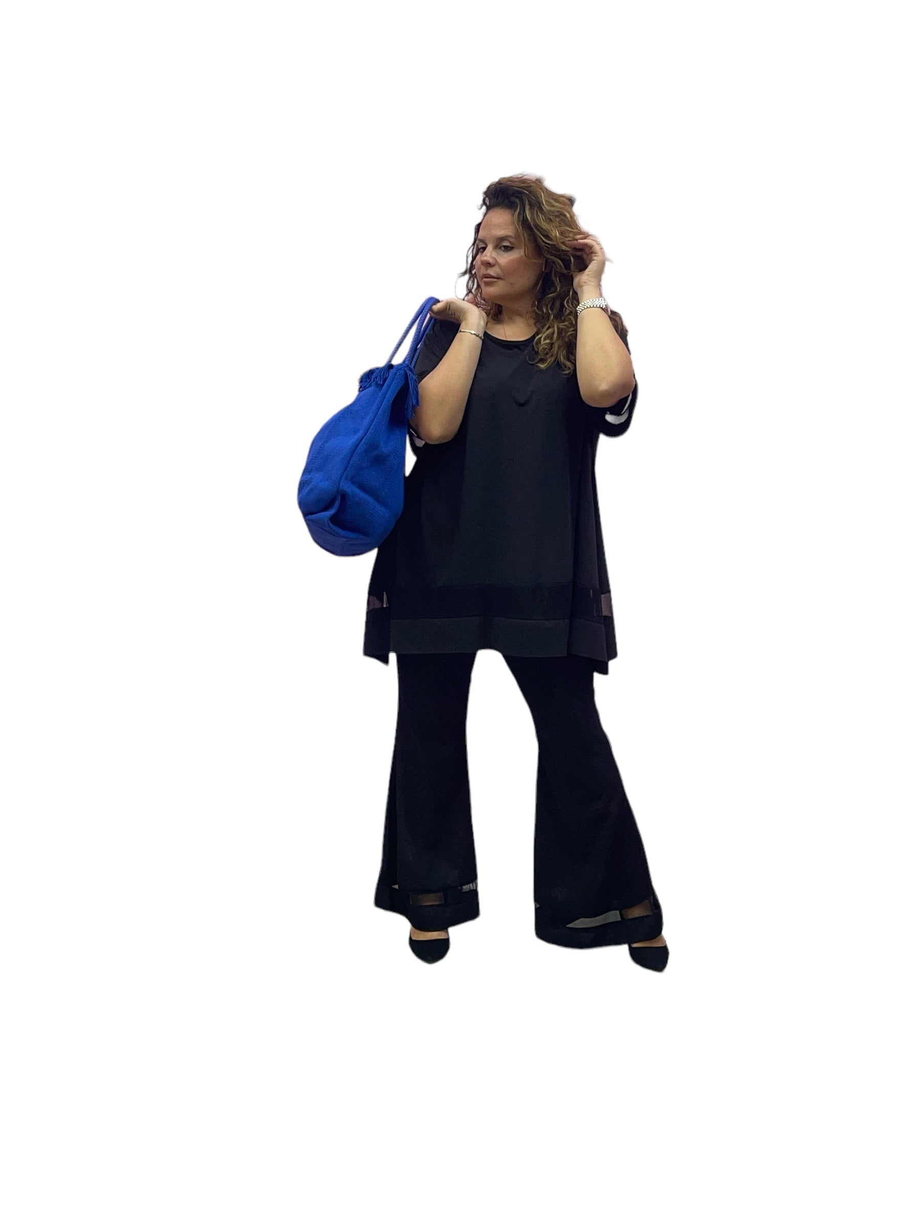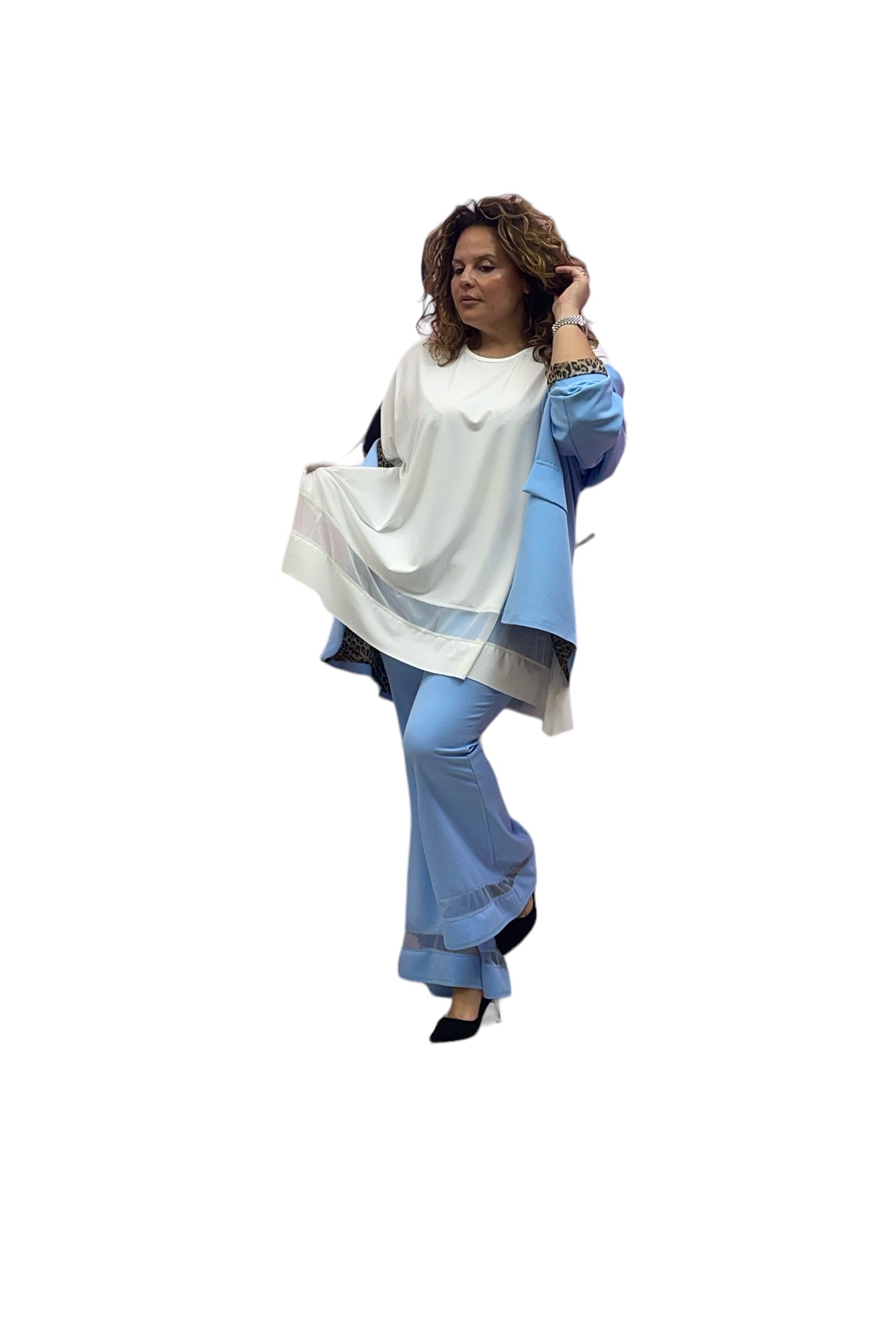 Pantaloni over a zampa con elastico in vita e fascia trasparente in organza alla caviglia