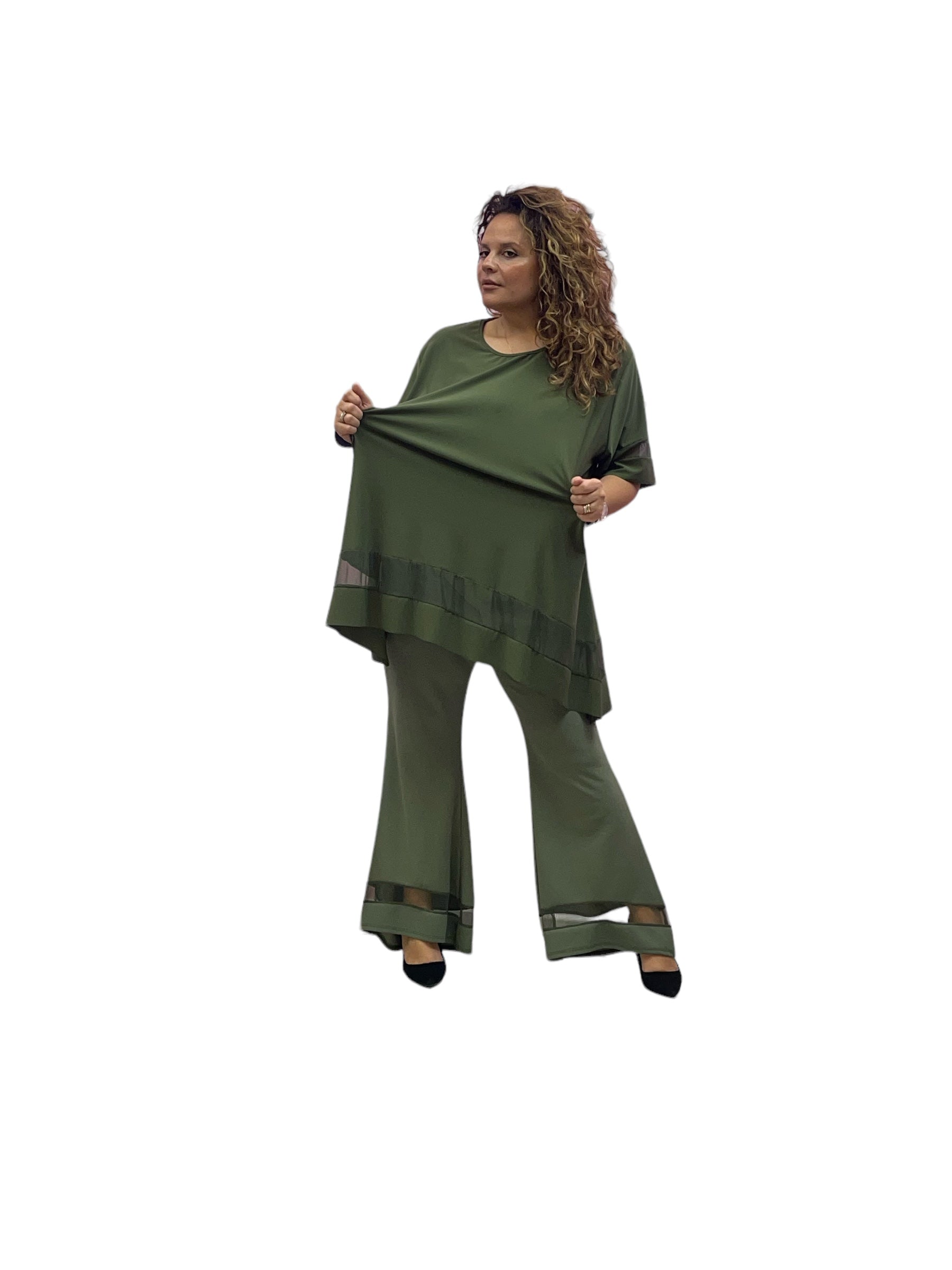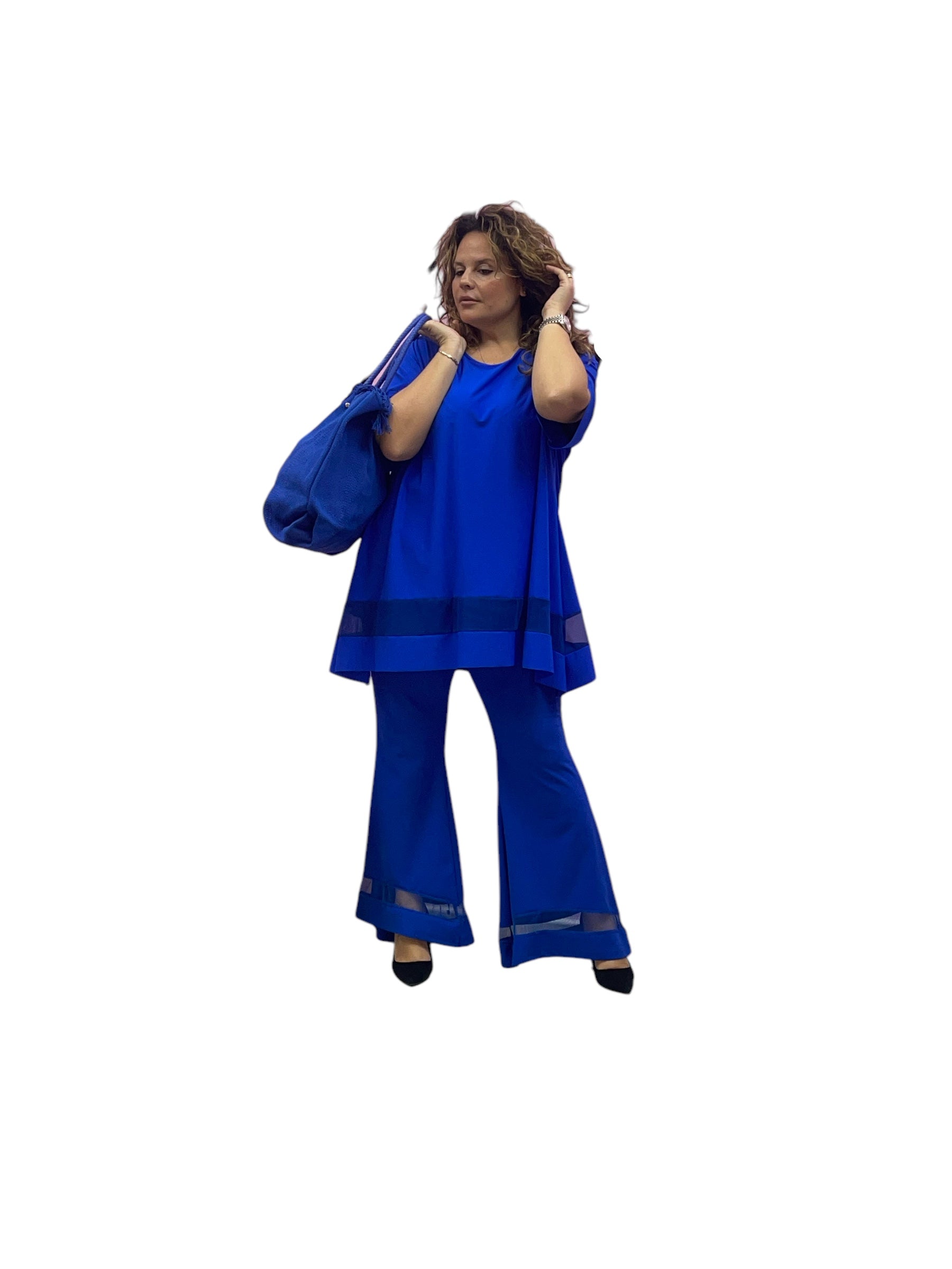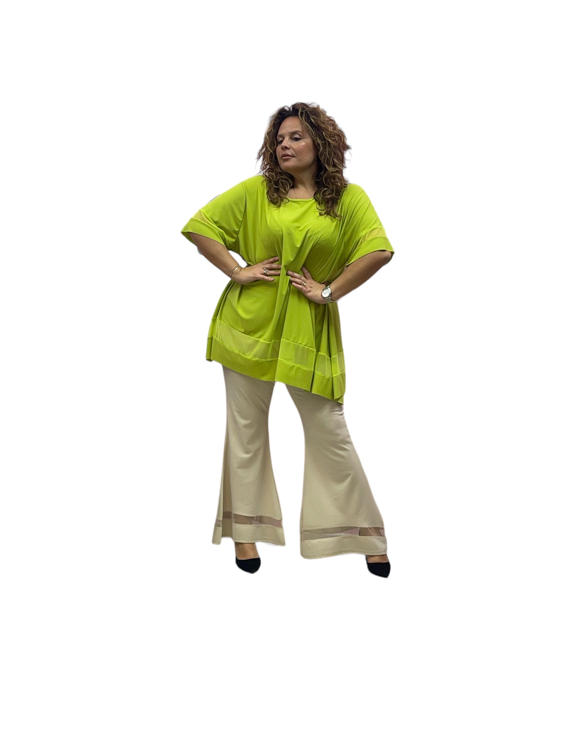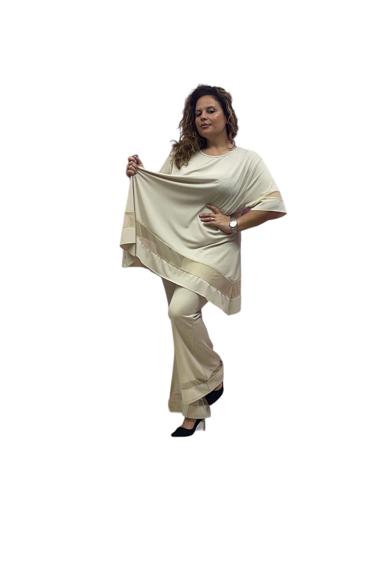 Pantaloni over a zampa con elastico in vita e fascia trasparente in organza alla caviglia