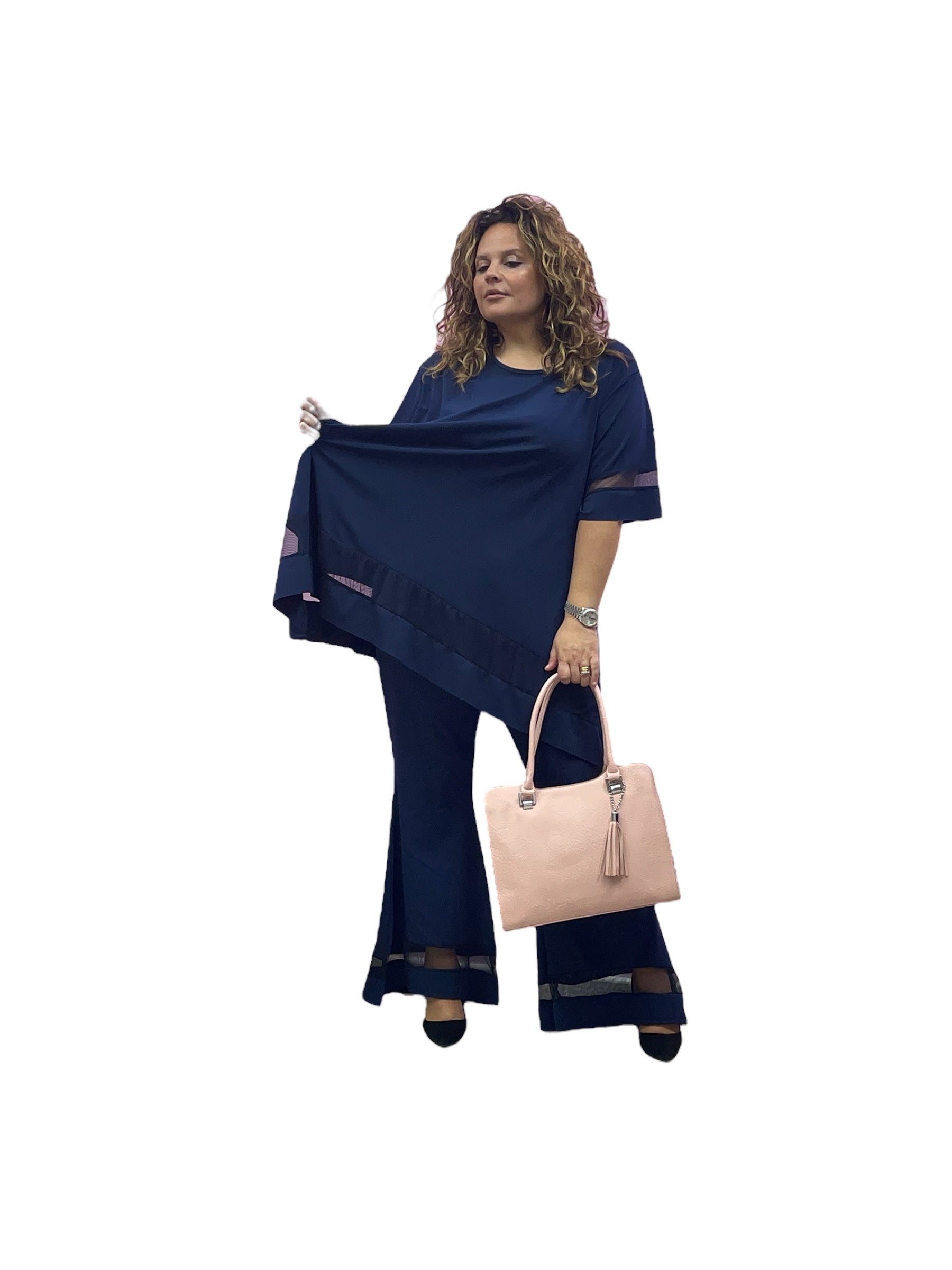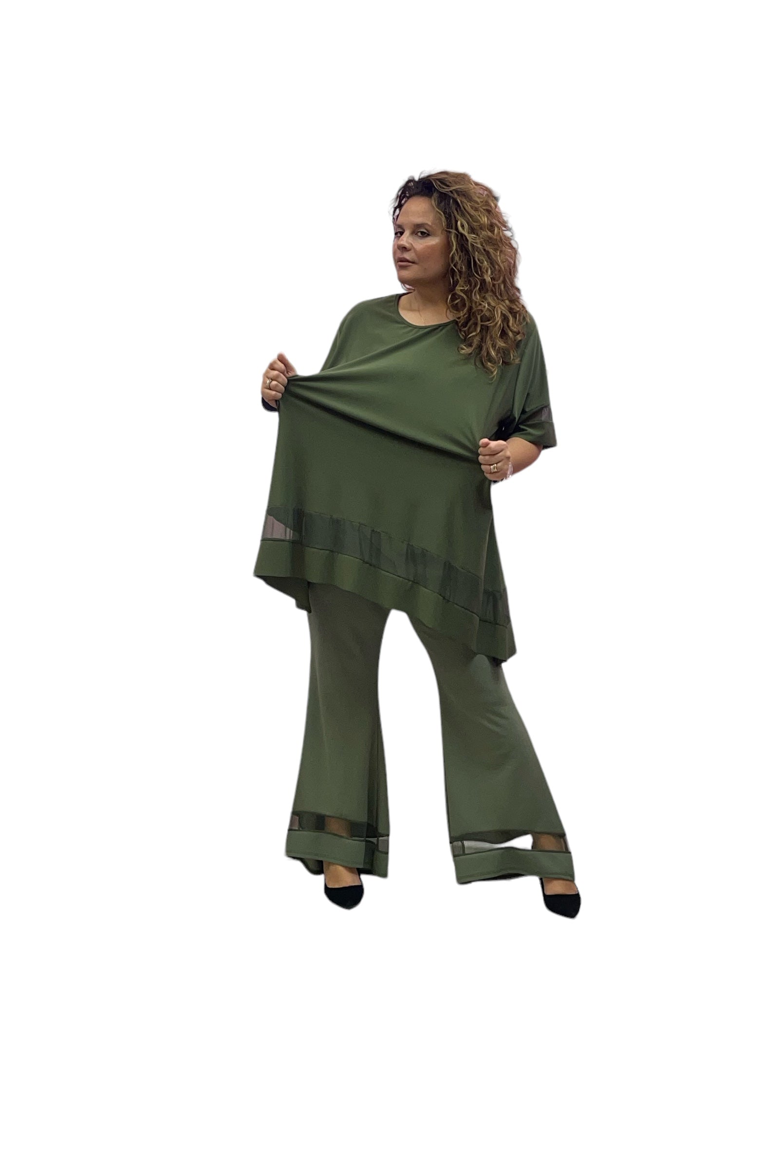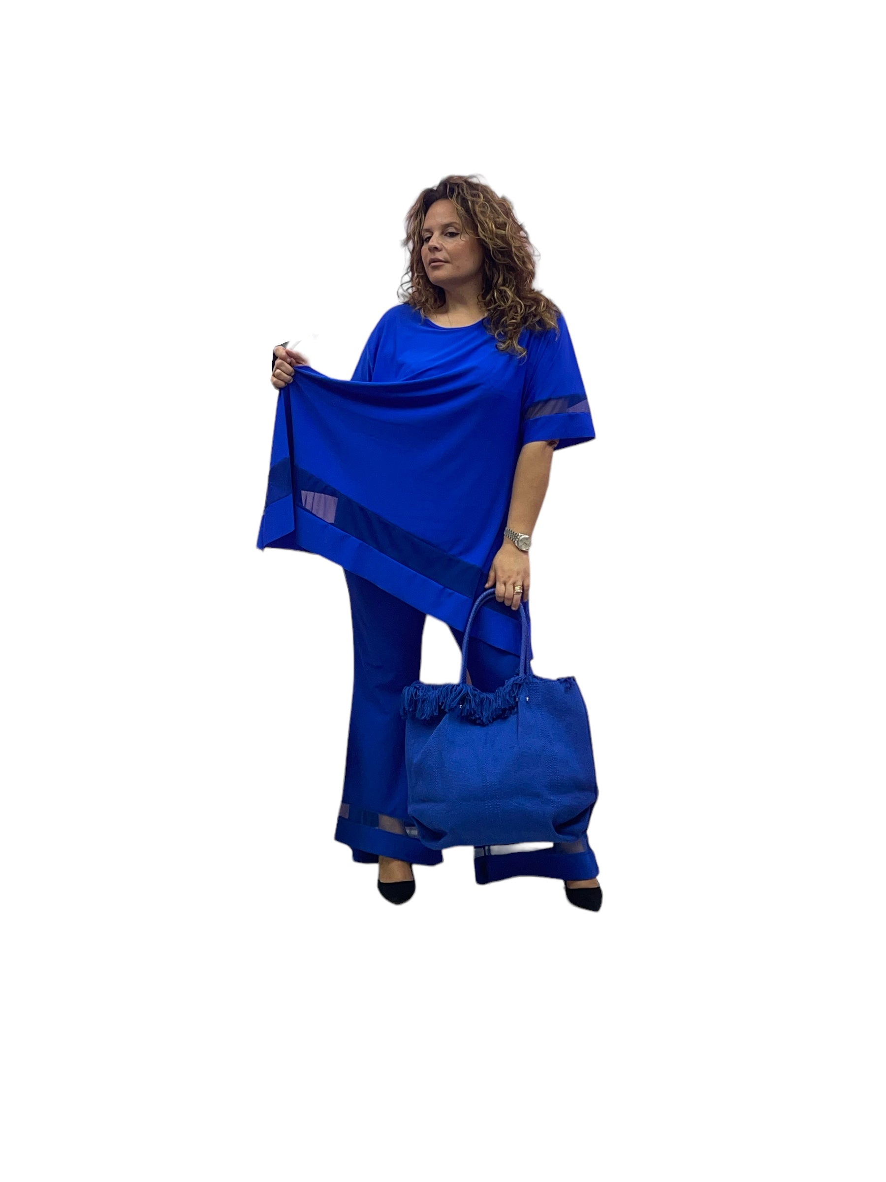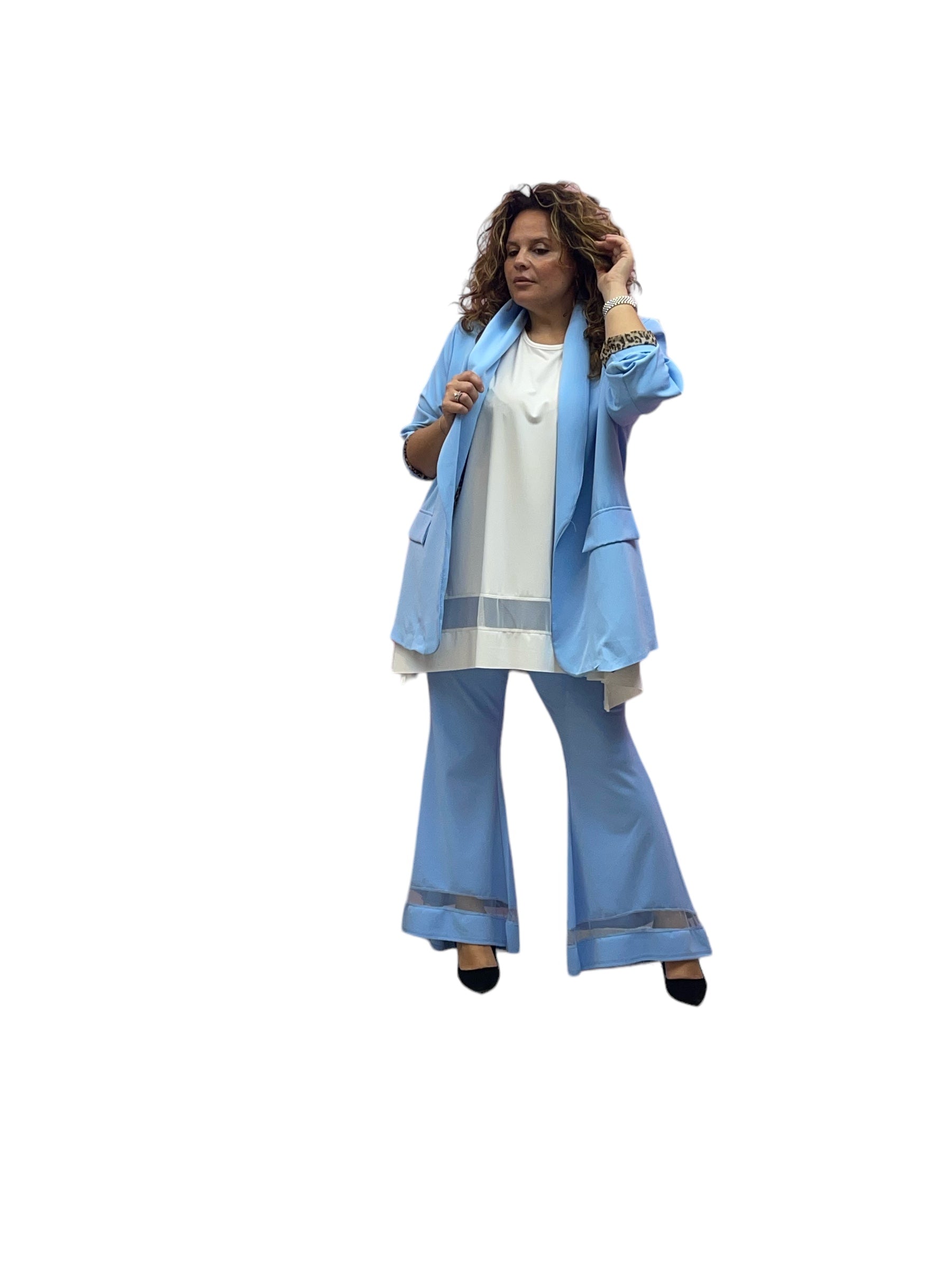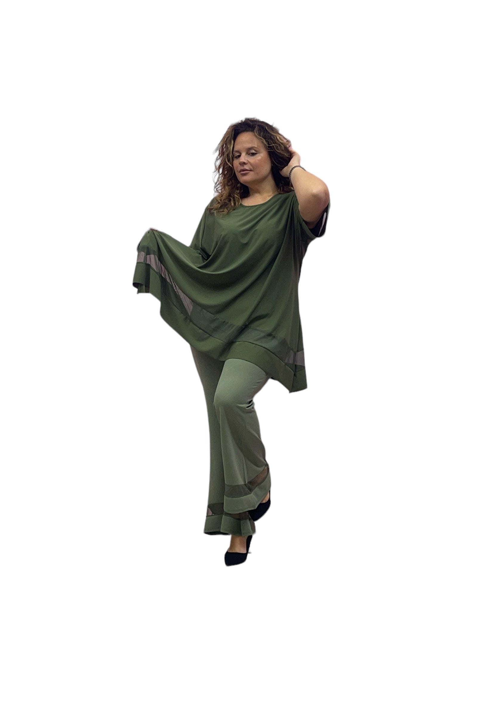 Pantaloni over a zampa con elastico in vita e fascia trasparente in organza alla caviglia