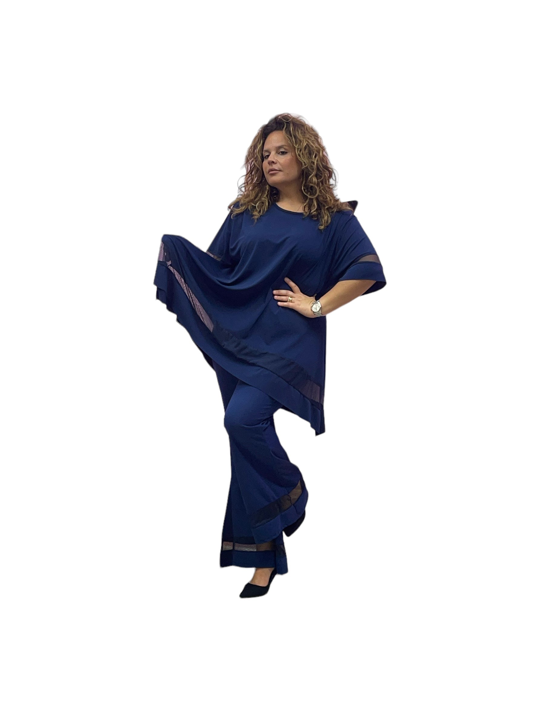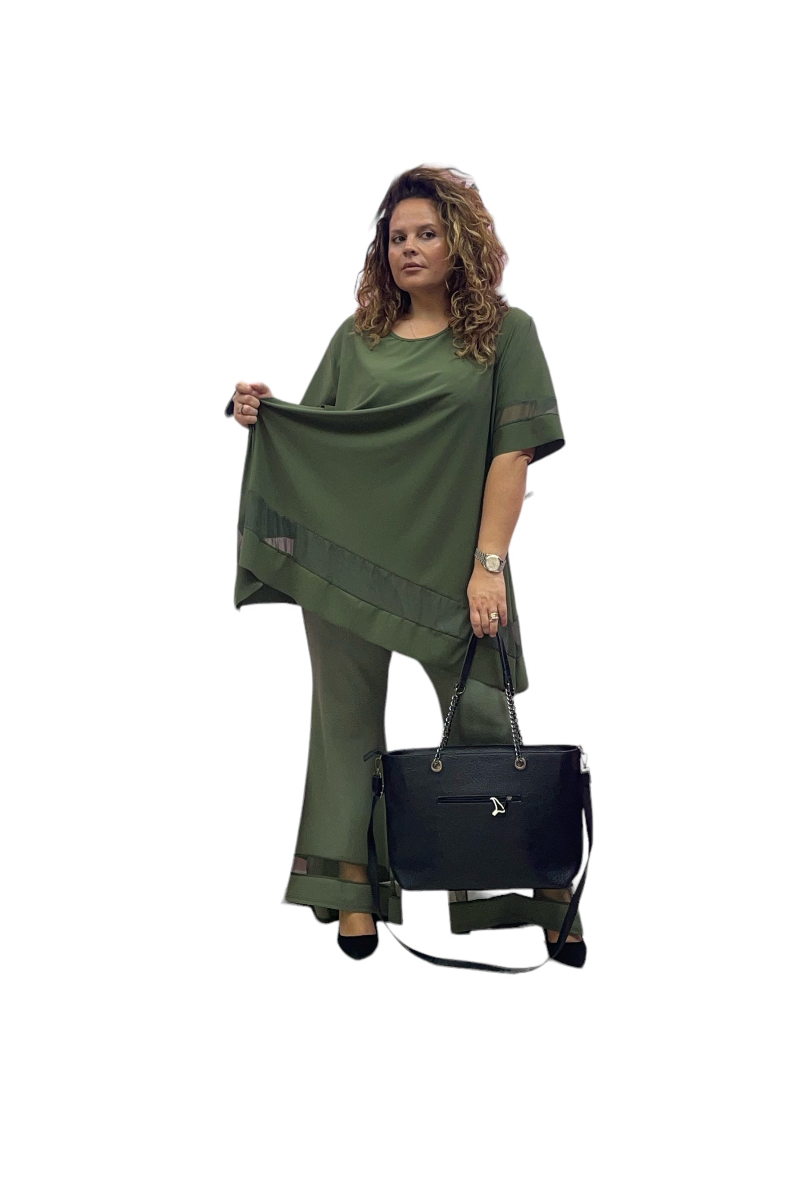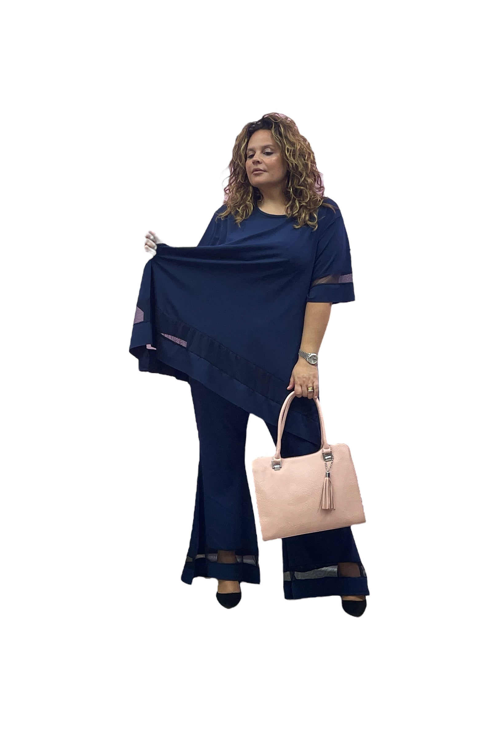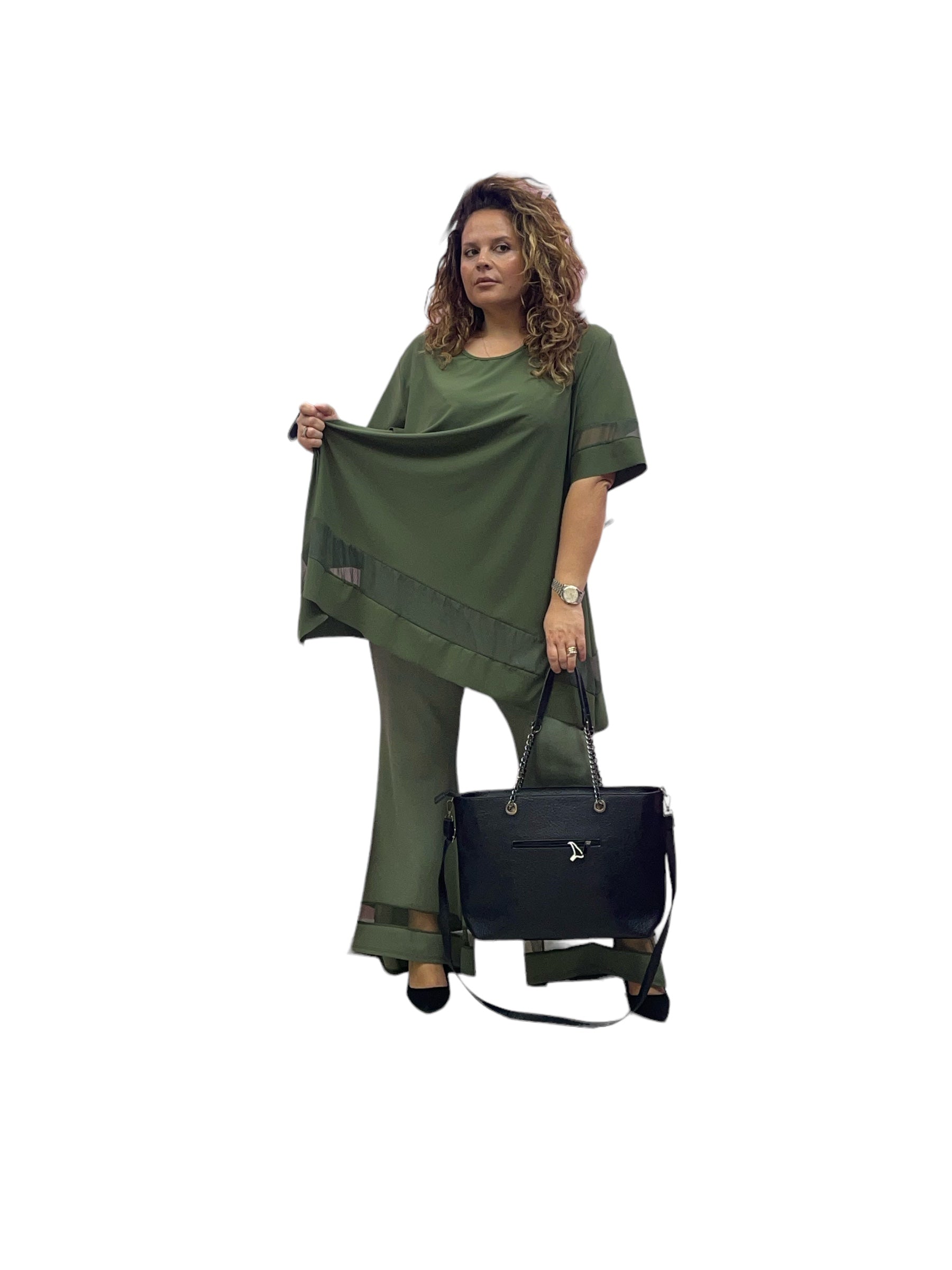 Pantaloni over a zampa con elastico in vita e fascia trasparente in organza alla caviglia