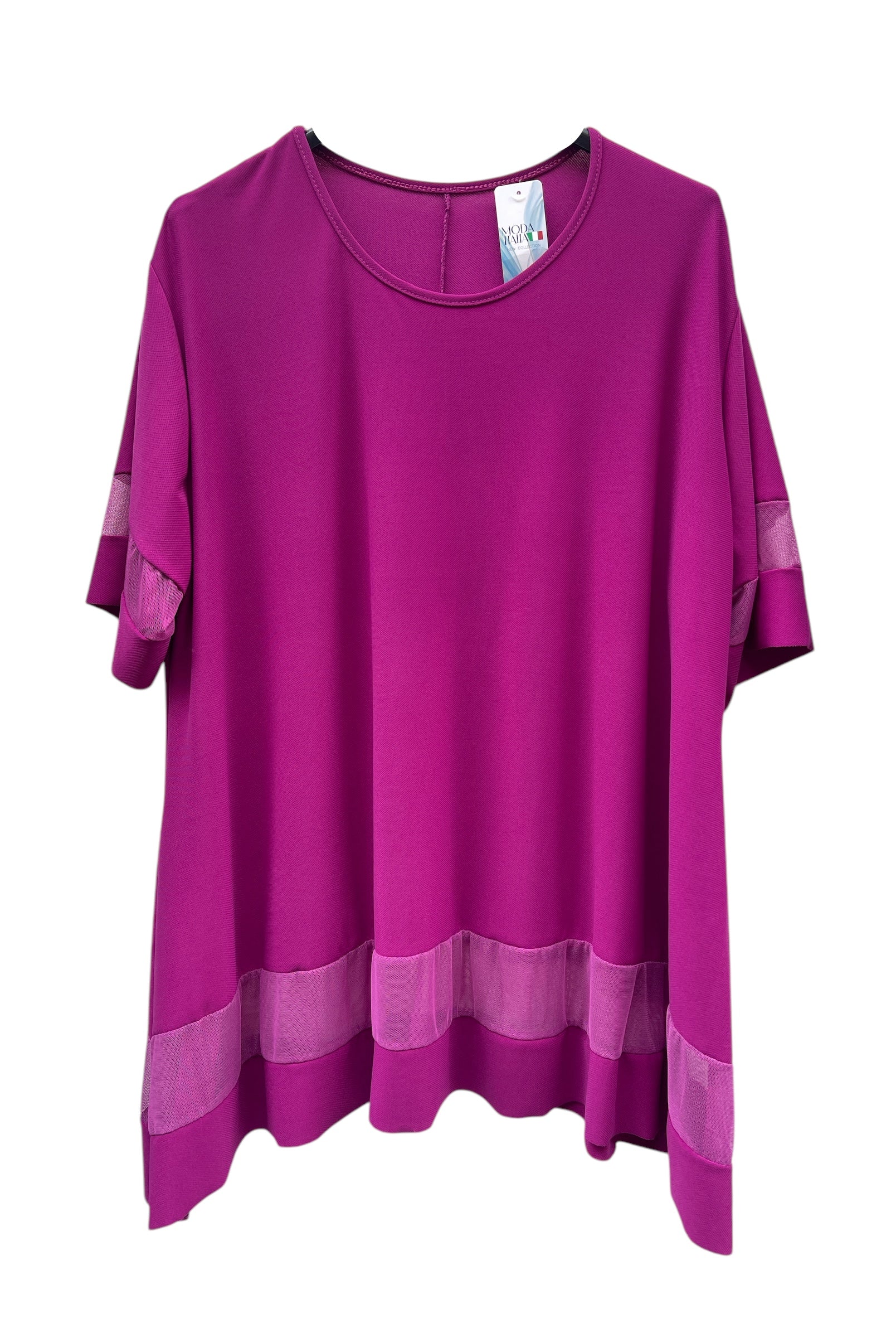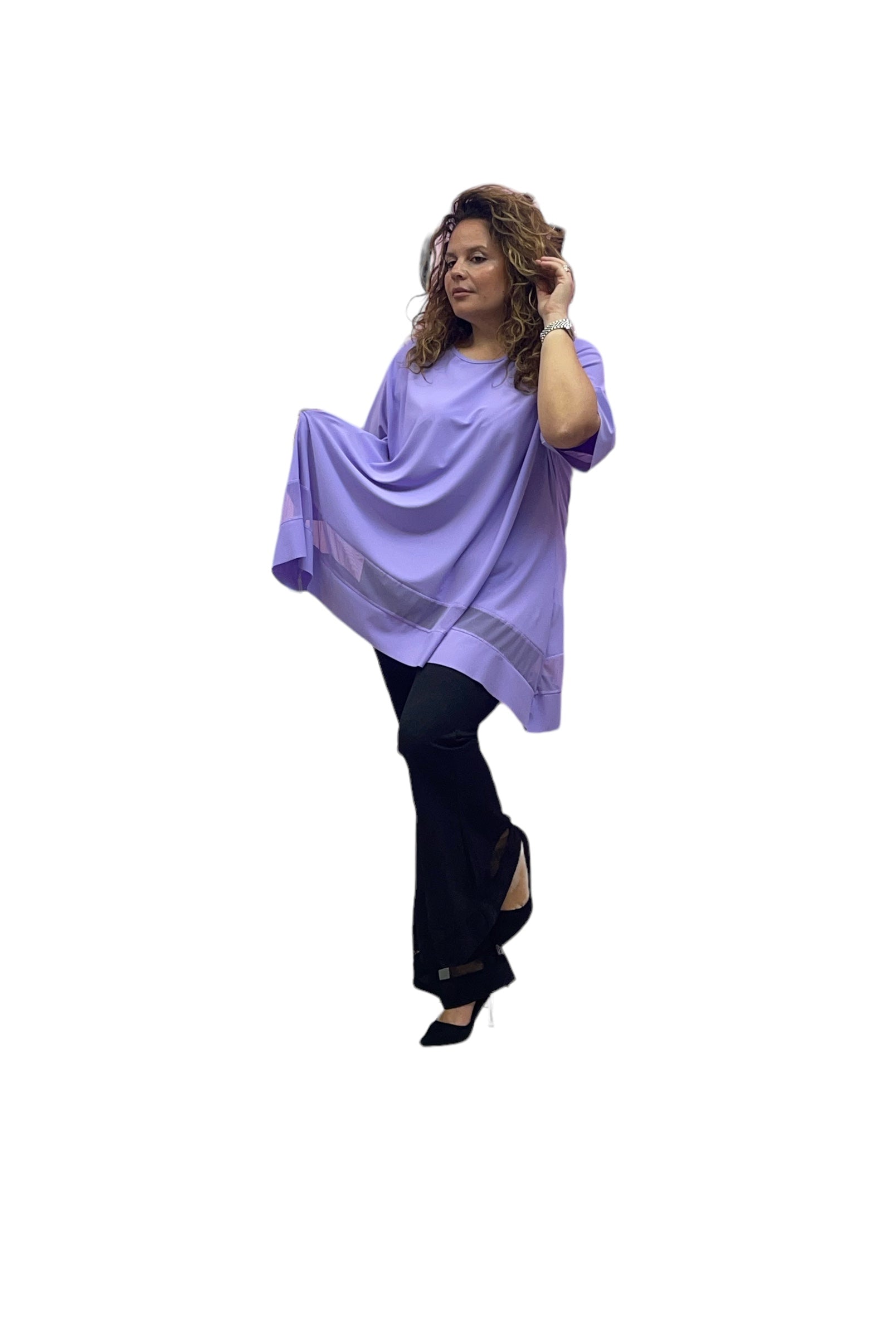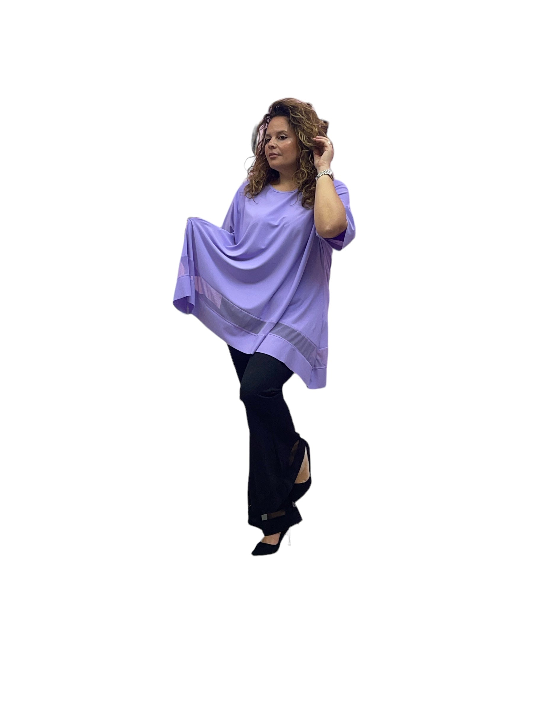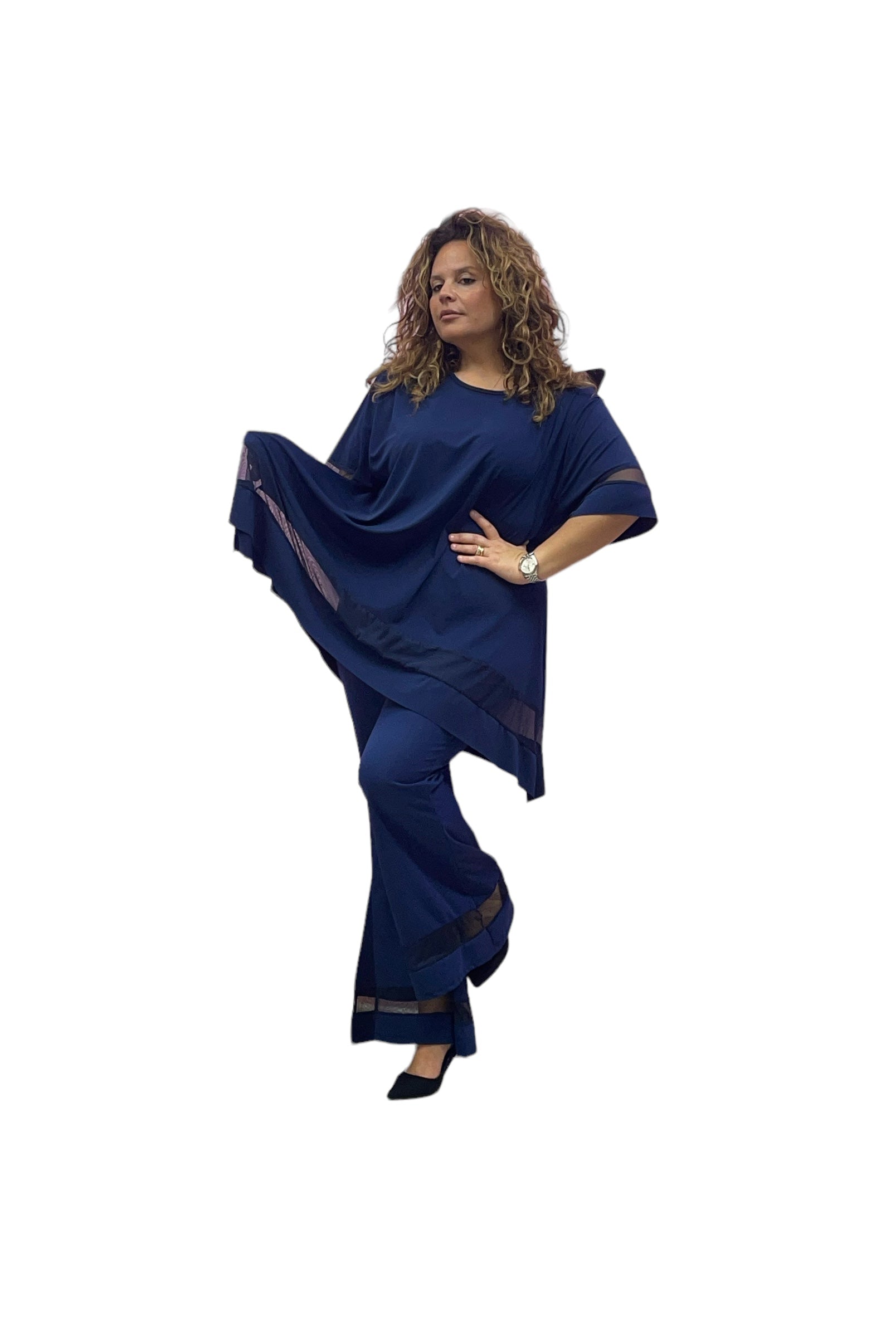 Pantaloni over a zampa con elastico in vita e fascia trasparente in organza alla caviglia