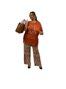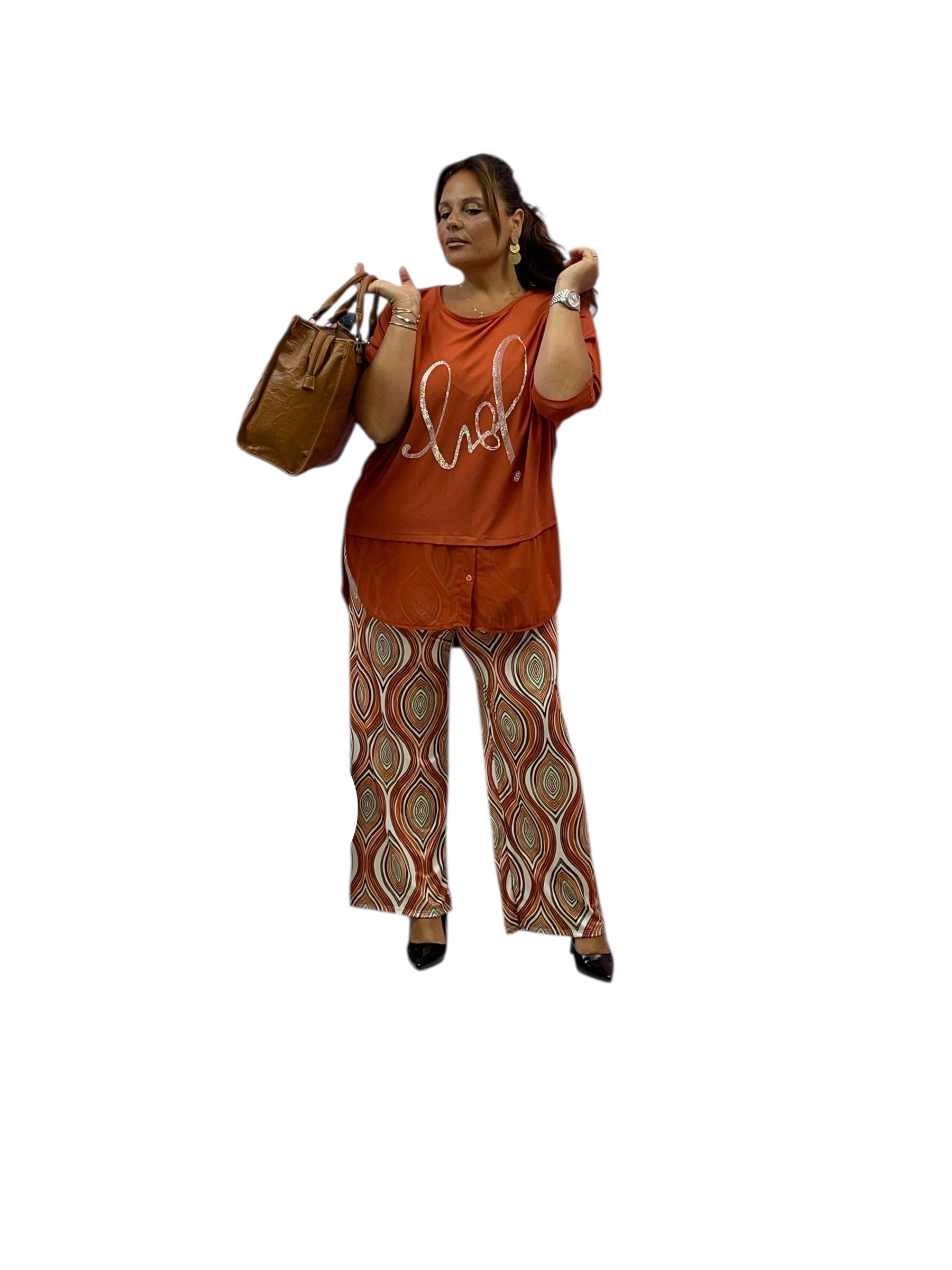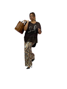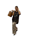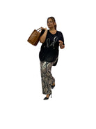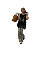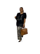 Pantaloni fantasia in jersey modello palazzo con elastico in vita
