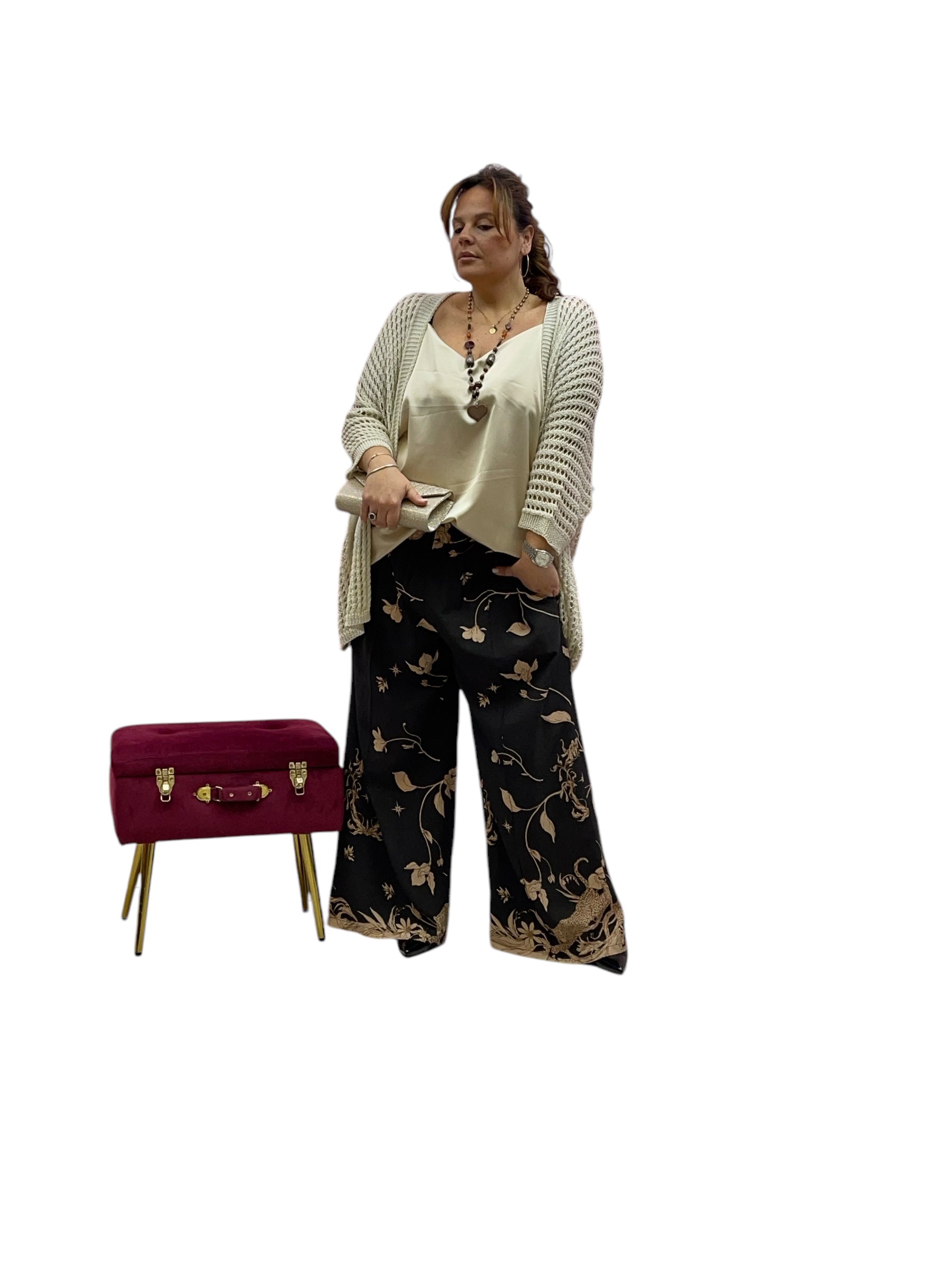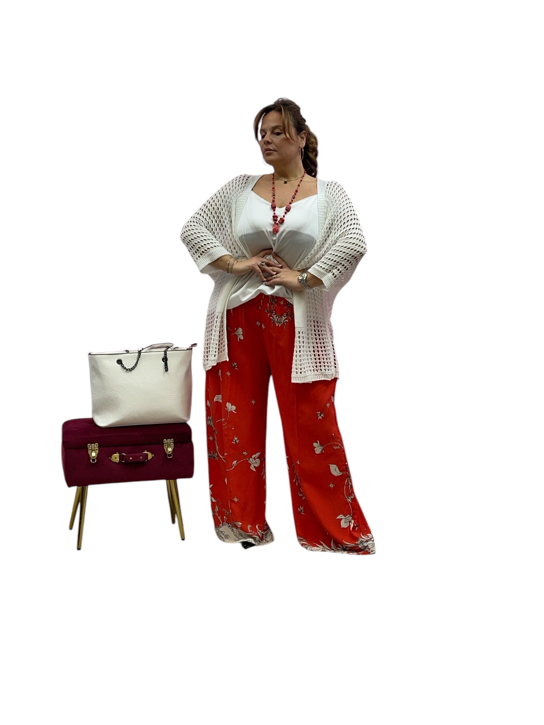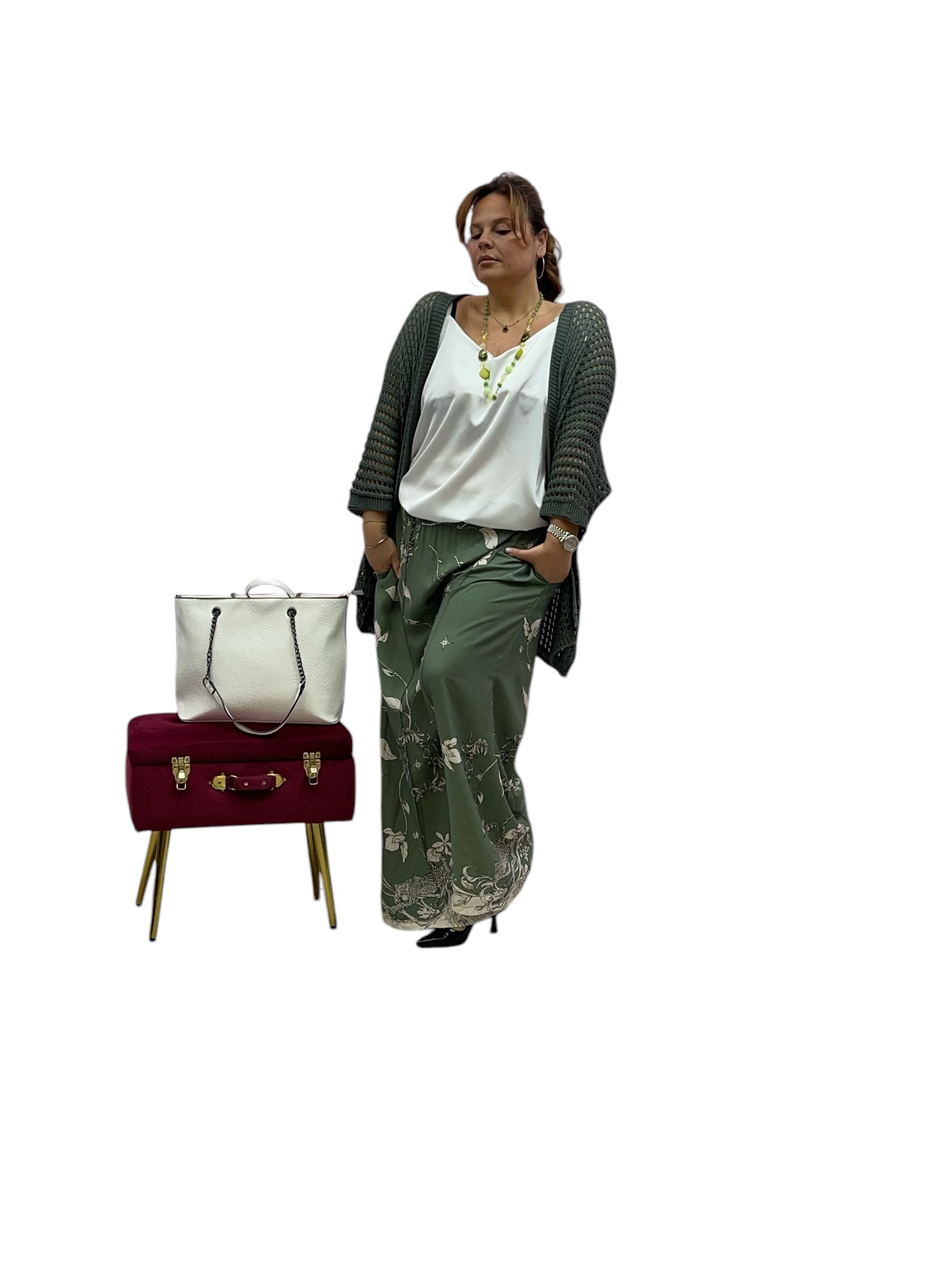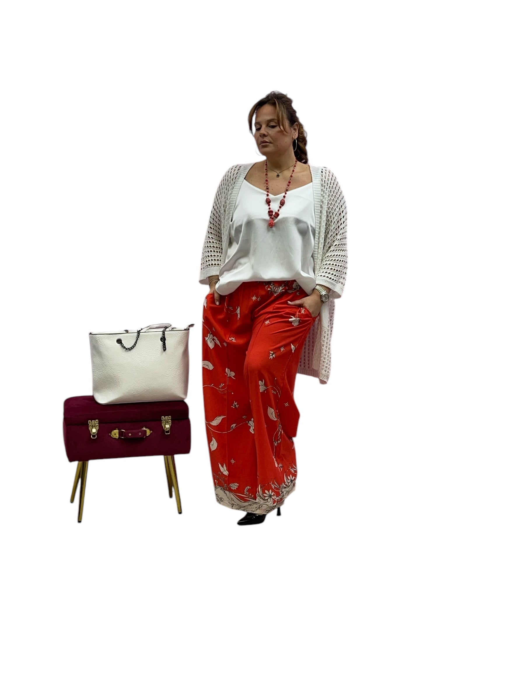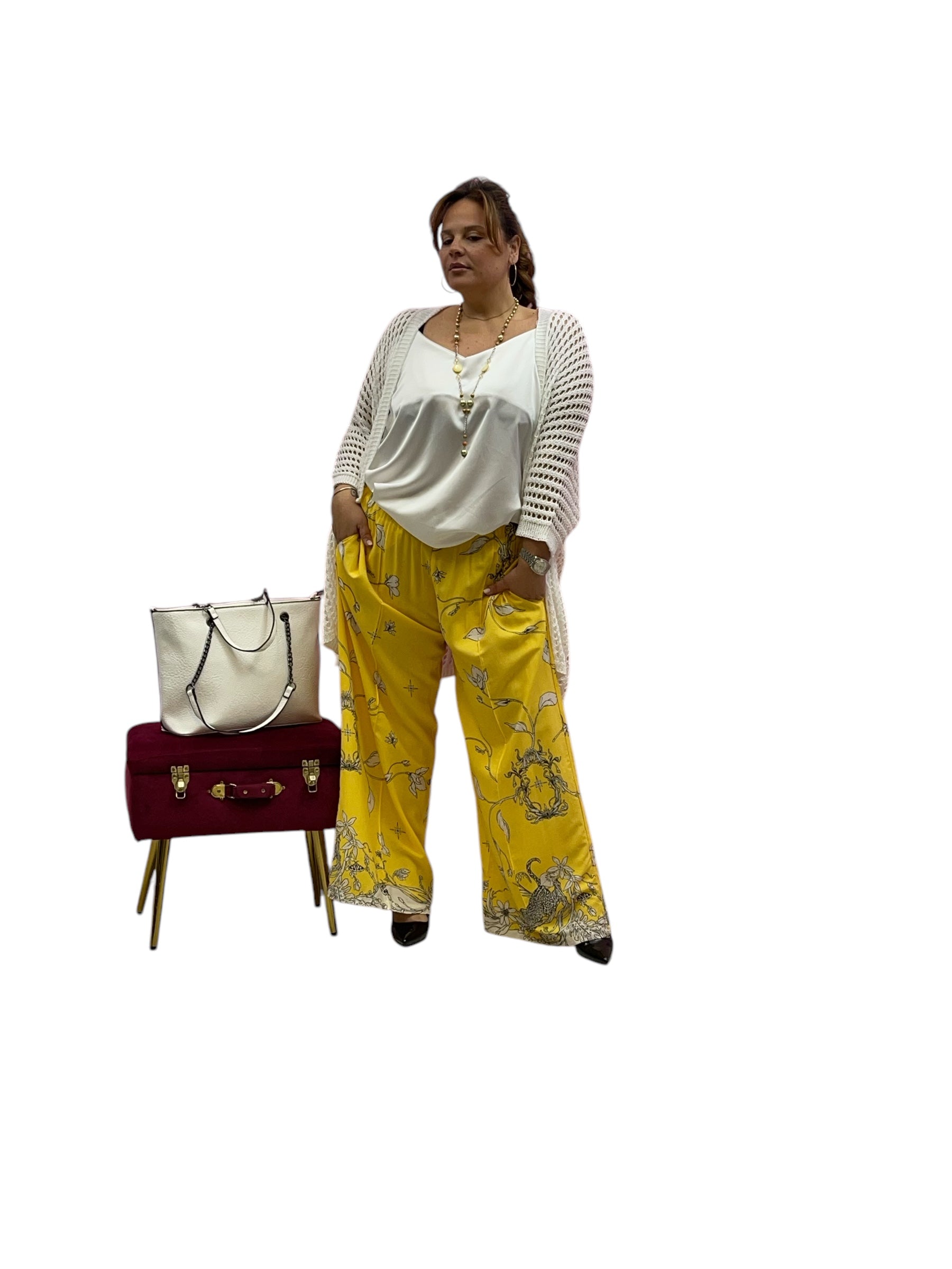 Pantaloni over fantasia in viscosa modello palazzo con elastico in vita