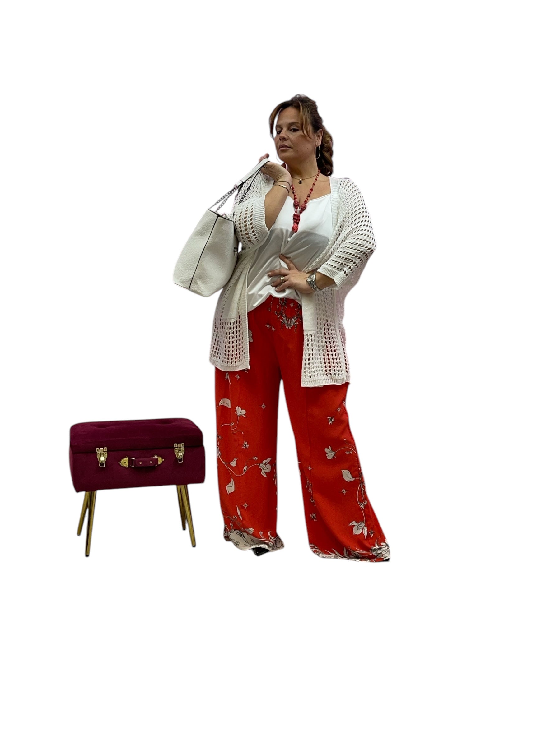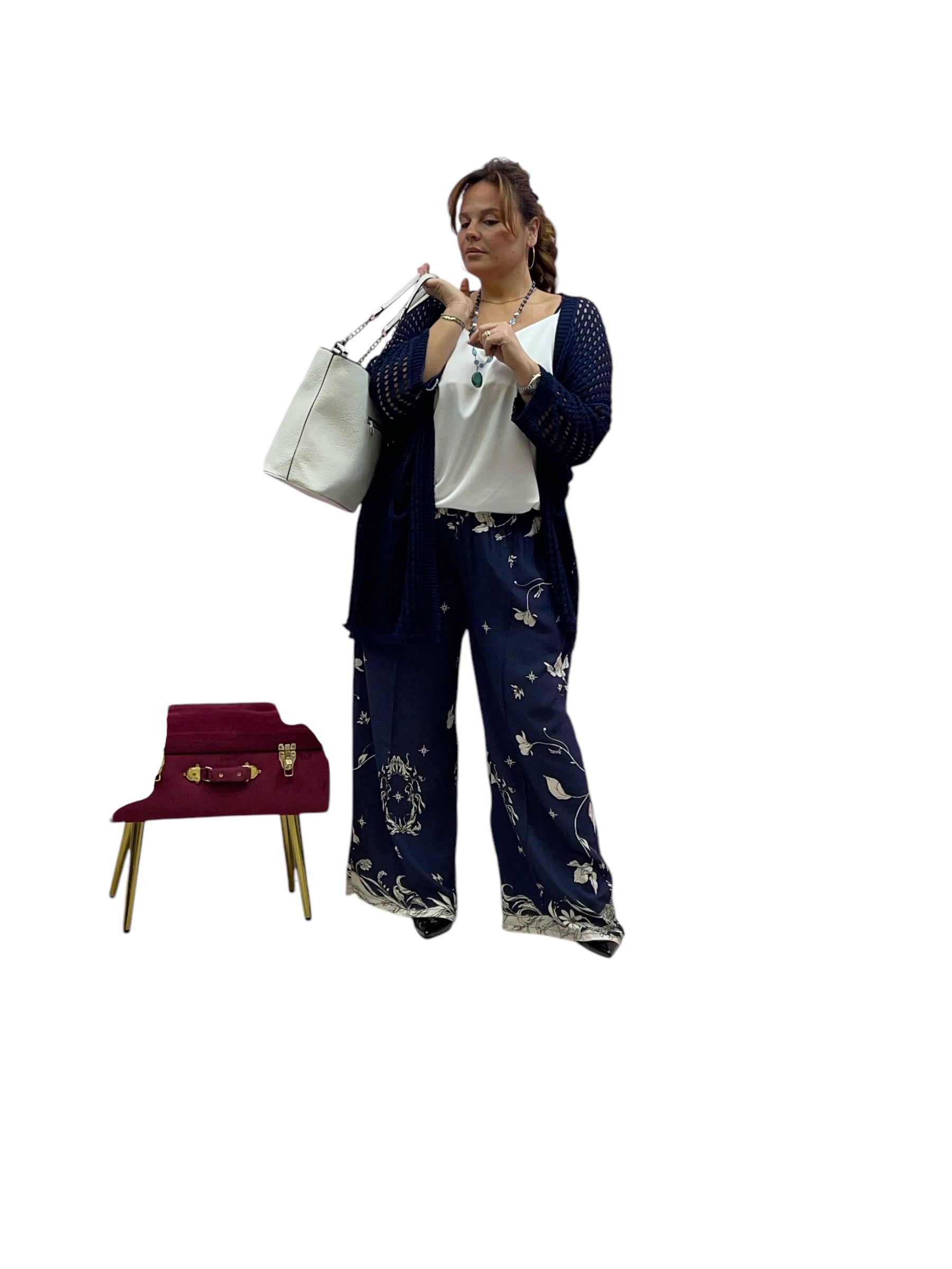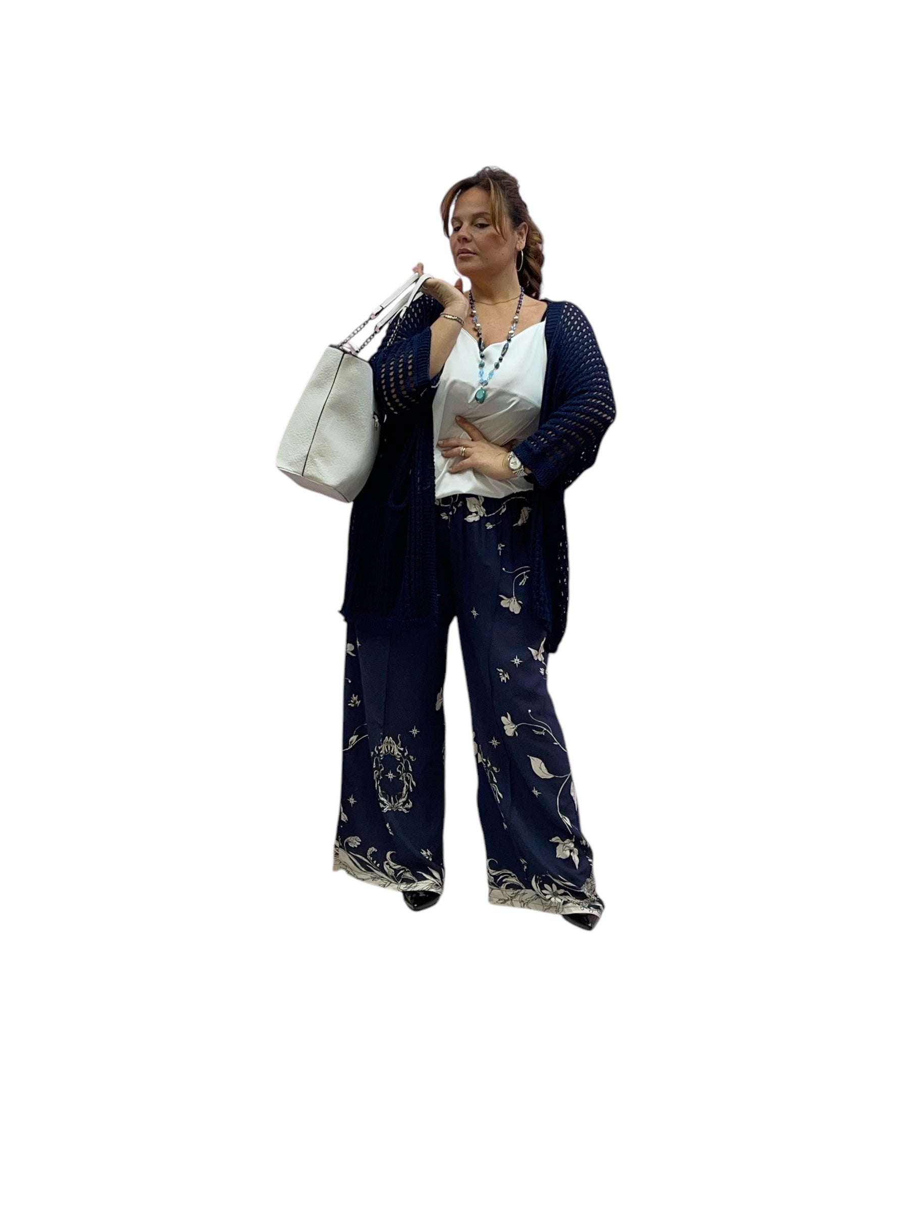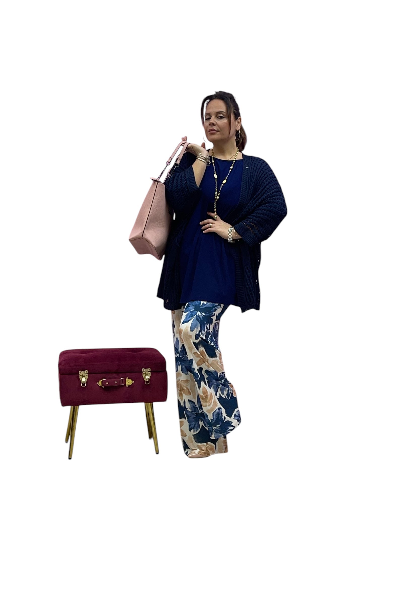 Pantaloni over fantasia in viscosa modello palazzo con elastico in vita