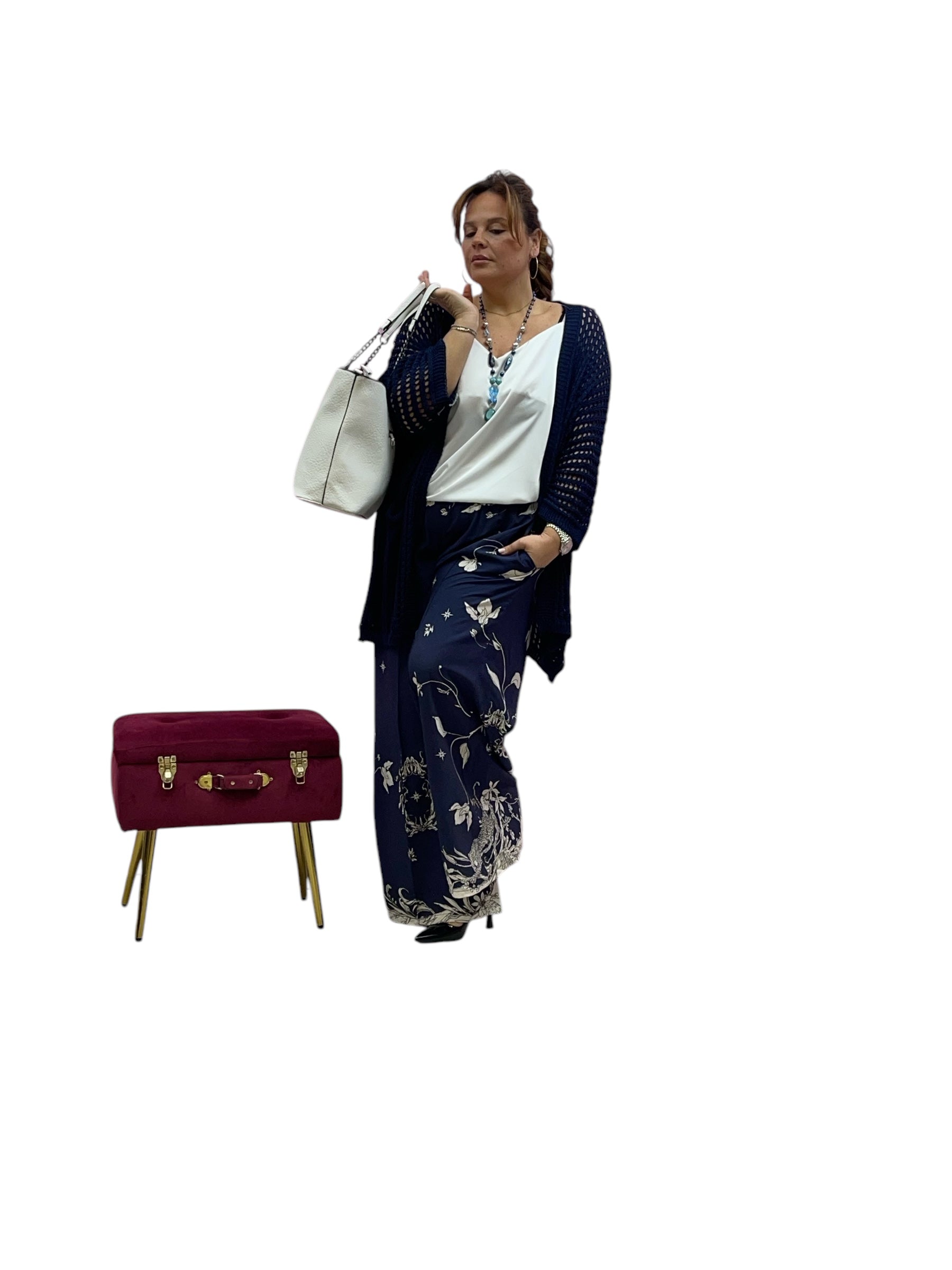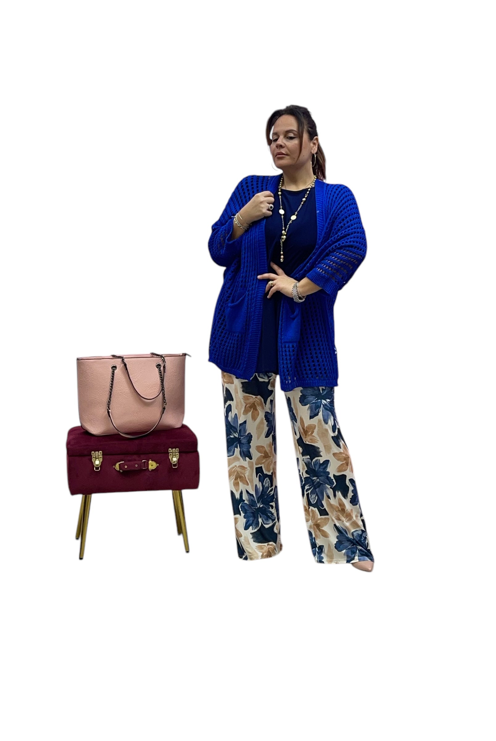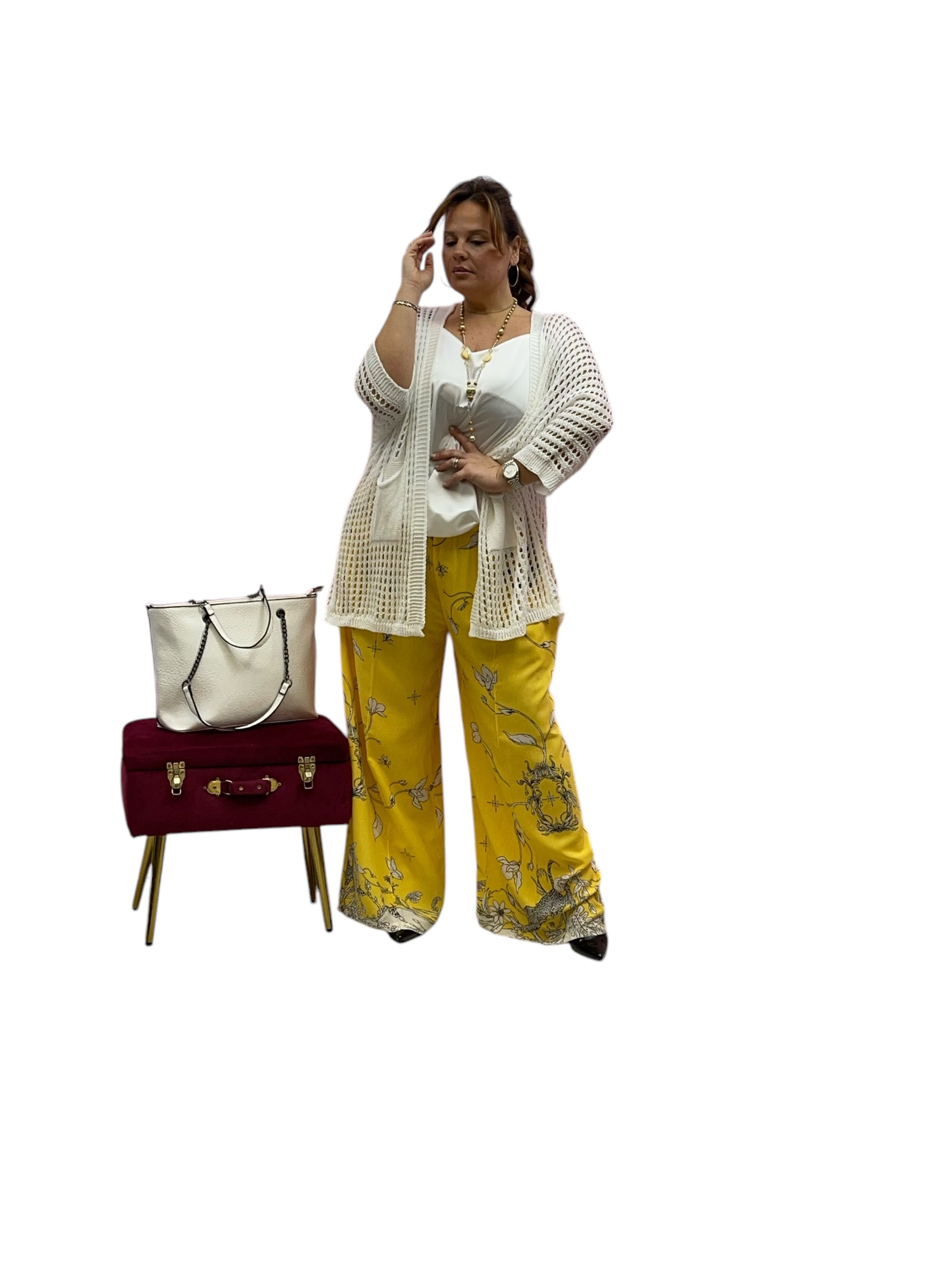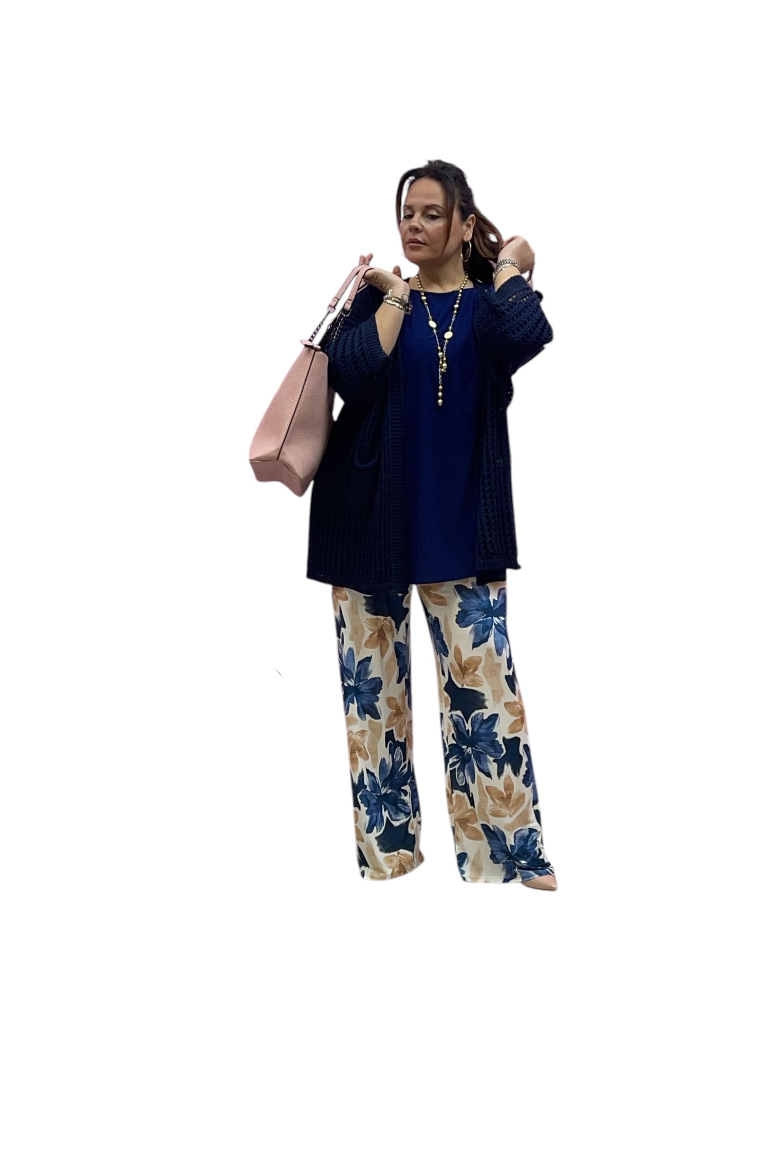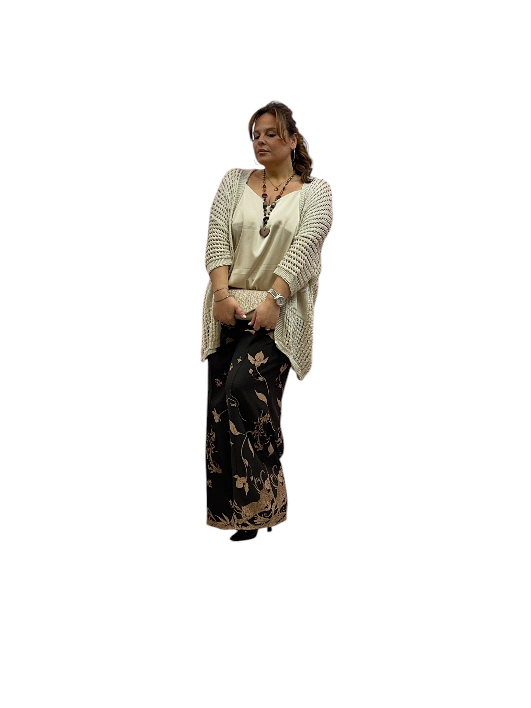 Pantaloni over fantasia in viscosa modello palazzo con elastico in vita