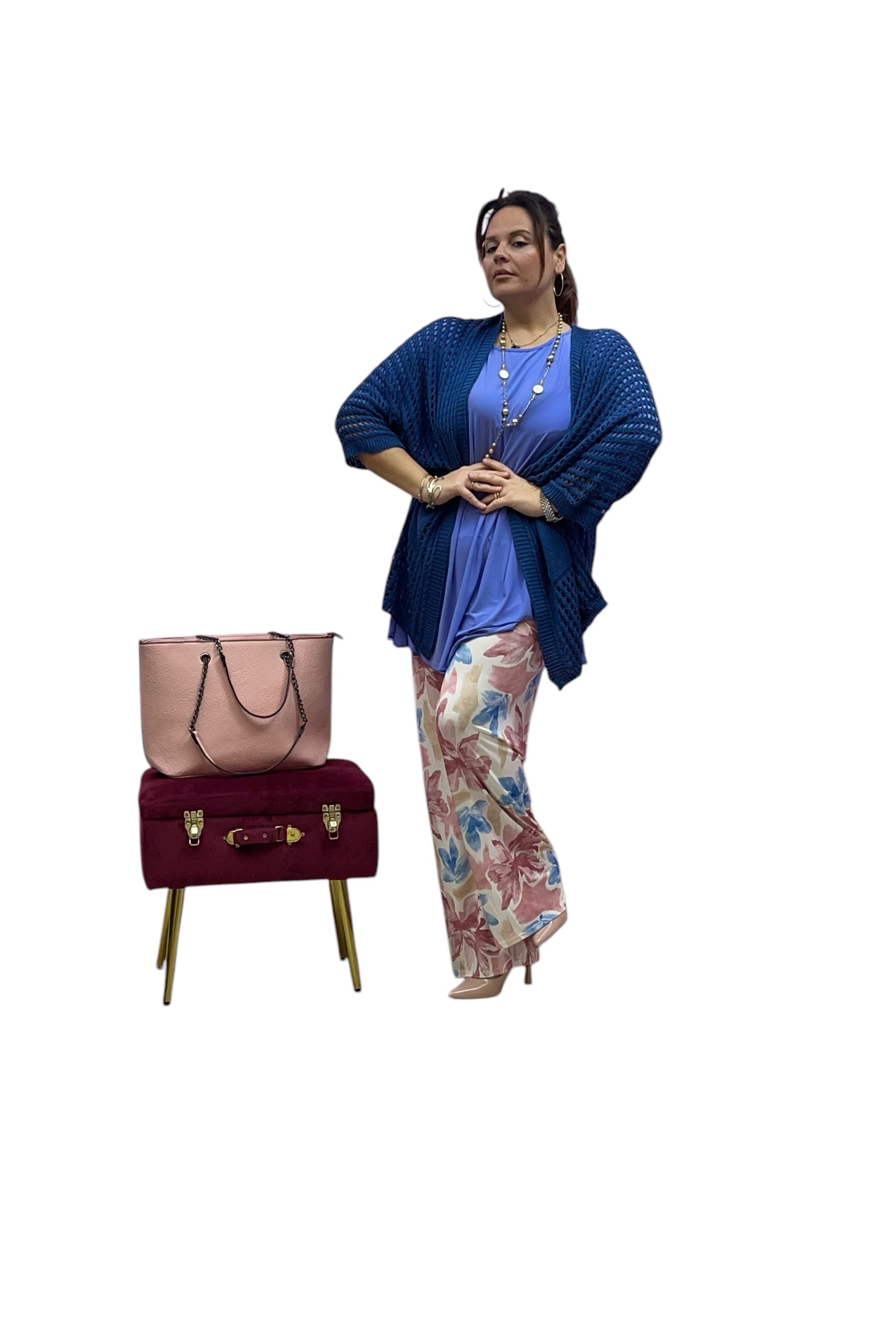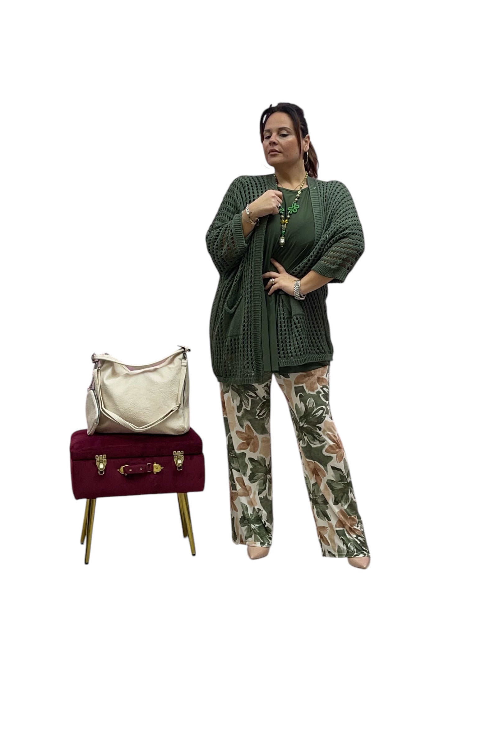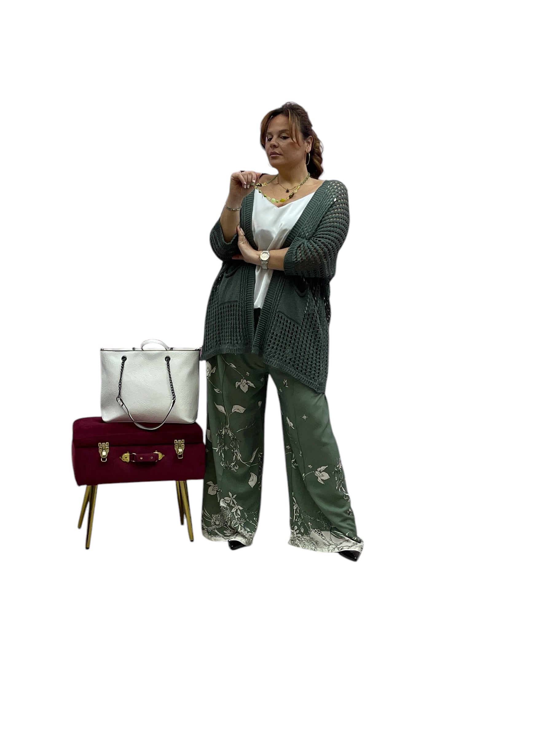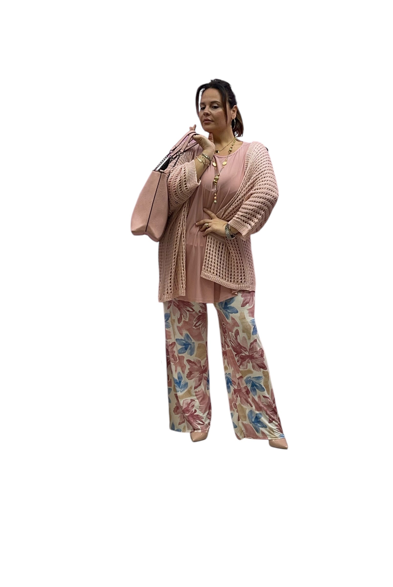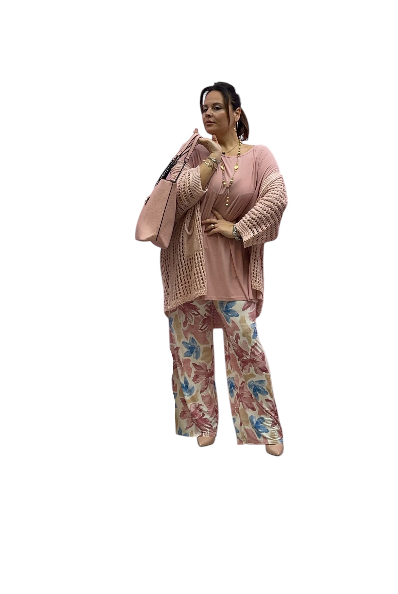 Pantaloni over fantasia in viscosa modello palazzo con elastico in vita