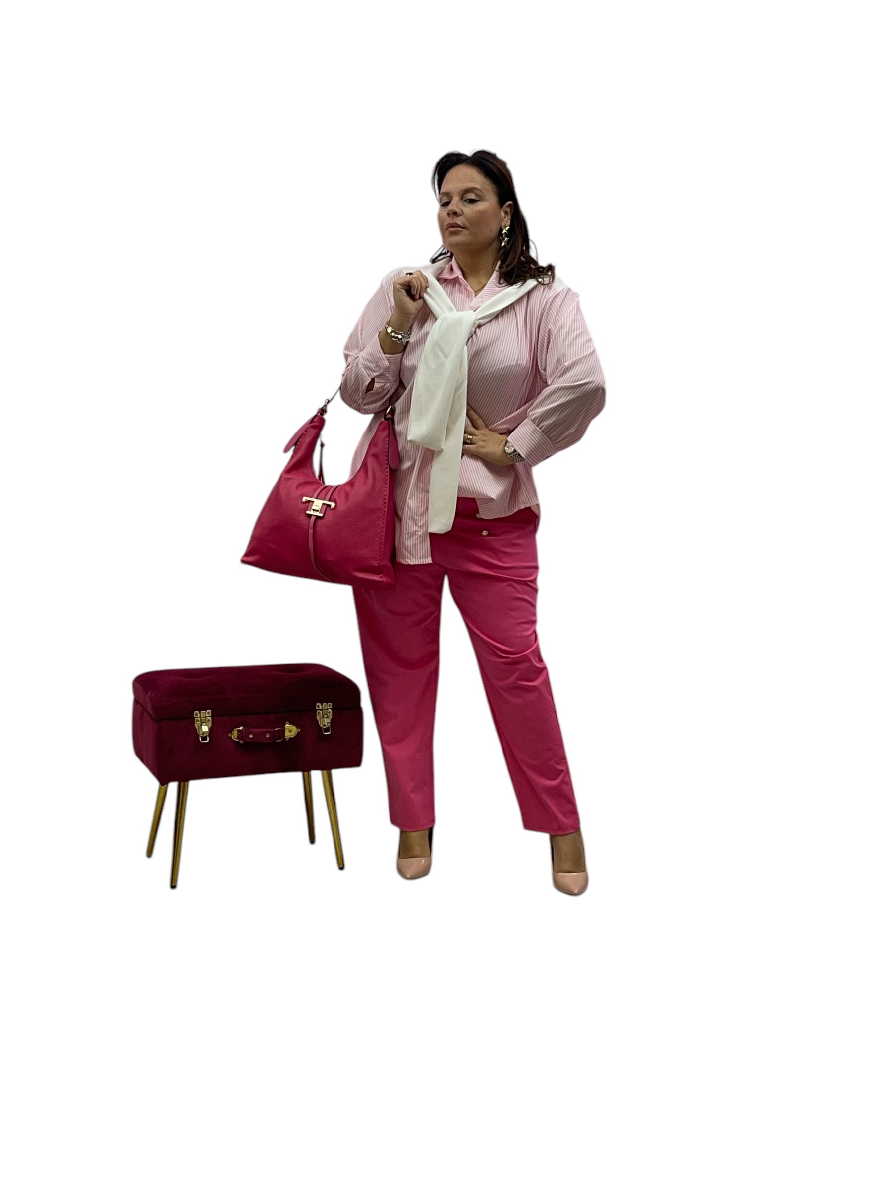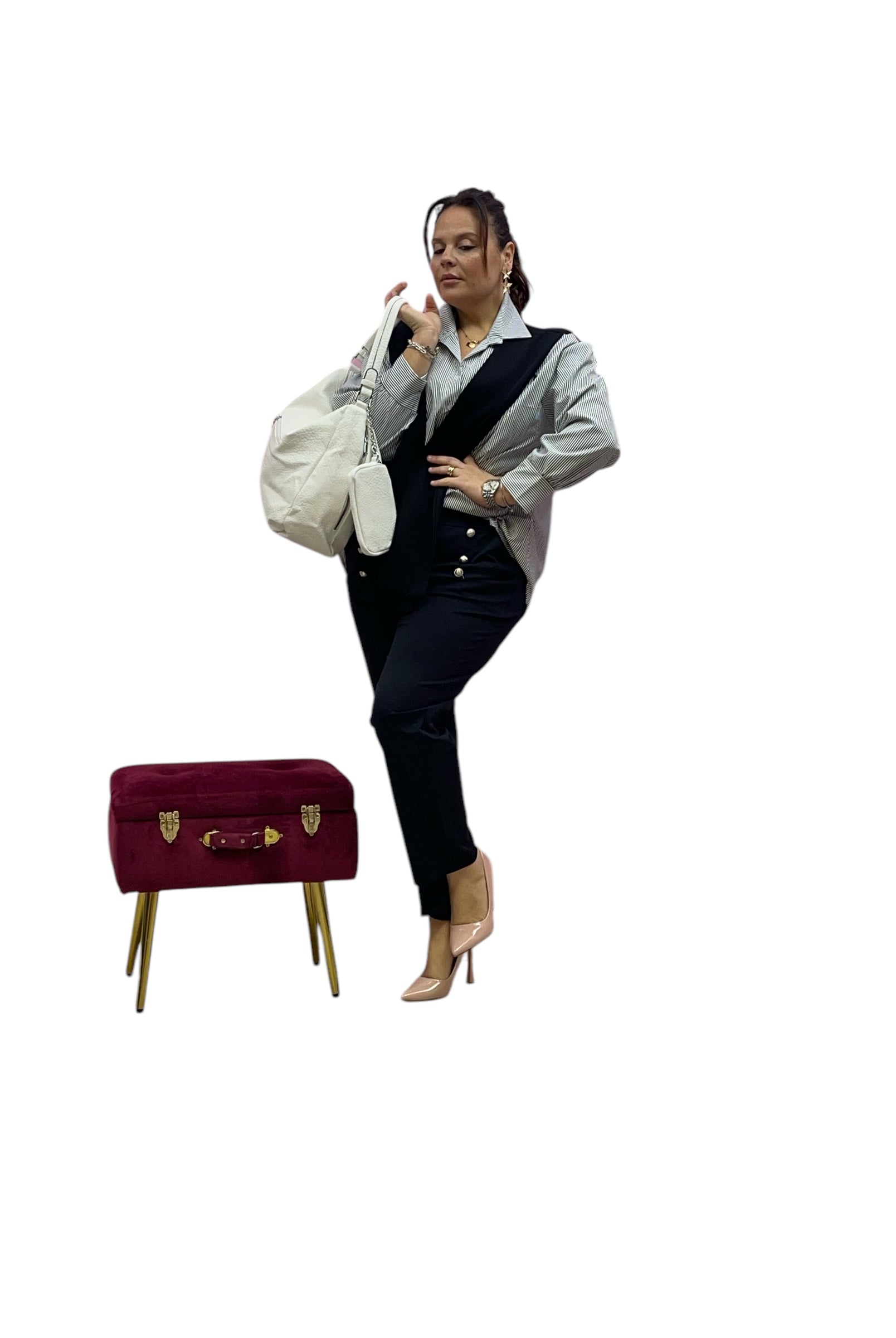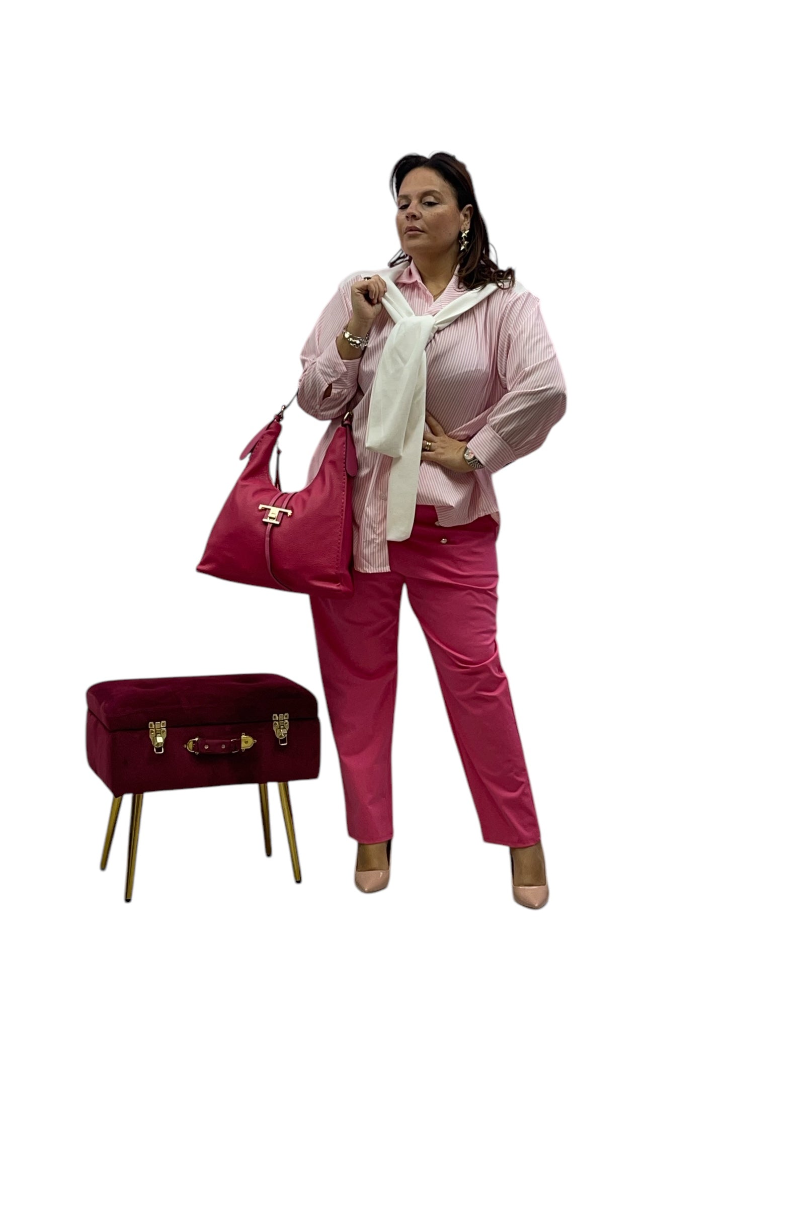 Pantaloni over in punto milano con elastico in vita,tasca america e bottoni in oro
