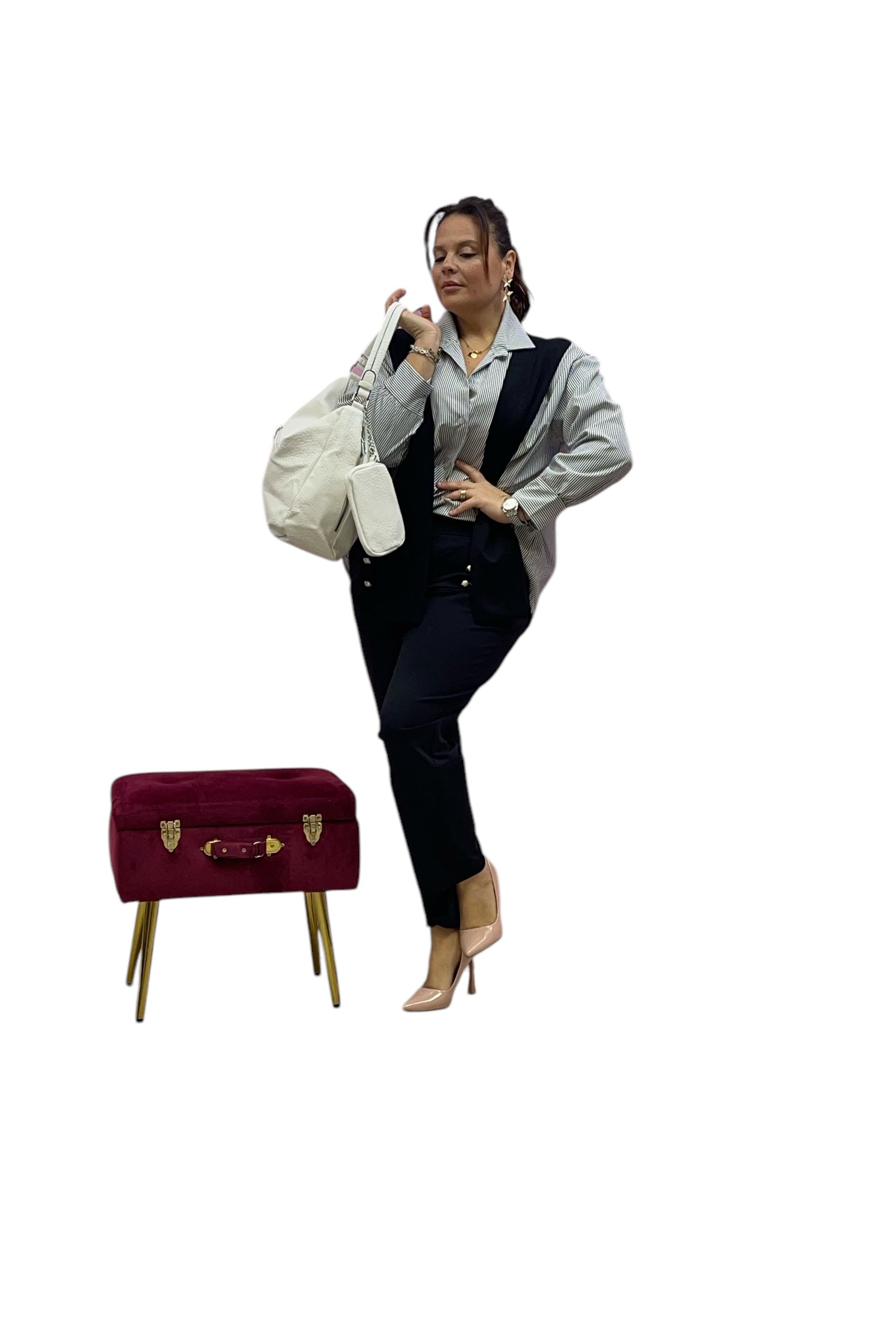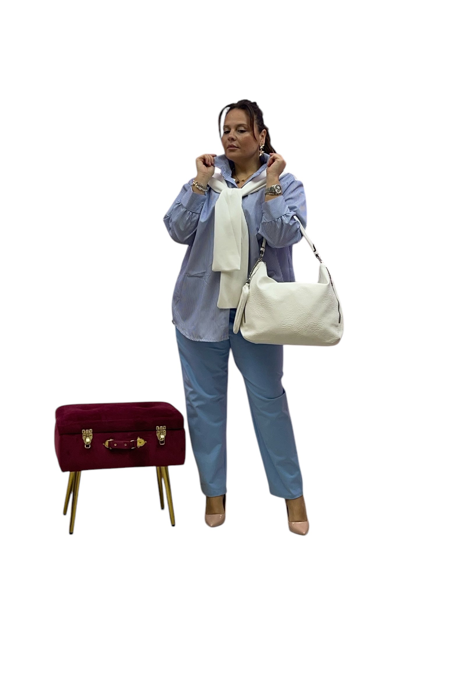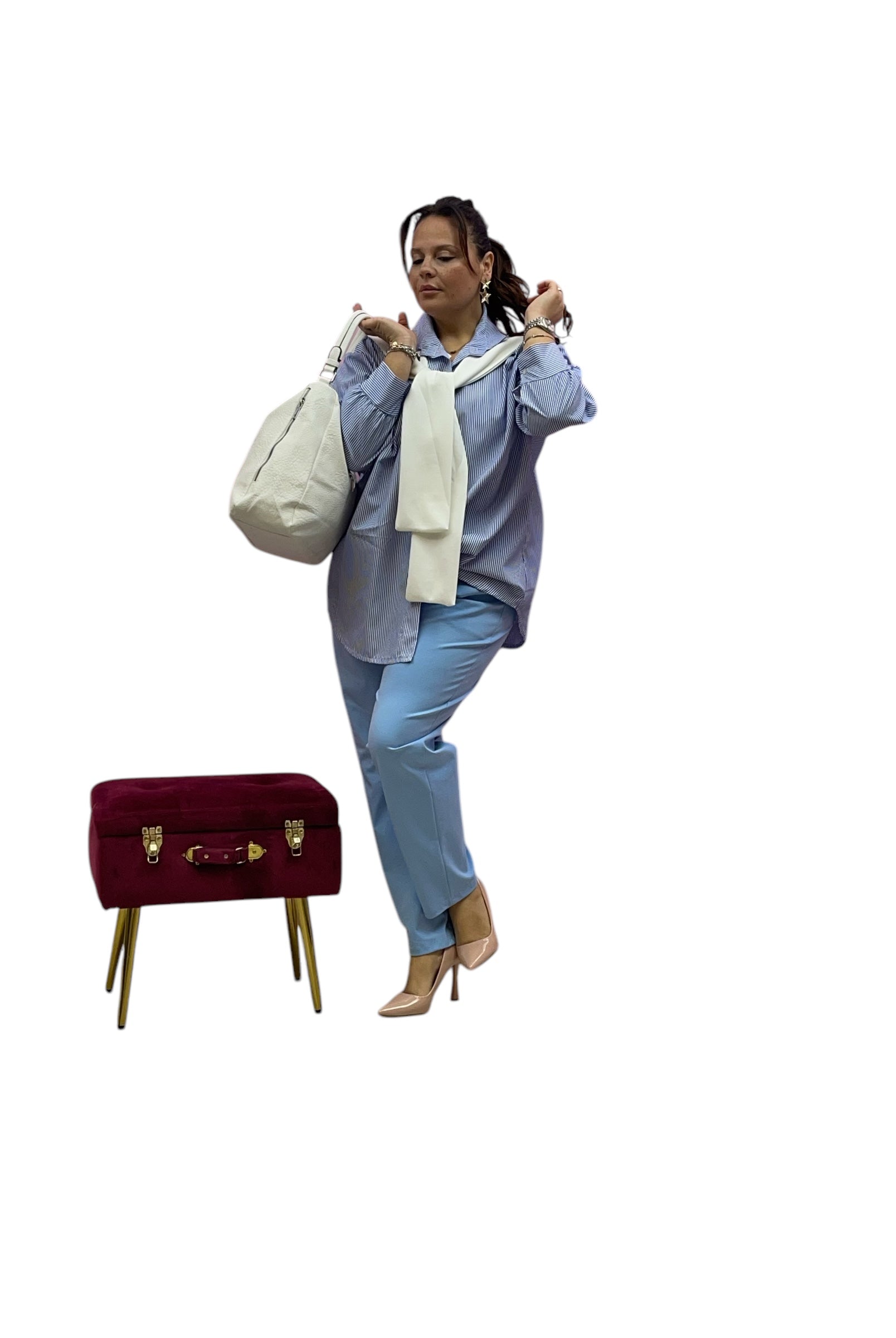 Pantaloni over in punto milano con elastico in vita,tasca america e bottoni in oro