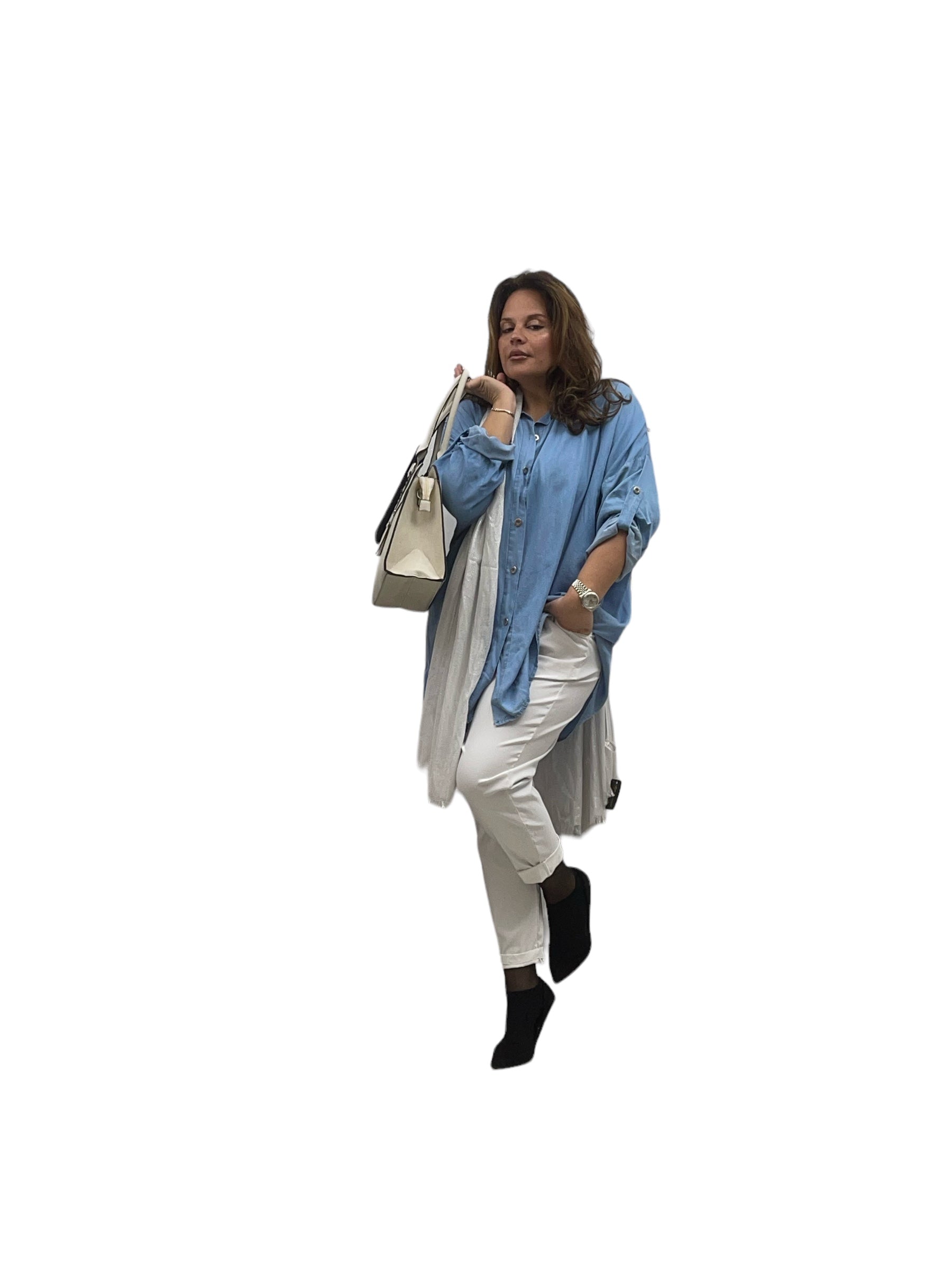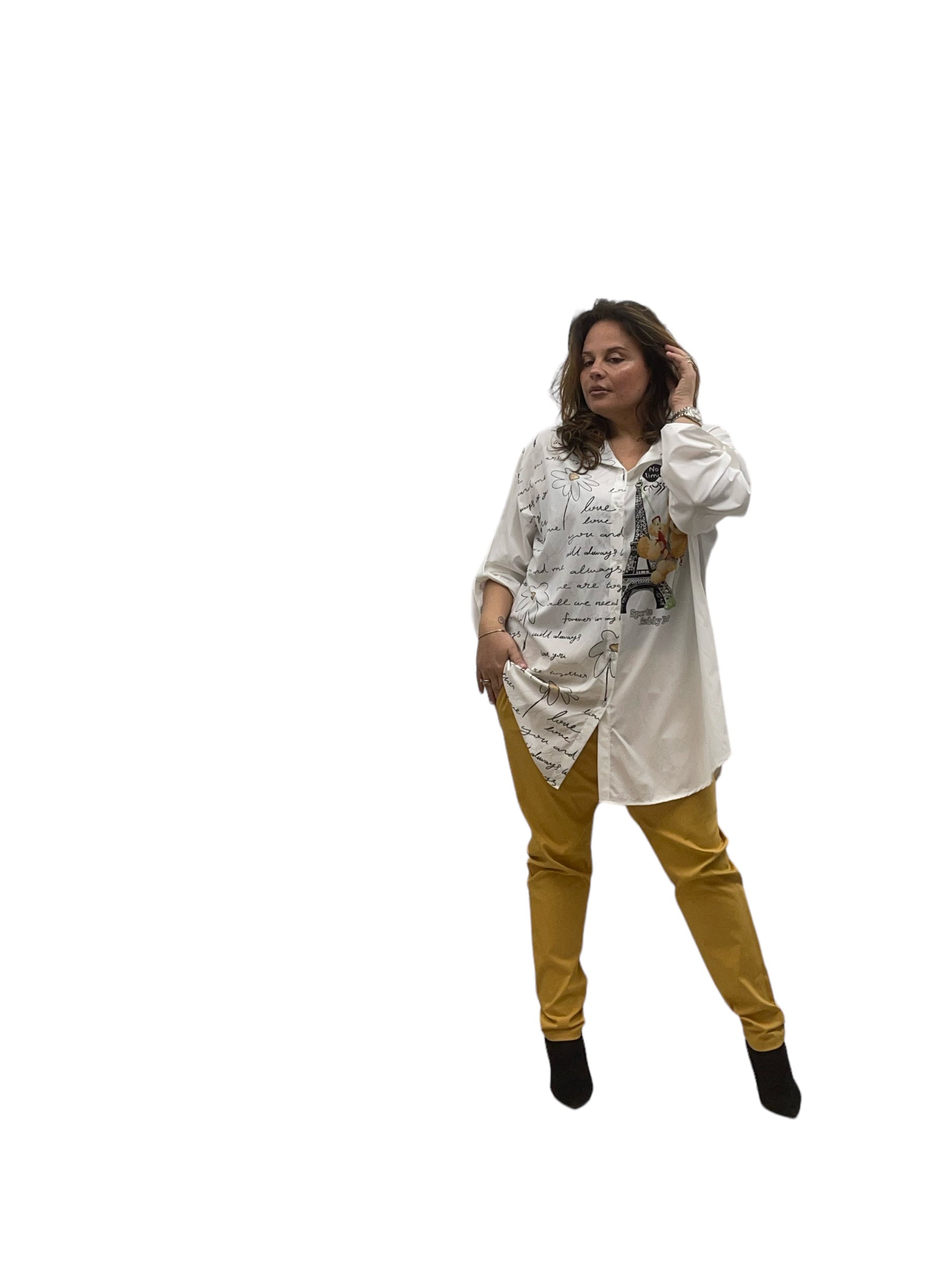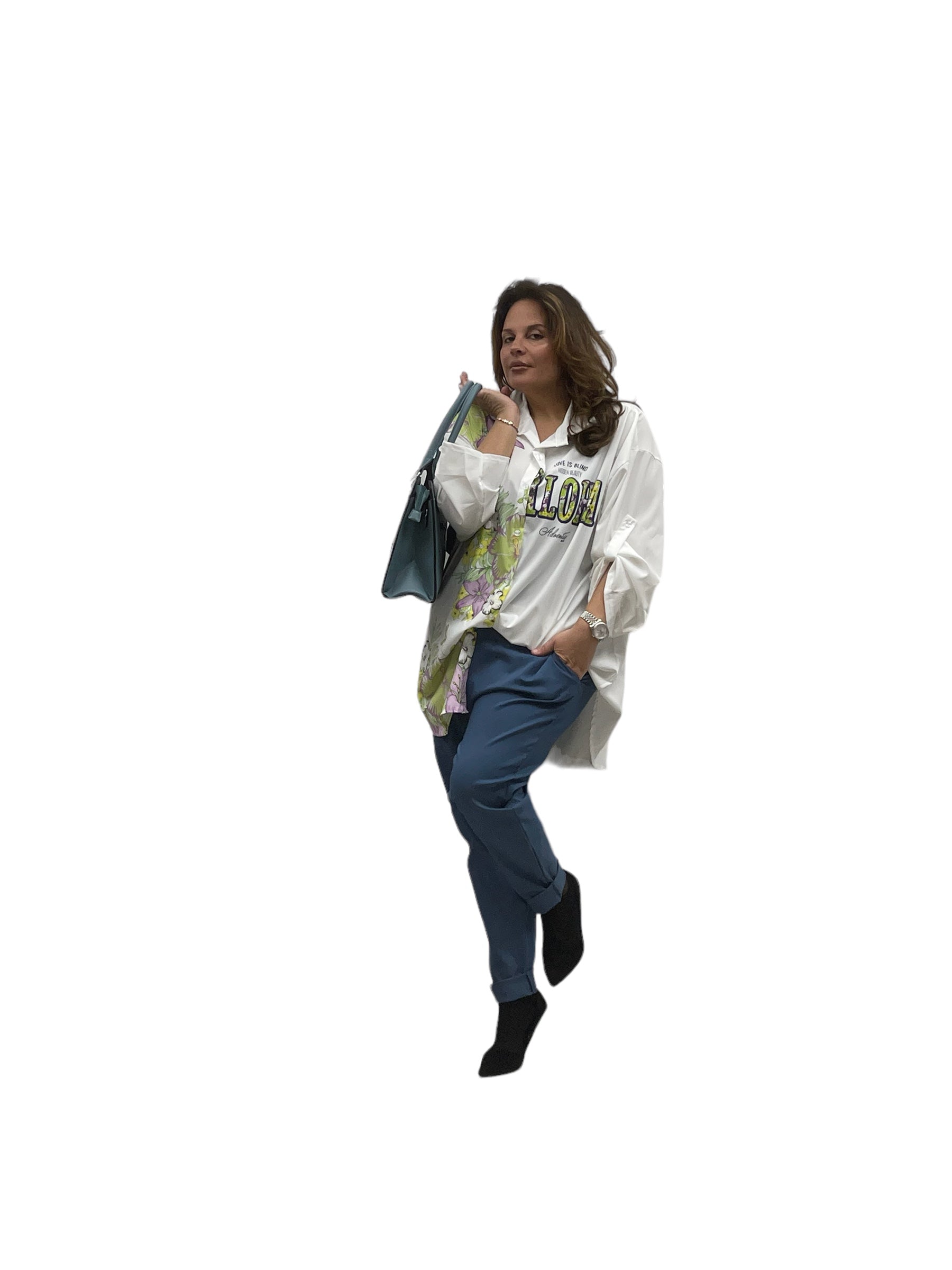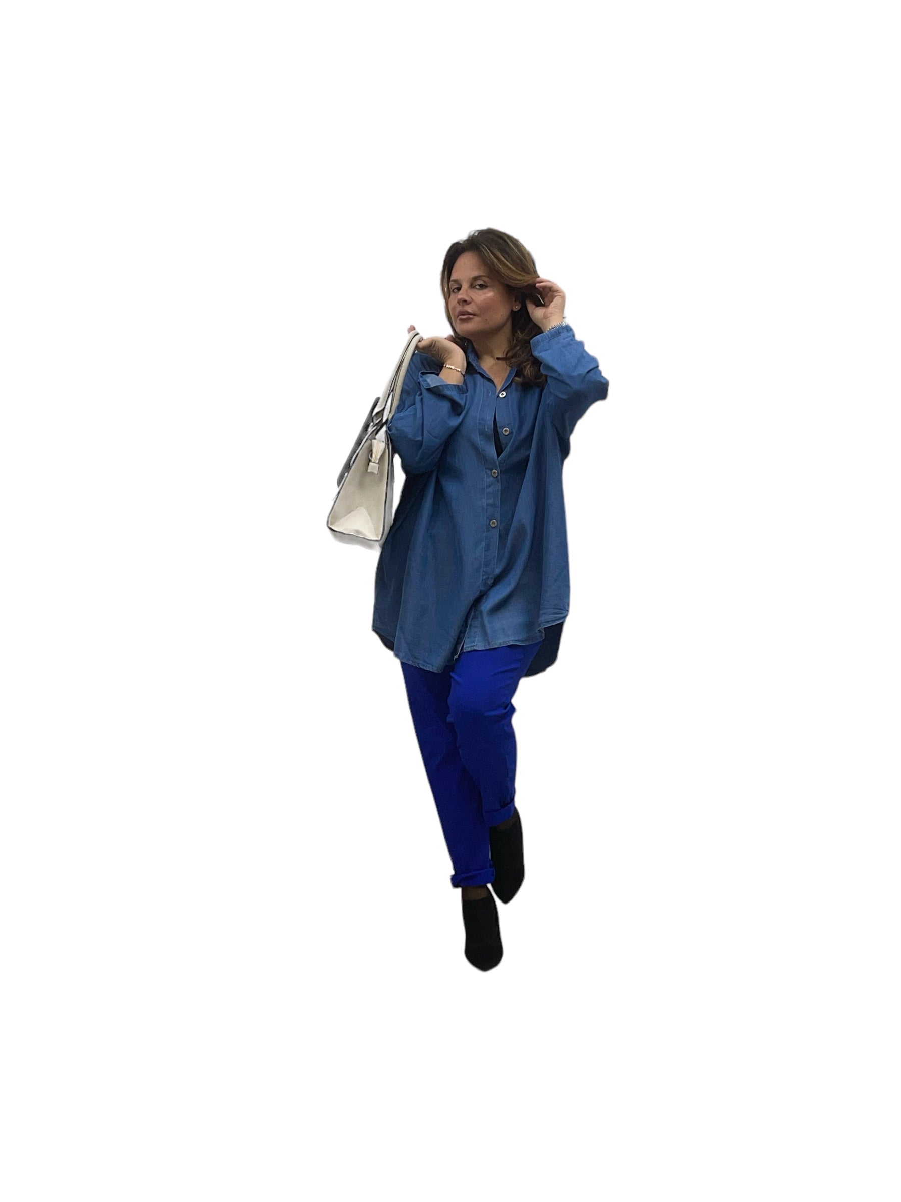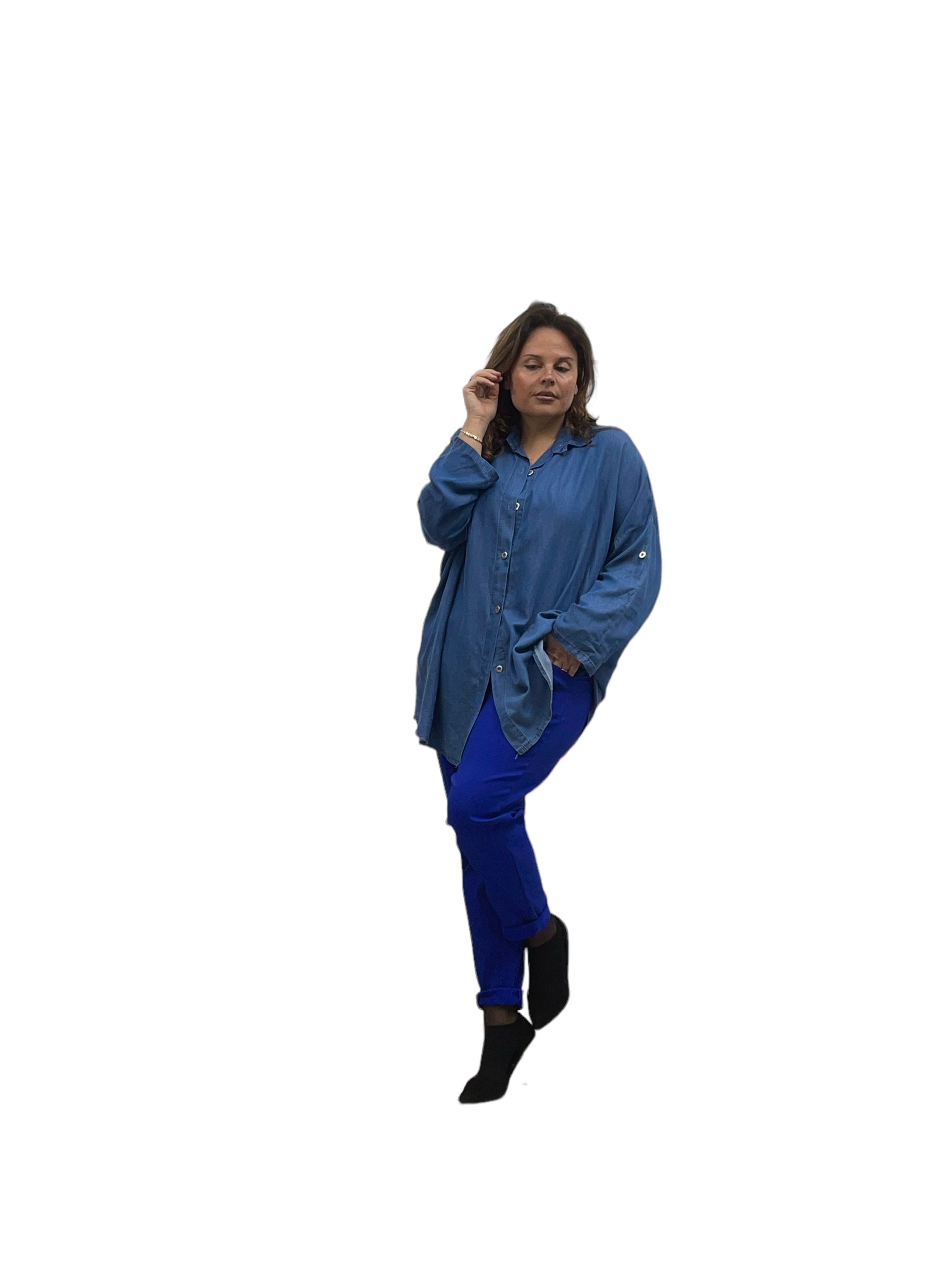 Pantaloni over 5 tasche con elastico in vita e tasca america