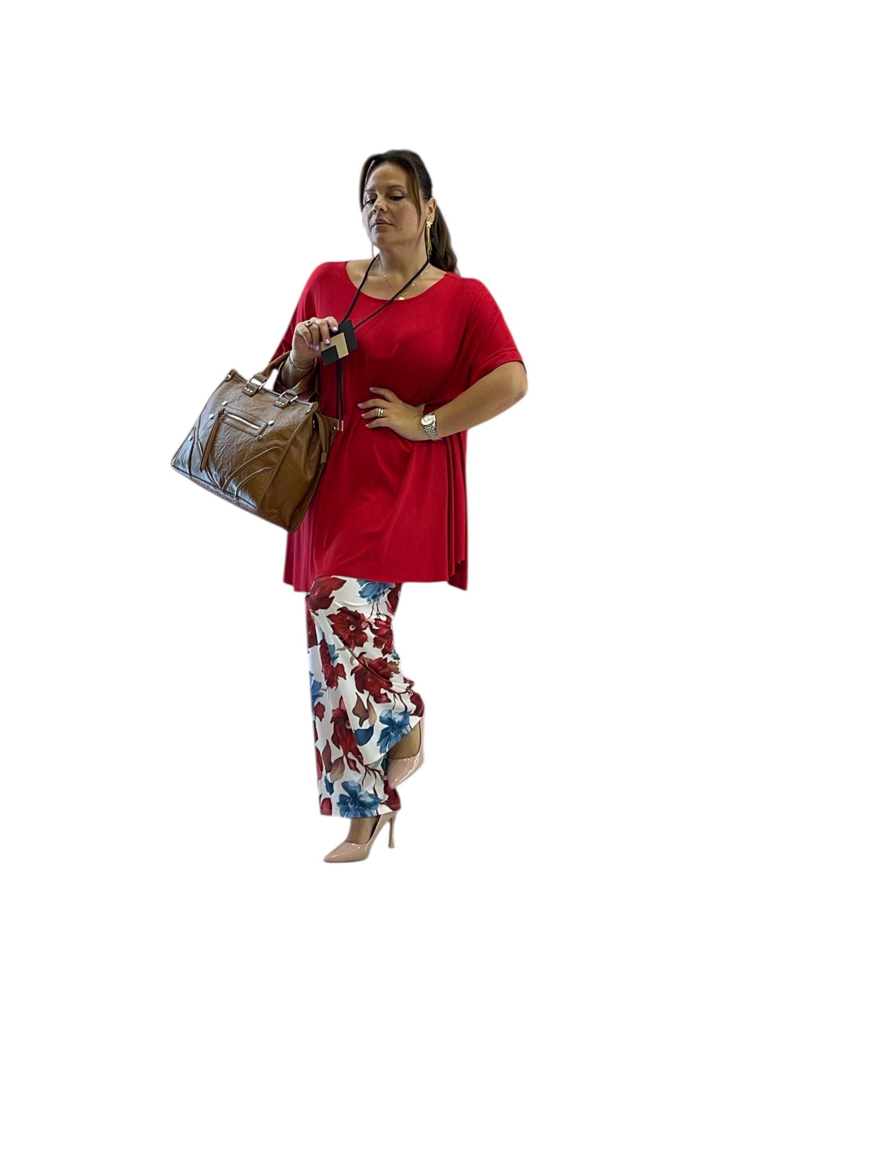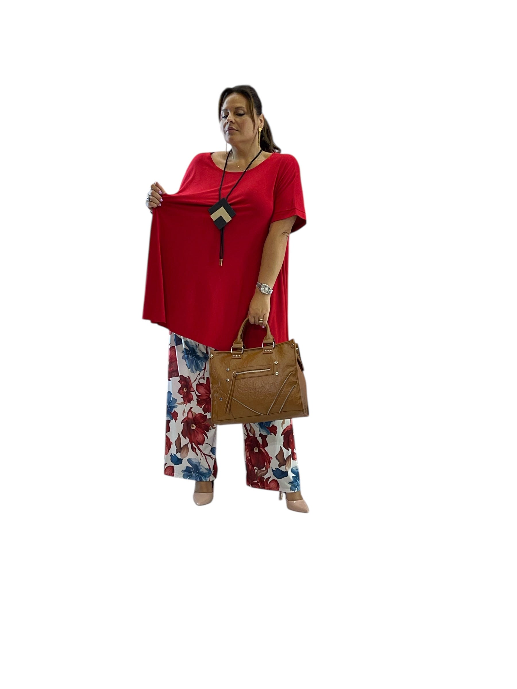 Pantaloni over in jersey fantasia con elastico in vita modello palazzo