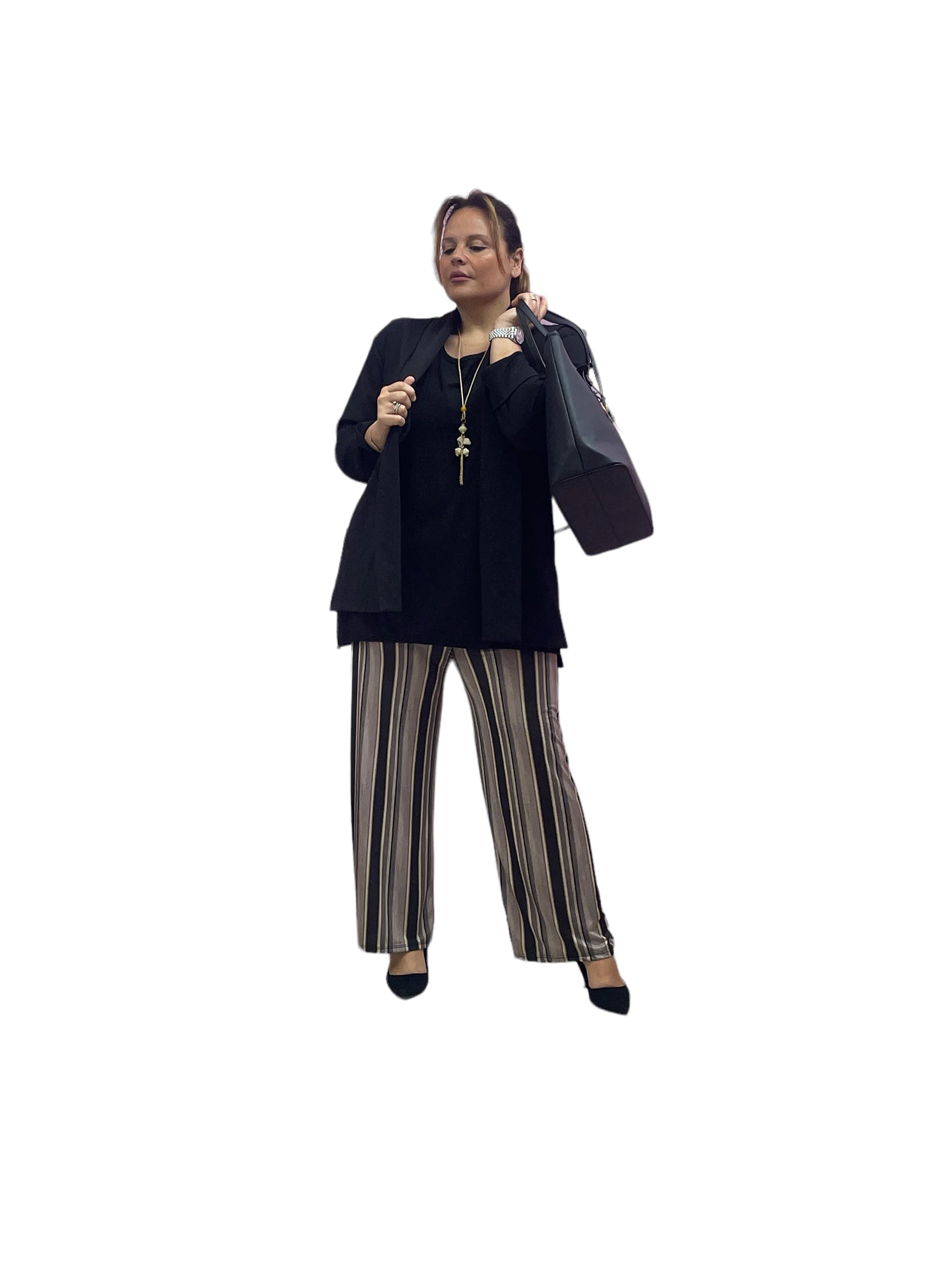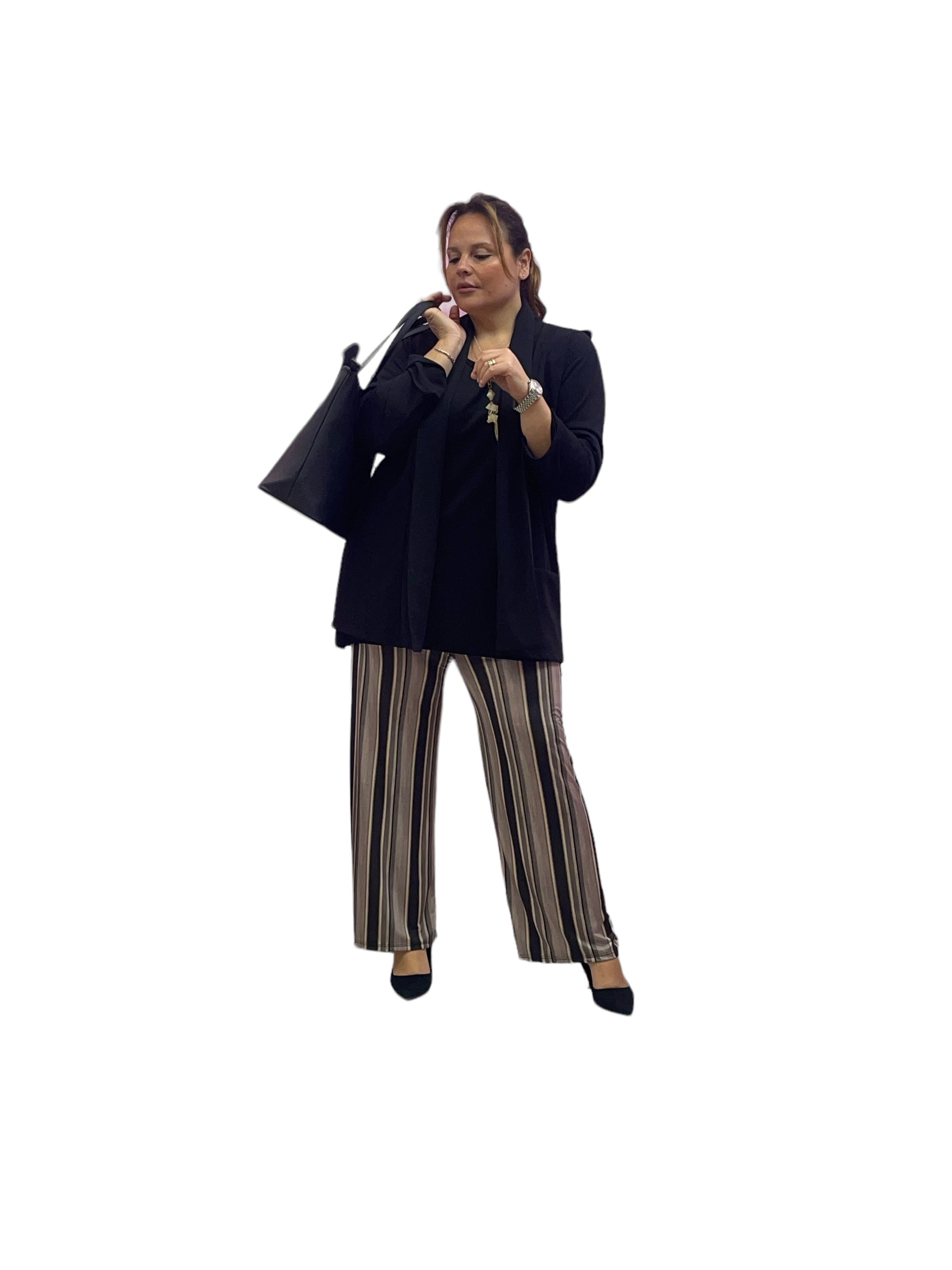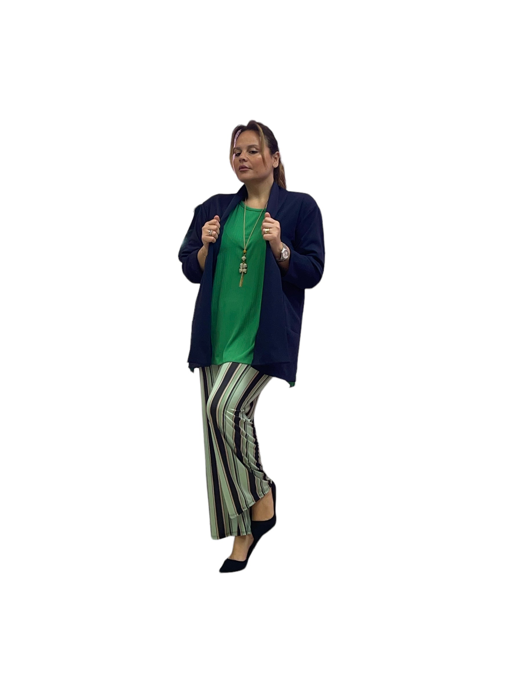 Pantaloni palazzo in jersey rigati con elastico in vita